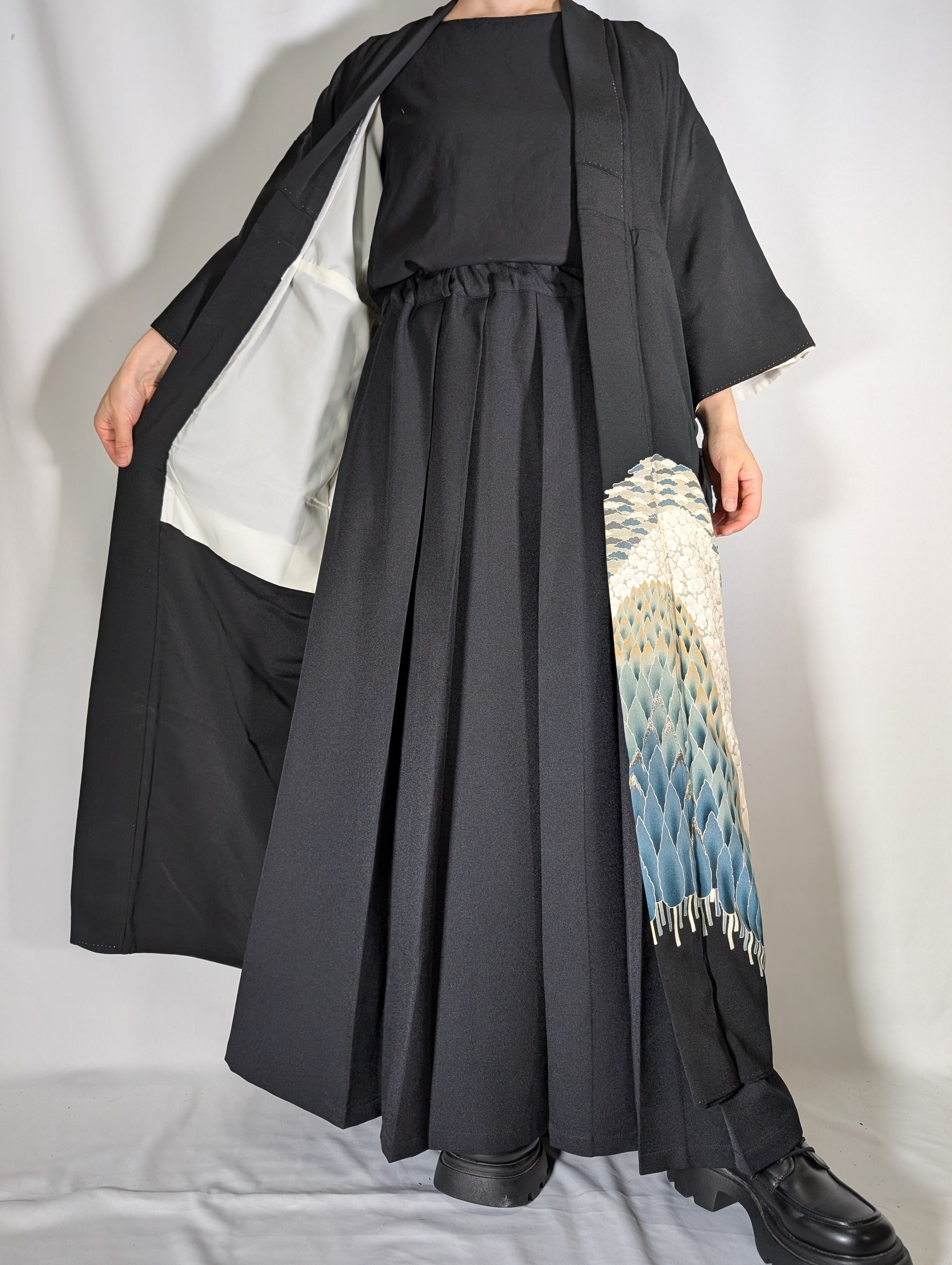 こちらは「着物リメイクのコートが欲しい」「丈の長い羽織が欲しい」というお客様の声を元に企画した商品です。