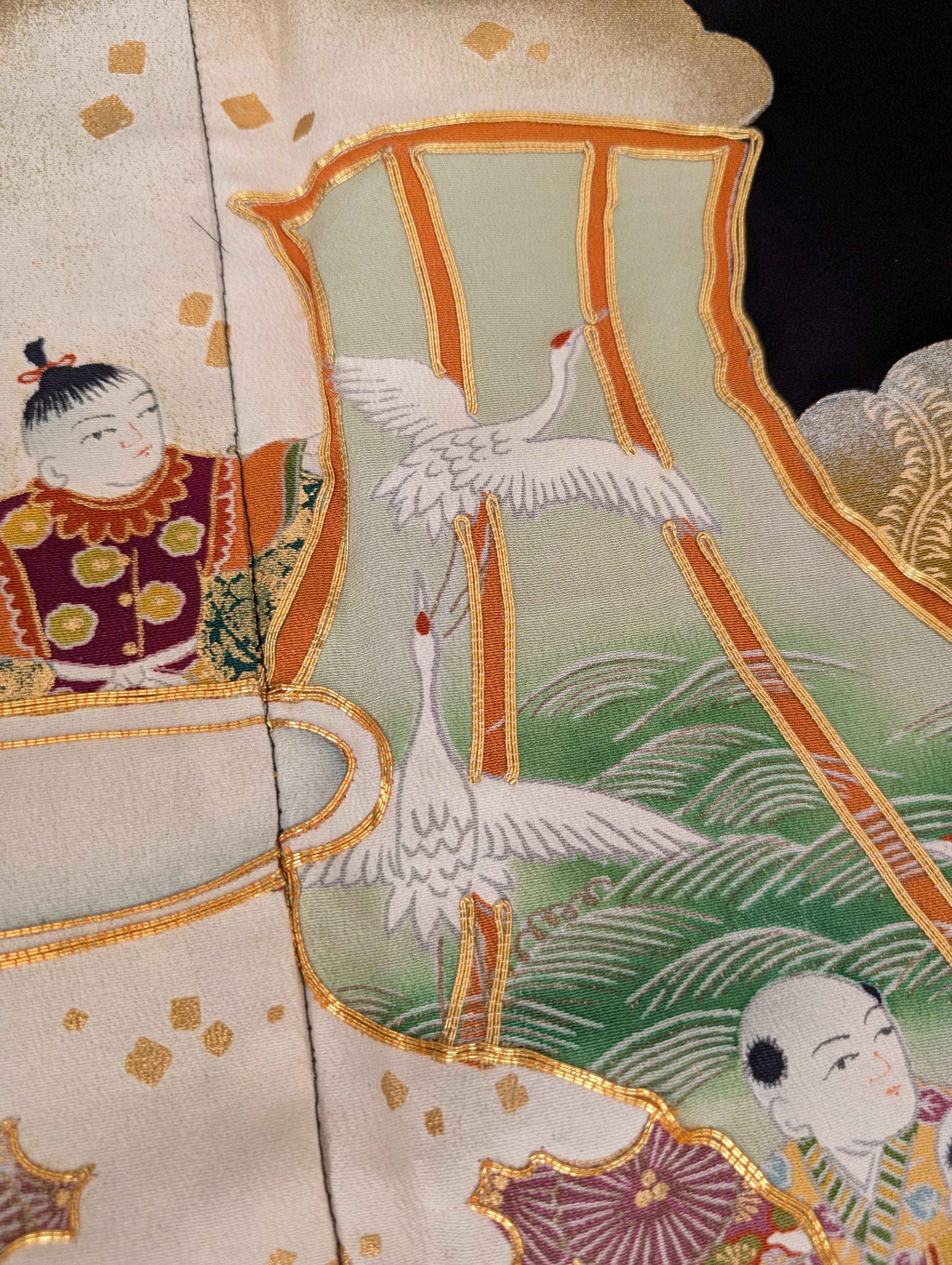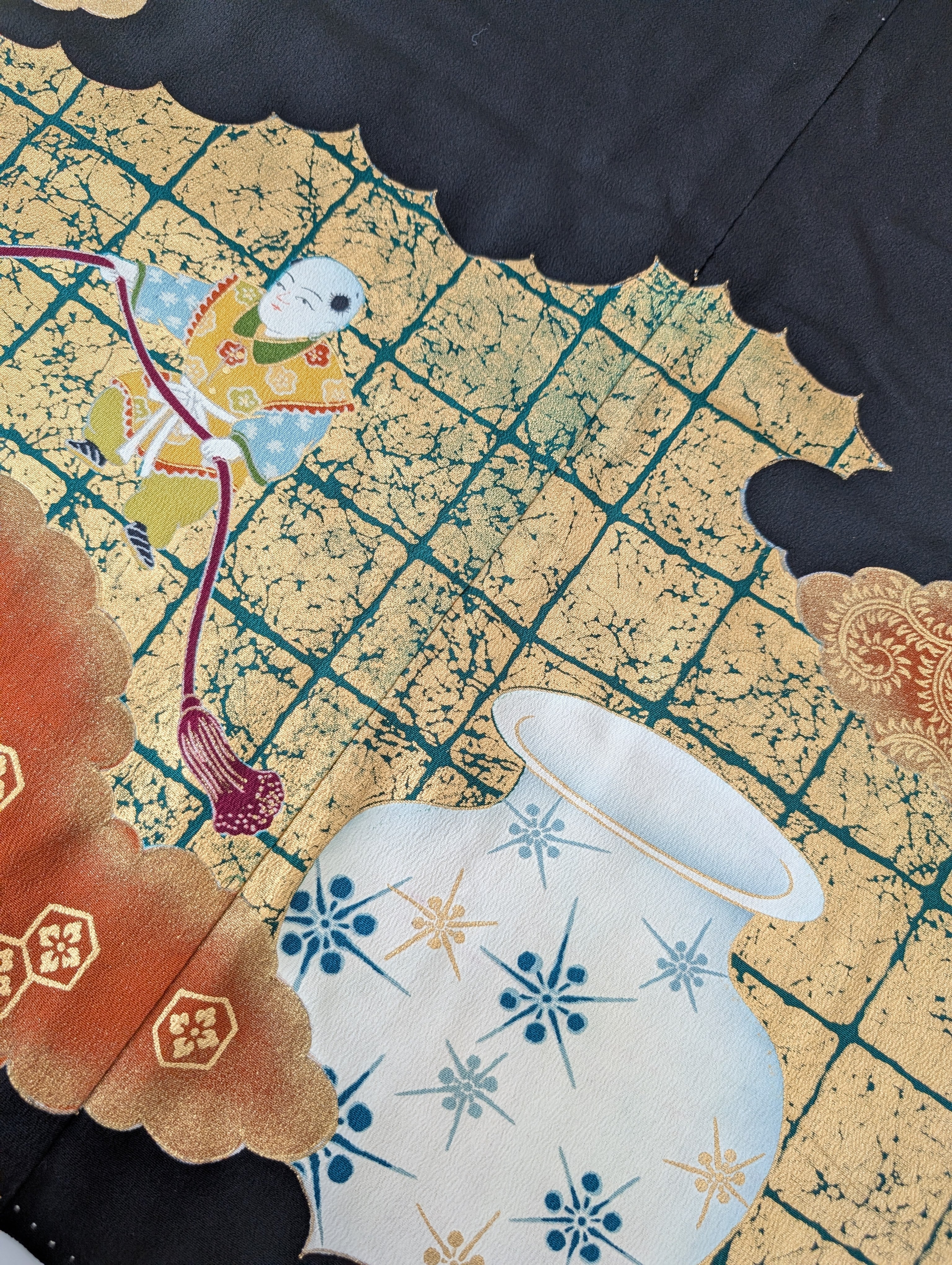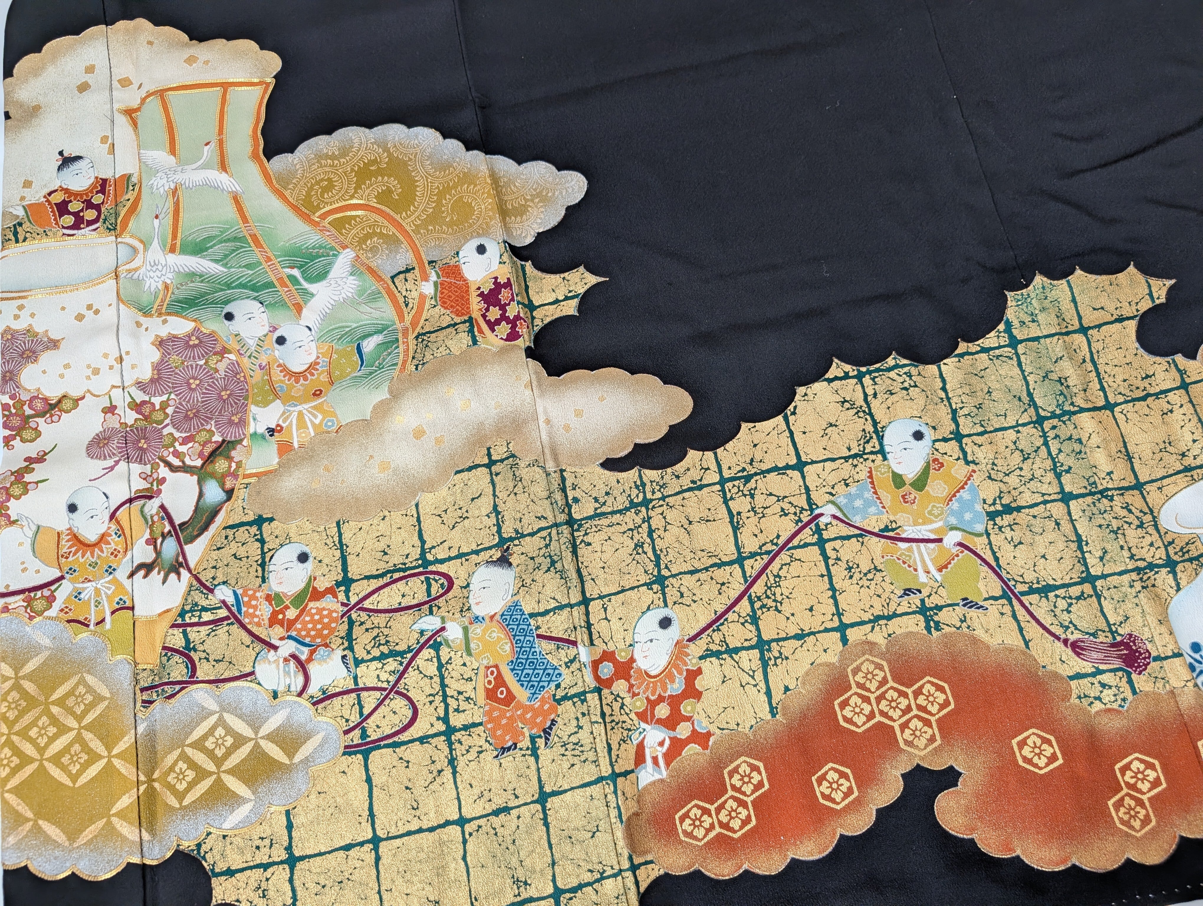 Also, the luxurious hem pattern was left uncut, and the sleeves were left as they were, without being remade to retain the kimono-like appearance.