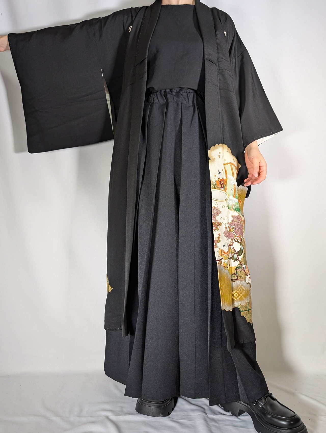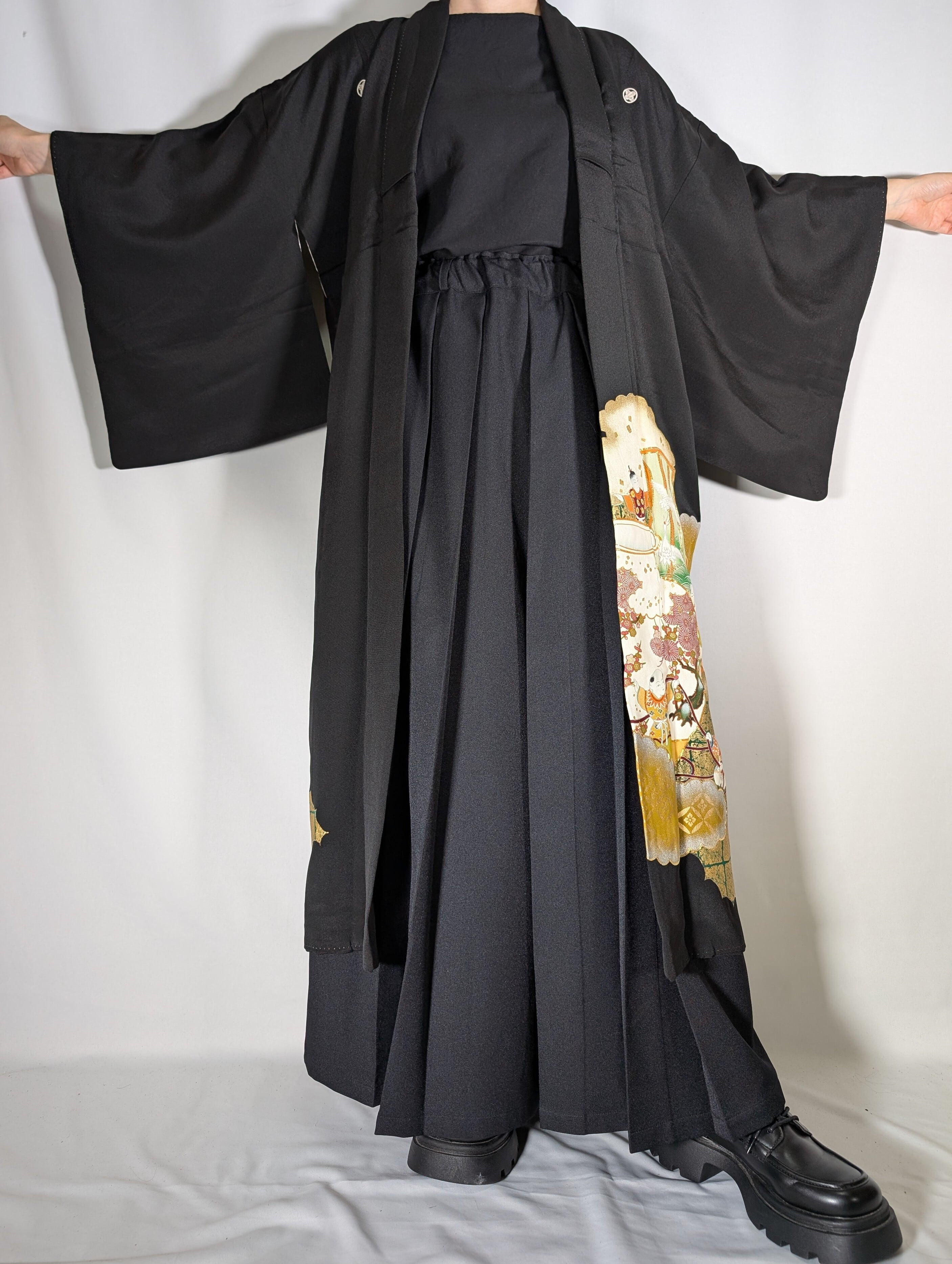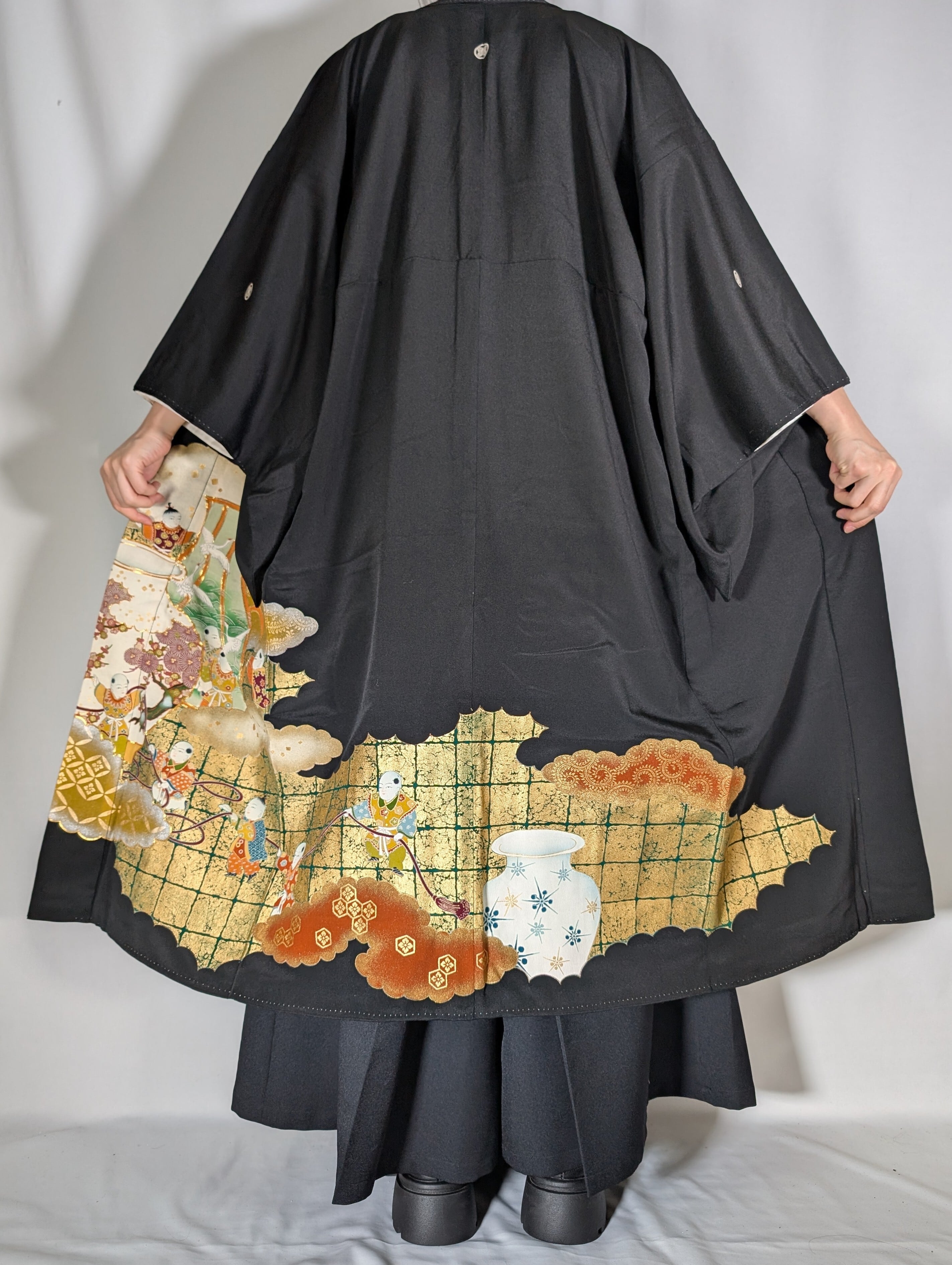 【14473】 着物リメイク 黒留袖 ロングコート kimono tomesode remake long coat black