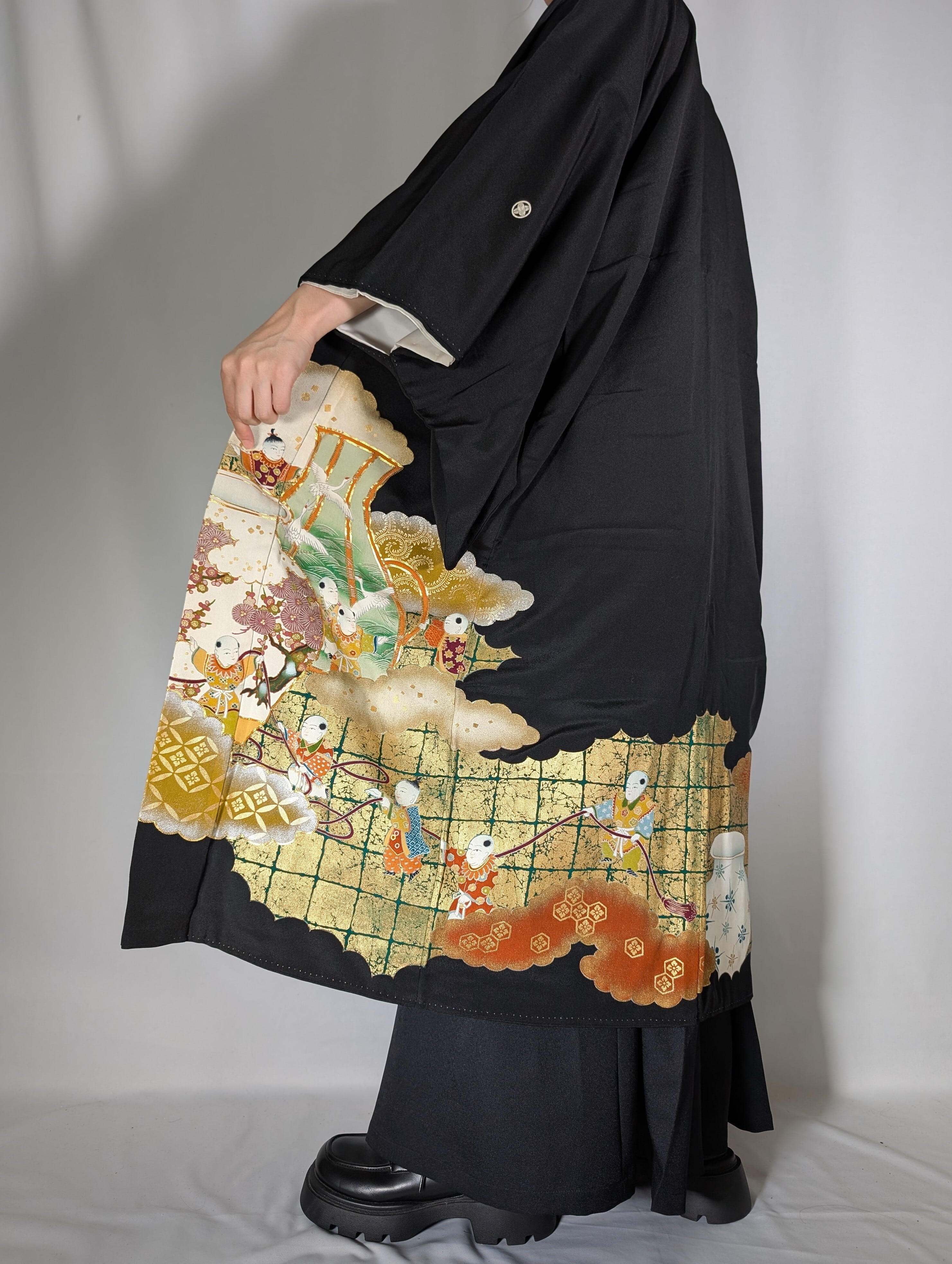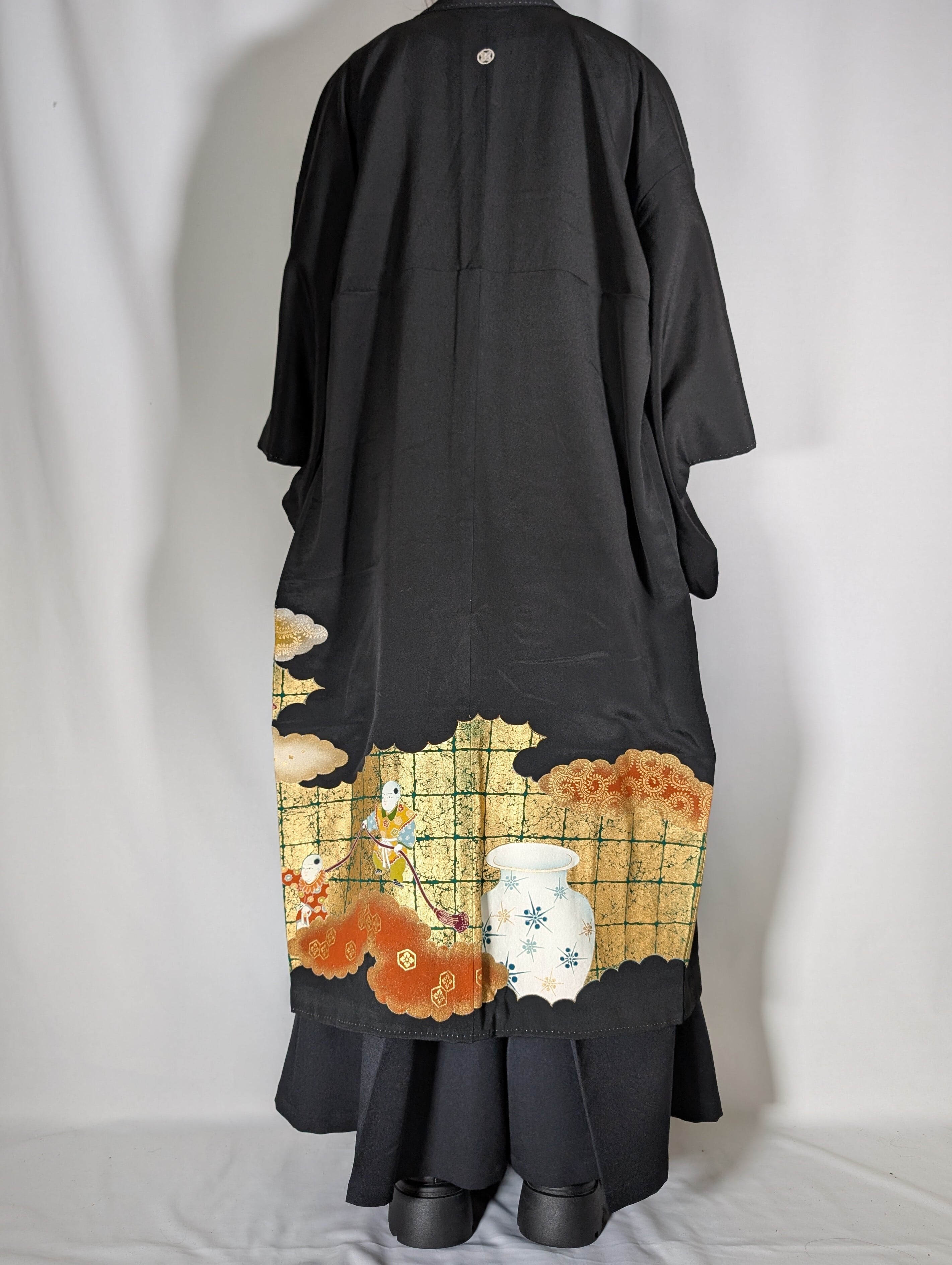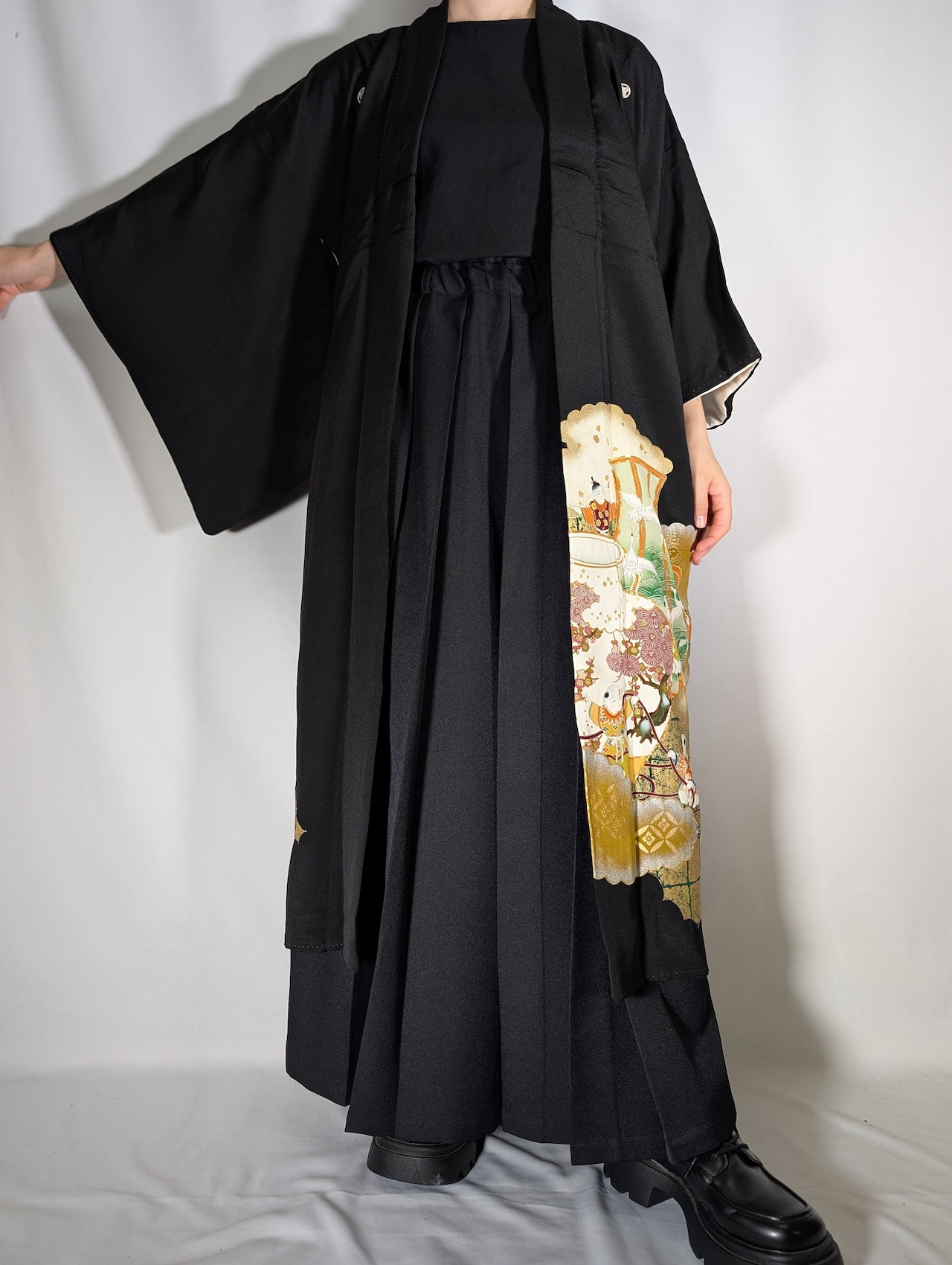 【14473】 着物リメイク 黒留袖 ロングコート kimono tomesode remake long coat black