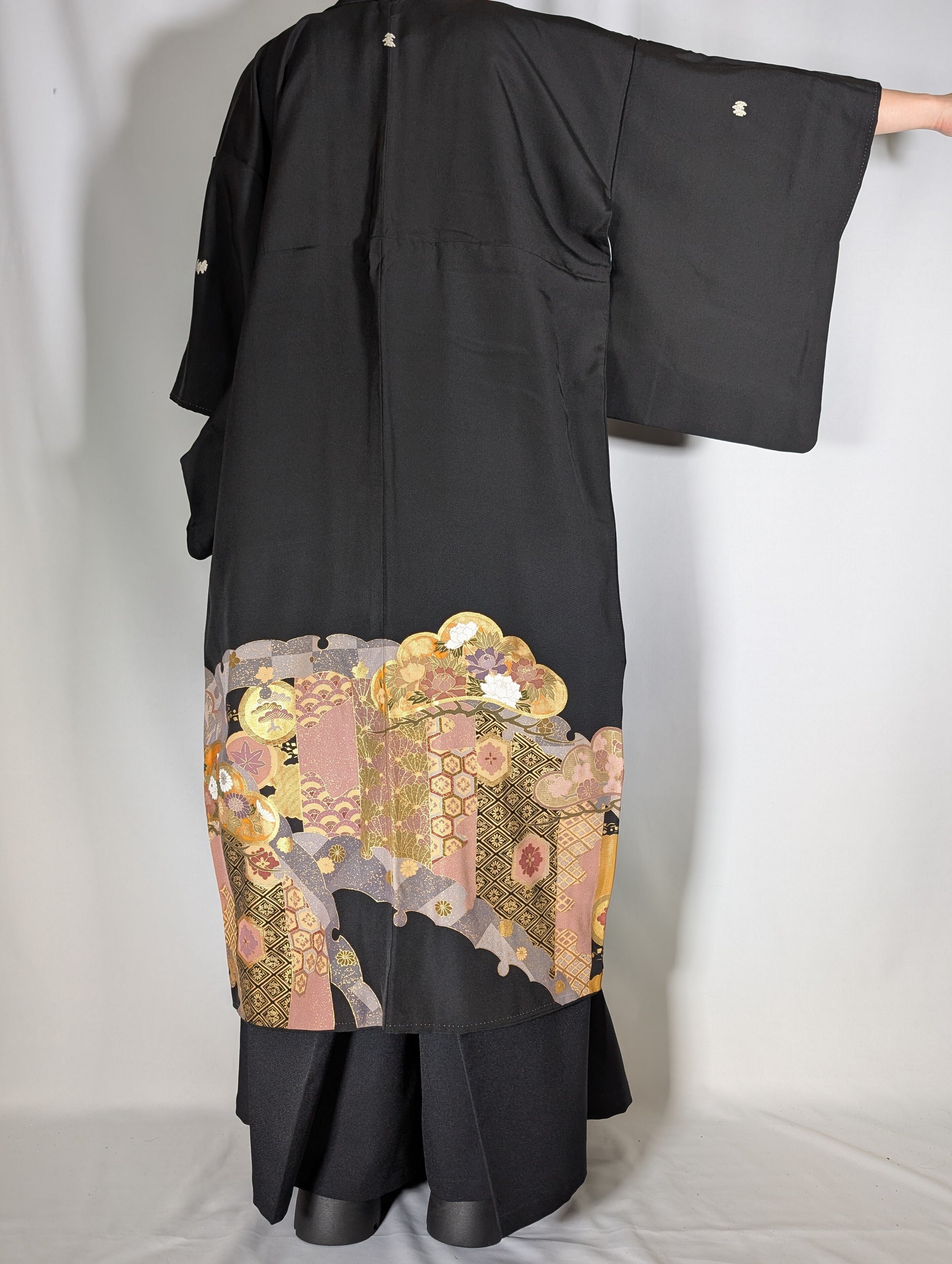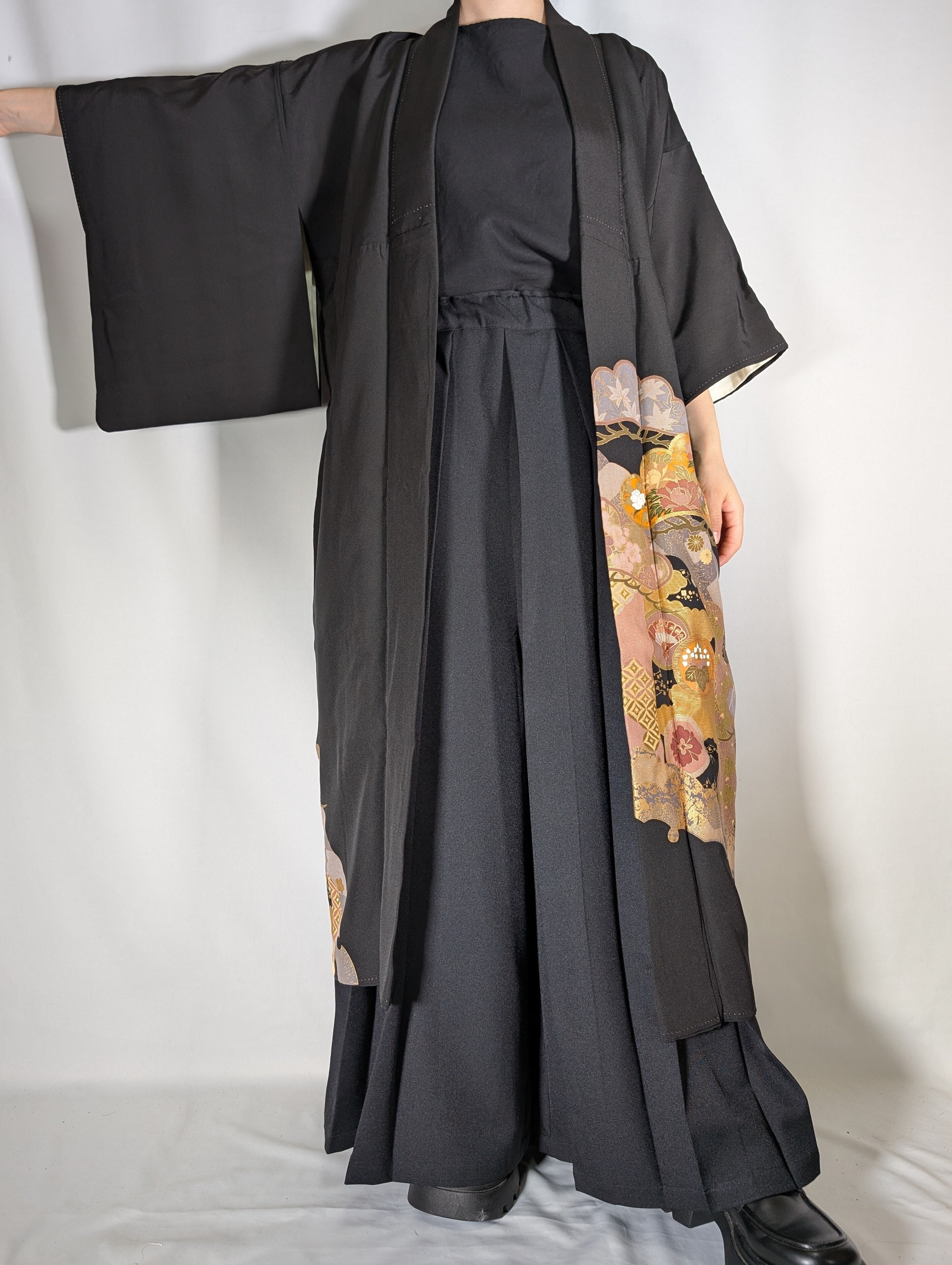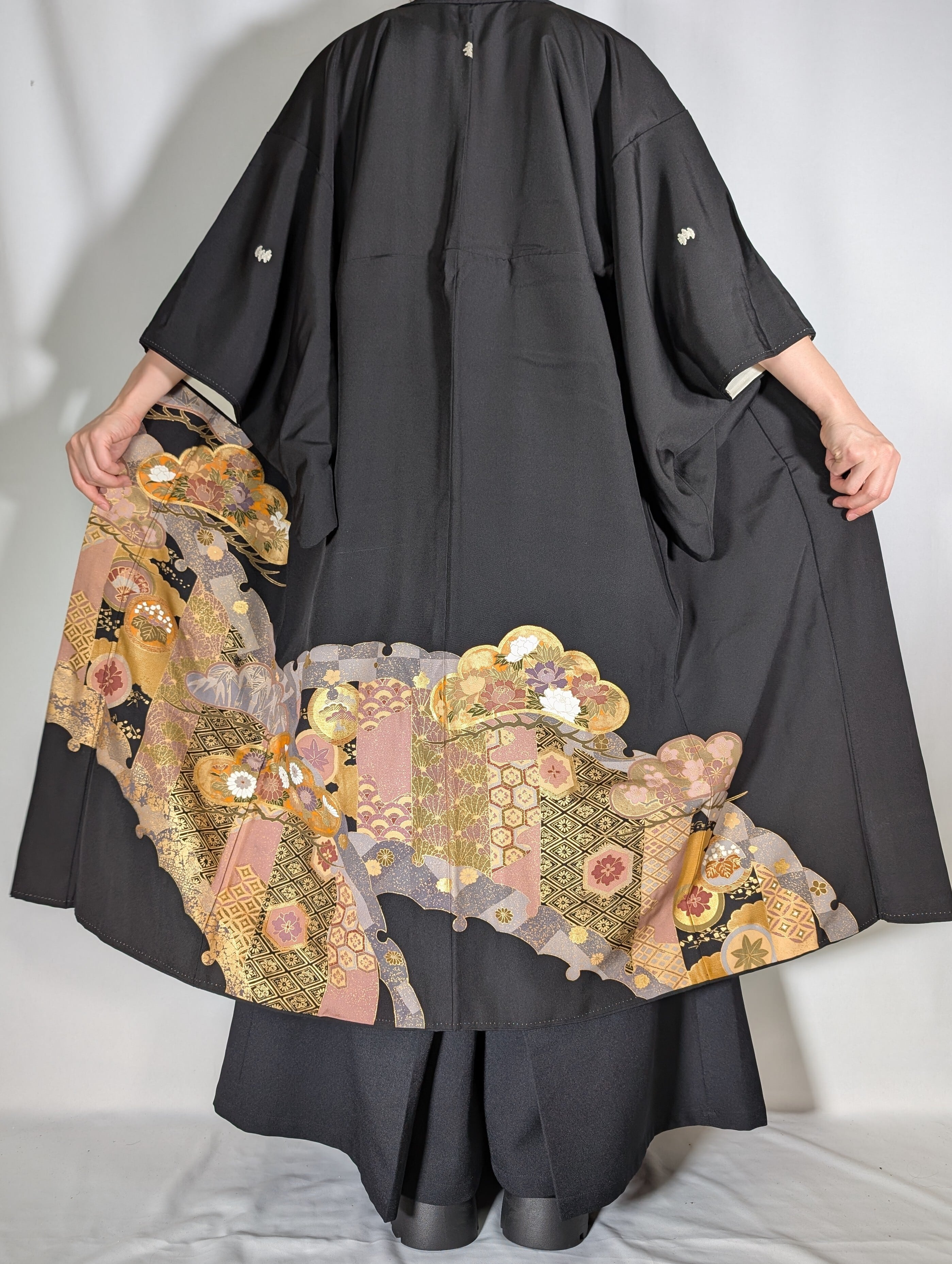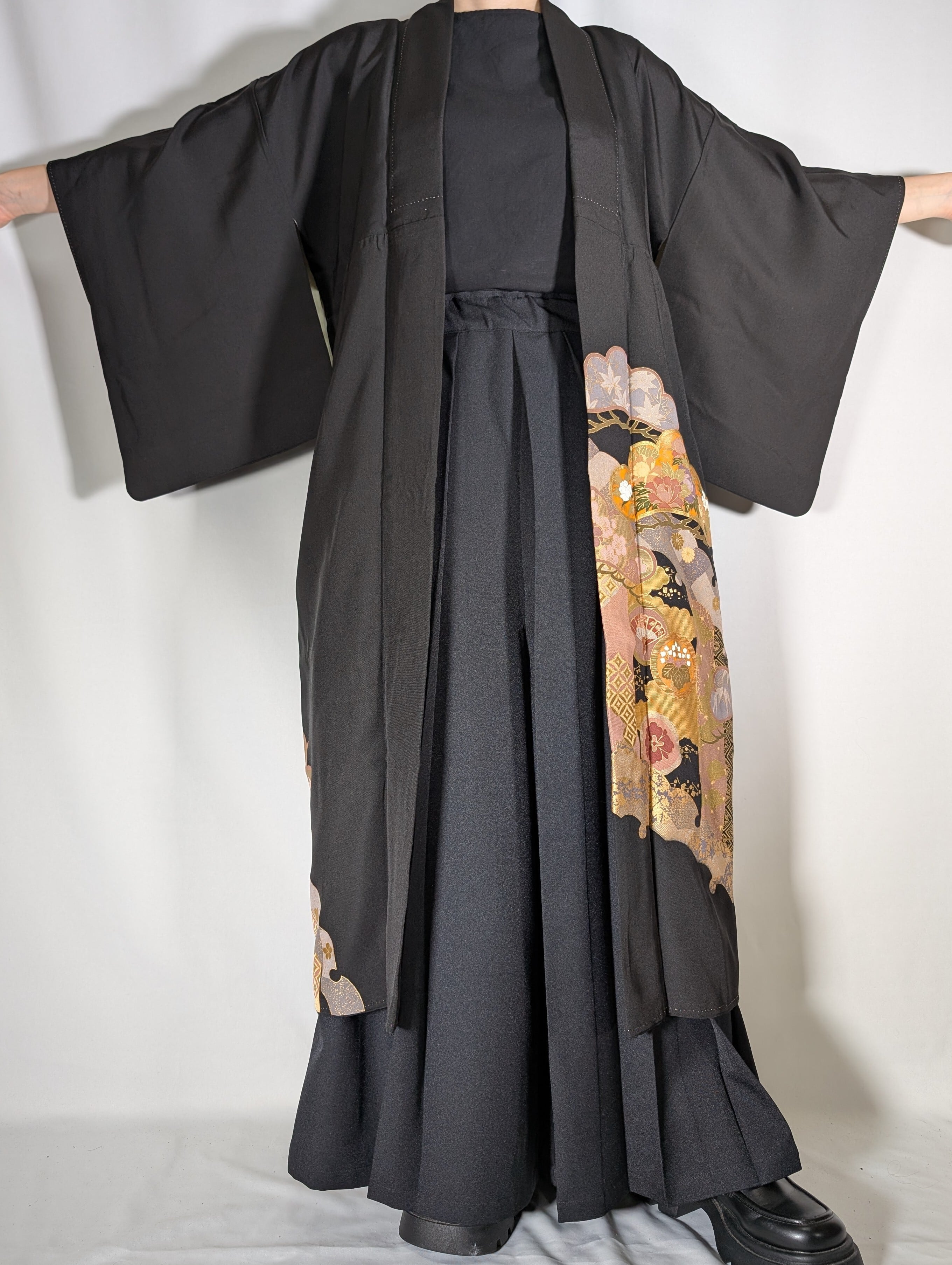 【14483】 着物リメイク 黒留袖 ロングコート kimono tomesode remake long coat black