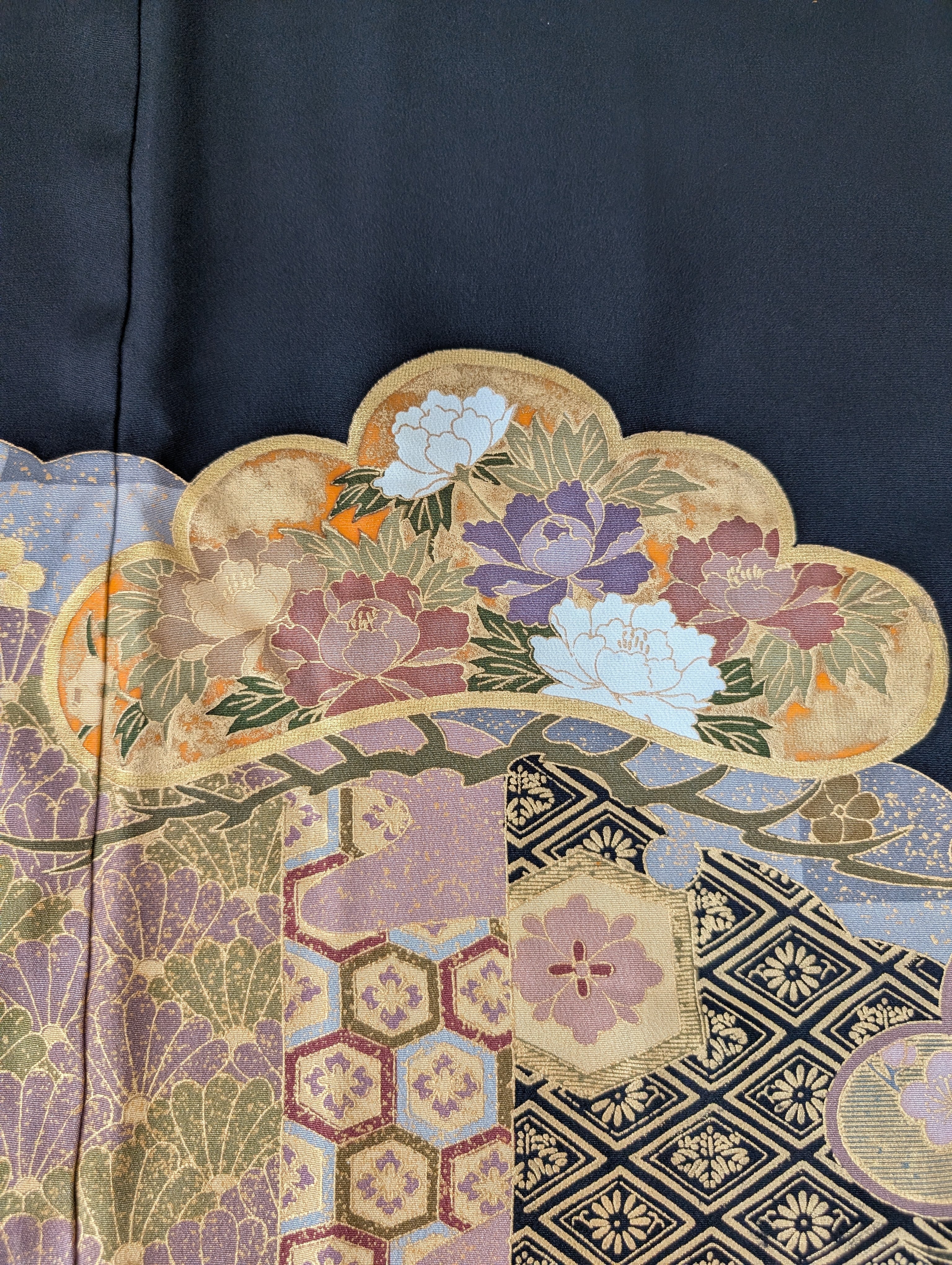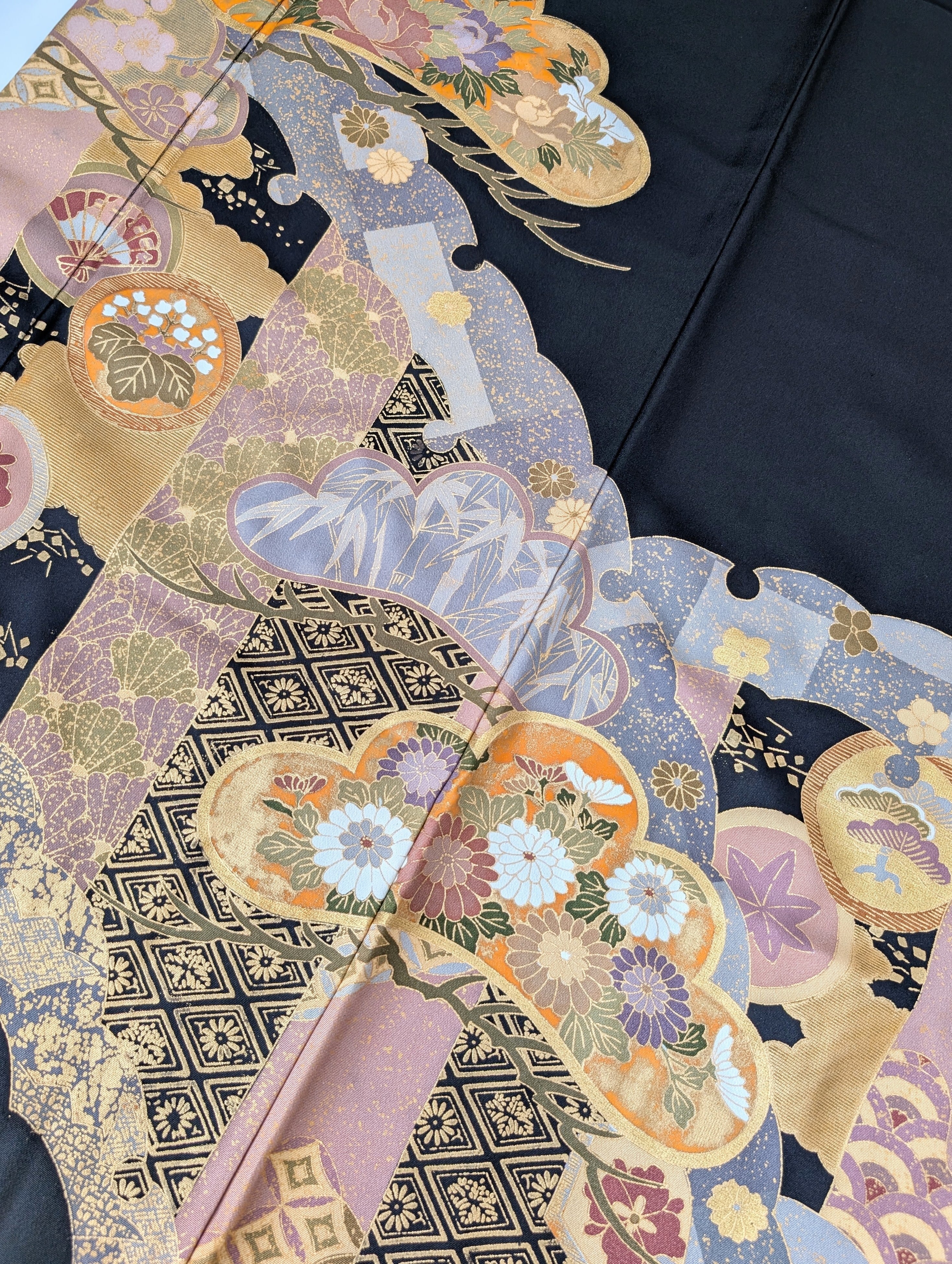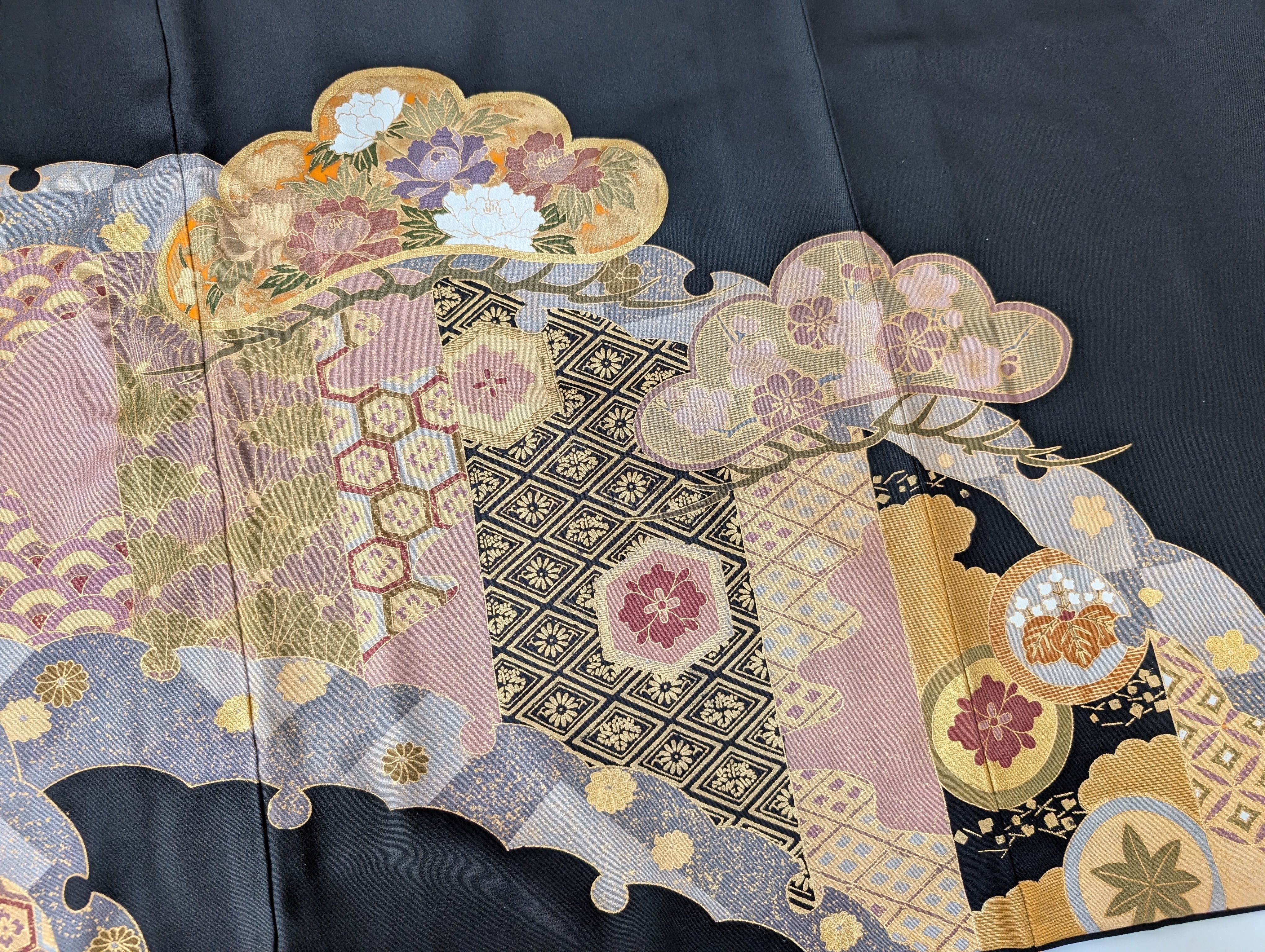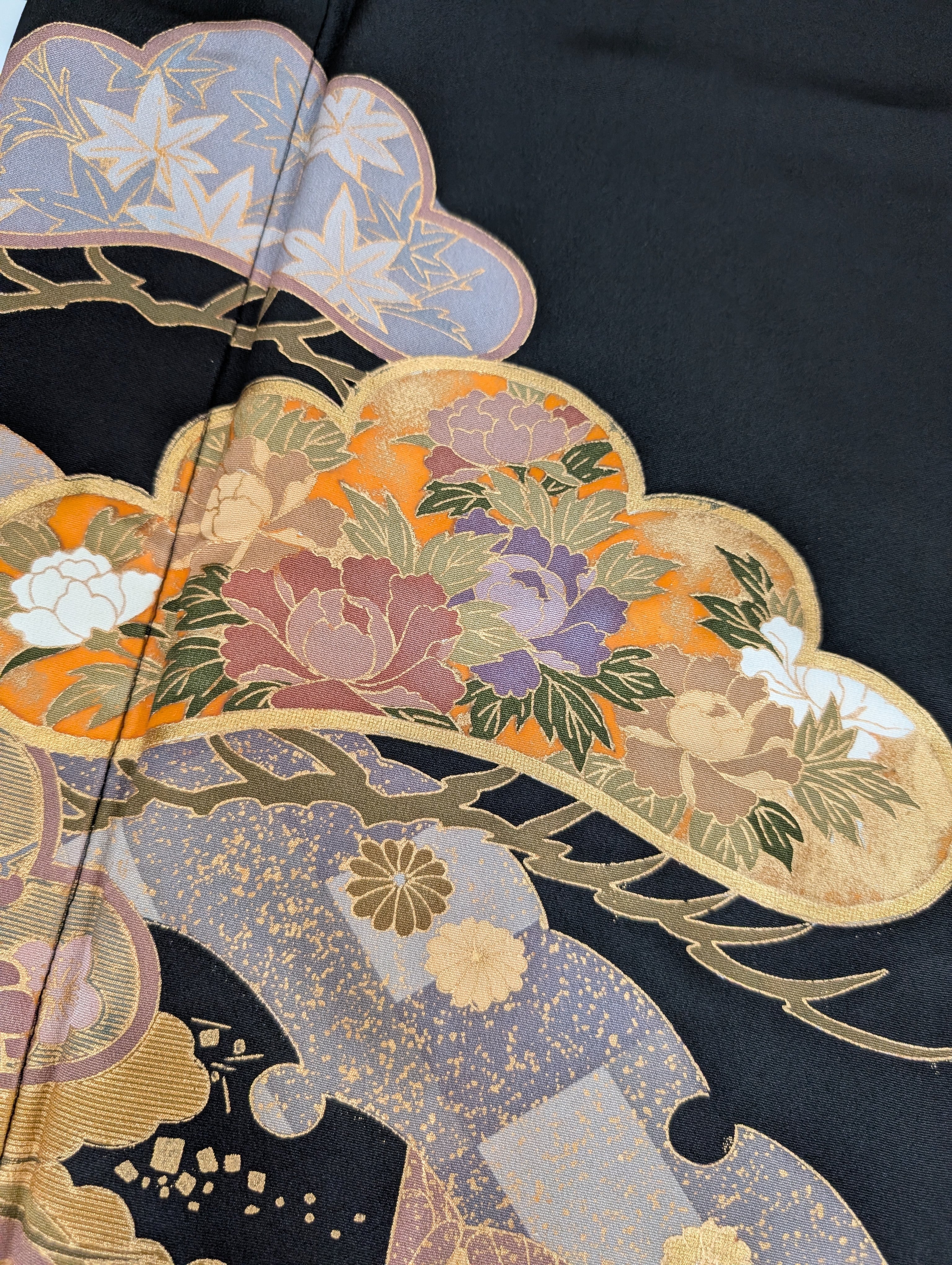 【14483】 着物リメイク 黒留袖 ロングコート kimono tomesode remake long coat black