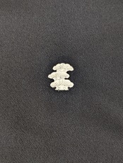 デザインは普段のコーデに馴染みやすいように、襟(えり)部分はストレートに、また、派手で豪華な裾(すそ)模様はカットせず全て残しています。