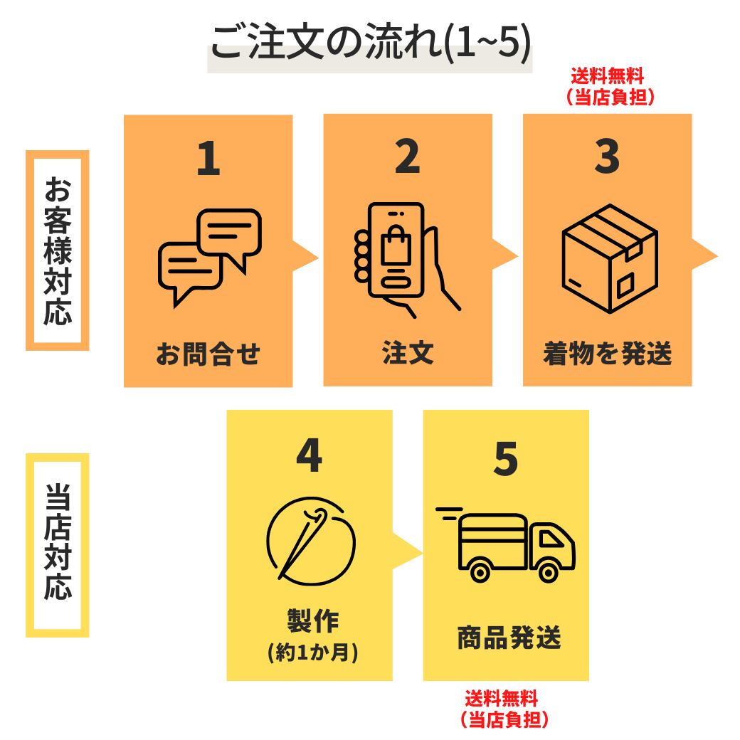 ※製作期間の目安:お着物到着から約1か月(時期により前後いたしますので、お問い合わせの際にご確認ください)