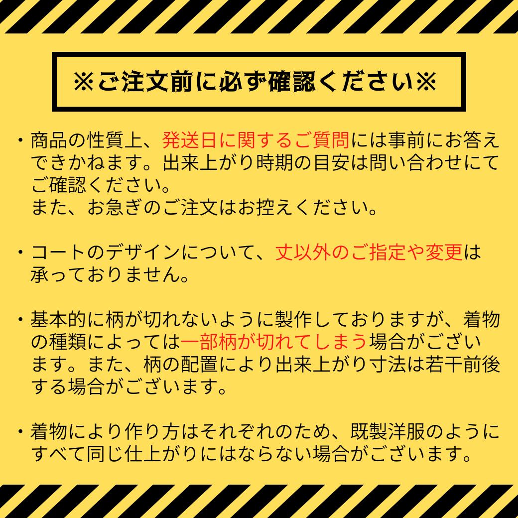 ・コートのデザインについて、丈以外のご指定や変更は承っておりません。