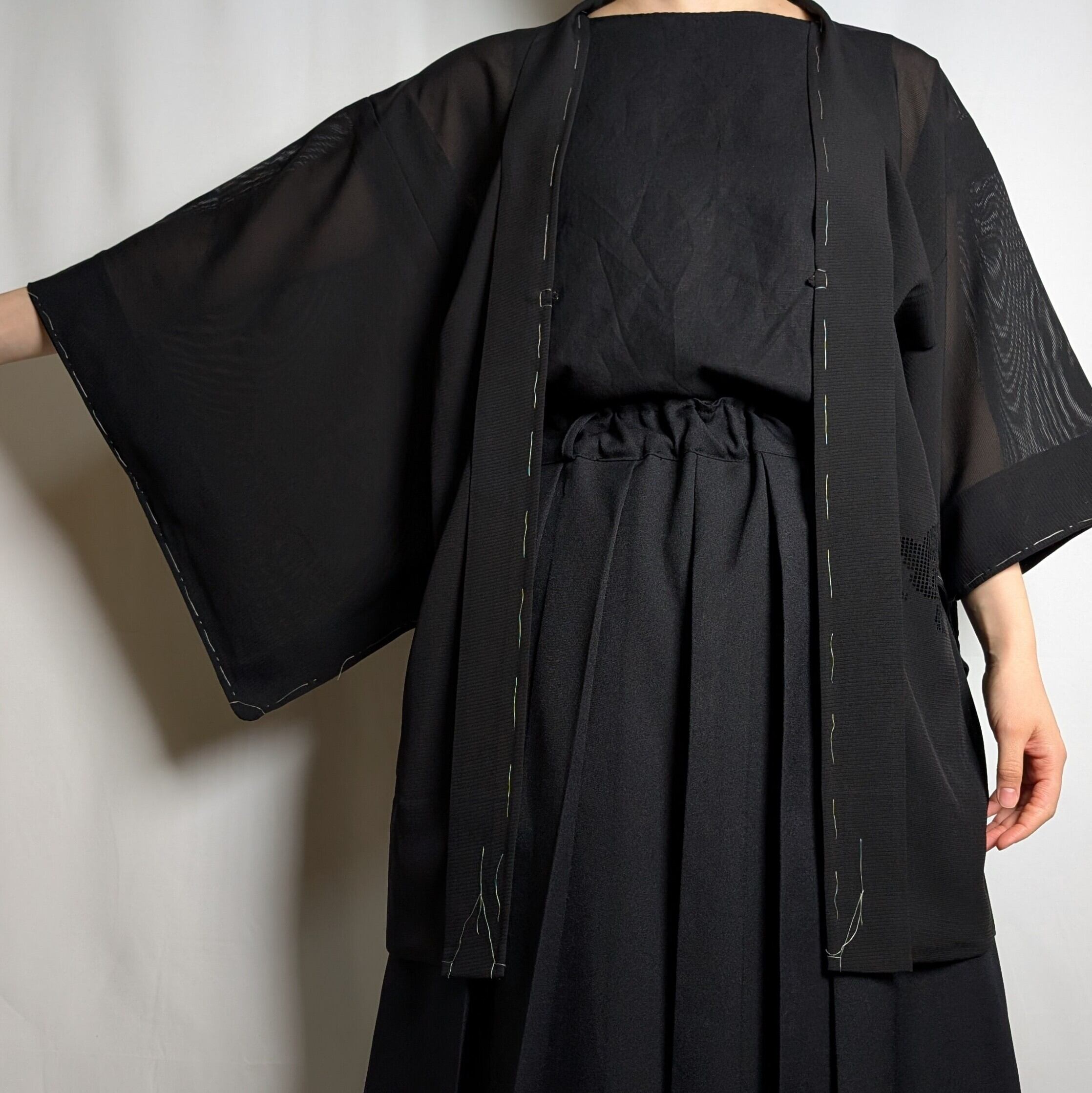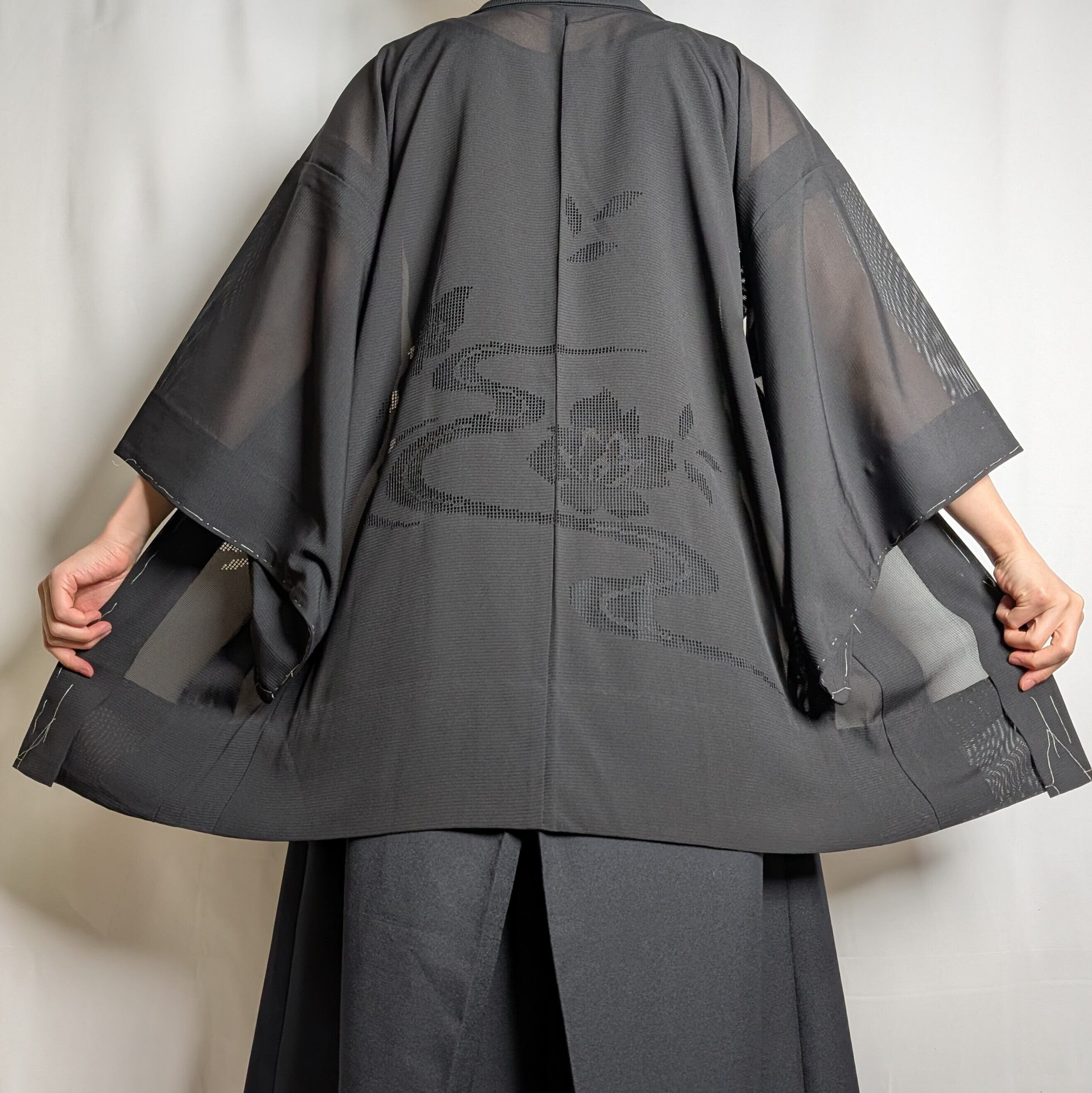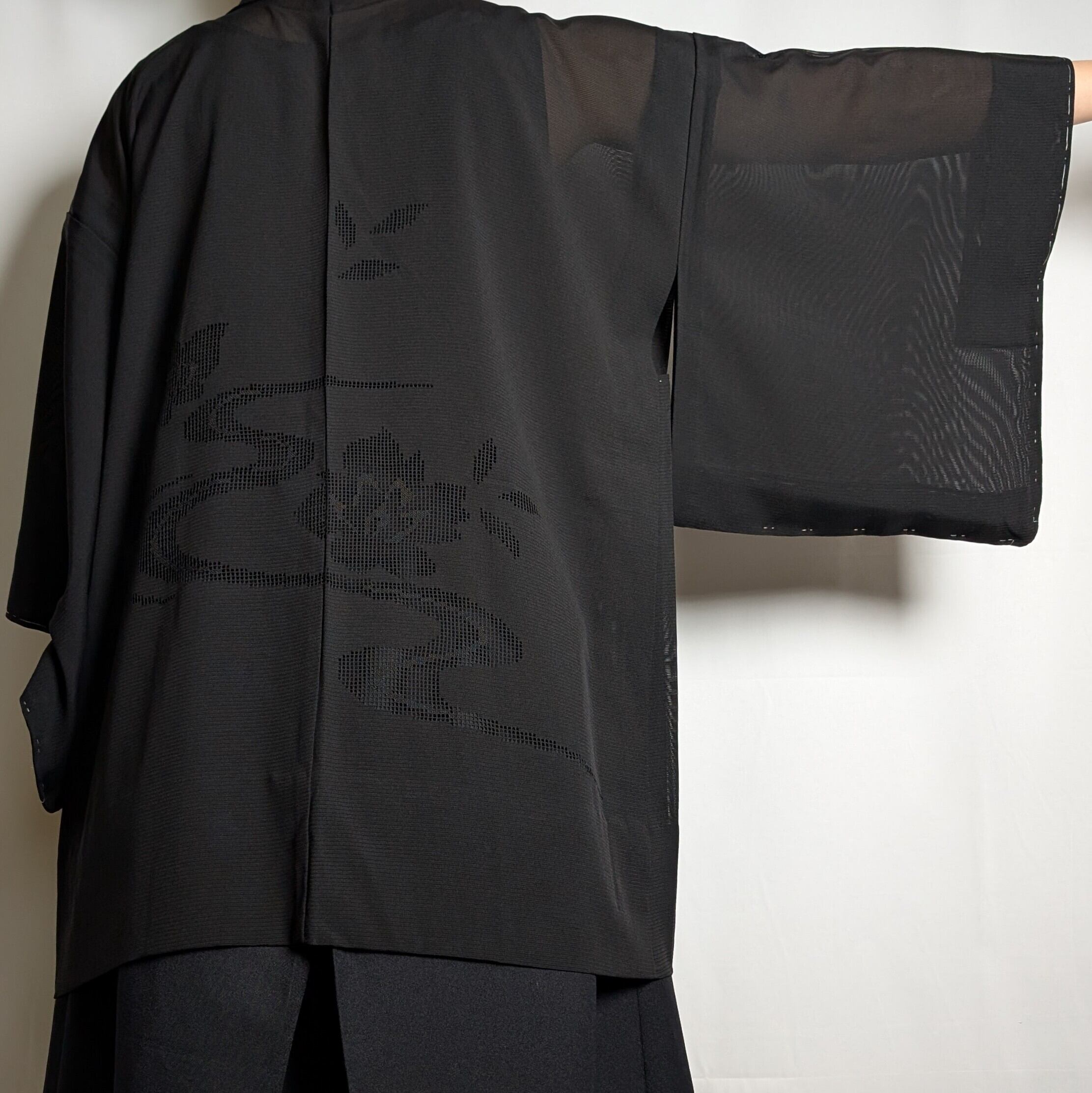 【14491】 ヴィンテージ 夏物羽織 黒 カットワーク 和洋折衷コーデ / Japanese vintage kimono black sheer haori jacket