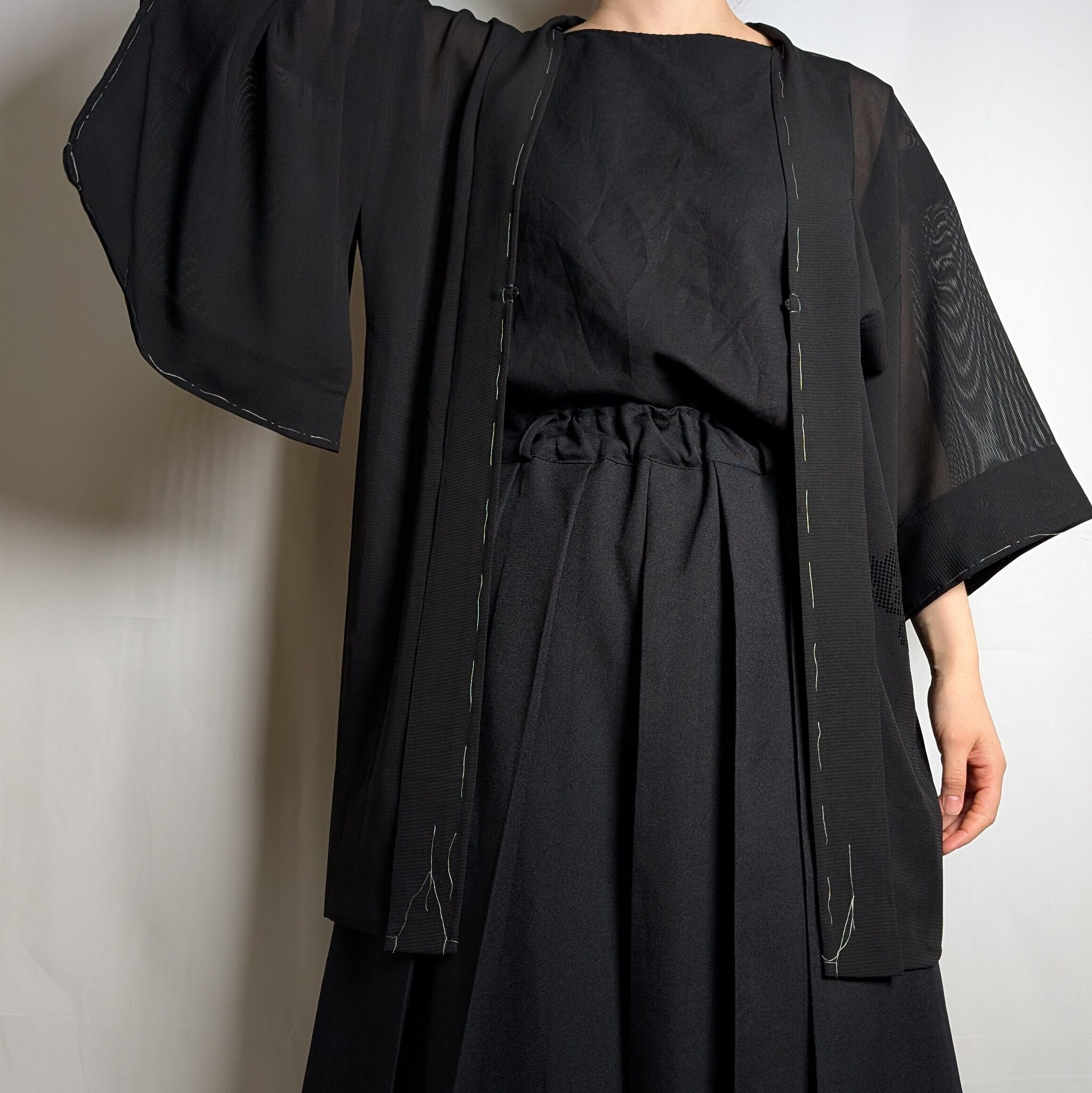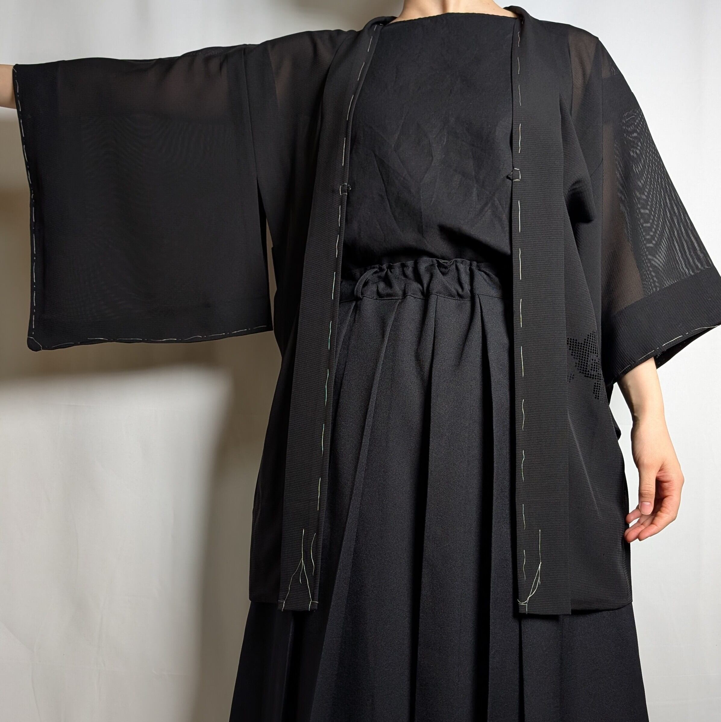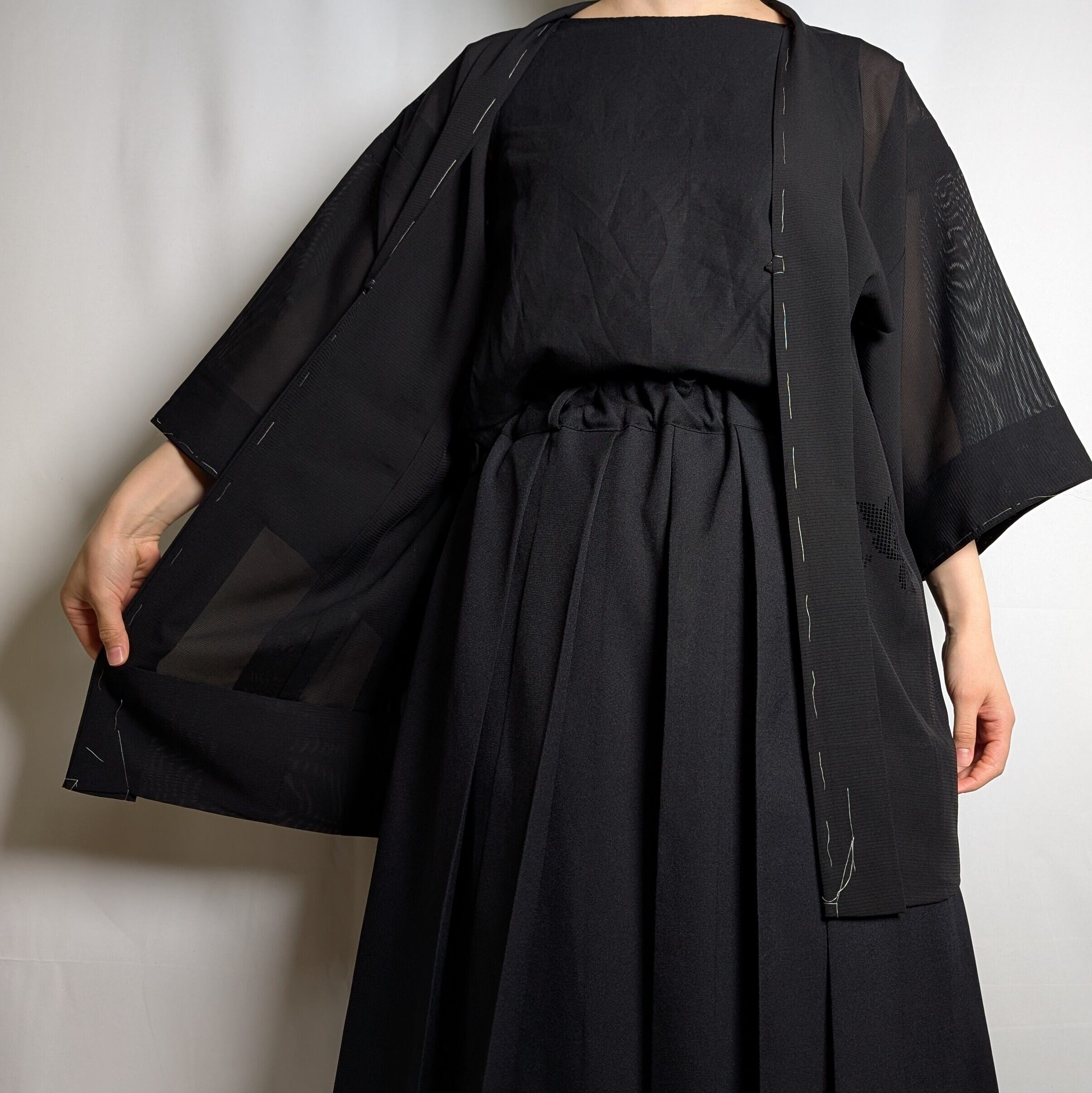 【14491】 ヴィンテージ 夏物羽織 黒 カットワーク 和洋折衷コーデ / Japanese vintage kimono black sheer haori jacket