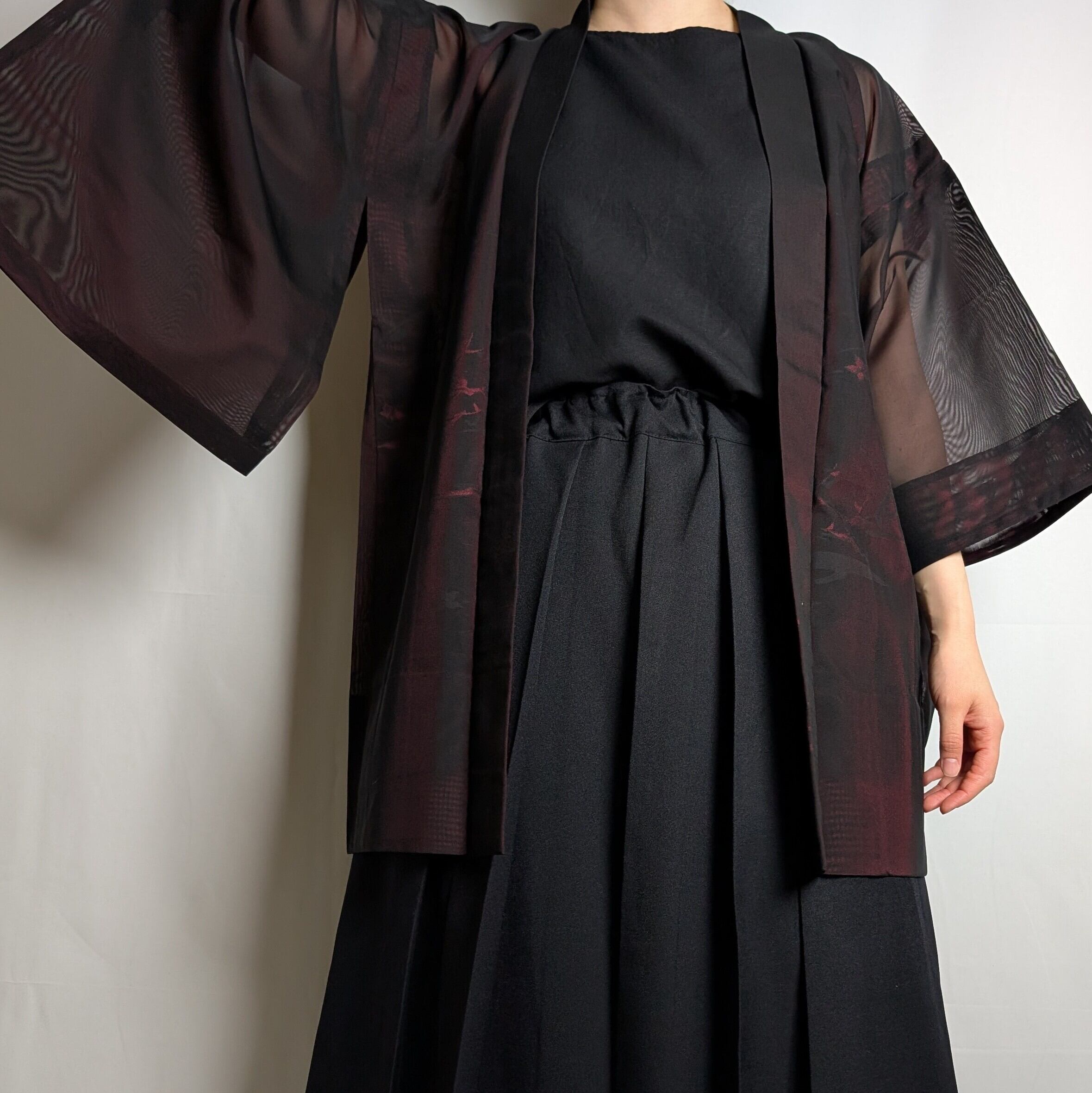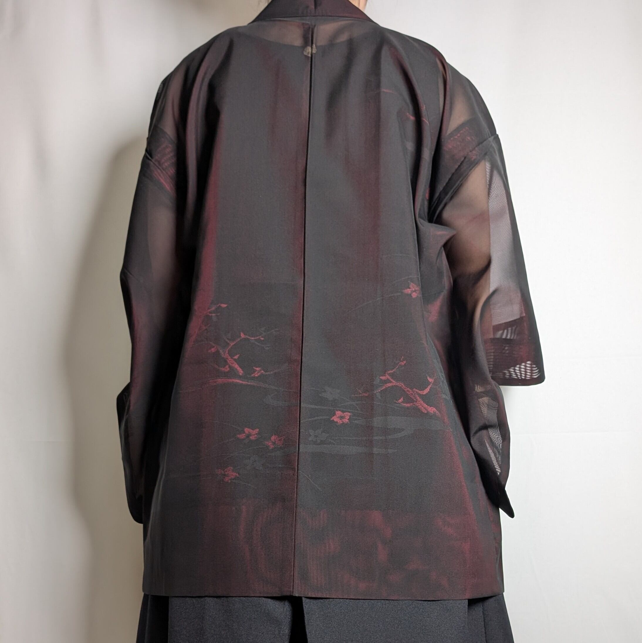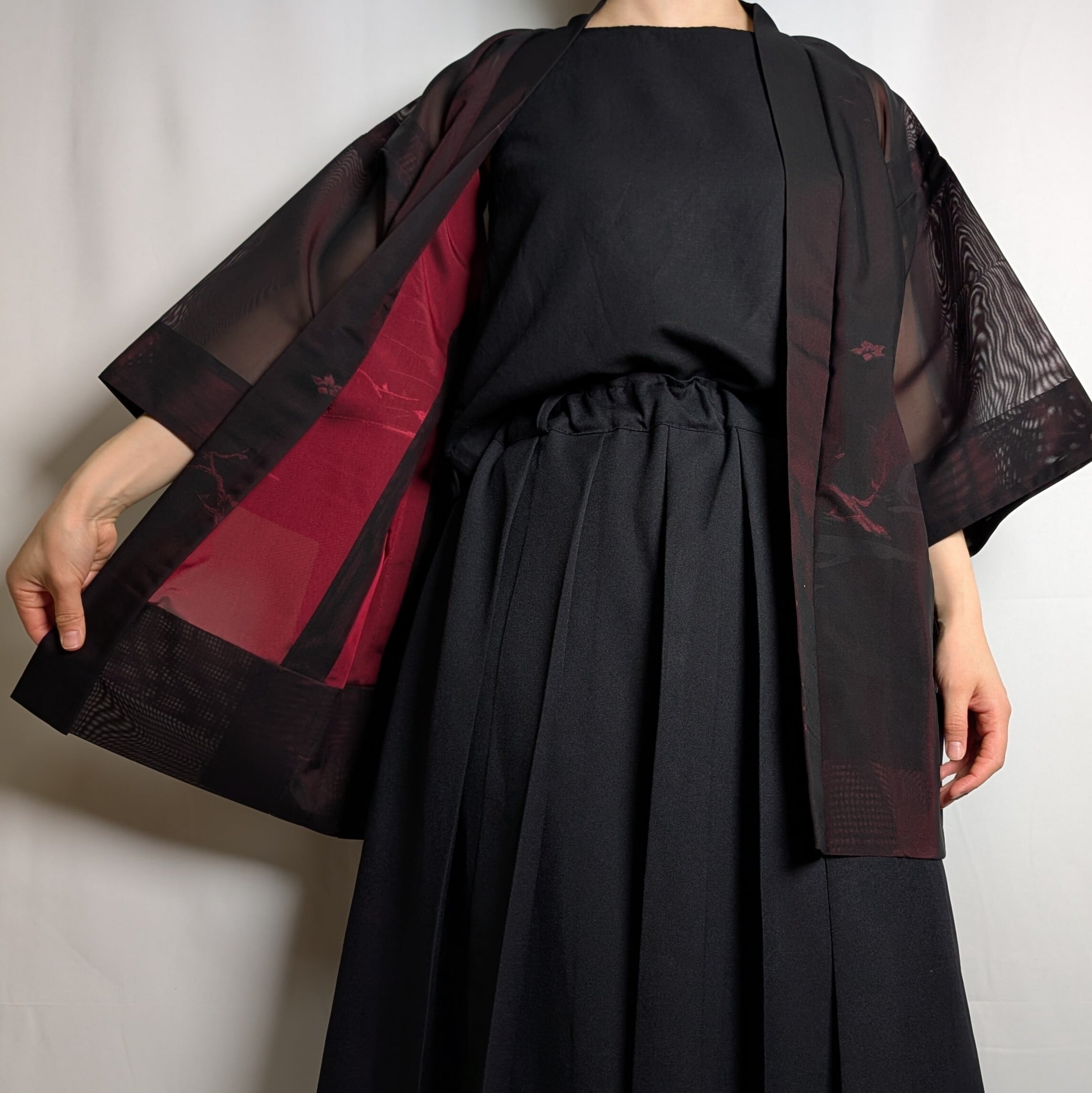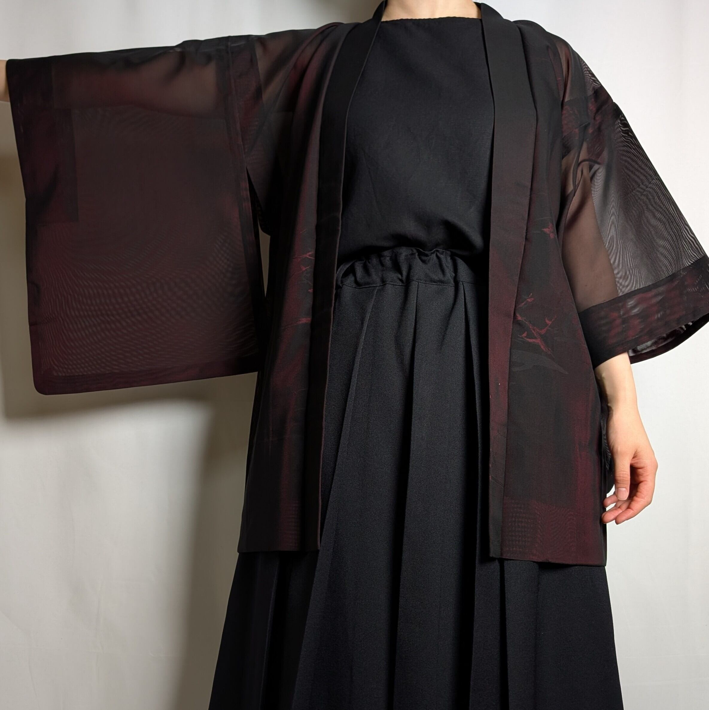 【14495】 ヴィンテージ 夏物羽織 黒 ピンク 和洋折衷コーデ / Japanese vintage kimono black sheer haori jacket
