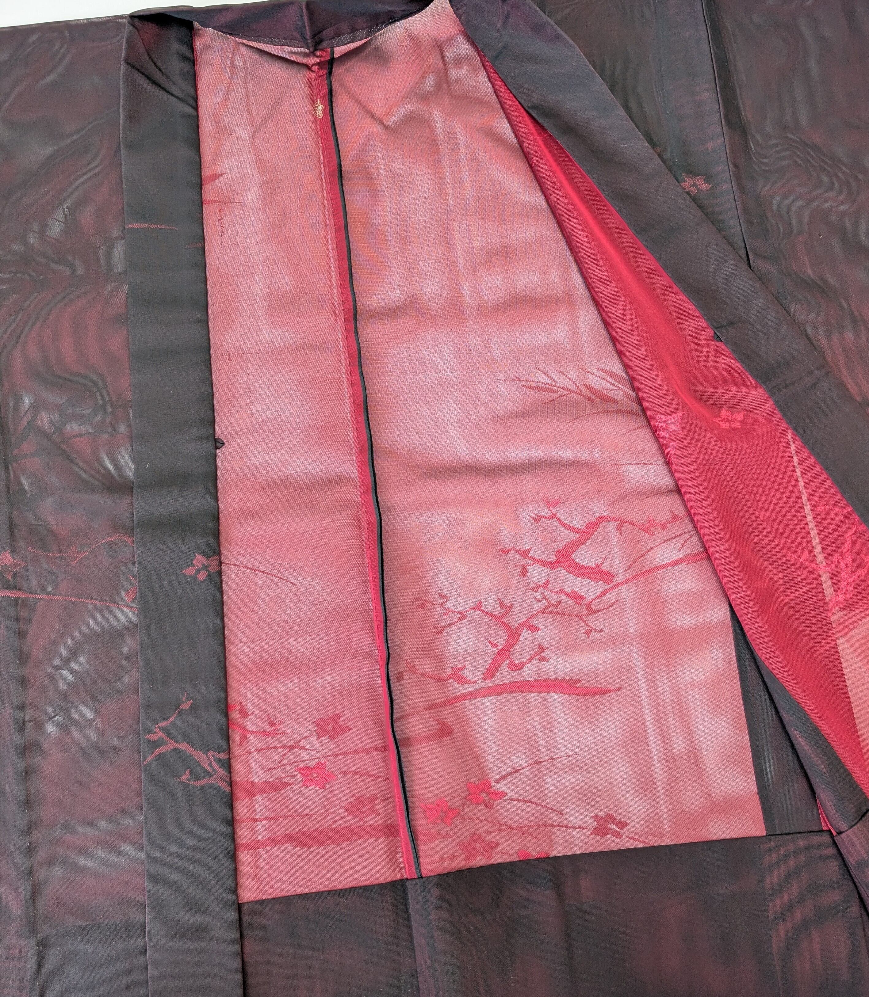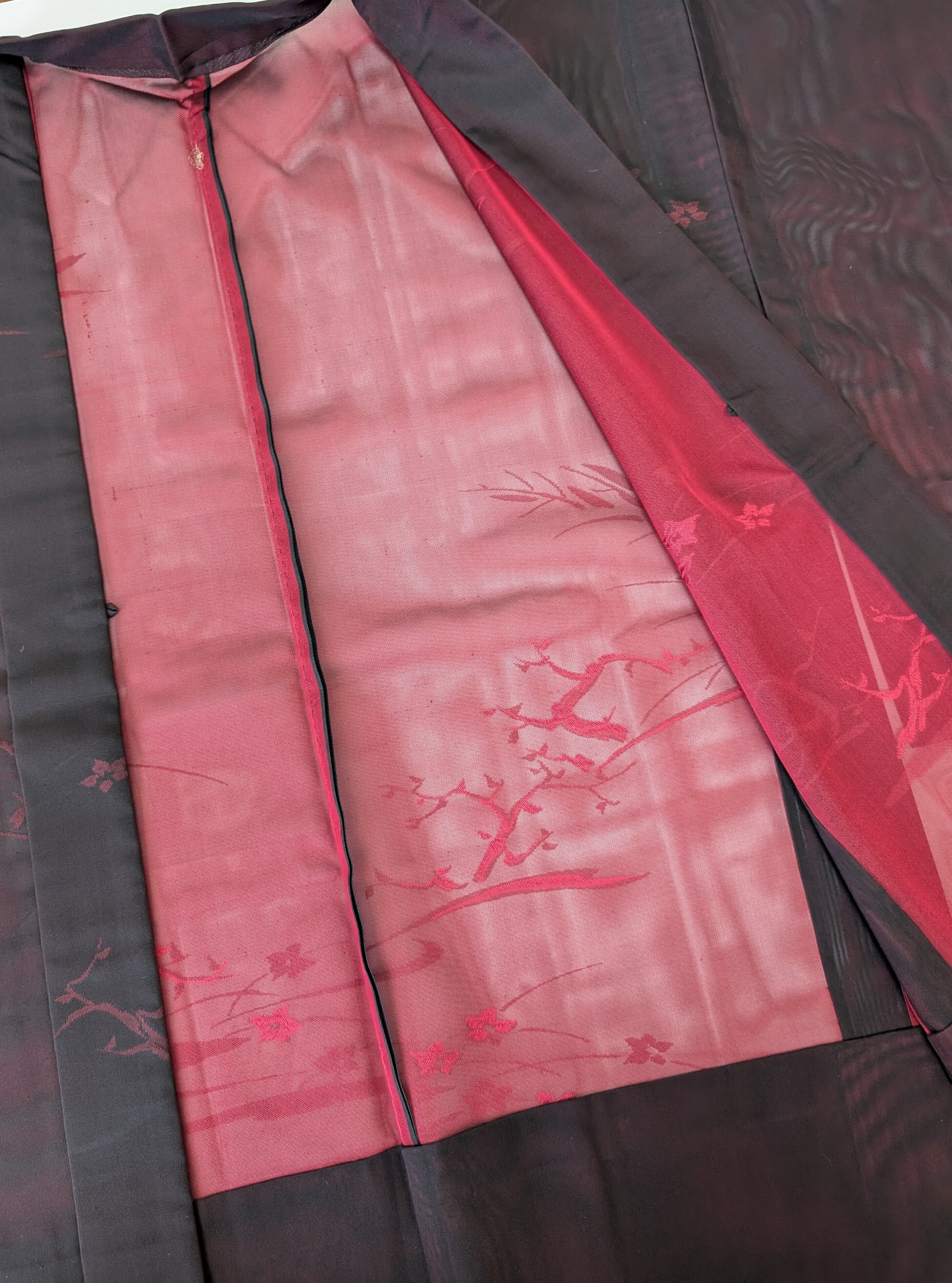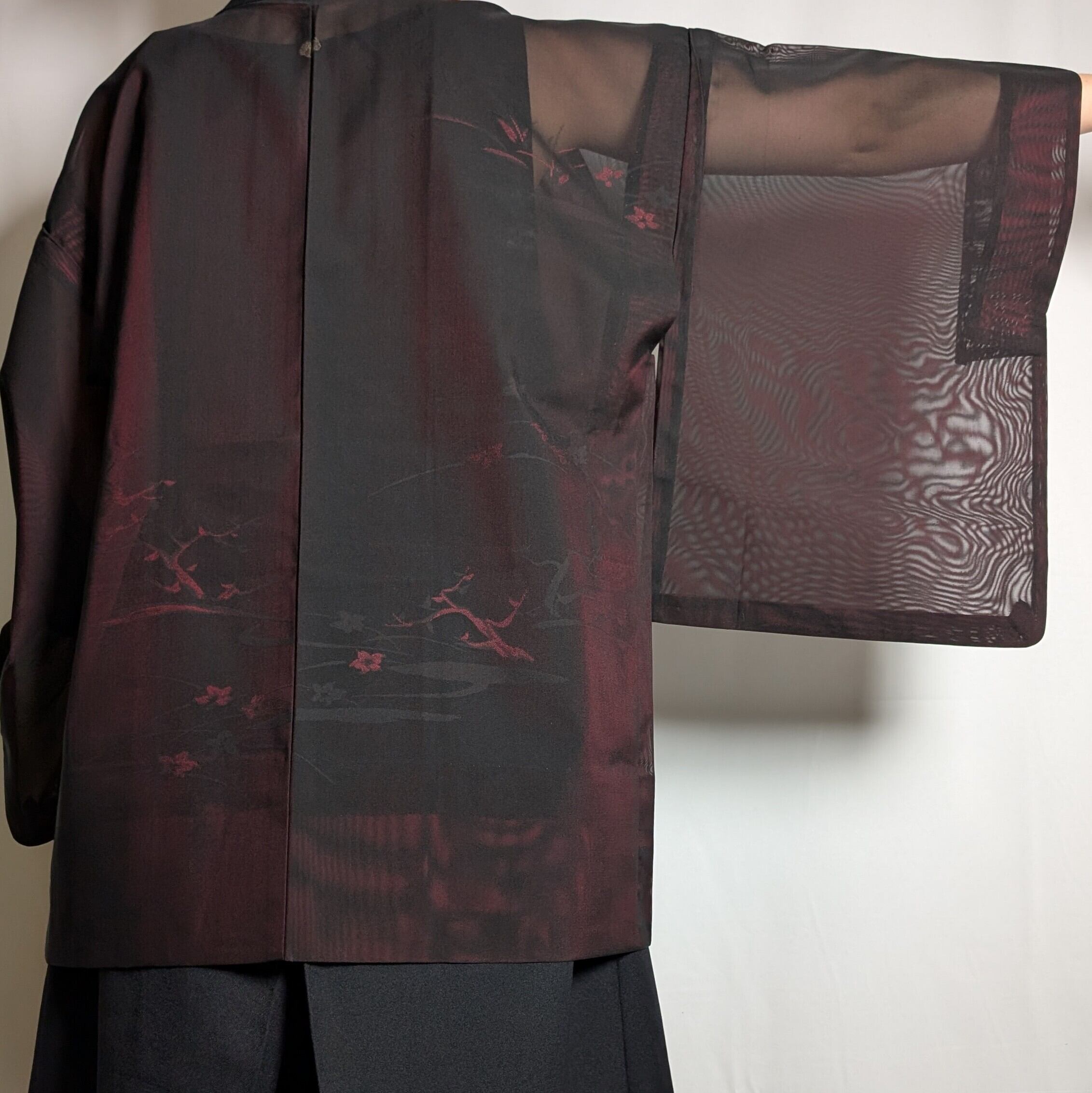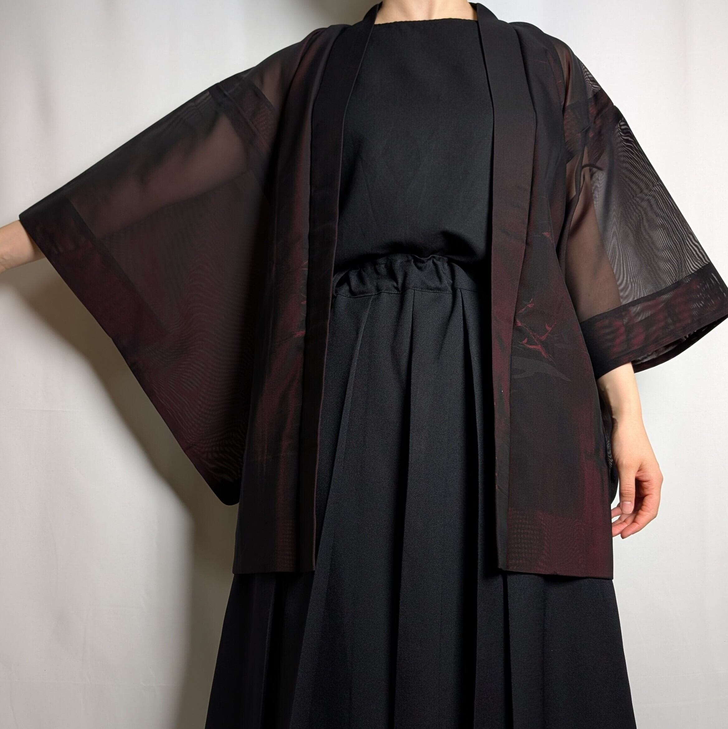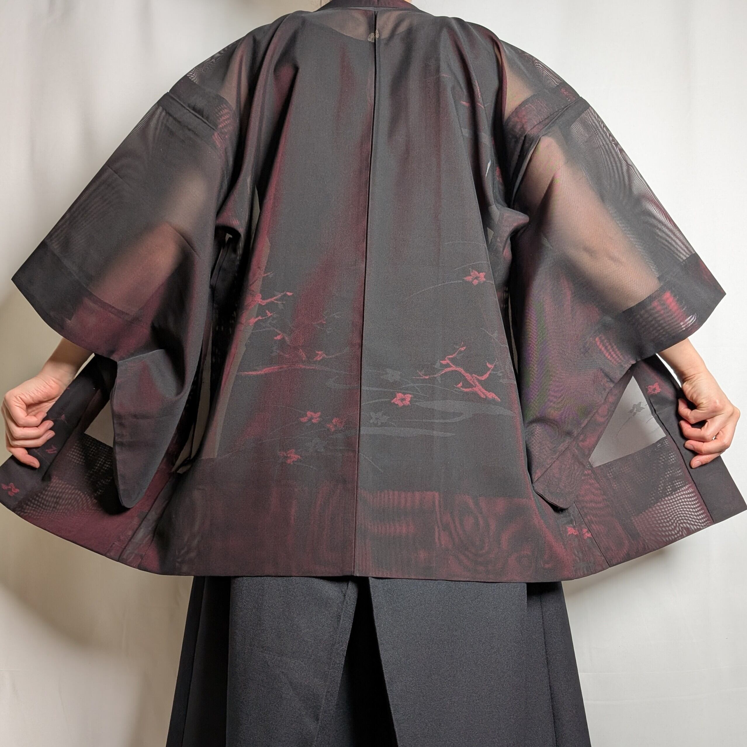 【14495】 ヴィンテージ 夏物羽織 黒 ピンク 和洋折衷コーデ / Japanese vintage kimono black sheer haori jacket