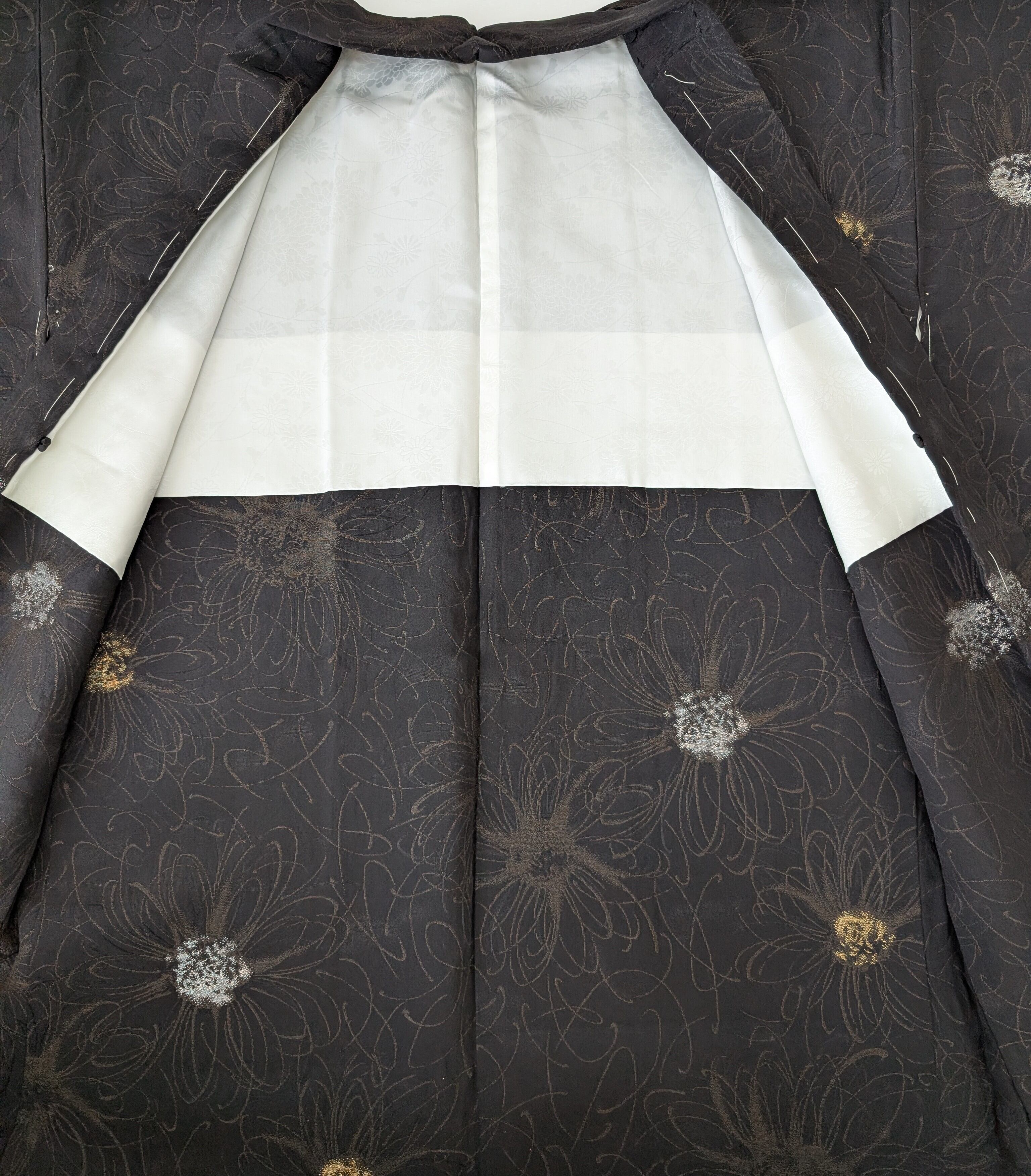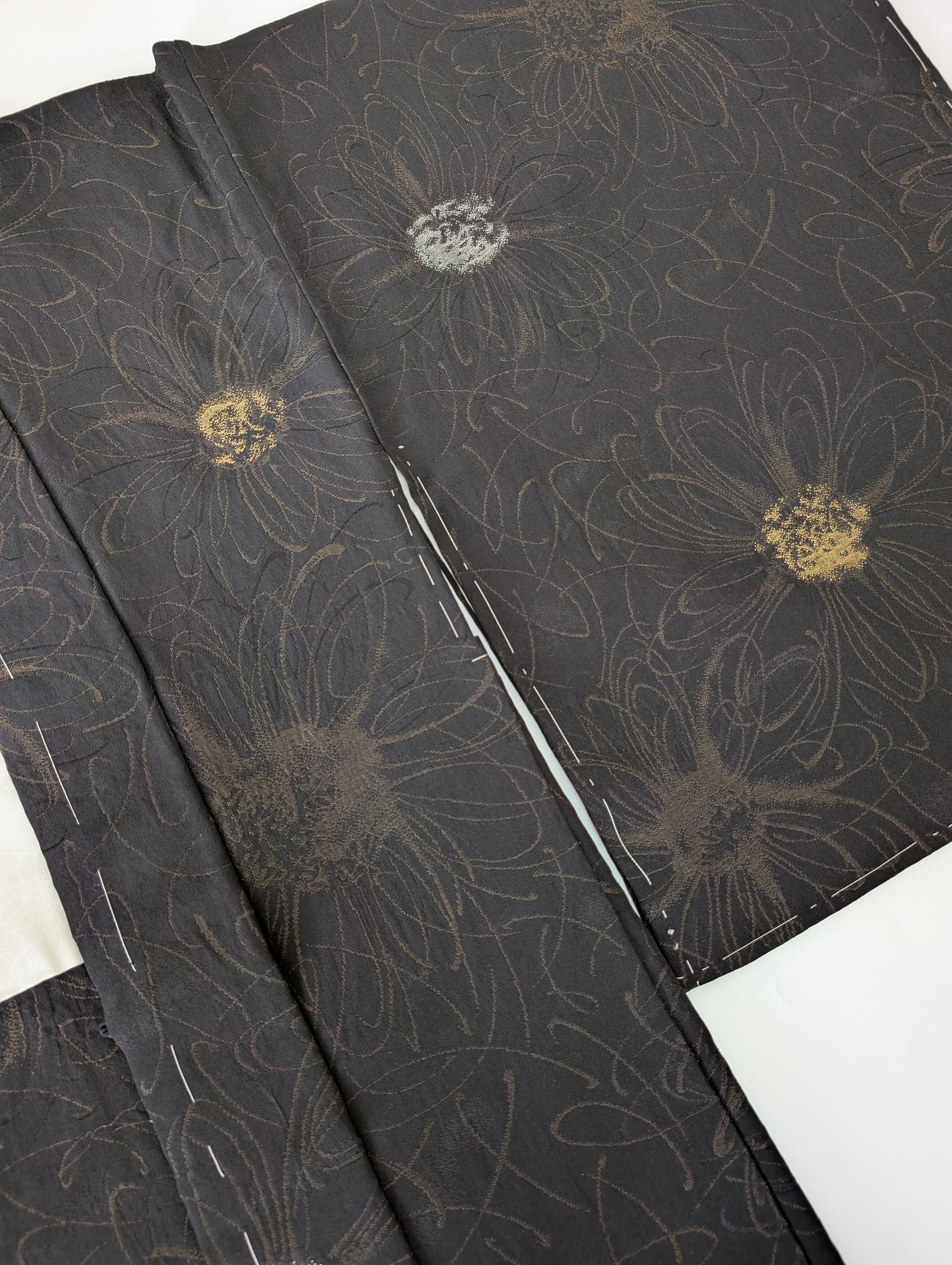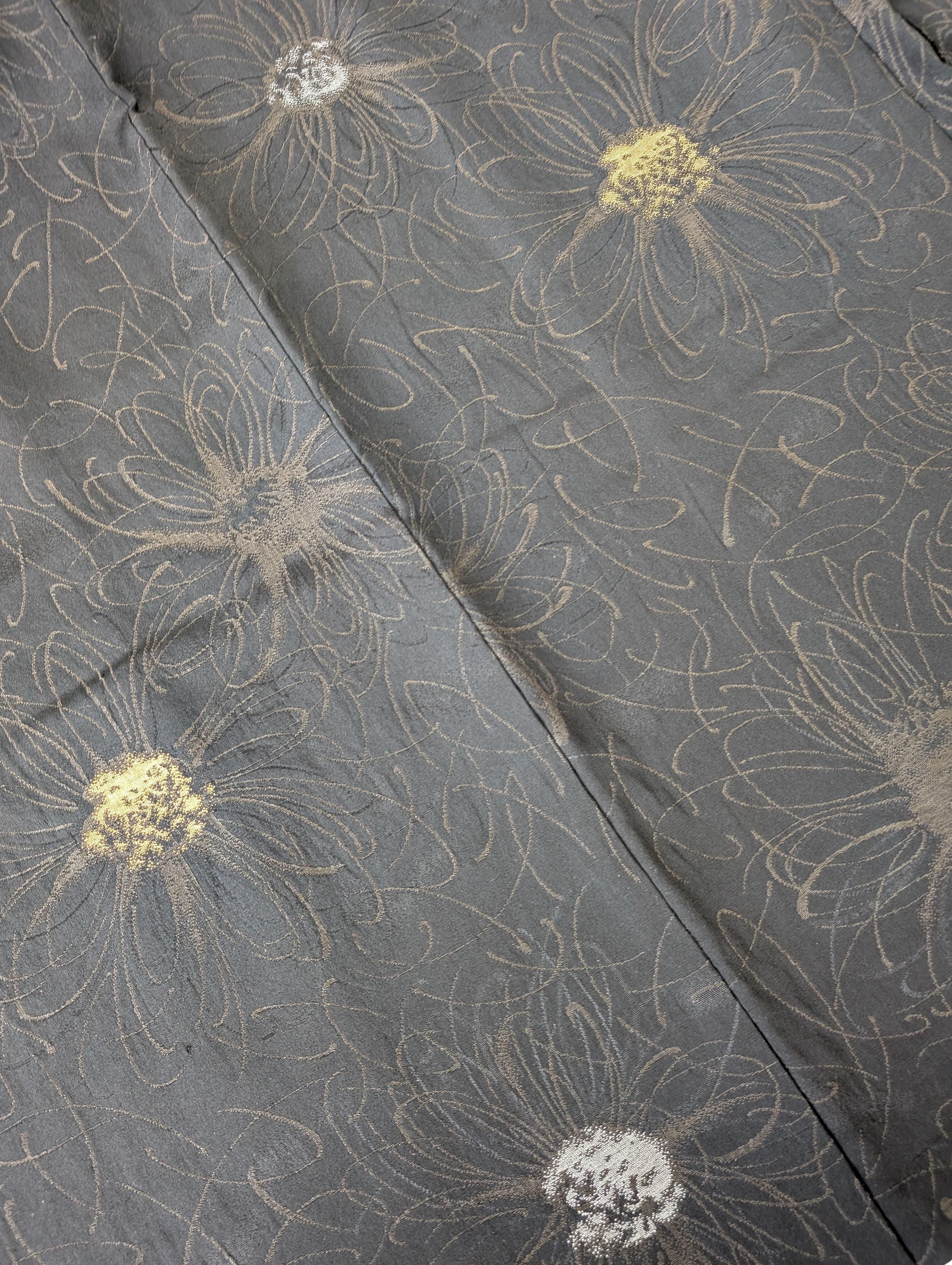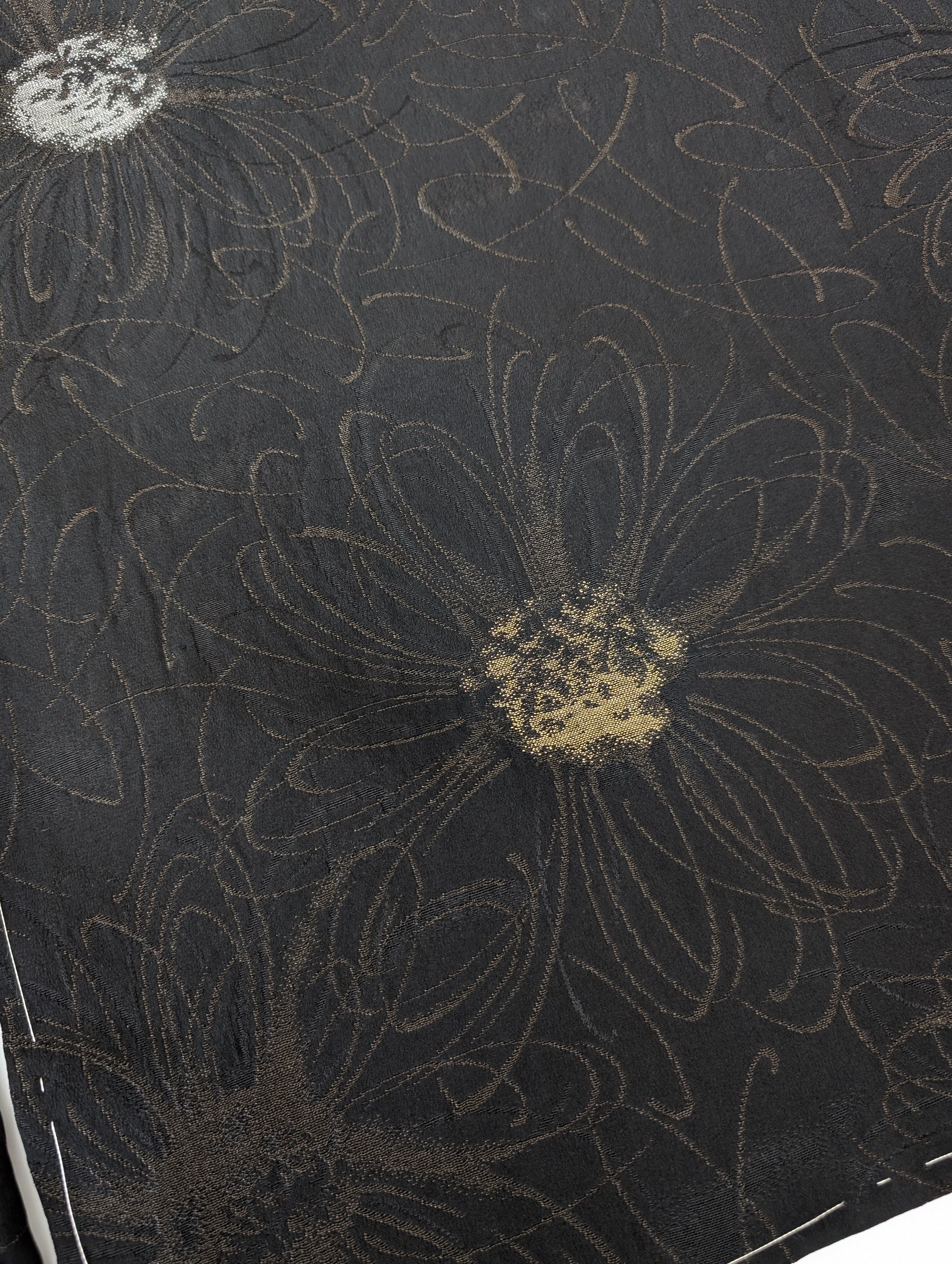 【14500】 ヴィンテージ 黒羽織 織り出し模様 花 金 銀 和洋折衷コーデ / Japanese vintage kimono black haori jacket