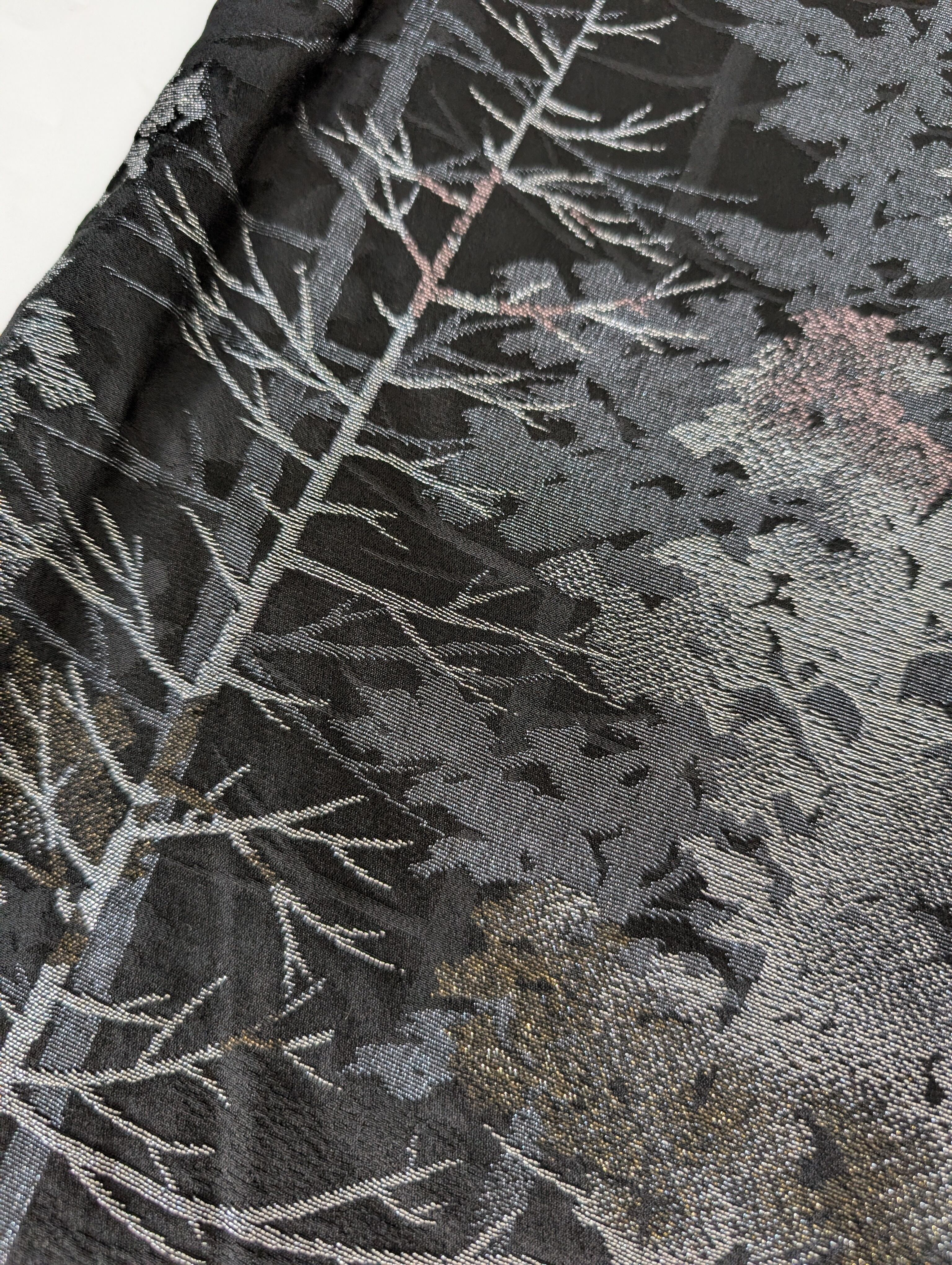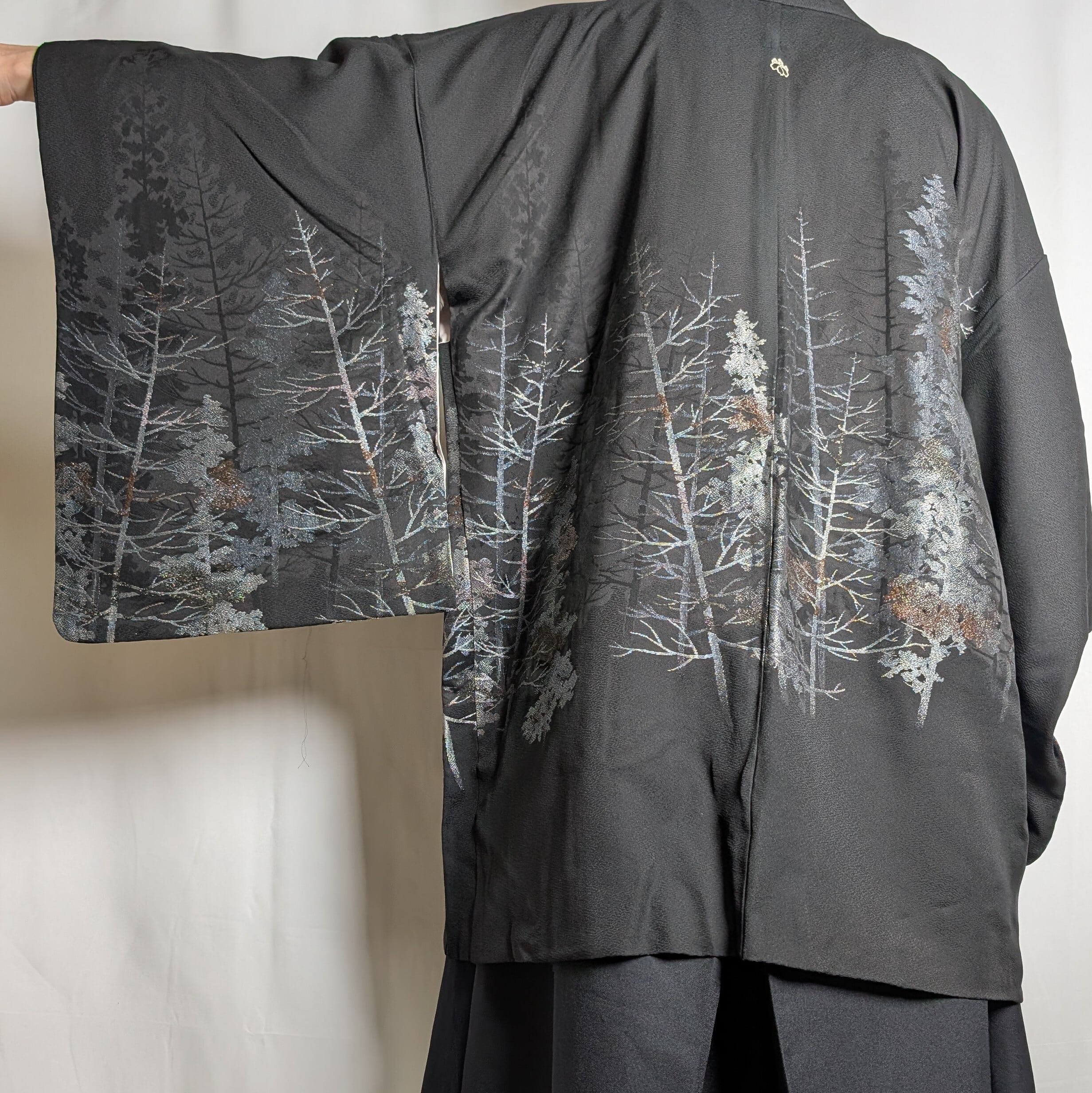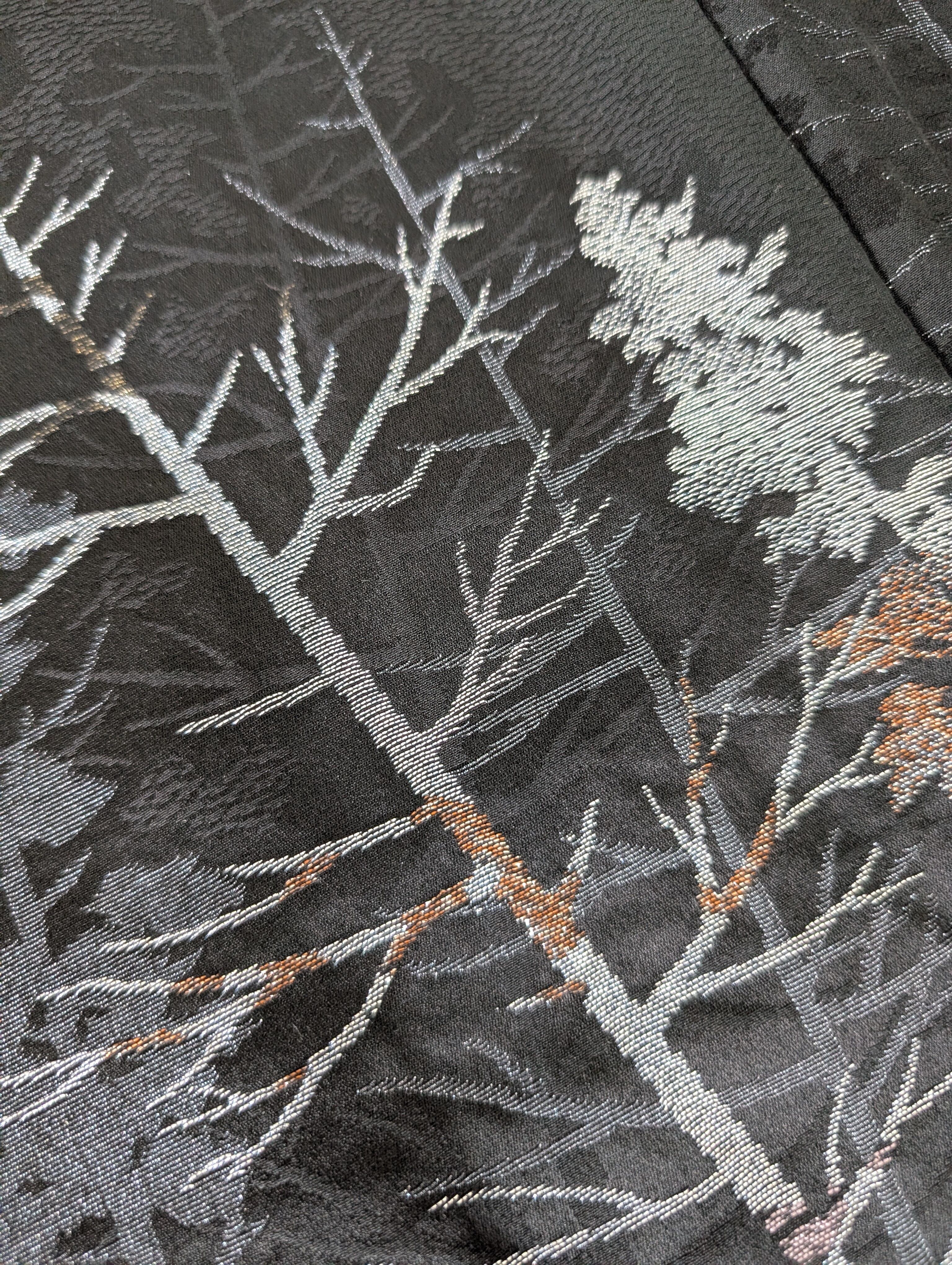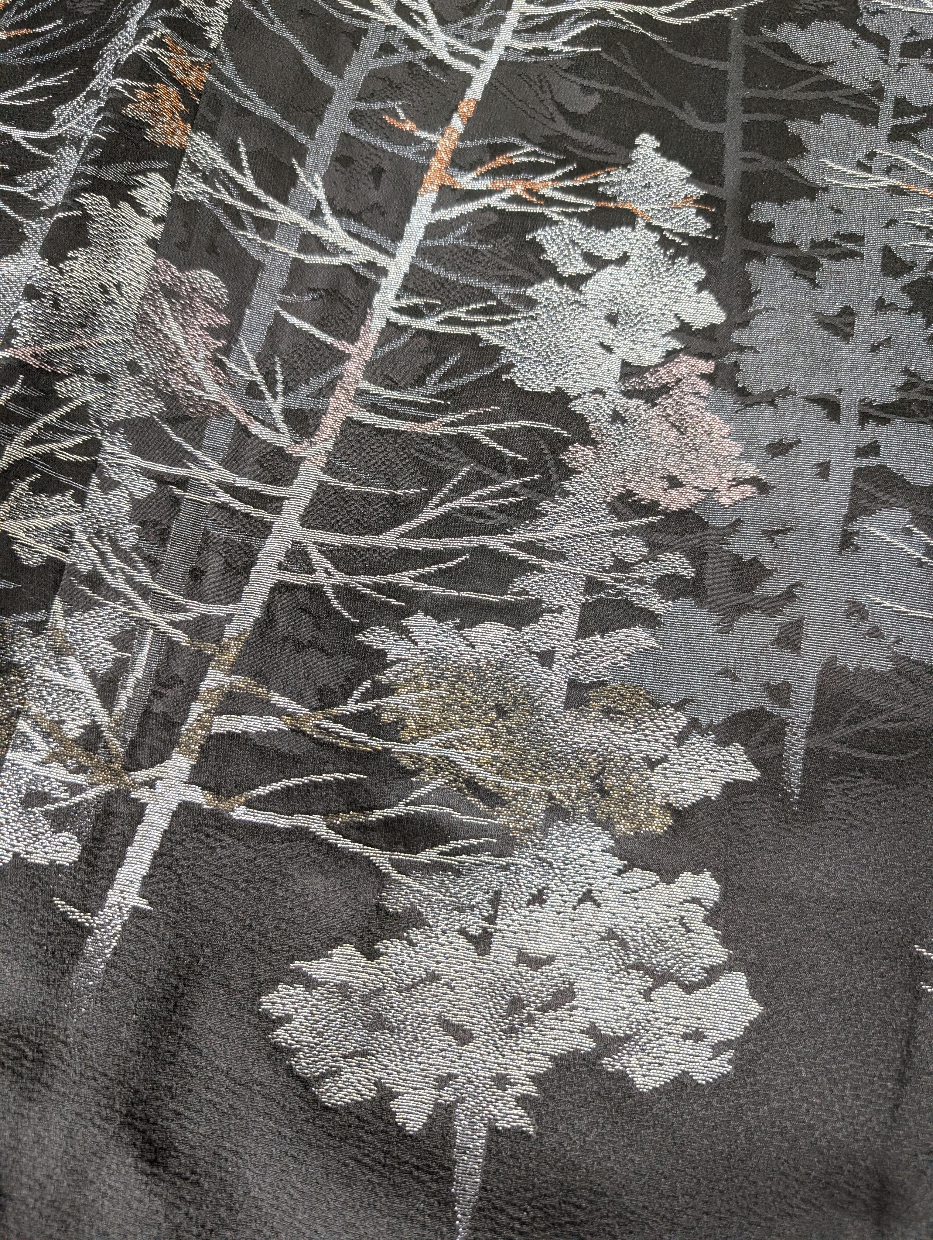 【14502】 ヴィンテージ 黒羽織 織り出し模様 銀 樹木風景 和洋折衷コーデ / Japanese vintage kimono black haori jacket