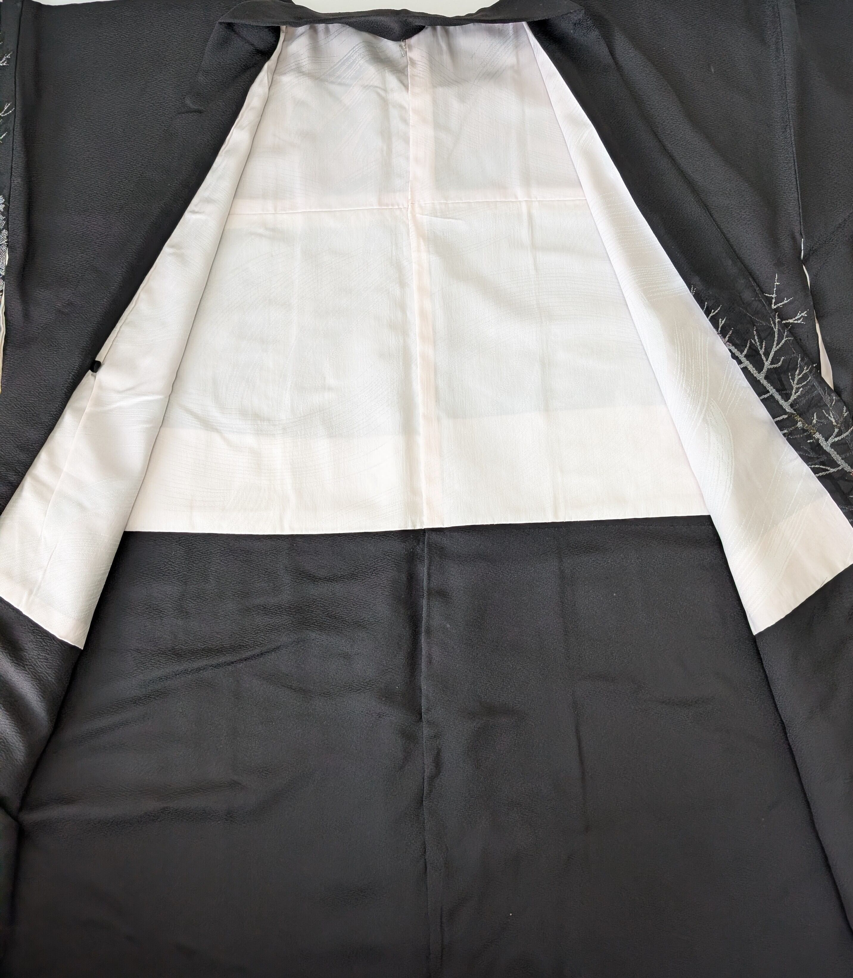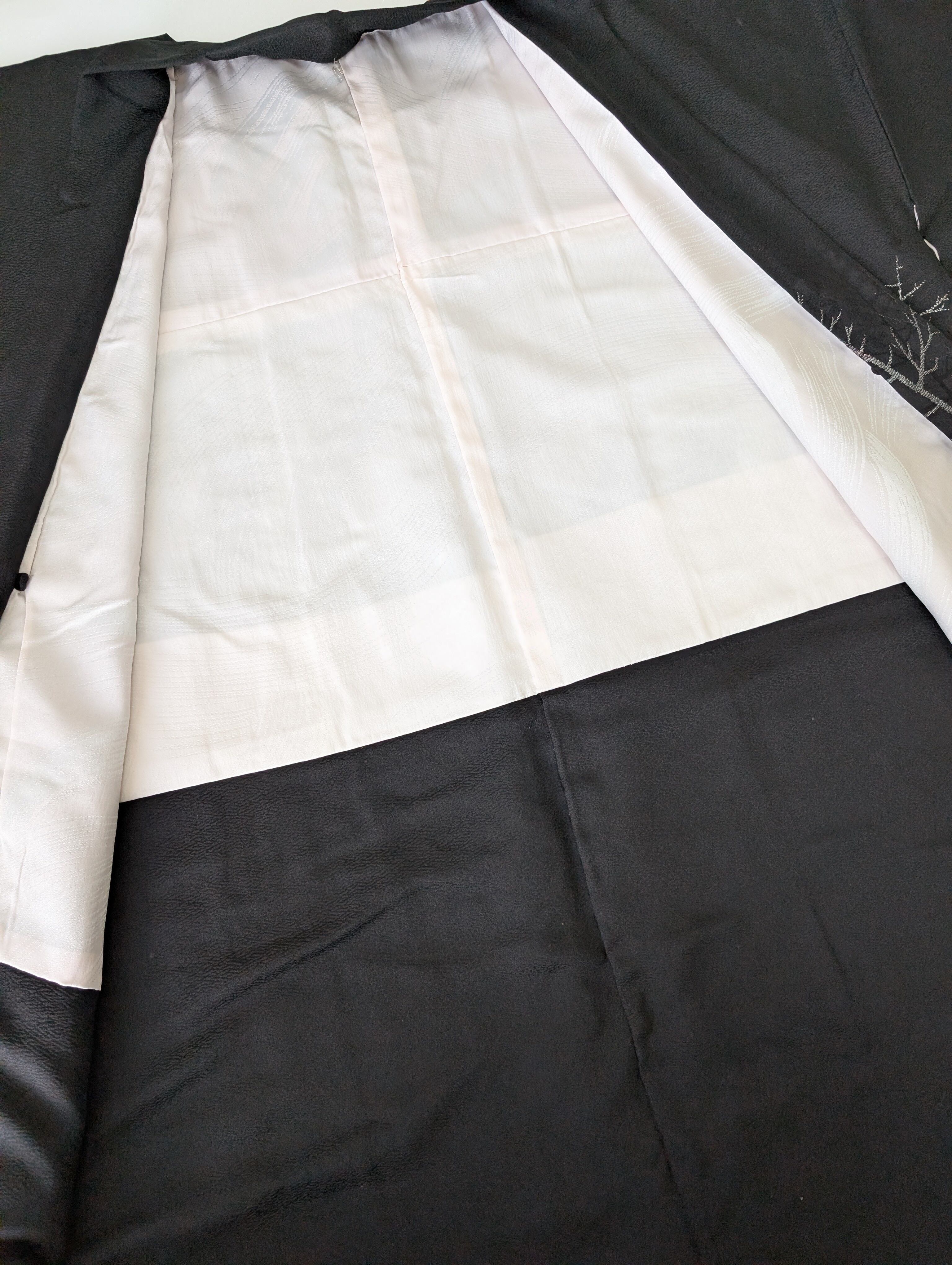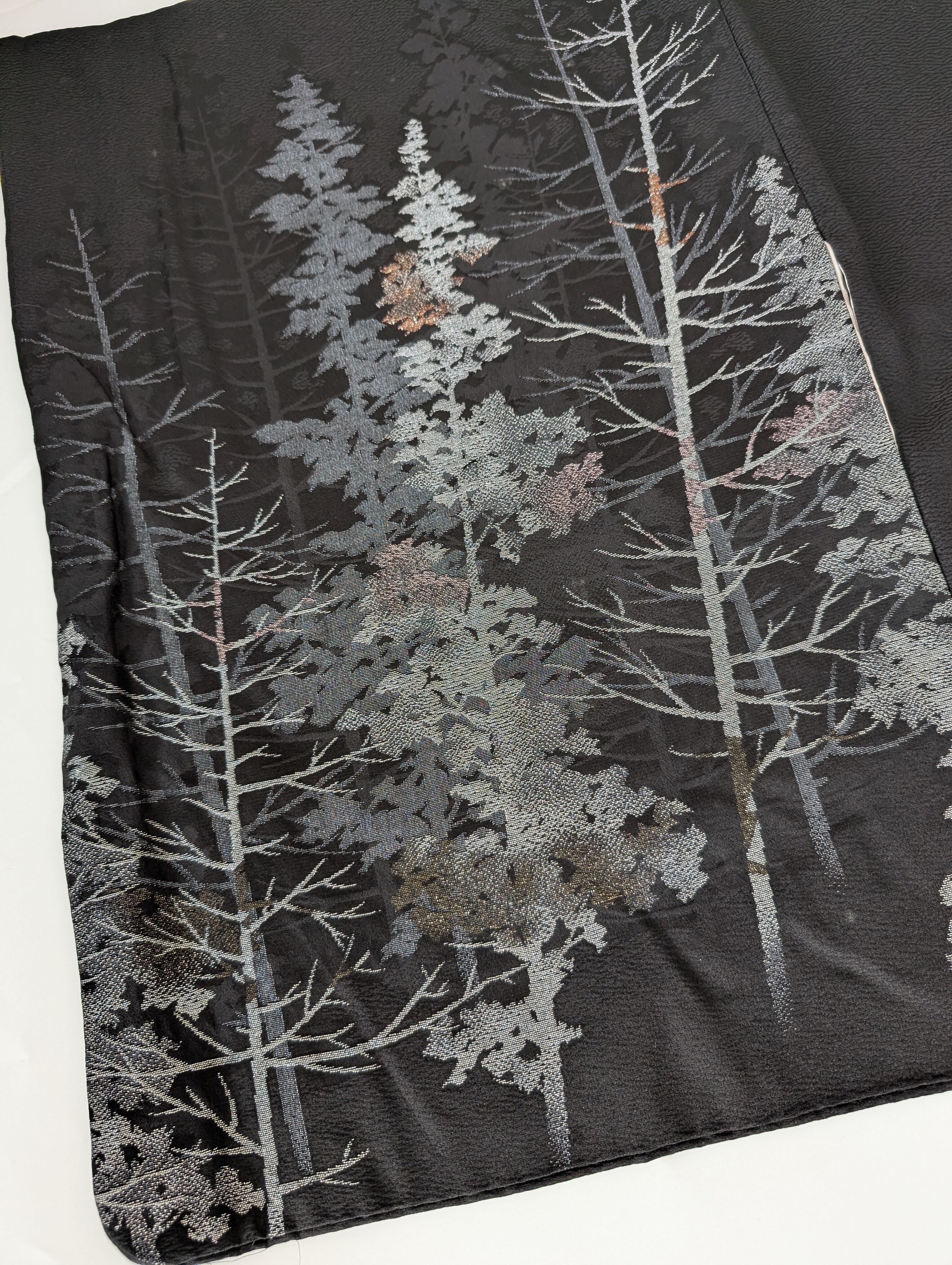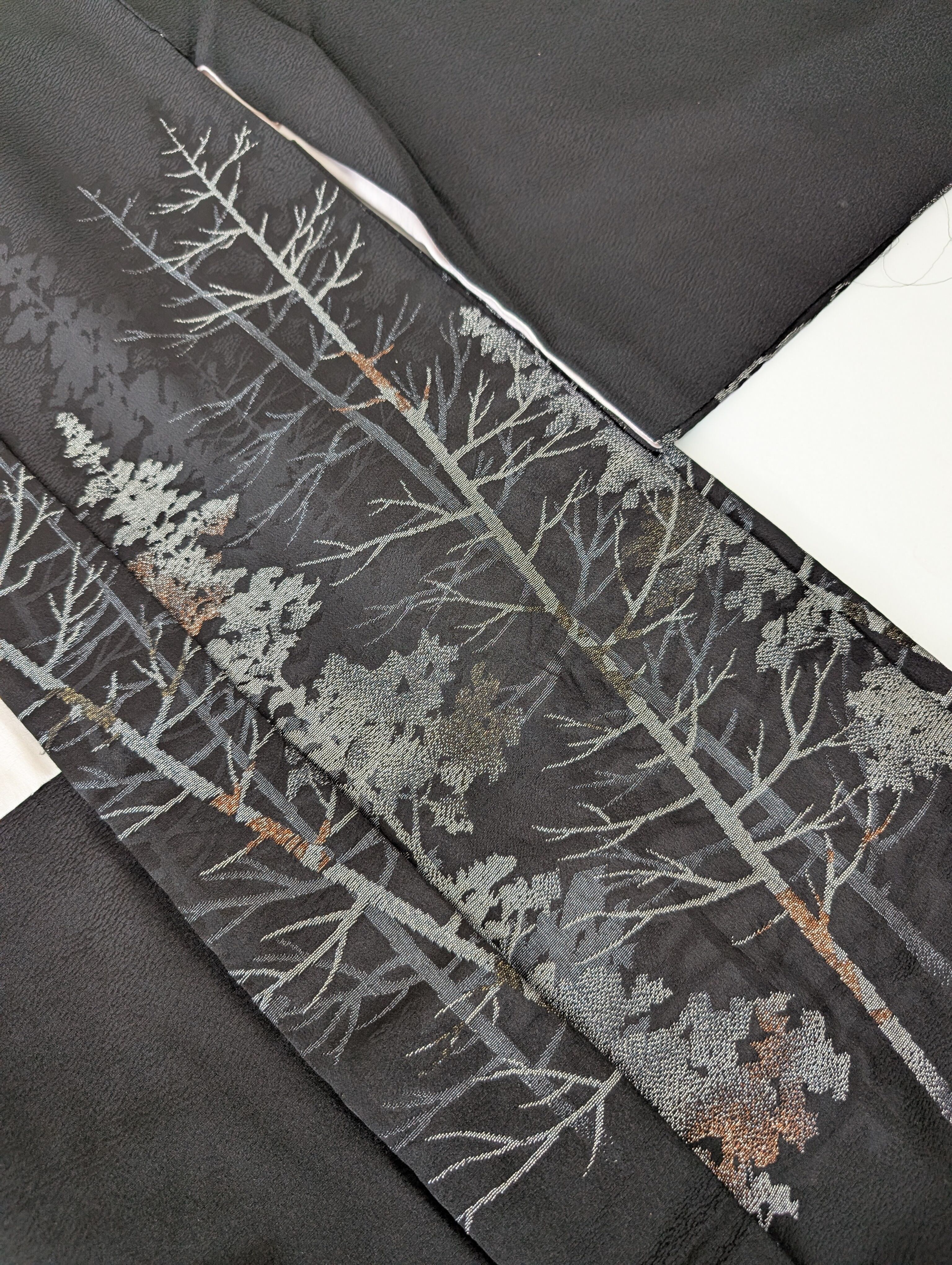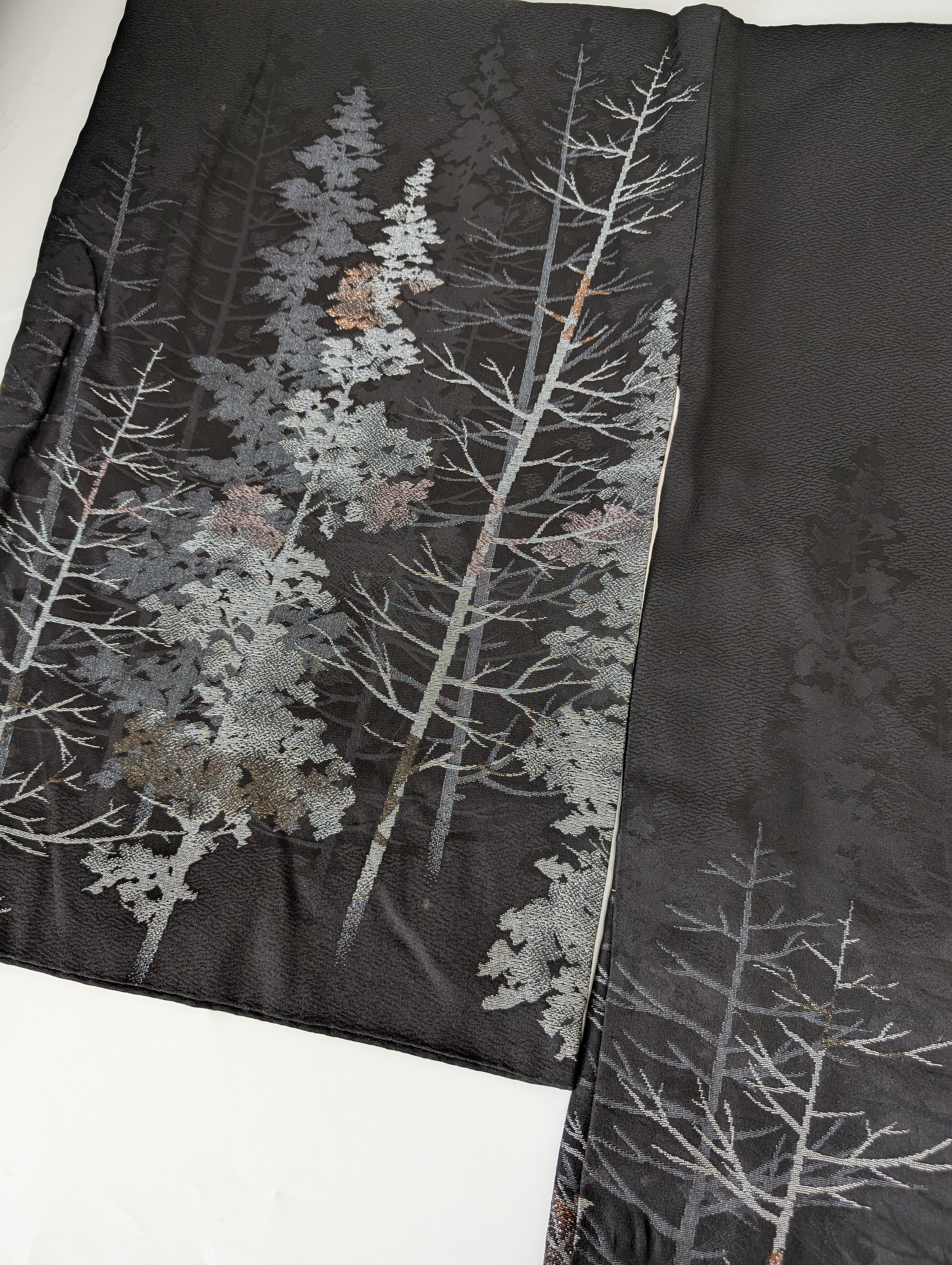 【14502】 ヴィンテージ 黒羽織 織り出し模様 銀 樹木風景 和洋折衷コーデ / Japanese vintage kimono black haori jacket