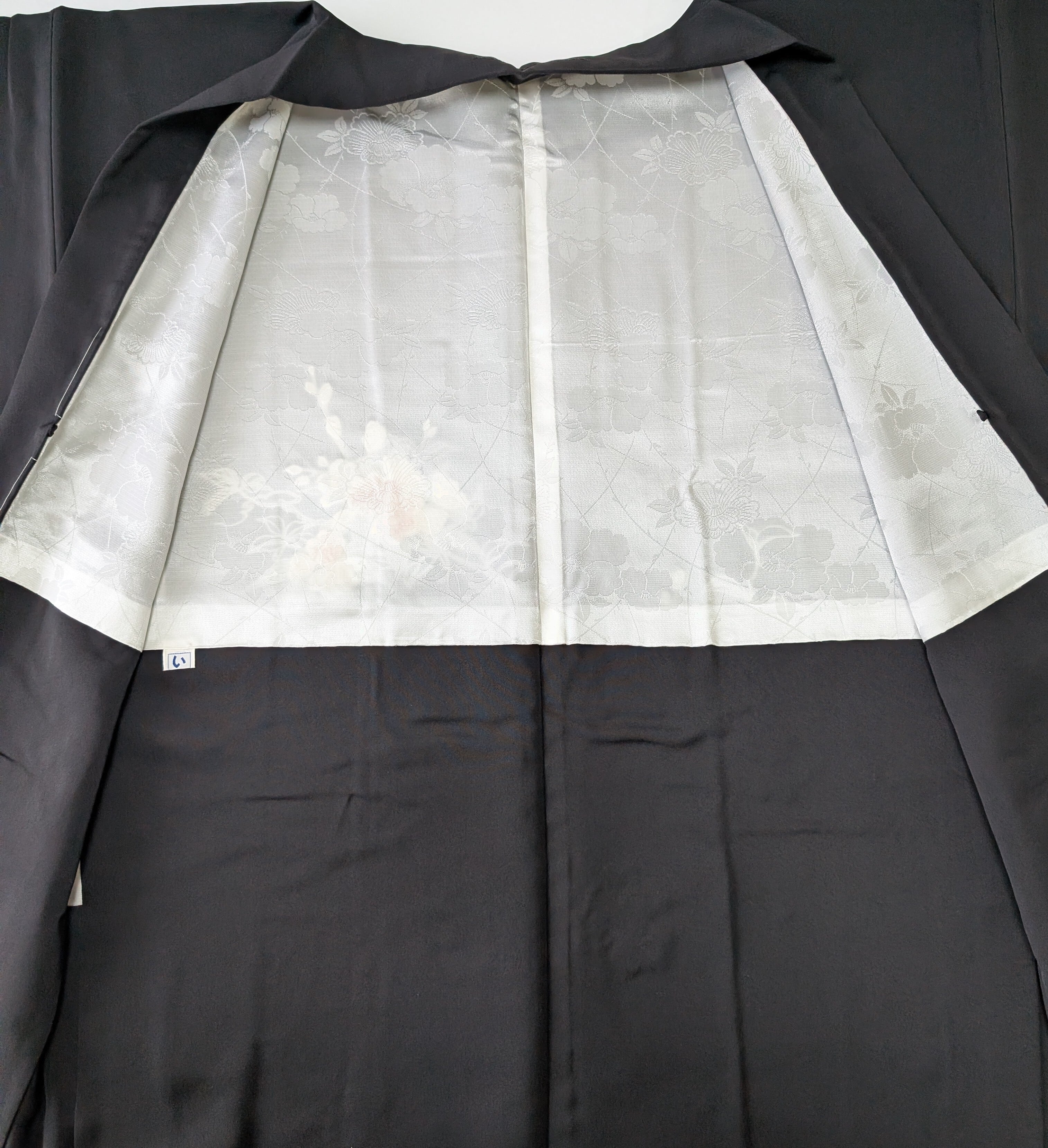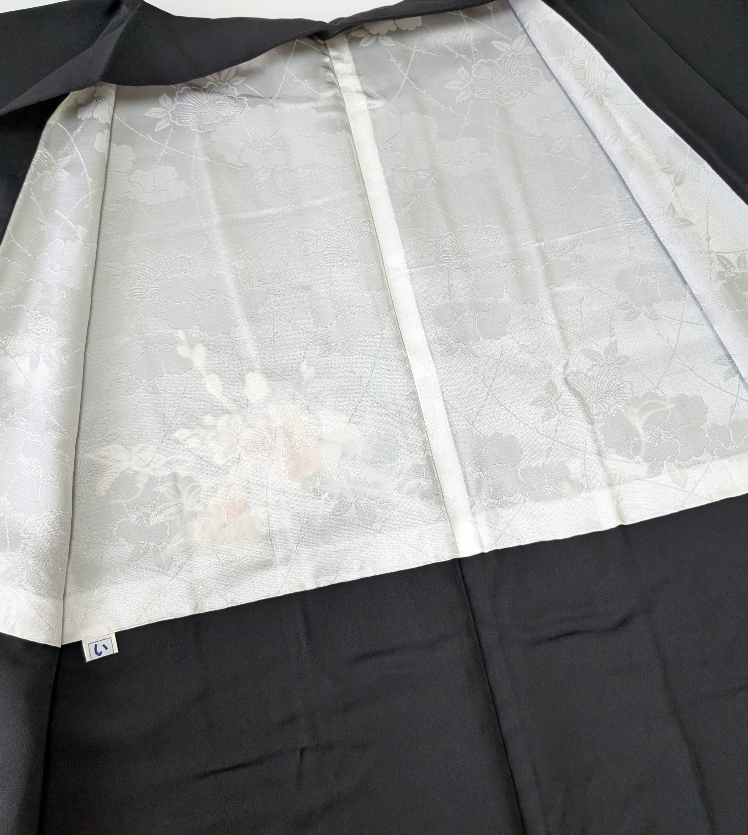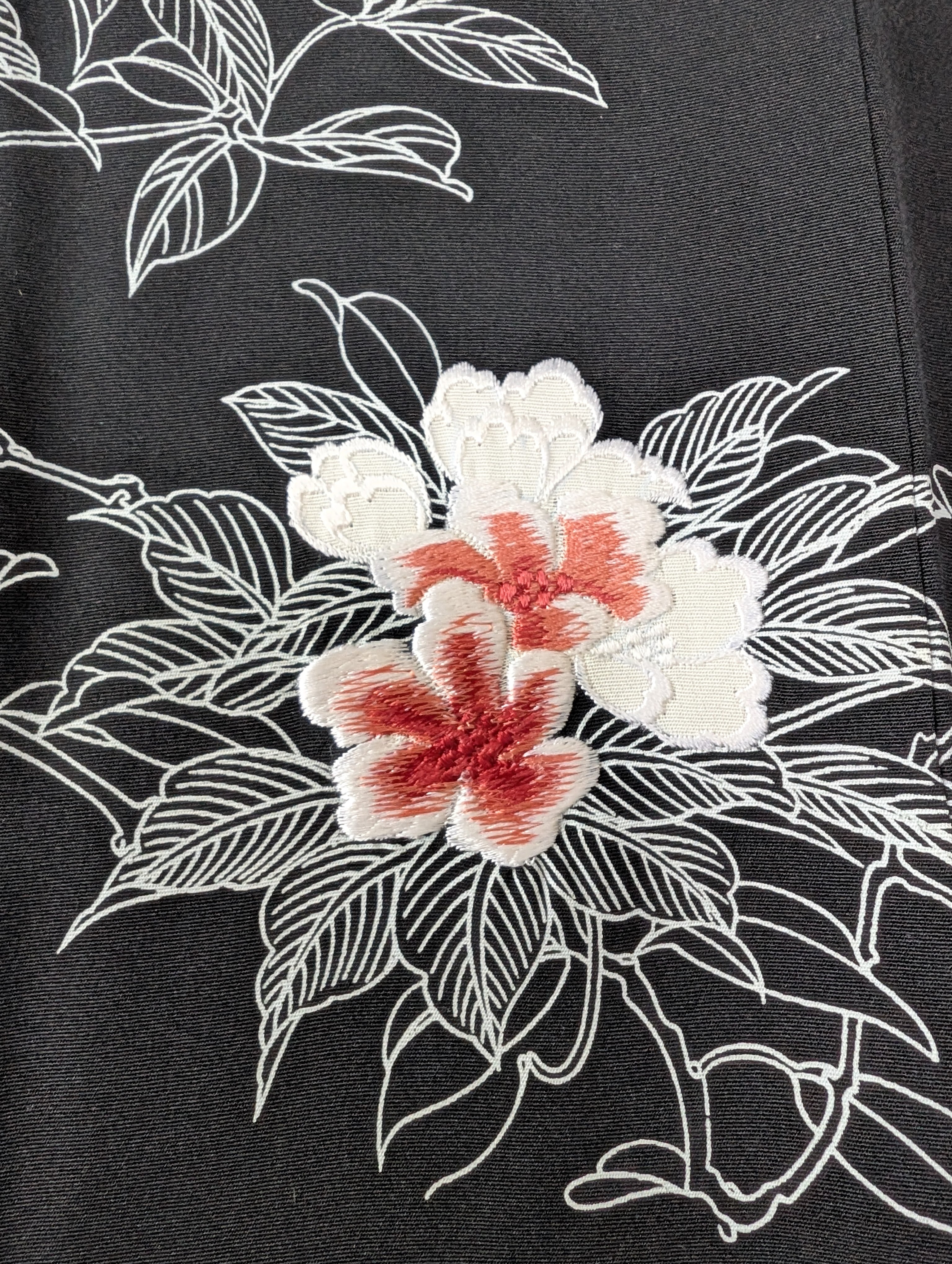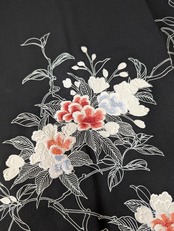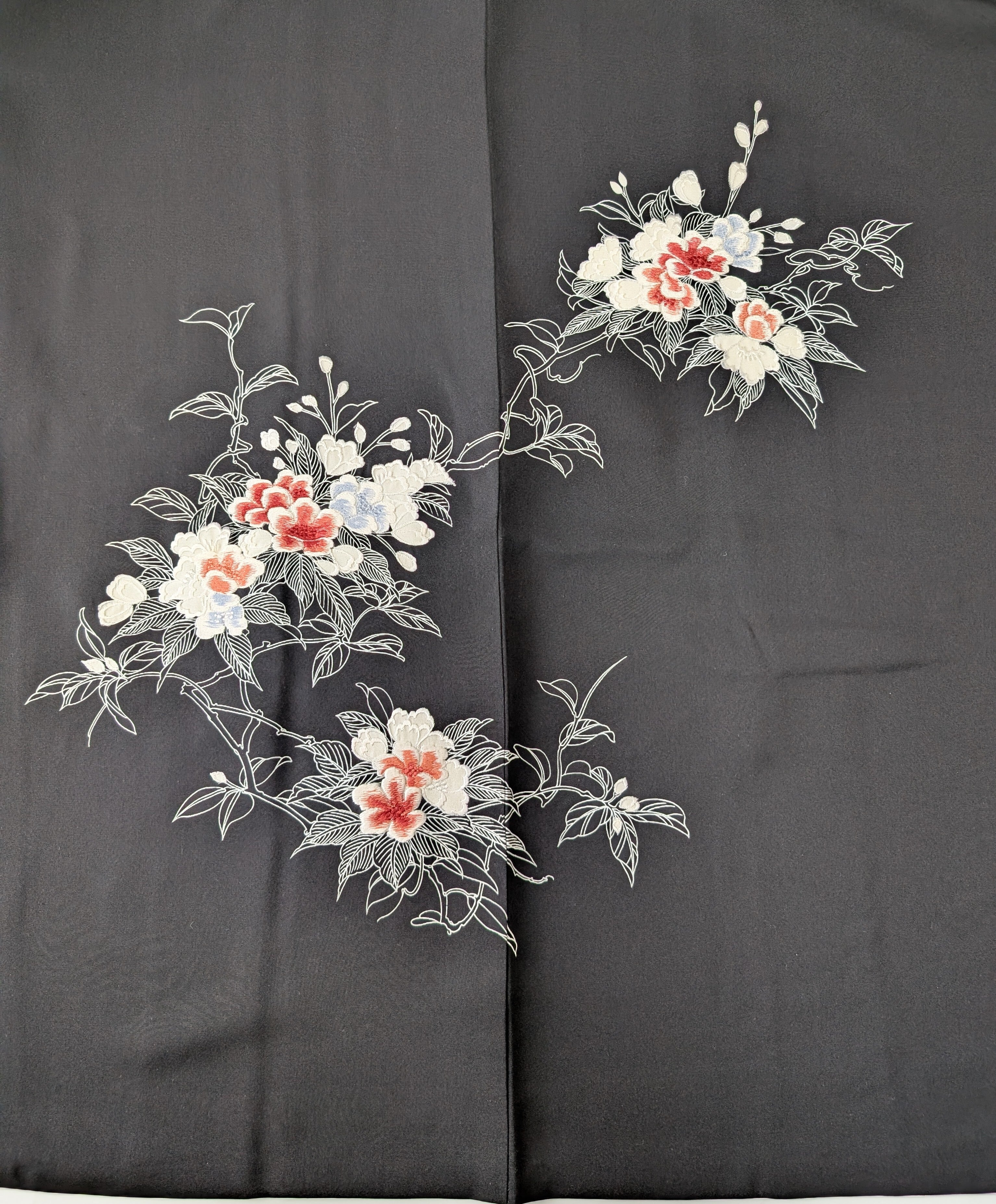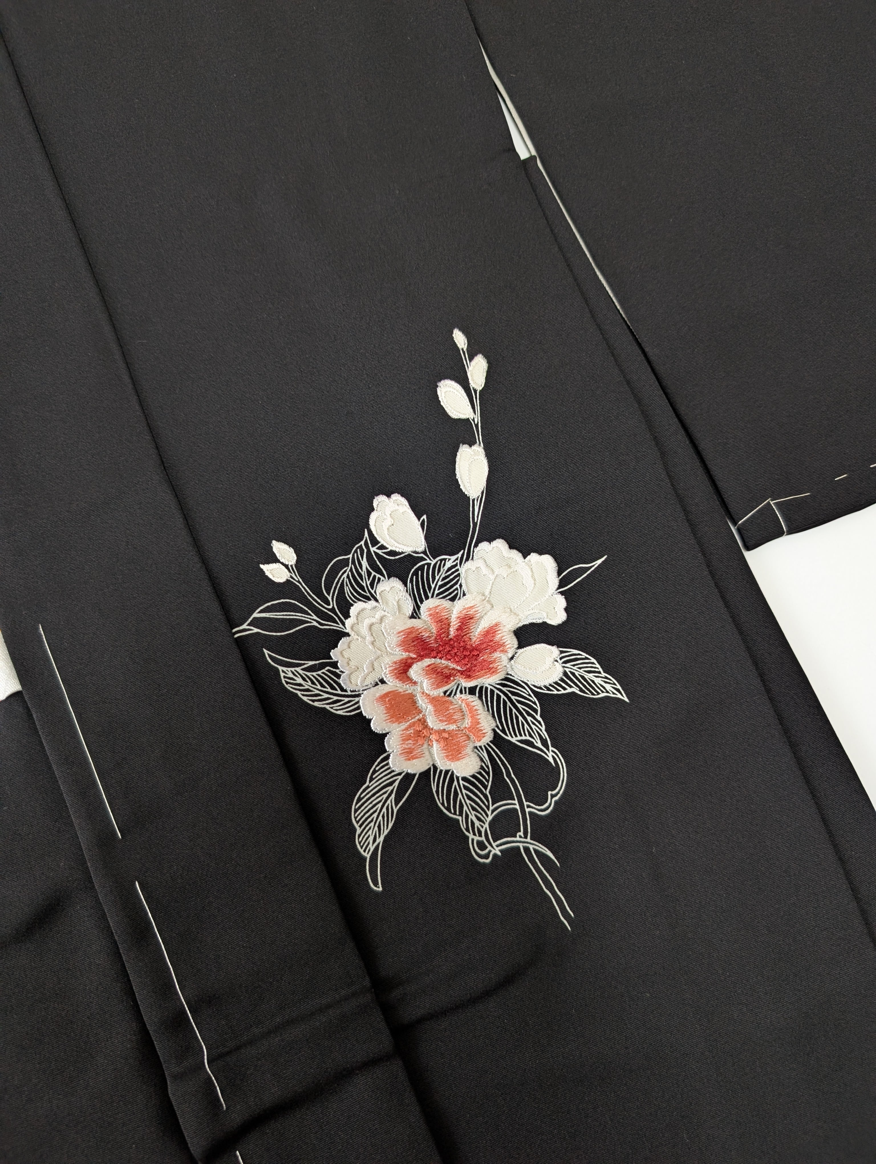 【14505】 ヴィンテージ 黒羽織 刺繍 花模様 白 赤 青 和洋折衷コーデ / Japanese vintage kimono black haori jacket