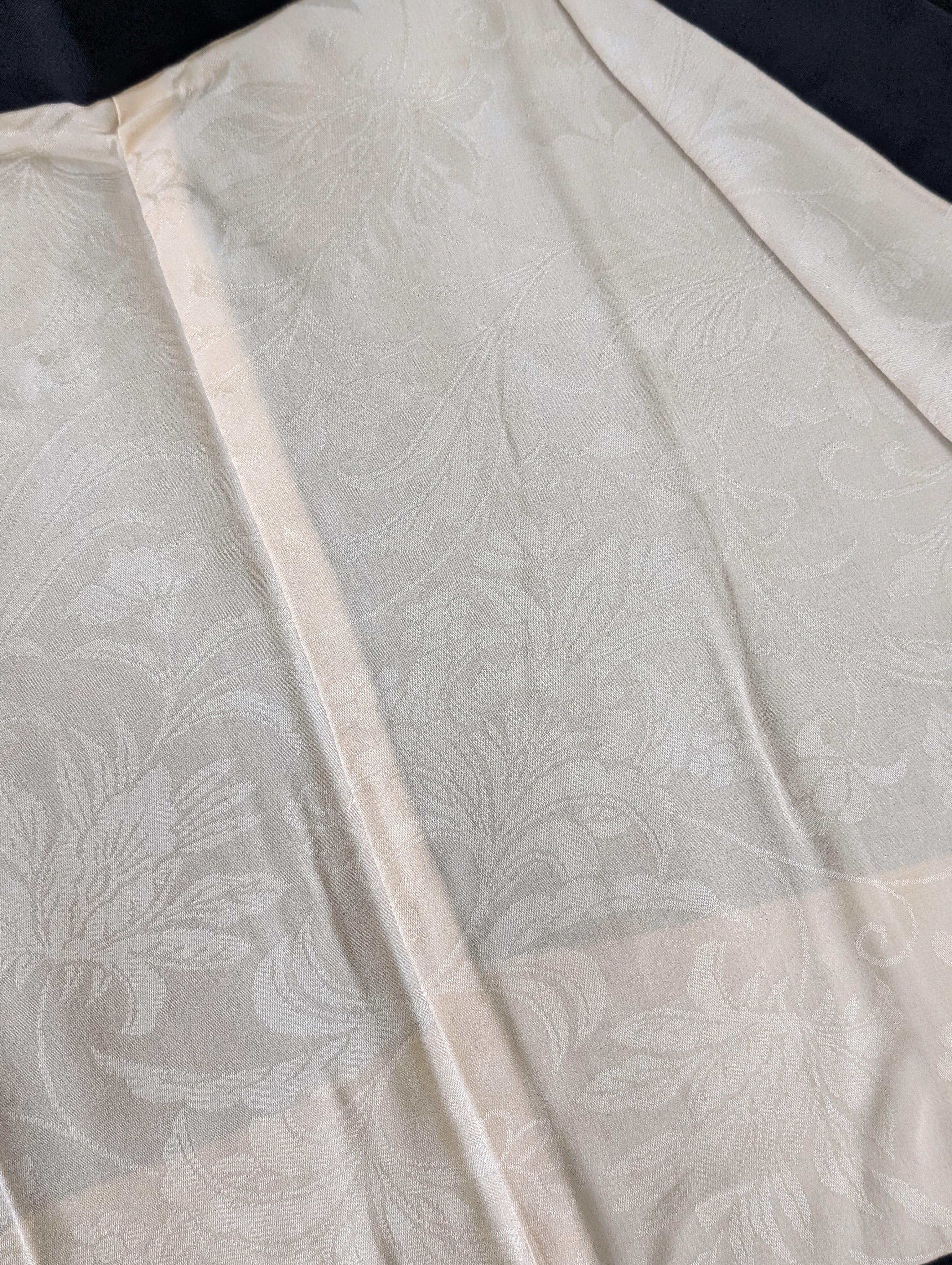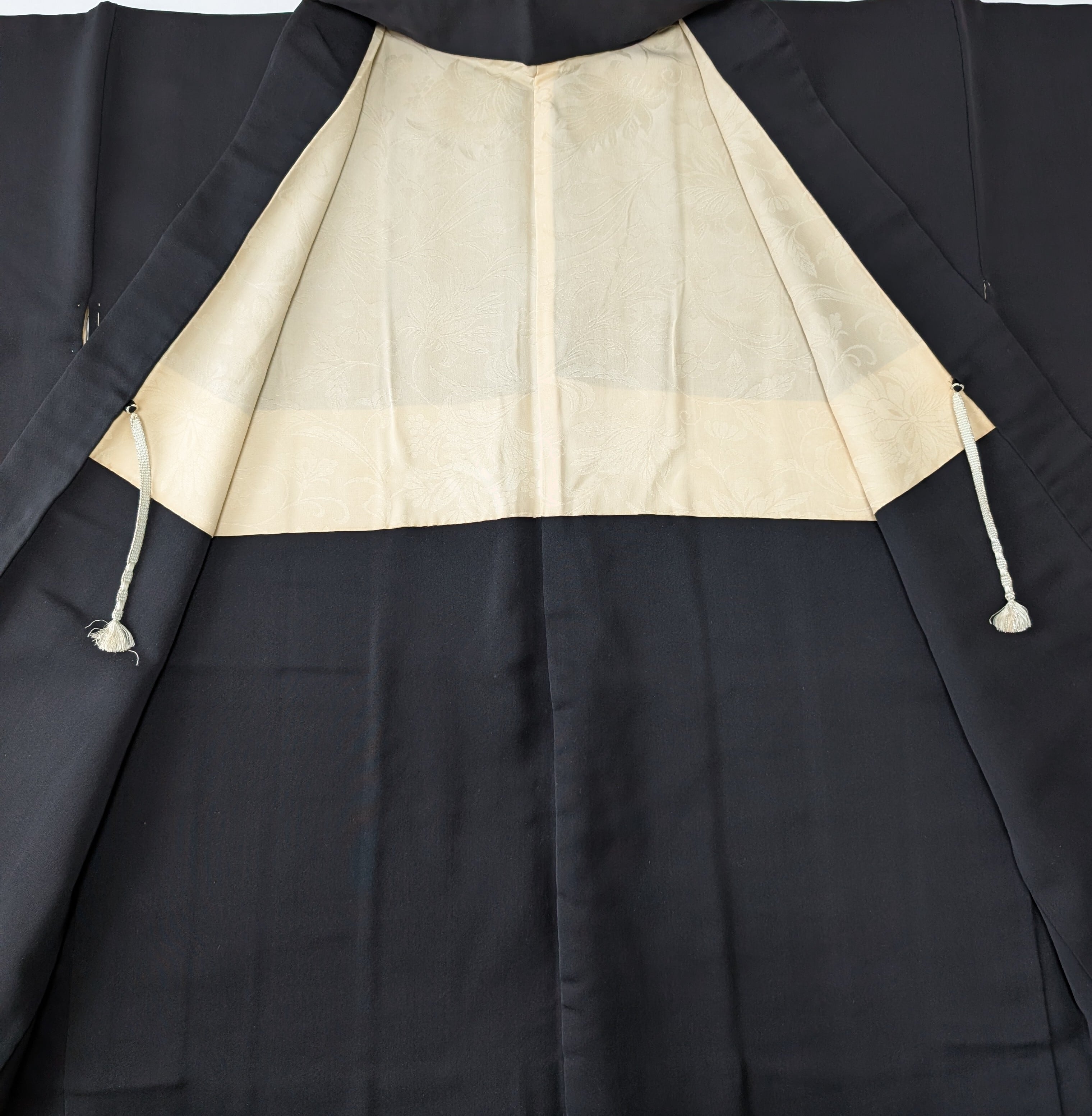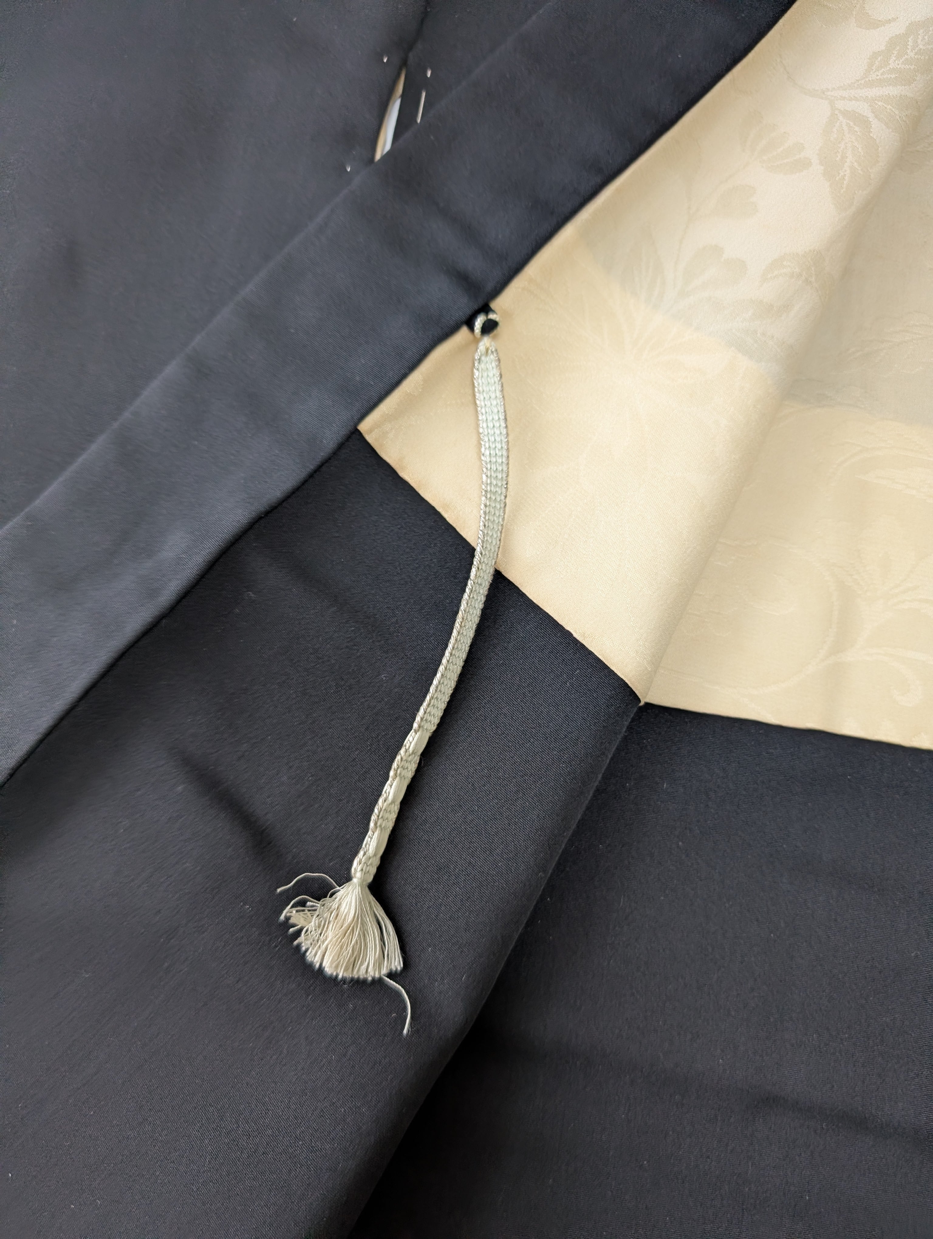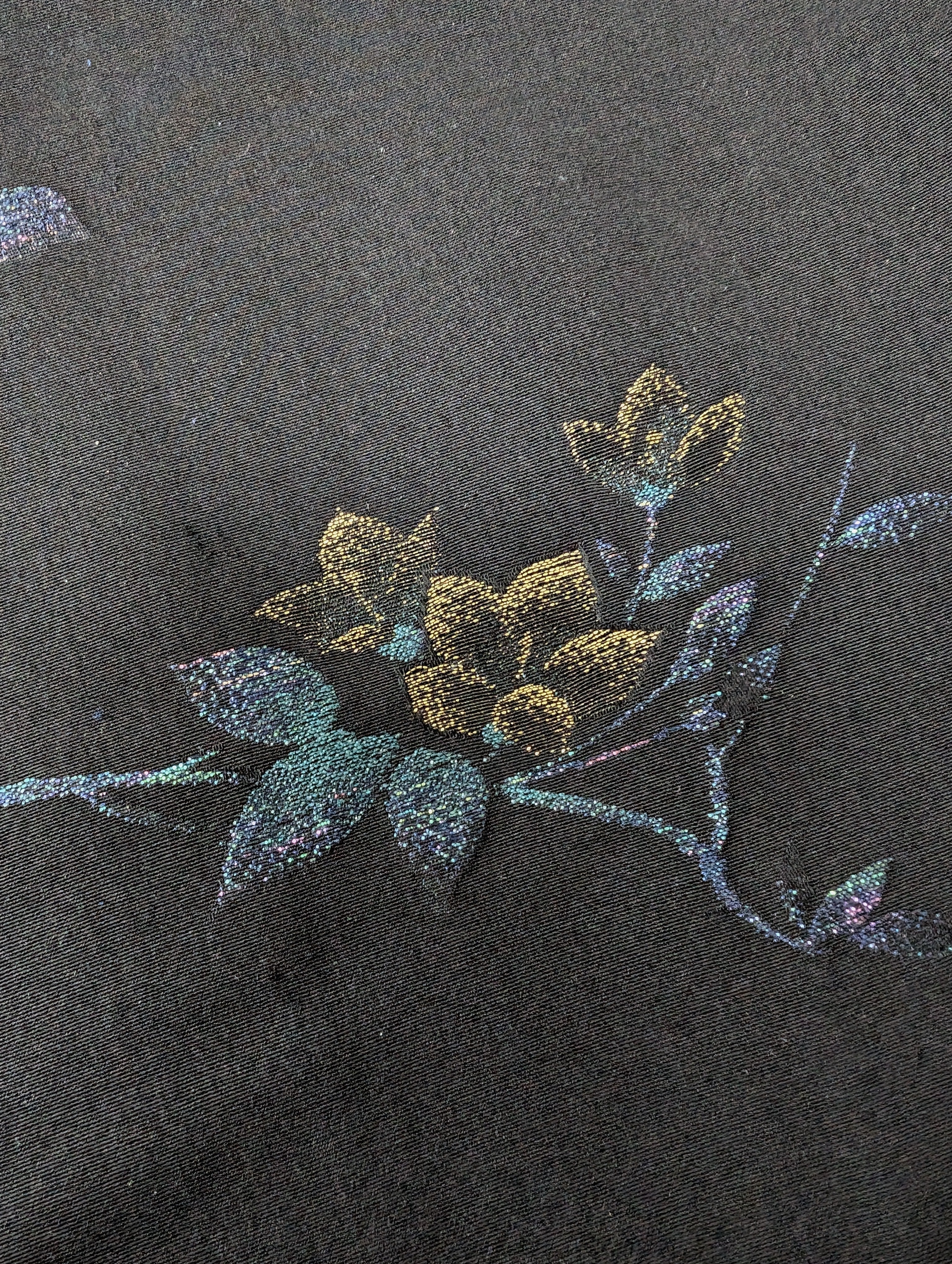 【14506】 ヴィンテージ 黒羽織 織り出し 樹木 花模様和洋折衷コーデ / Japanese vintage kimono black haori jacket