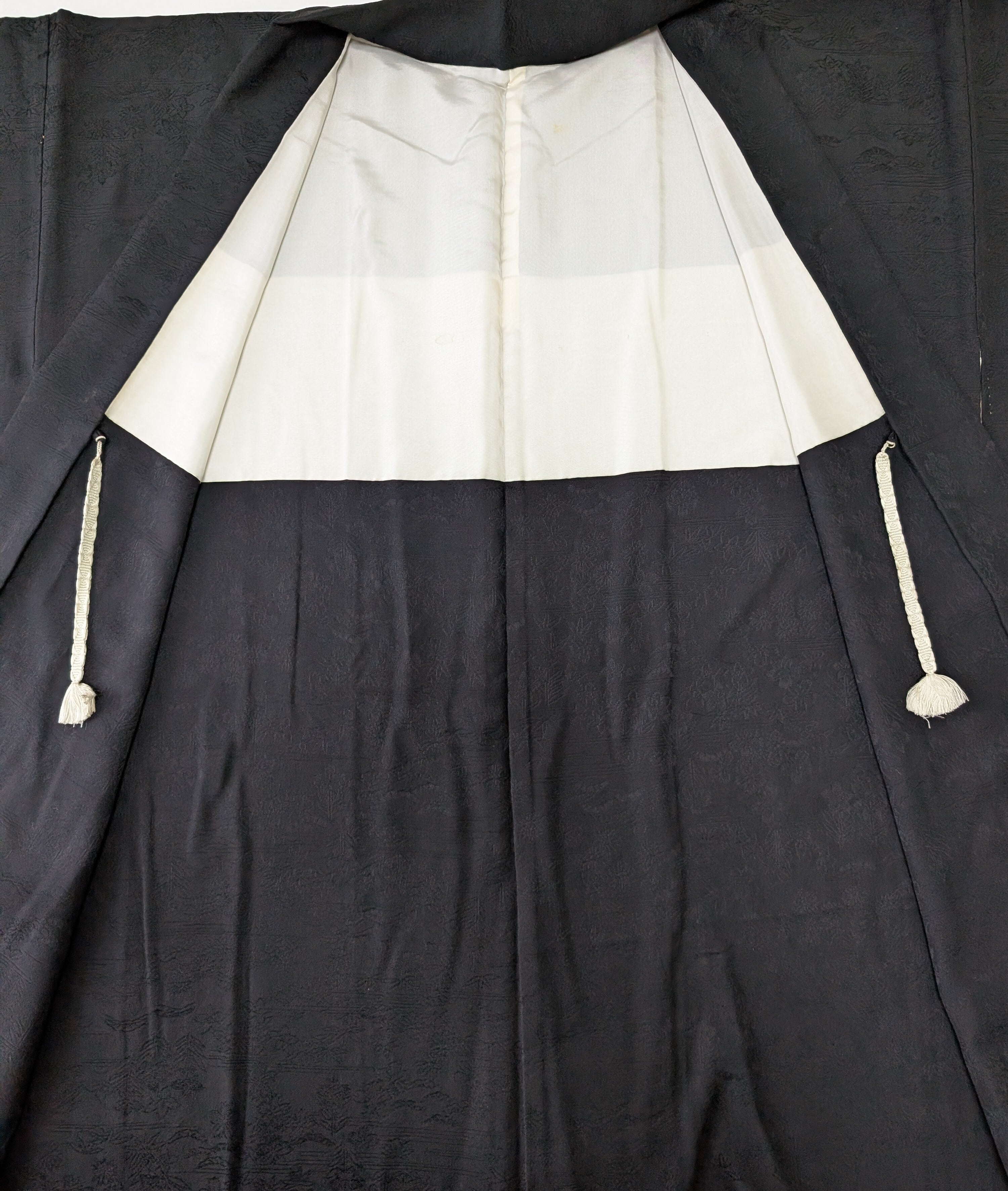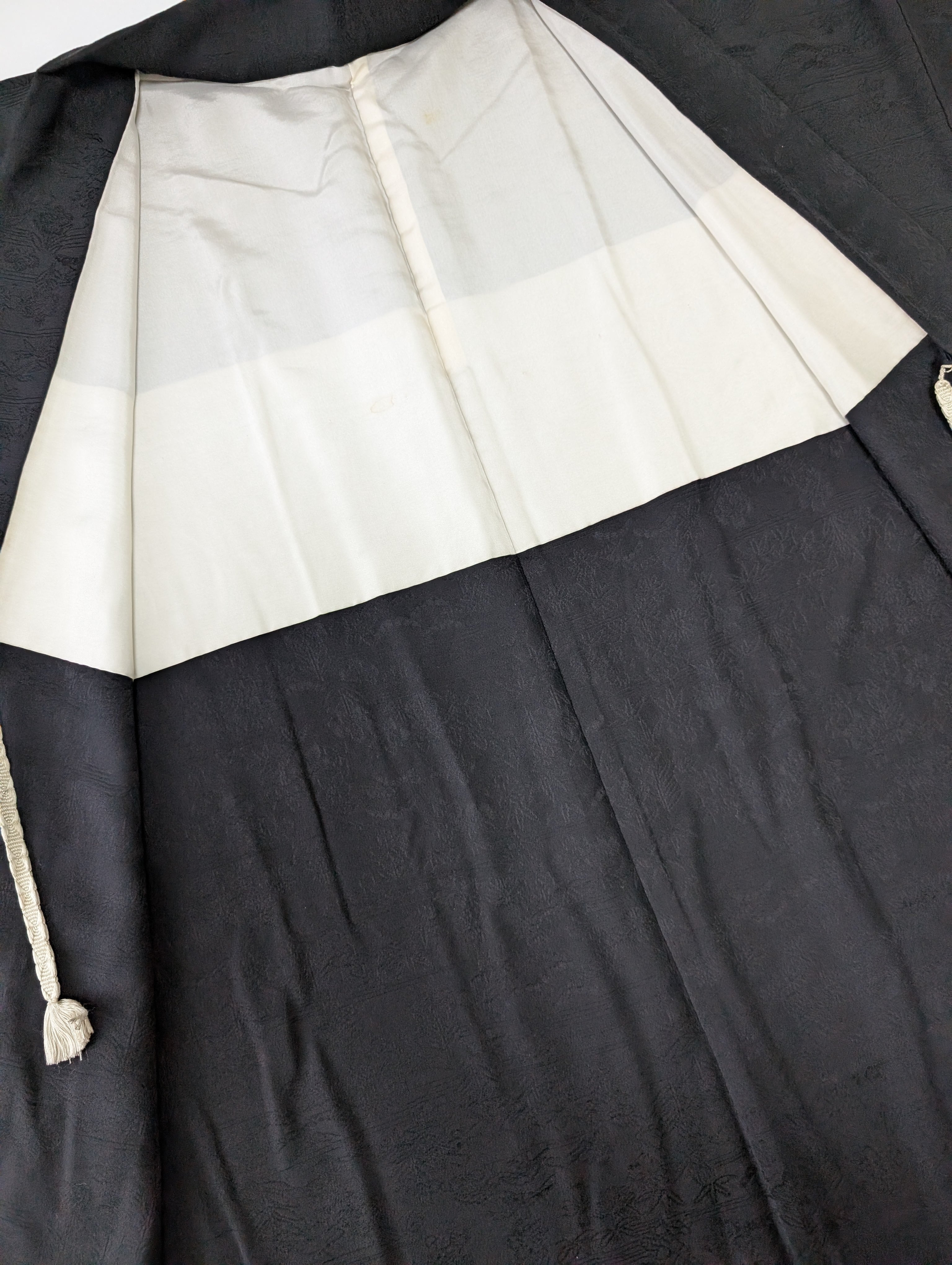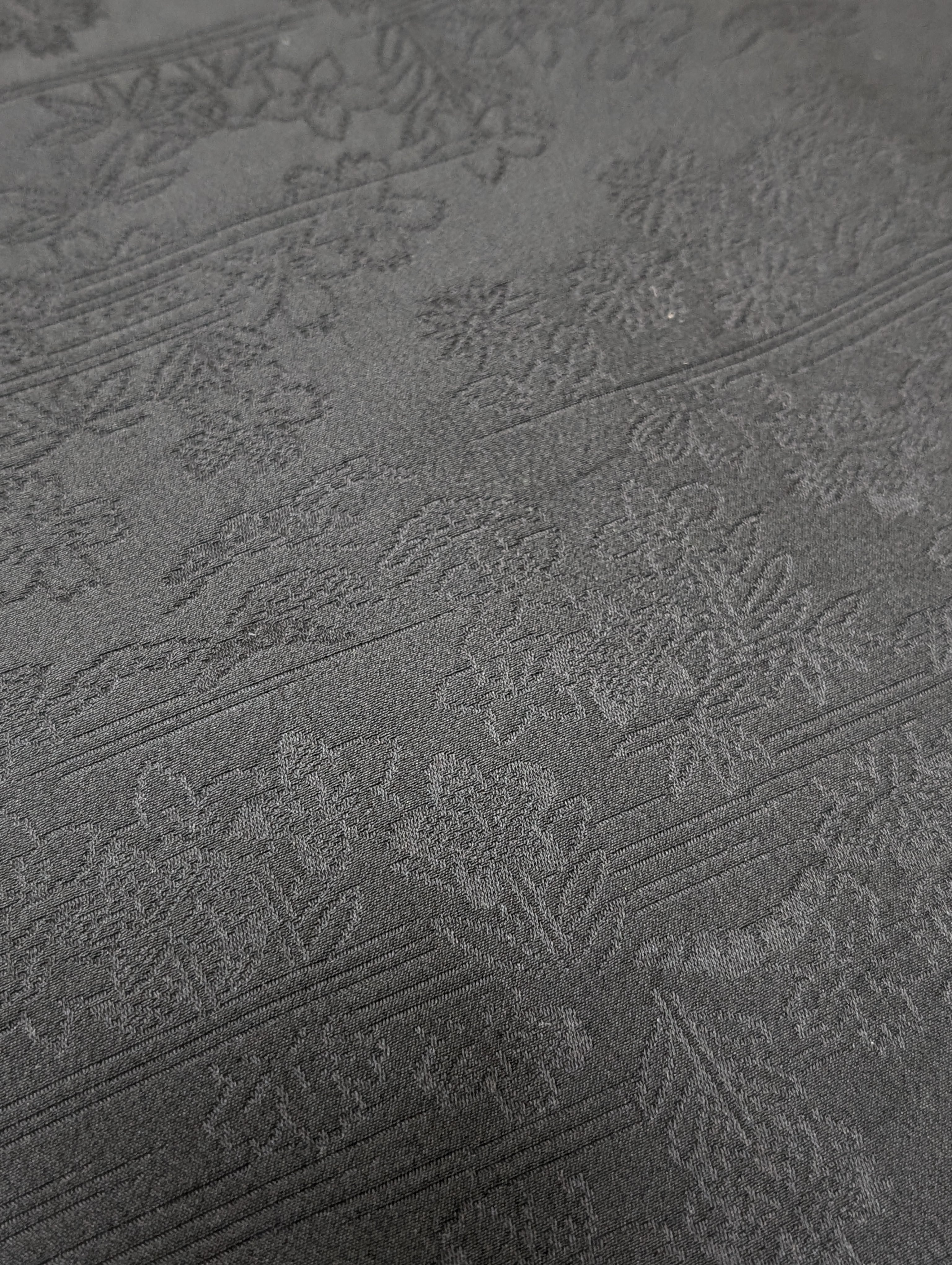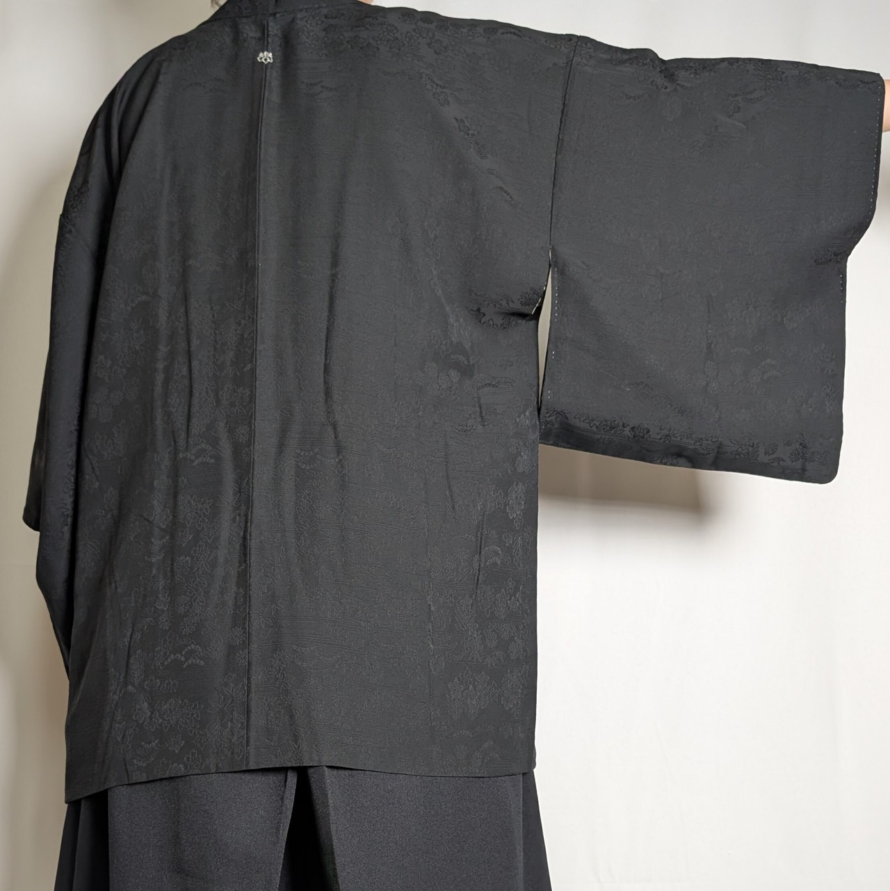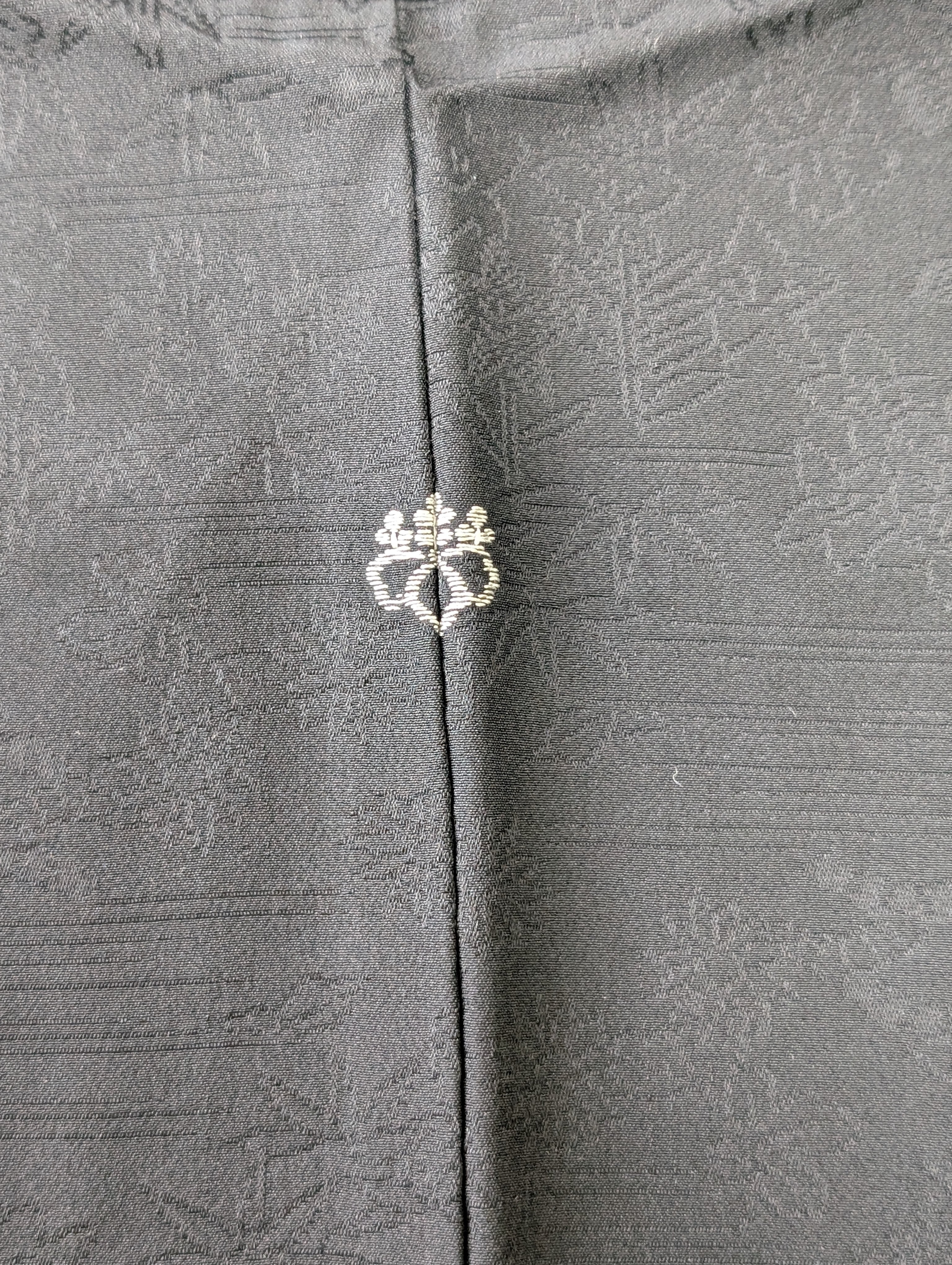 【14511】 ヴィンテージ 黒羽織 地模様 花 松 和洋折衷コーデ / Japanese vintage kimono black haori jacket
