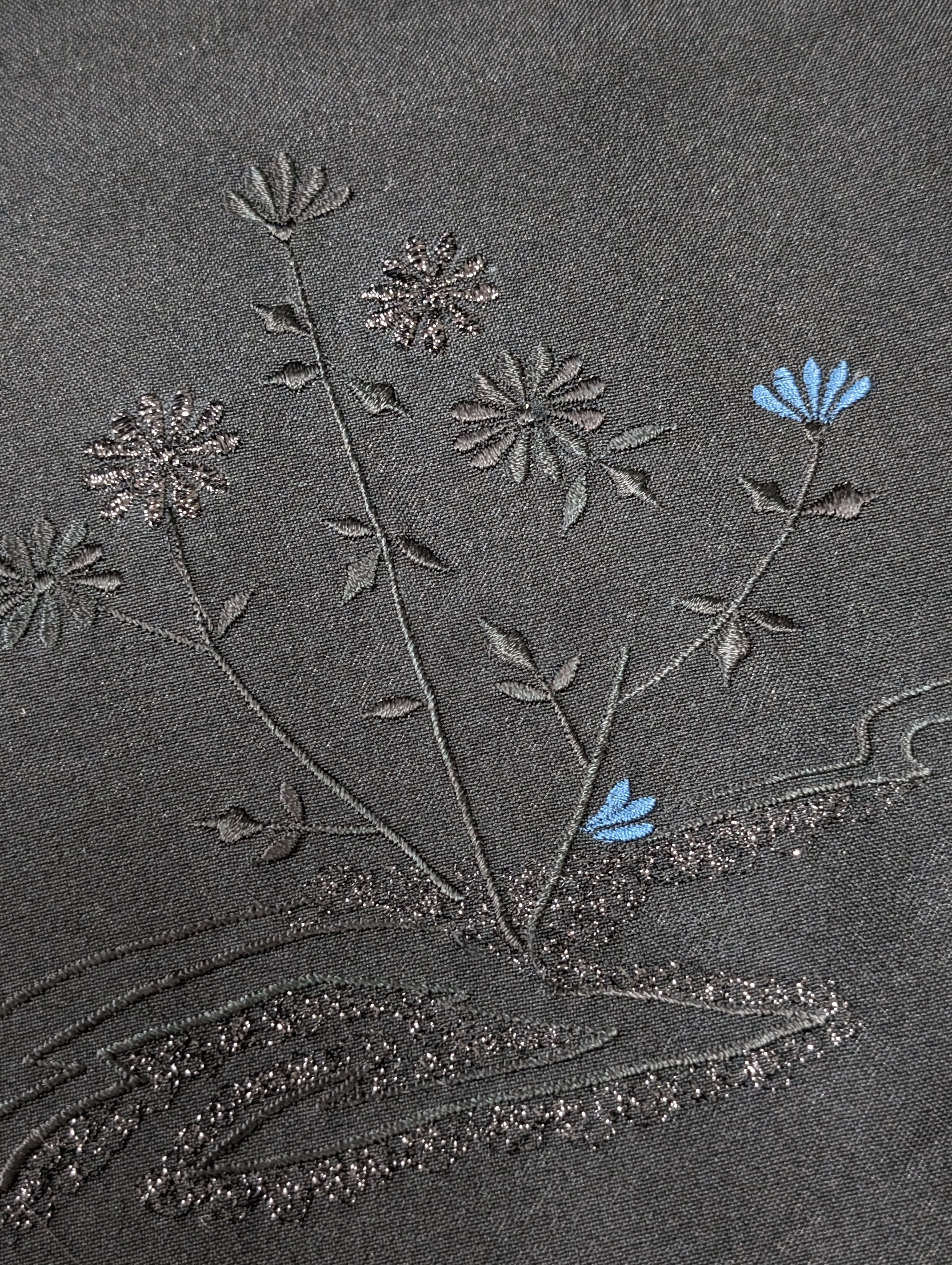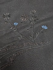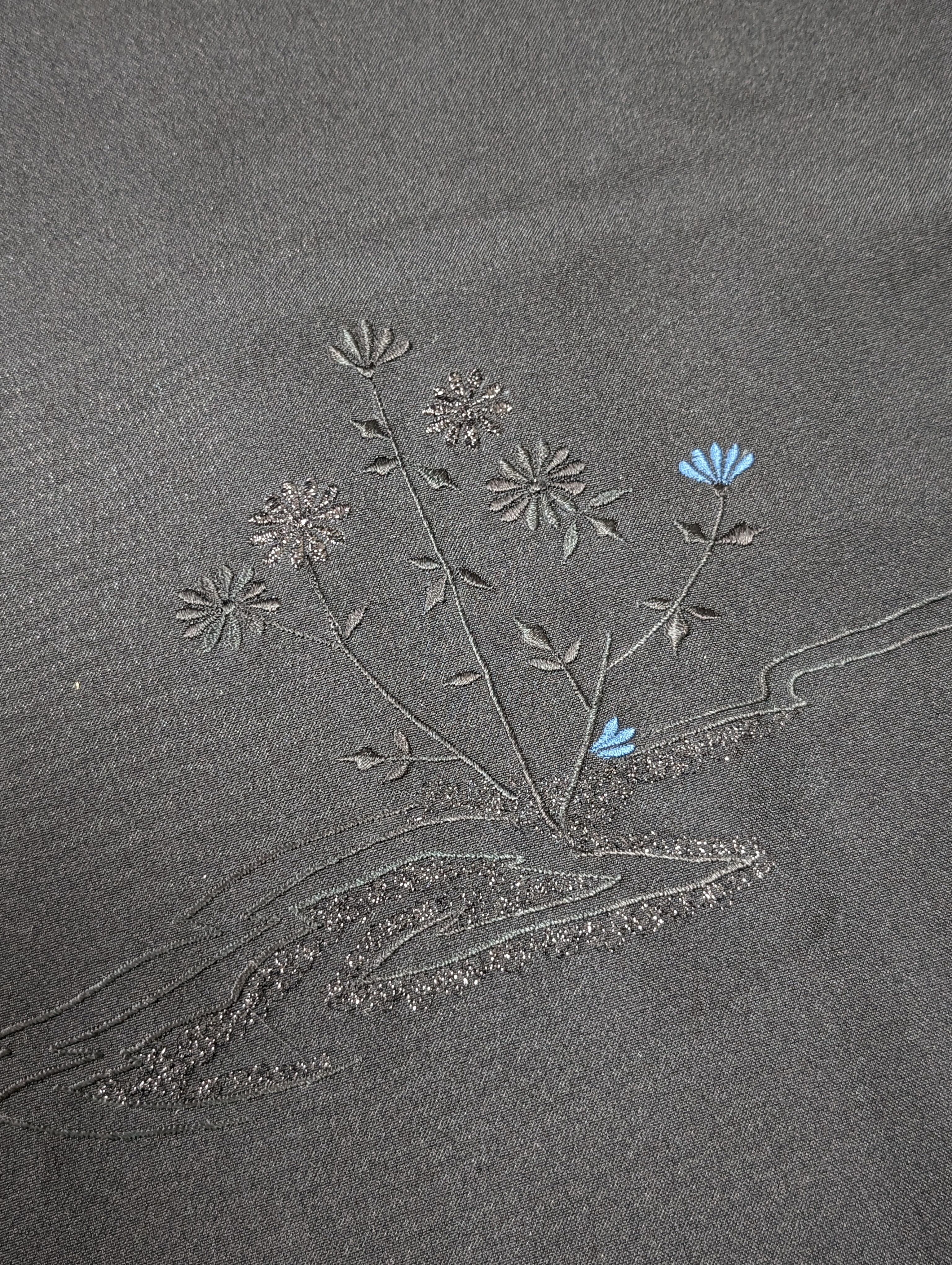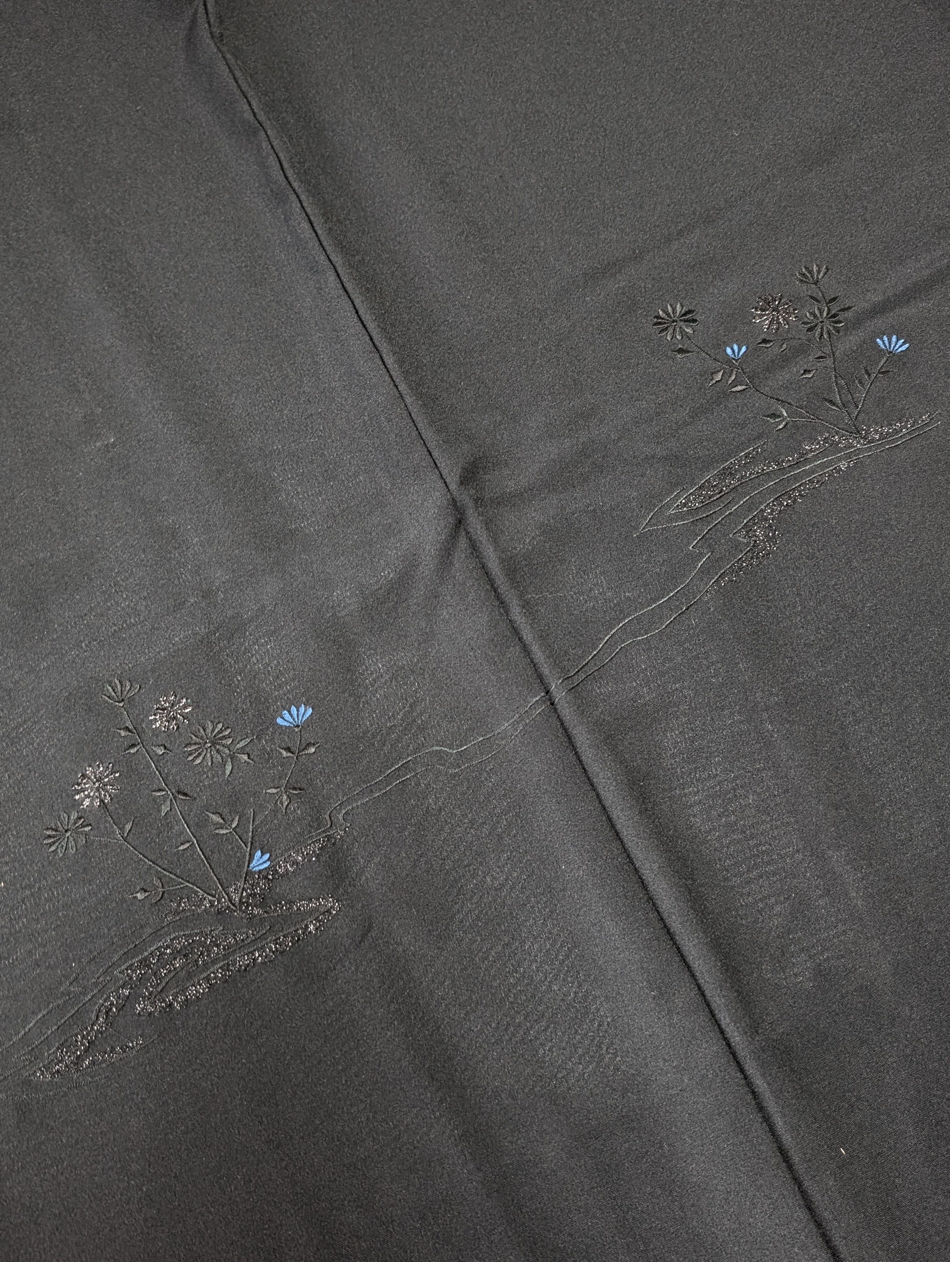 【14513】 ヴィンテージ 黒羽織 刺繍 花模様 黒 青 和洋折衷コーデ / Japanese vintage kimono black haori jacket