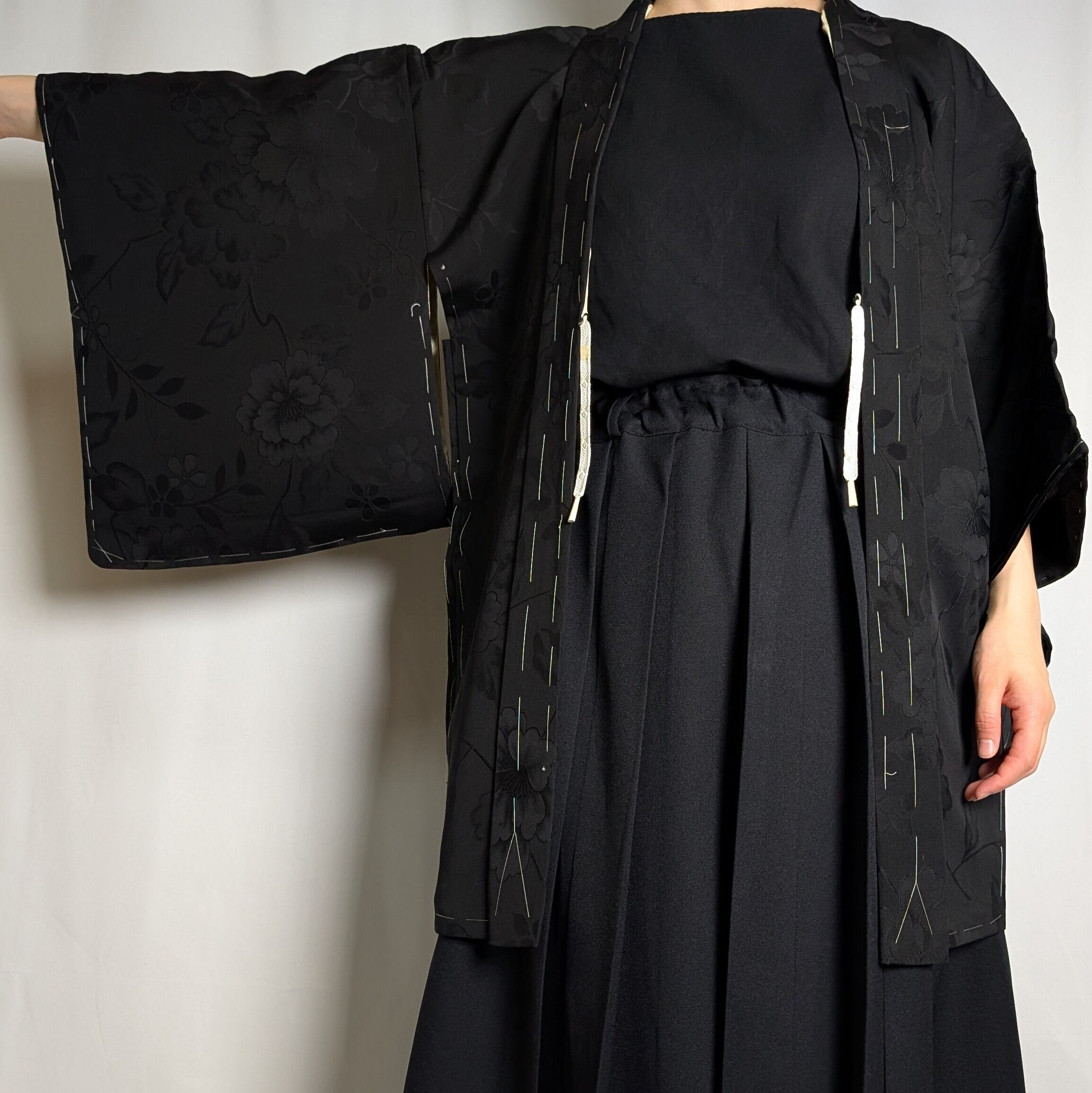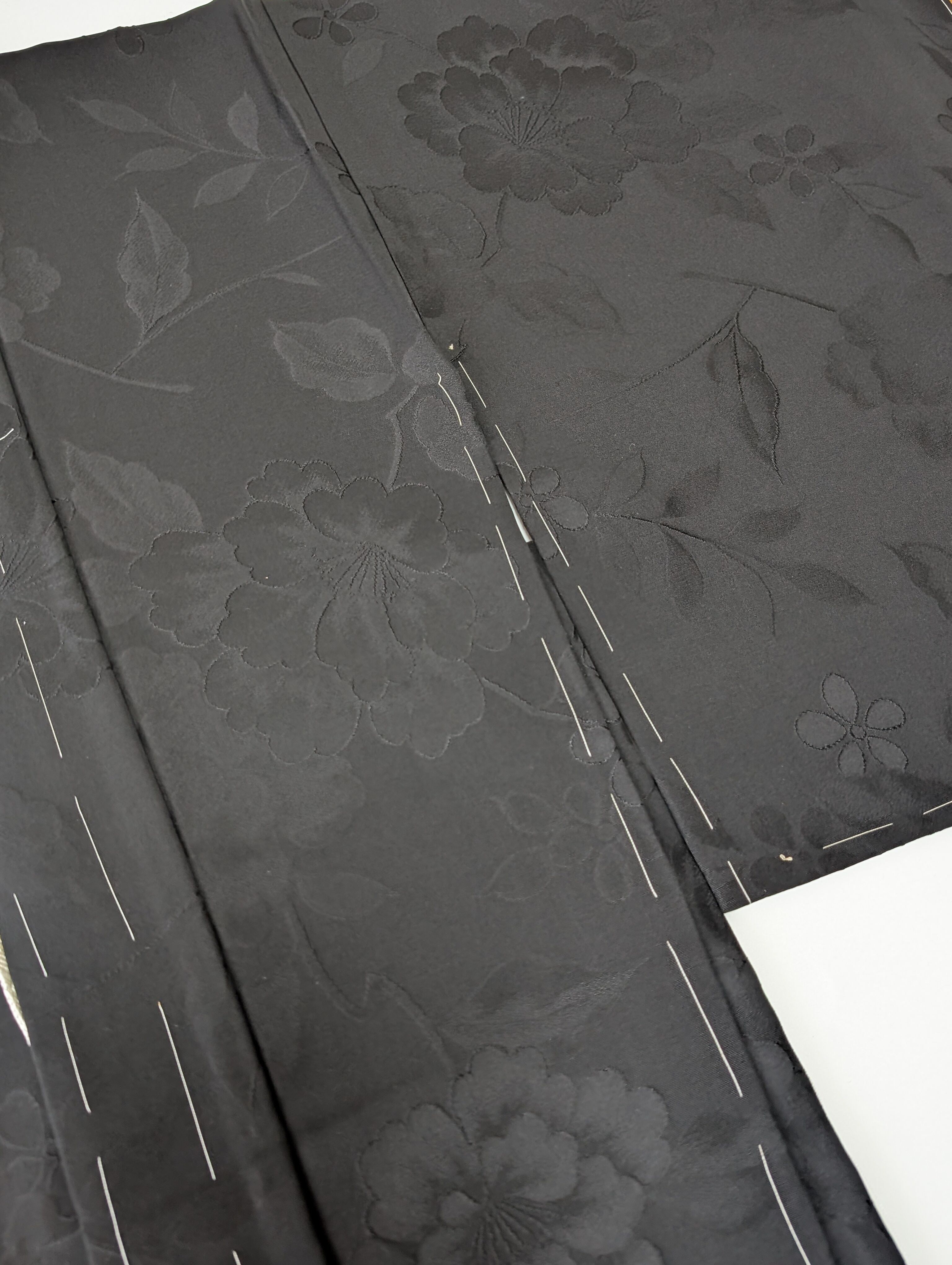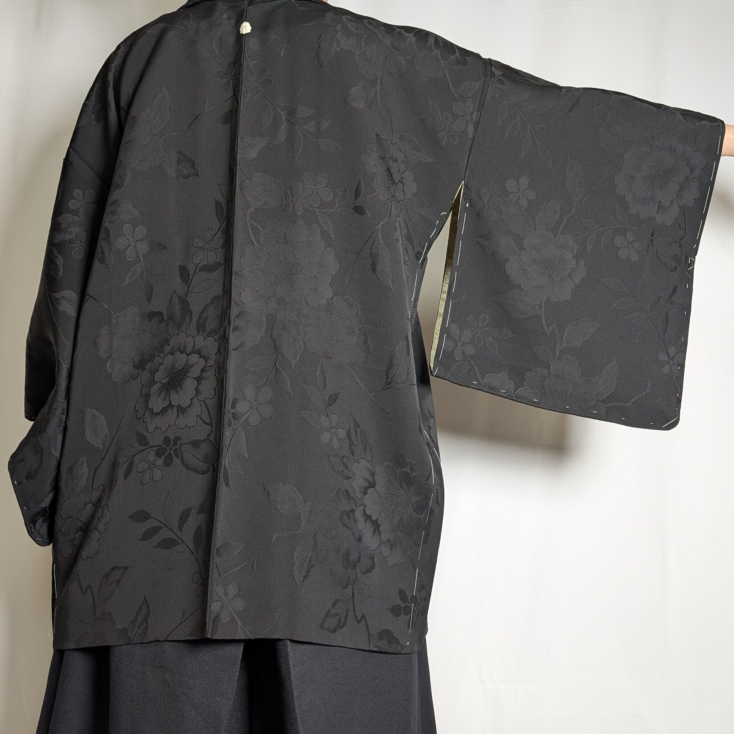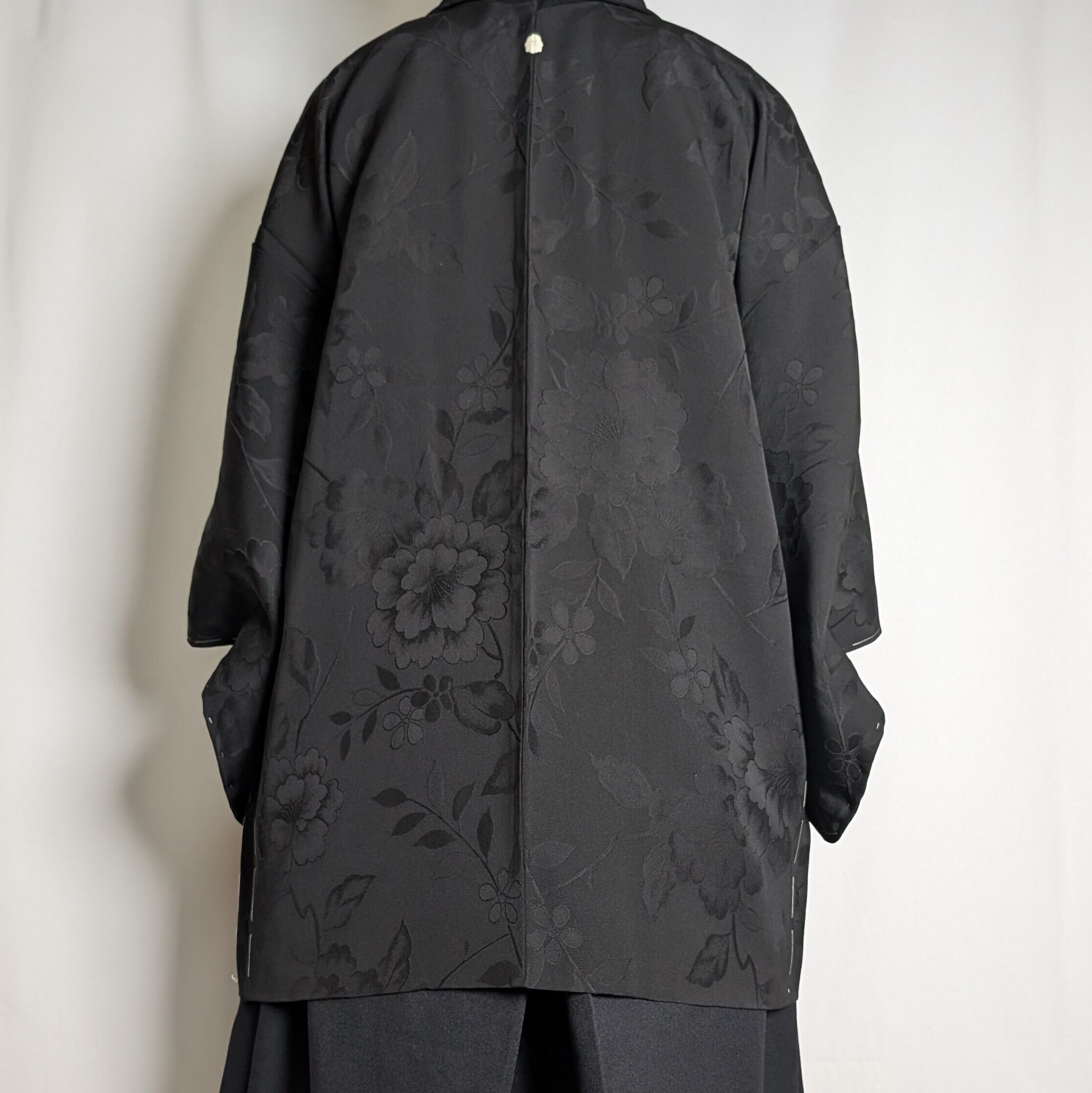 【14514】 ヴィンテージ 黒羽織 地模様 牡丹 和洋折衷コーデ / Japanese vintage kimono black haori jacket