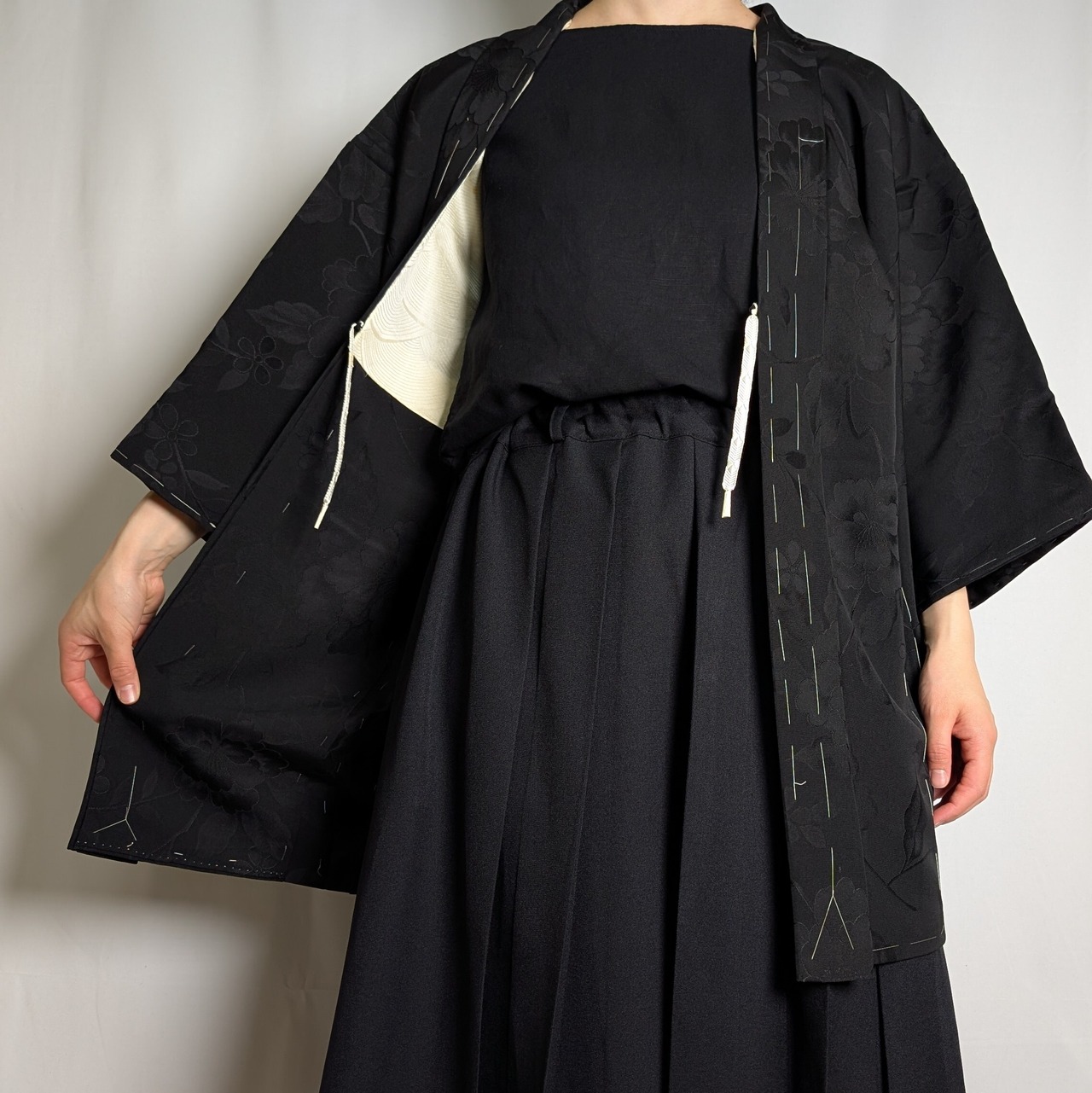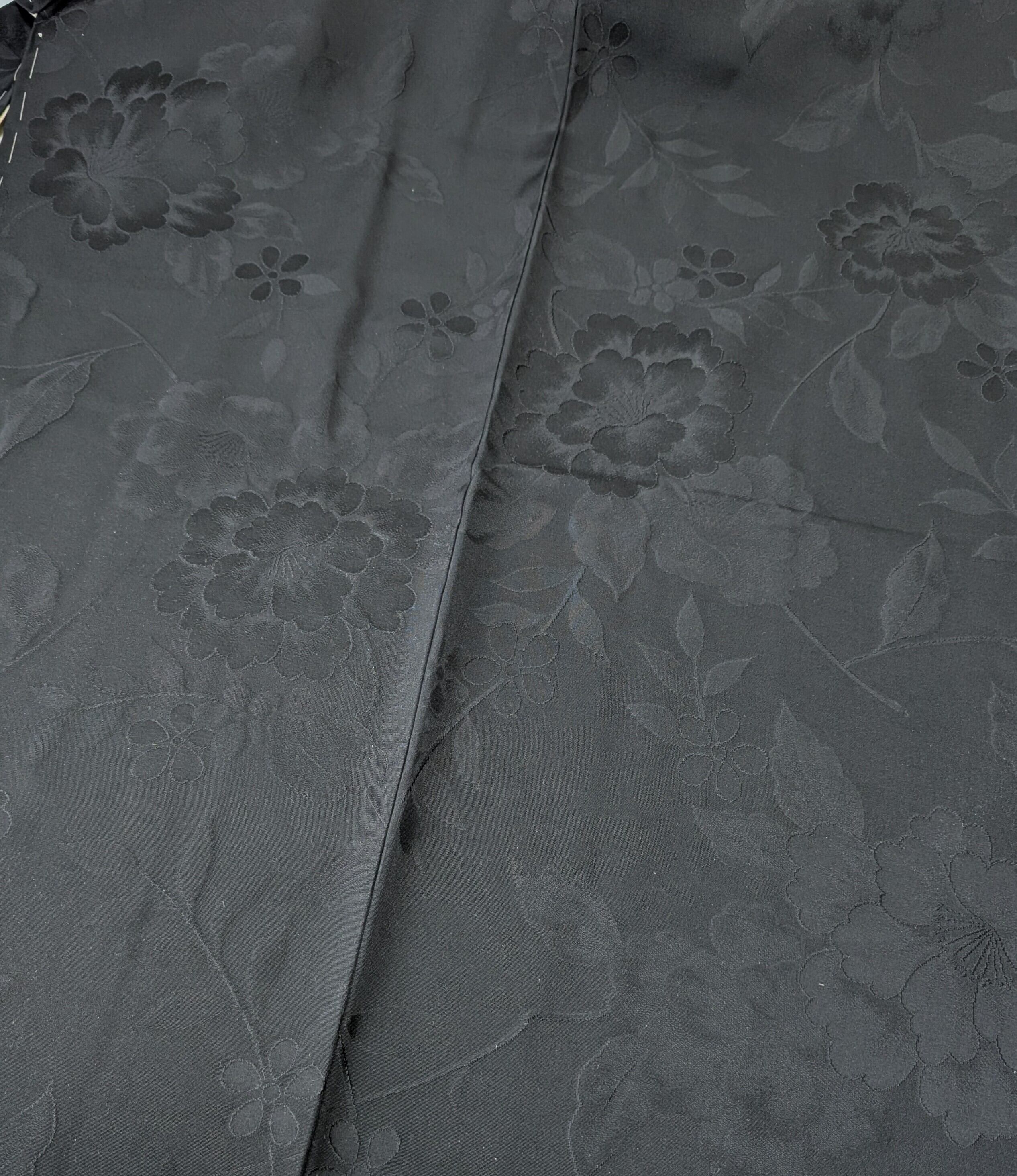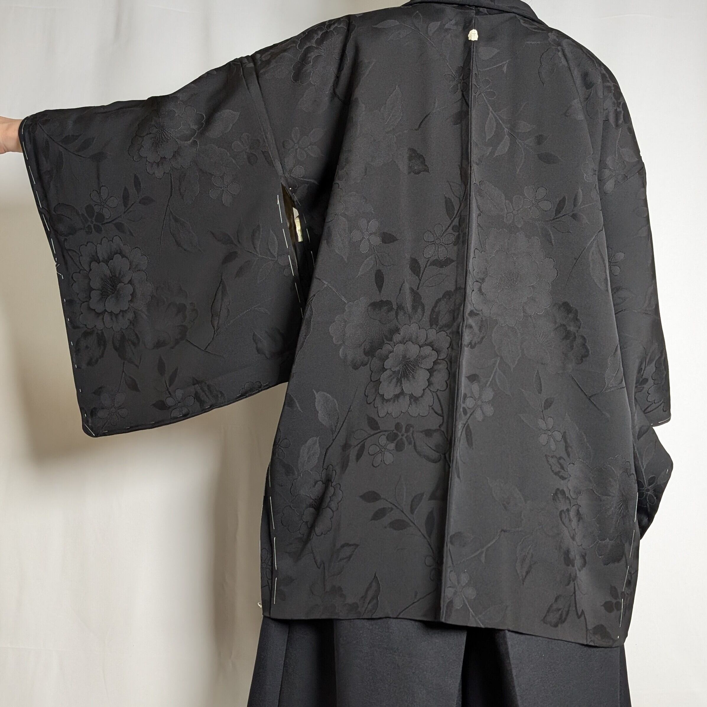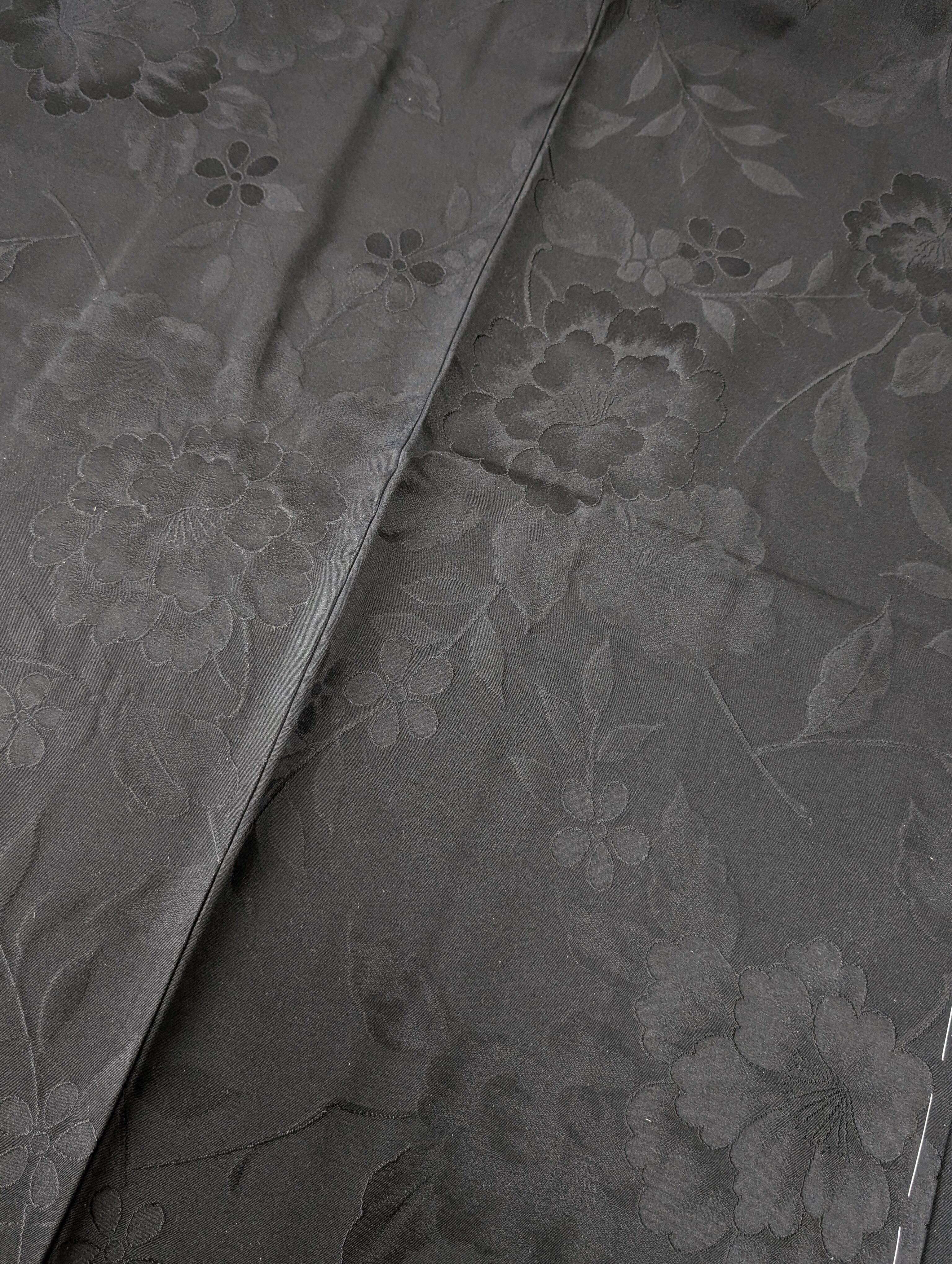 【14514】 ヴィンテージ 黒羽織 地模様 牡丹 和洋折衷コーデ / Japanese vintage kimono black haori jacket