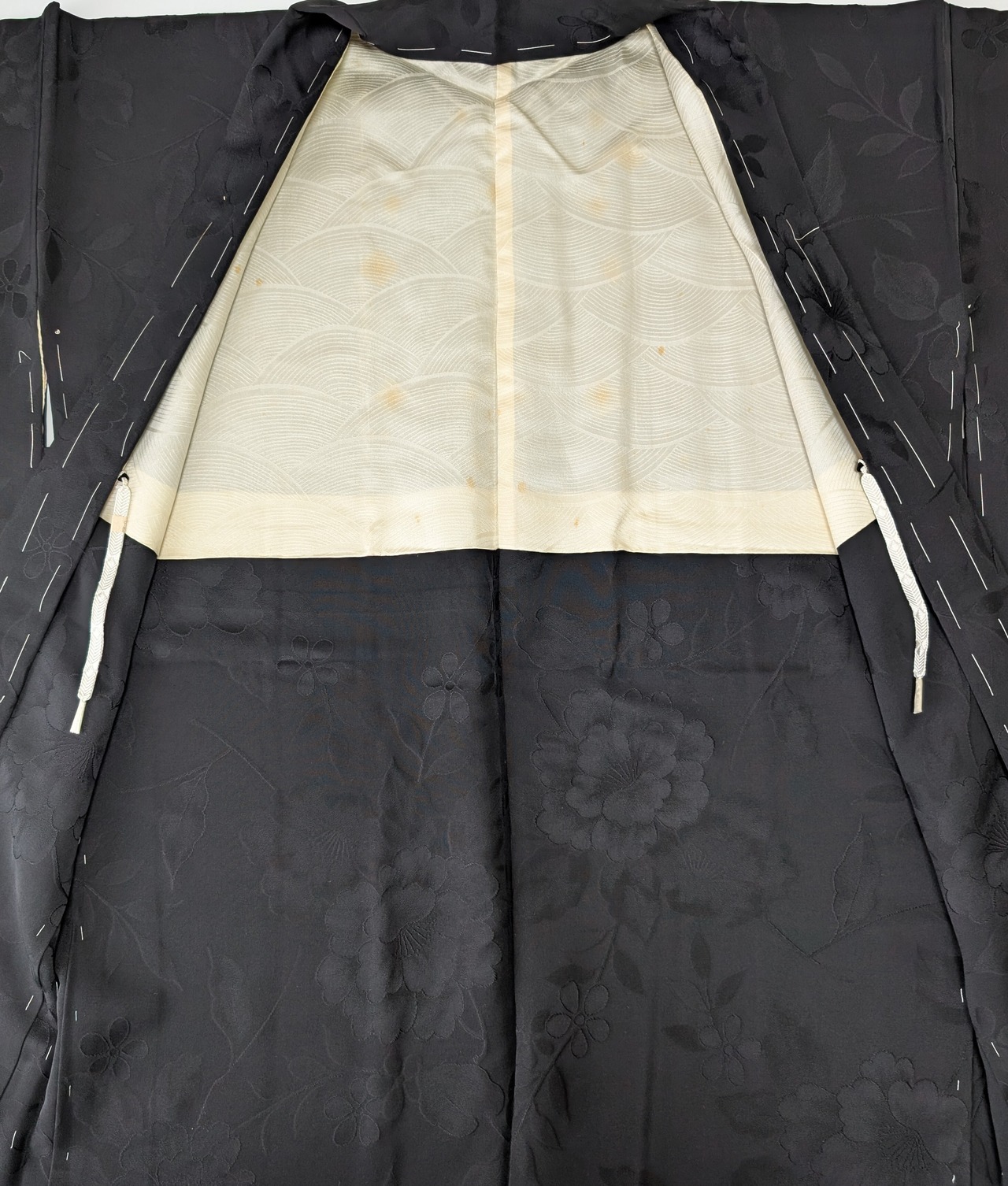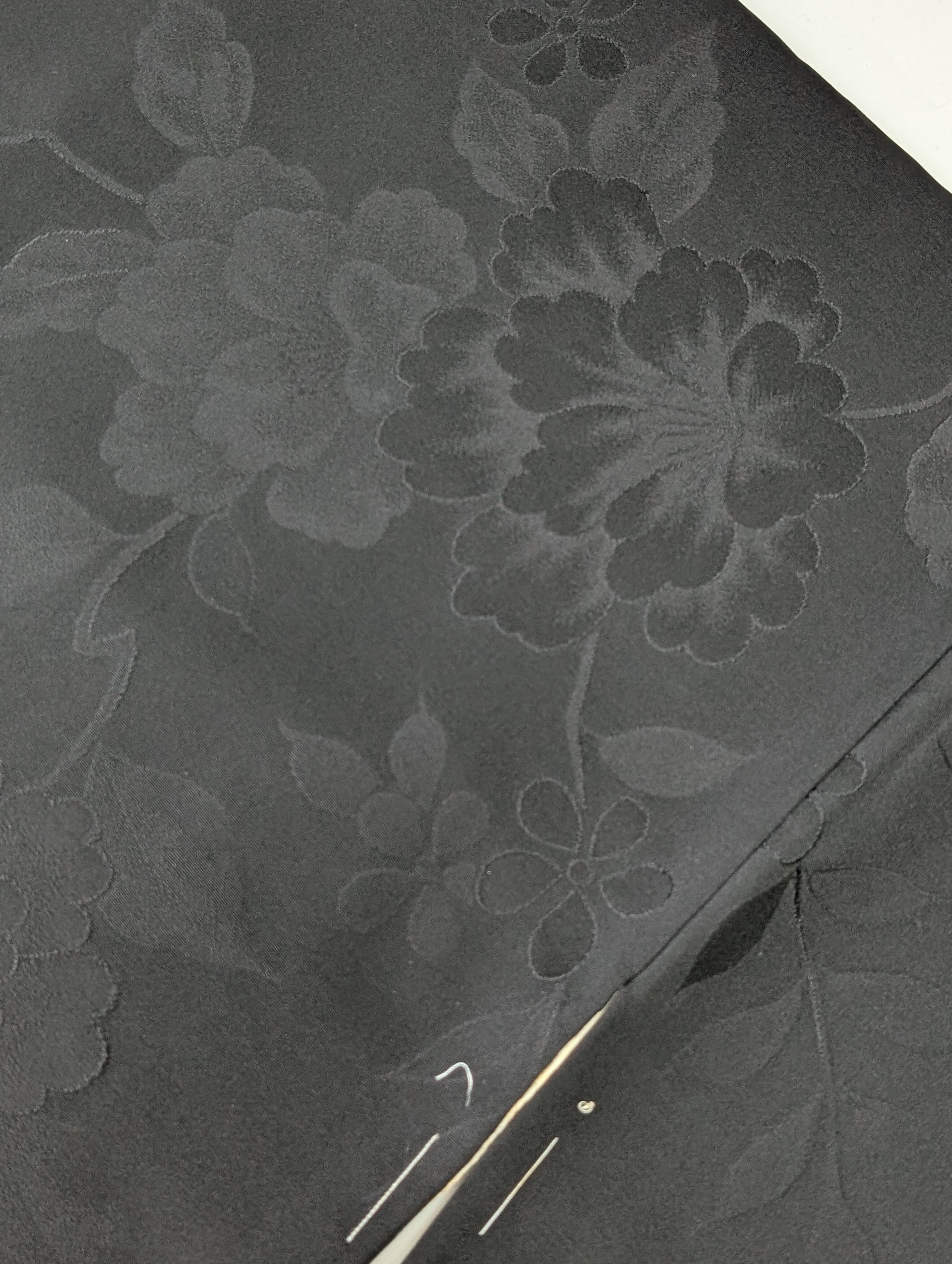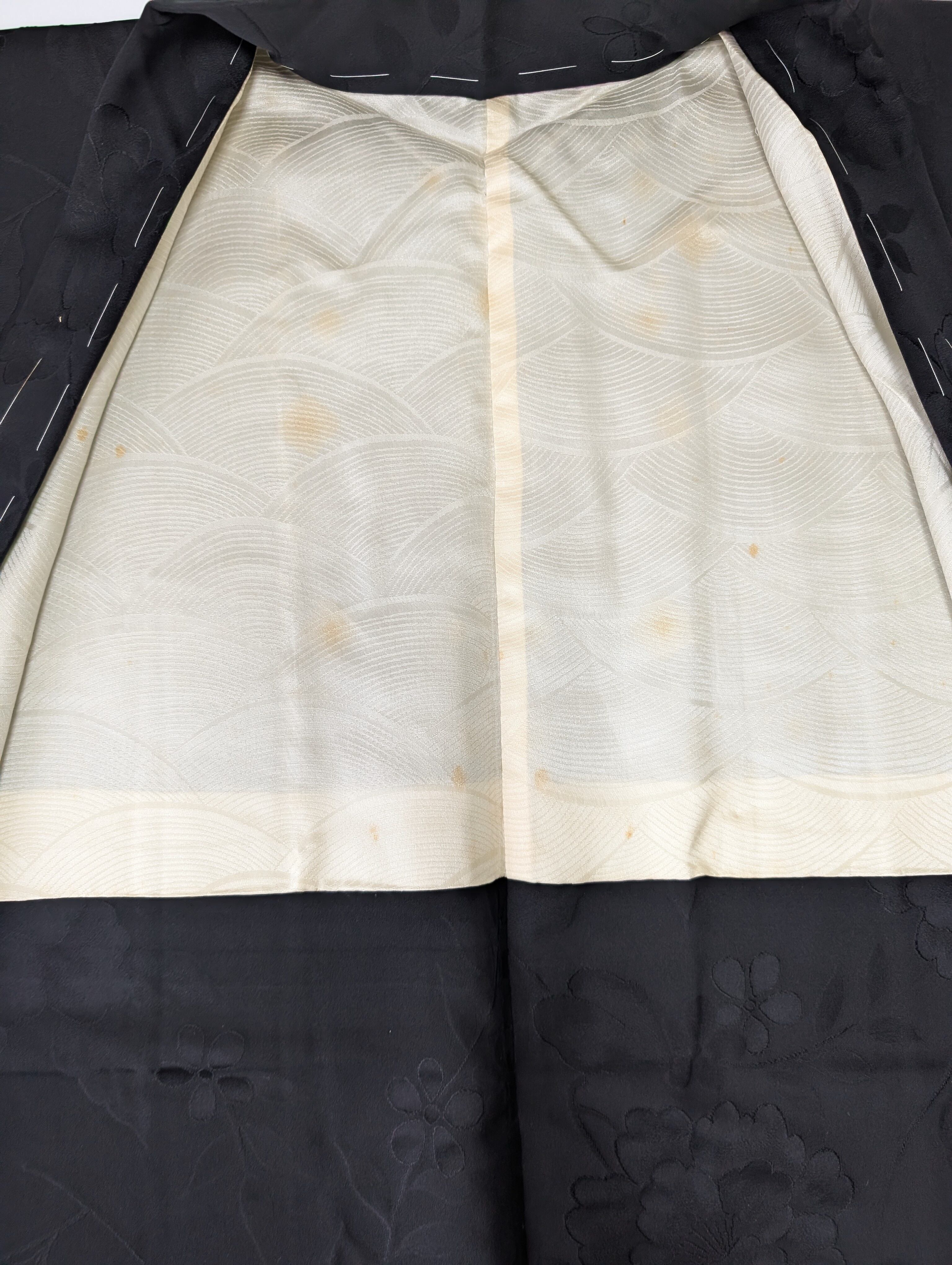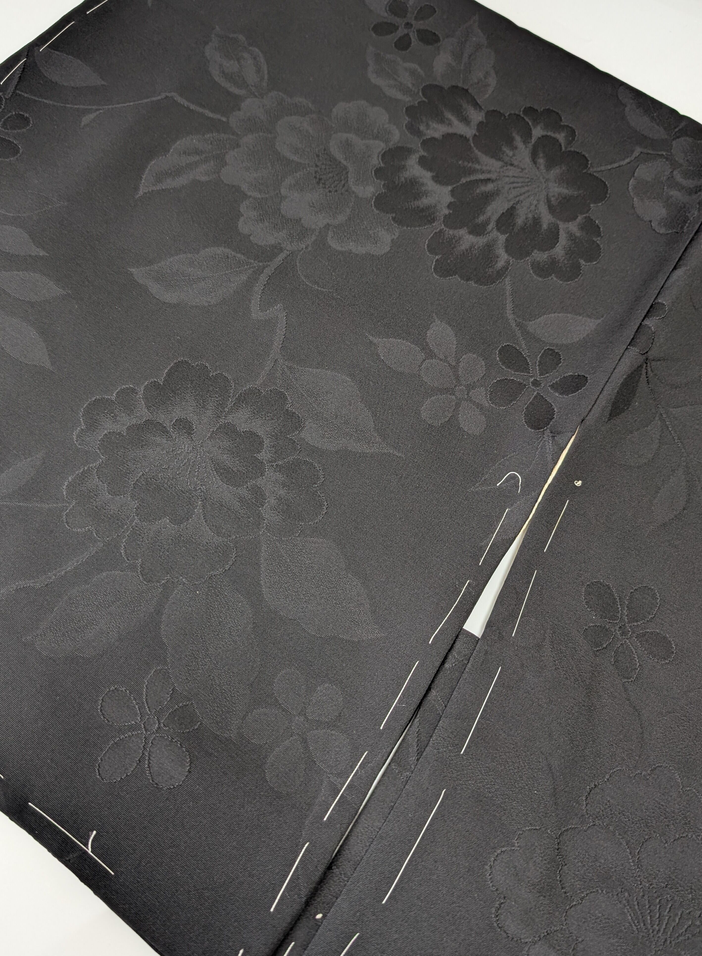 【14514】 ヴィンテージ 黒羽織 地模様 牡丹 和洋折衷コーデ / Japanese vintage kimono black haori jacket