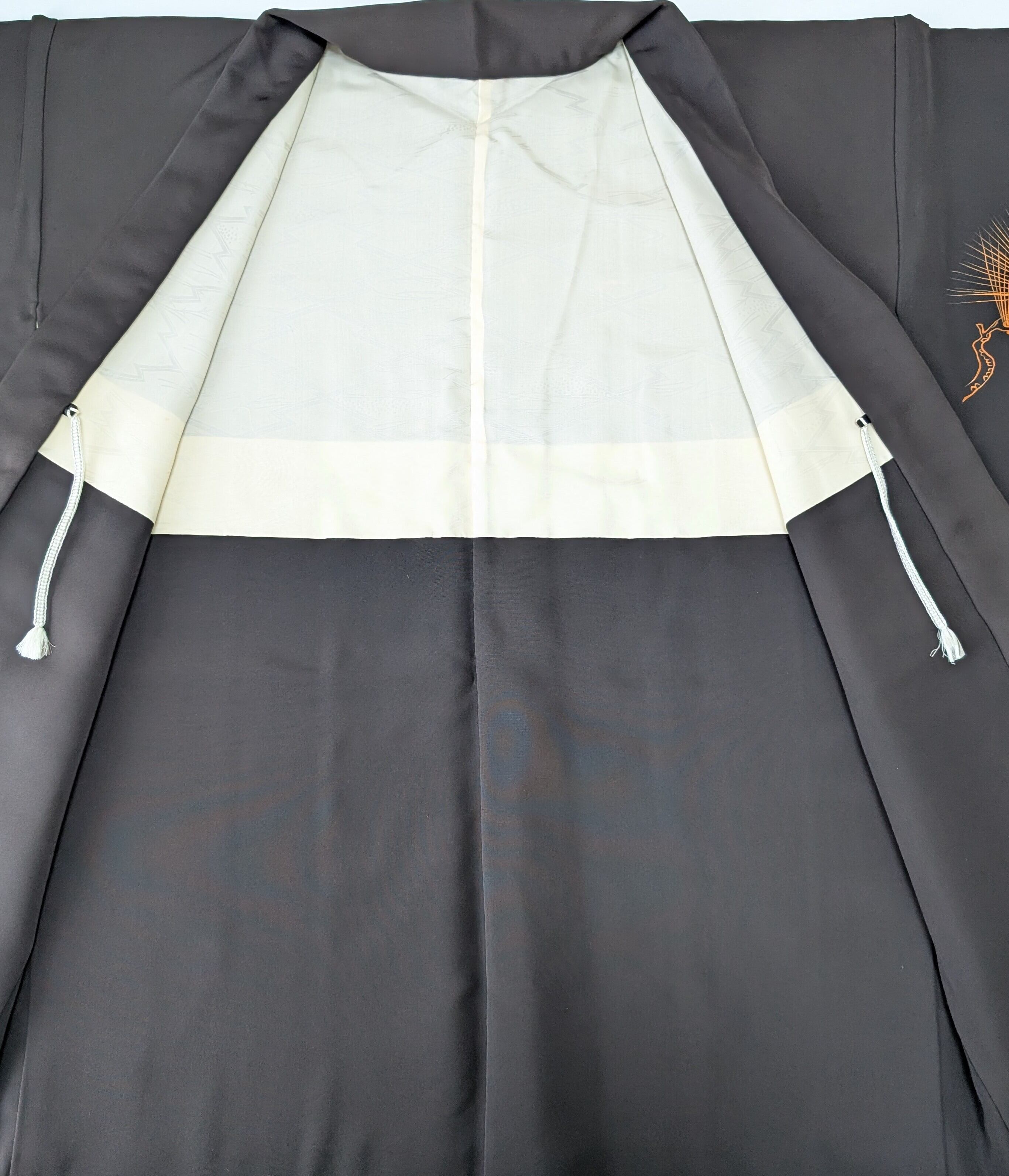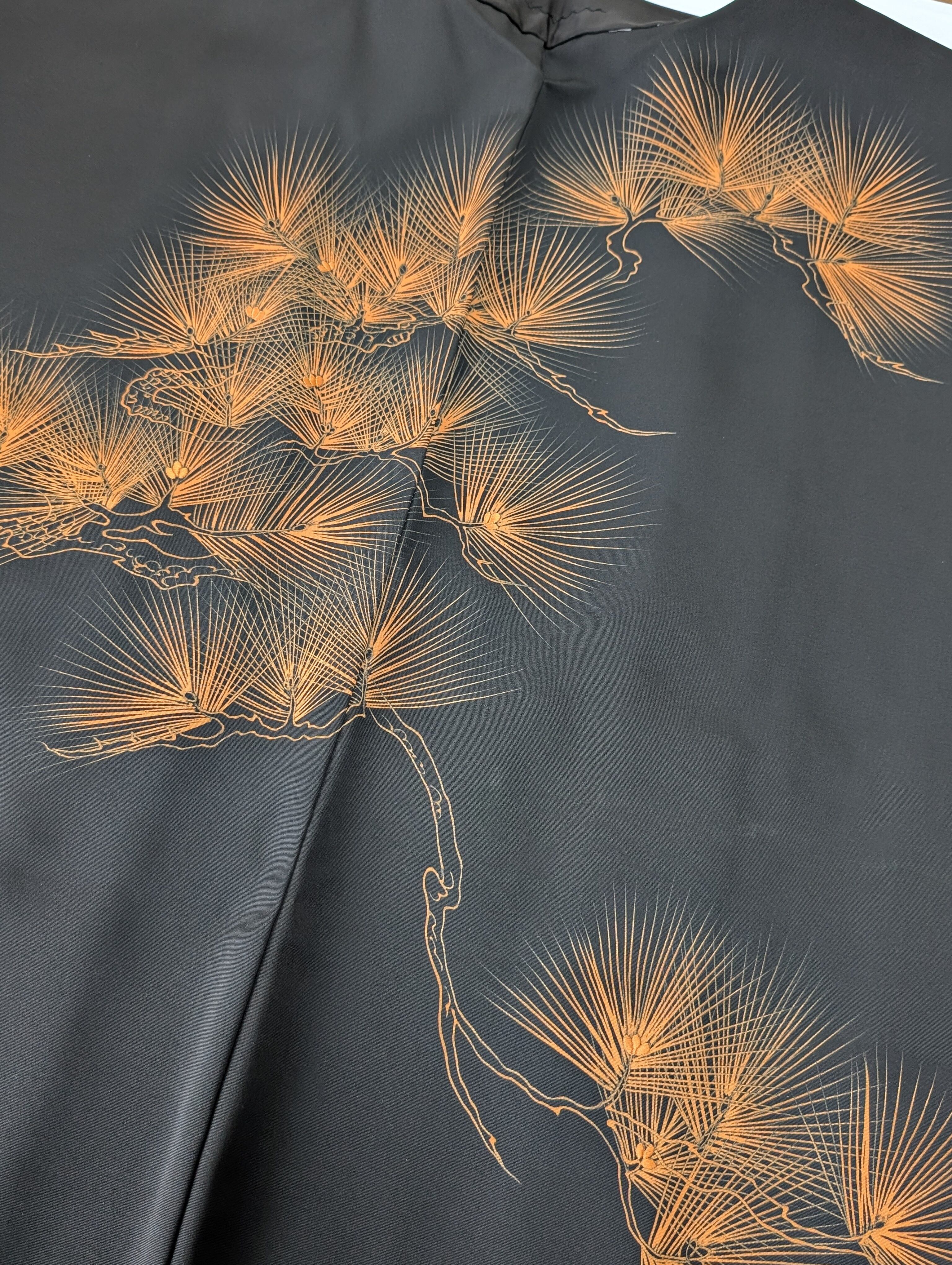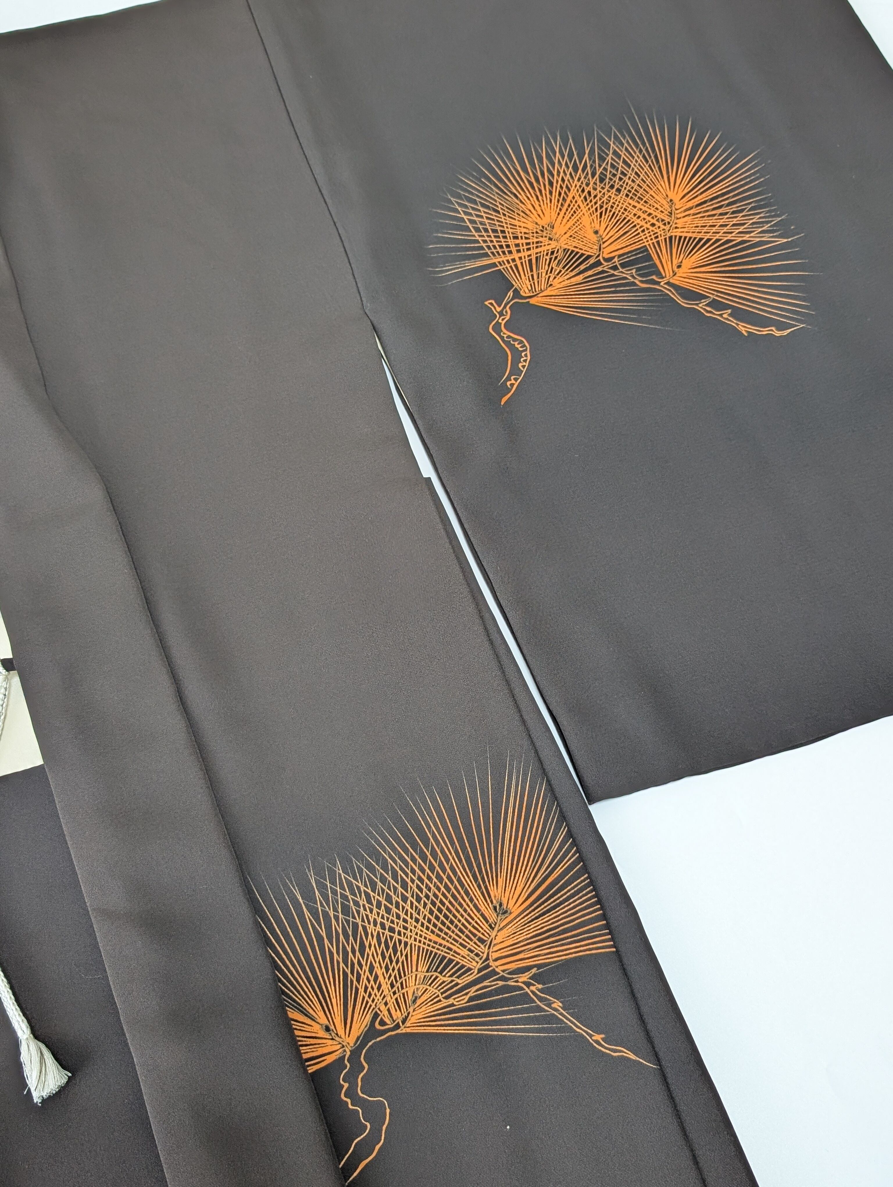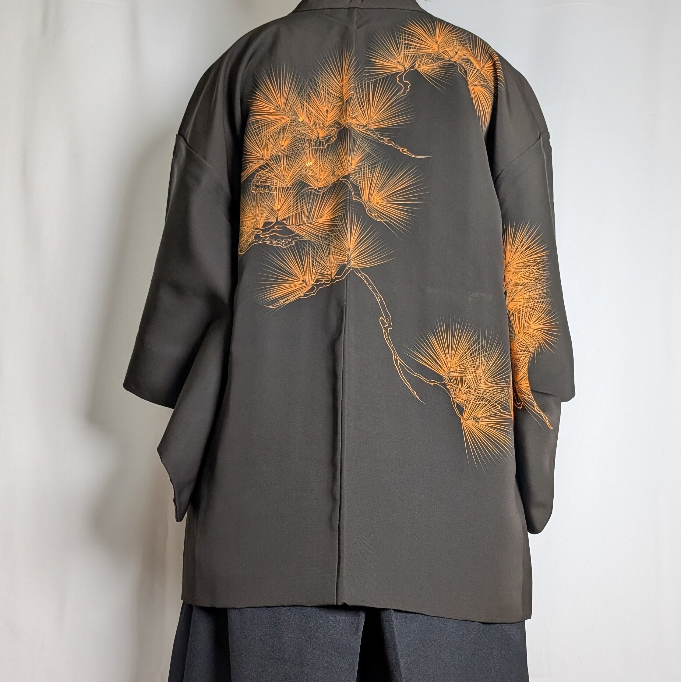 【14515】 ヴィンテージ 羽織 茶色 松模様 刺繍 オレンジ 和洋折衷コーデ / Japanese vintage kimono black haori jacket