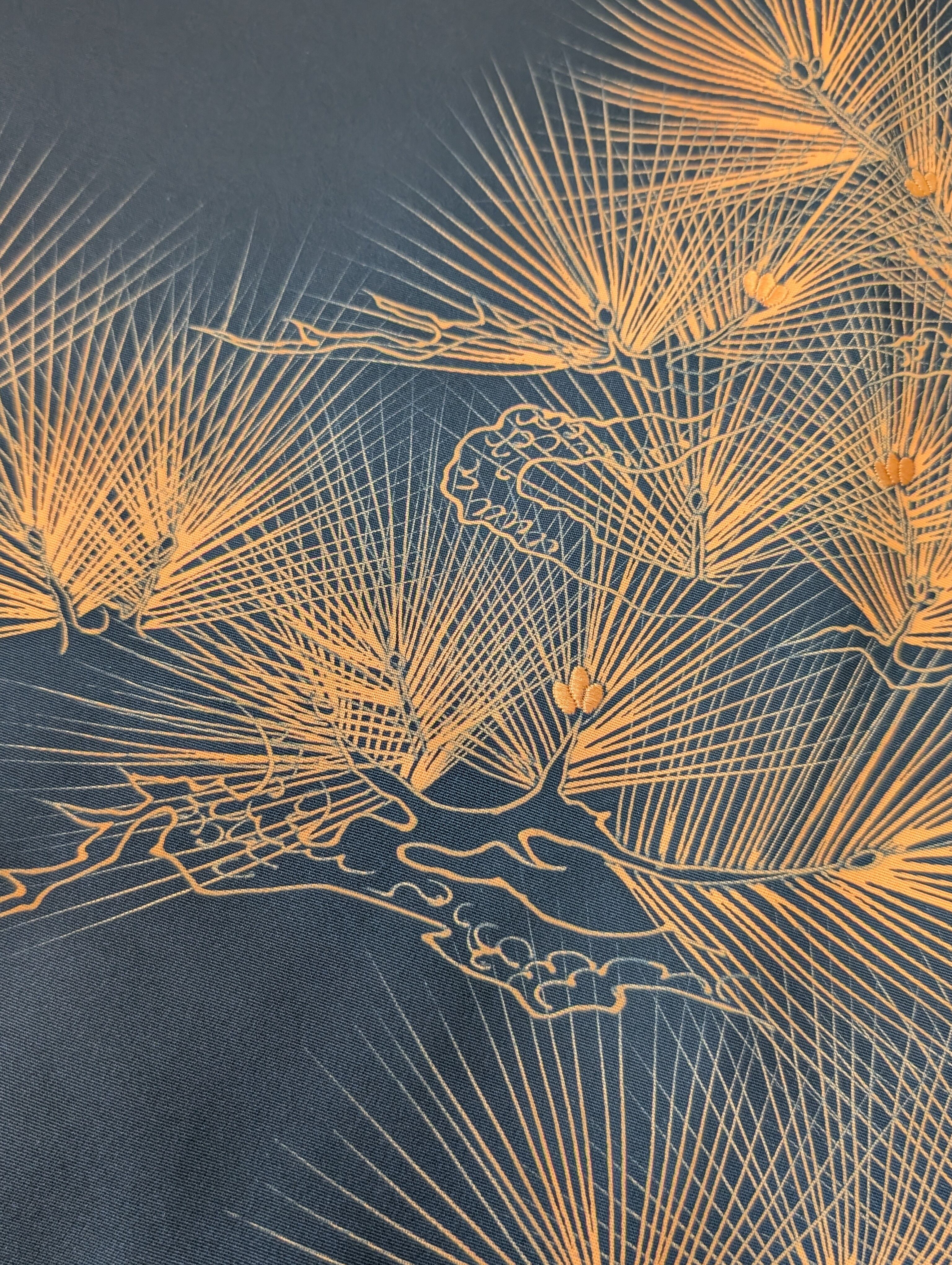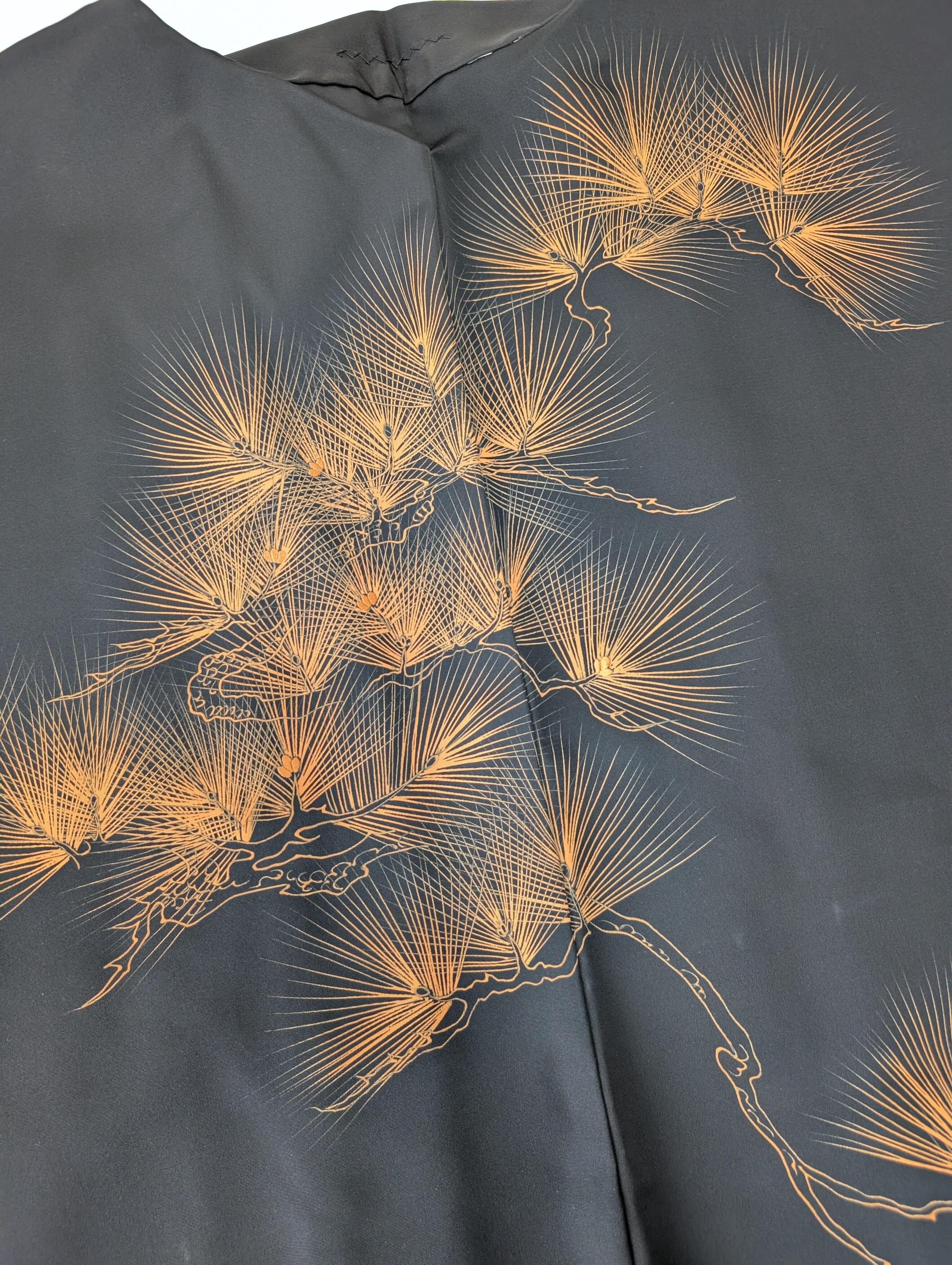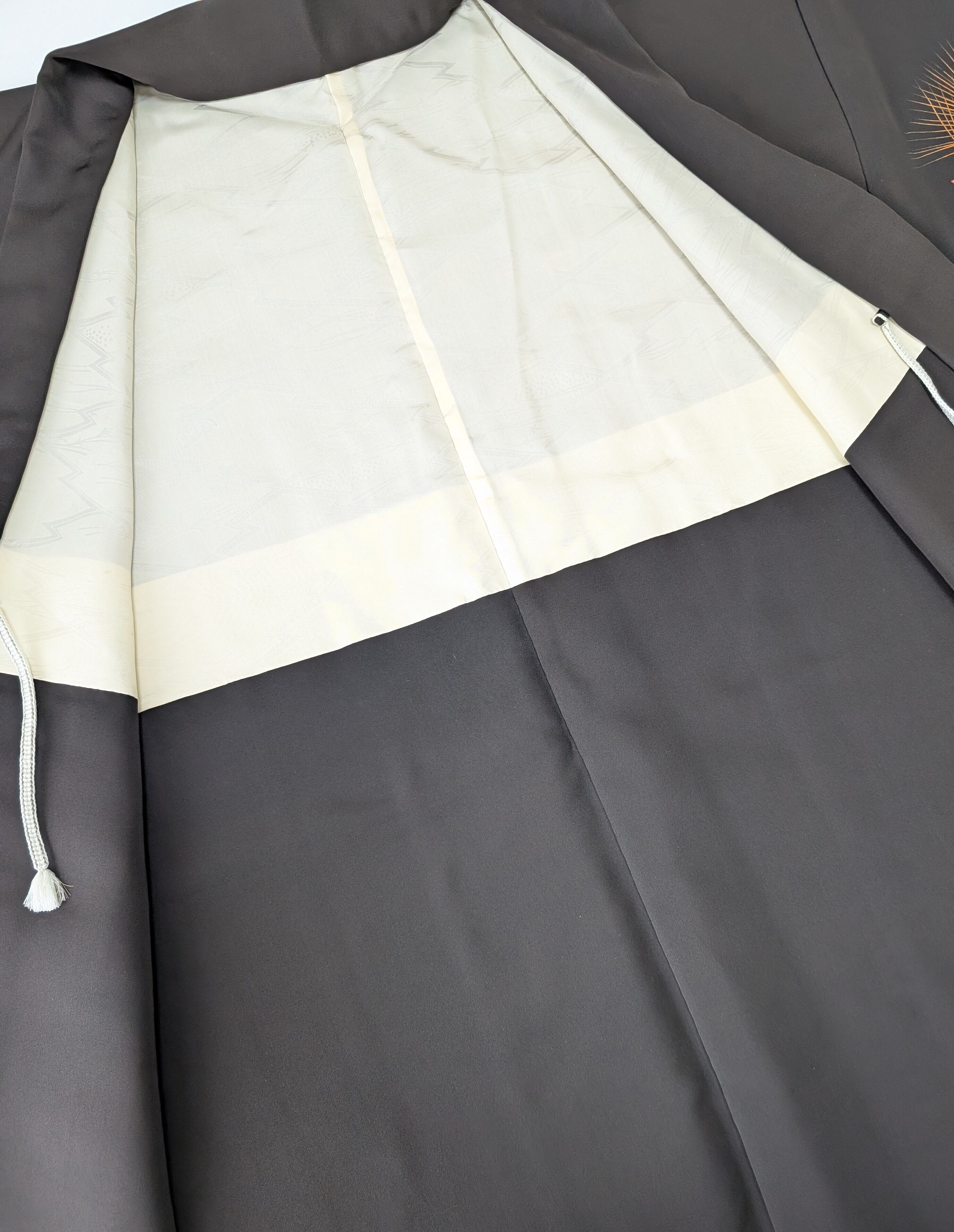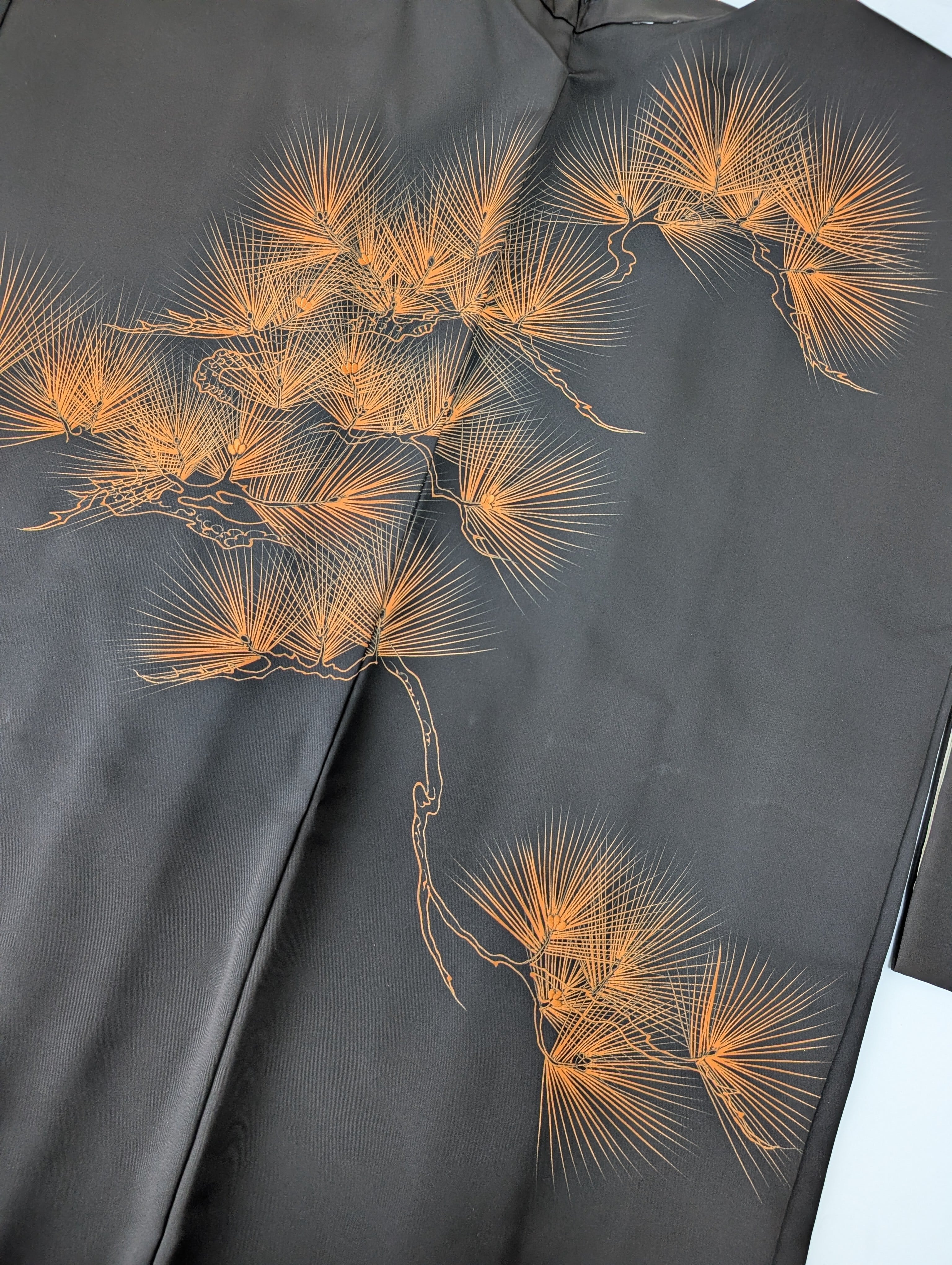 【14515】 ヴィンテージ 羽織 茶色 松模様 刺繍 オレンジ 和洋折衷コーデ / Japanese vintage kimono black haori jacket
