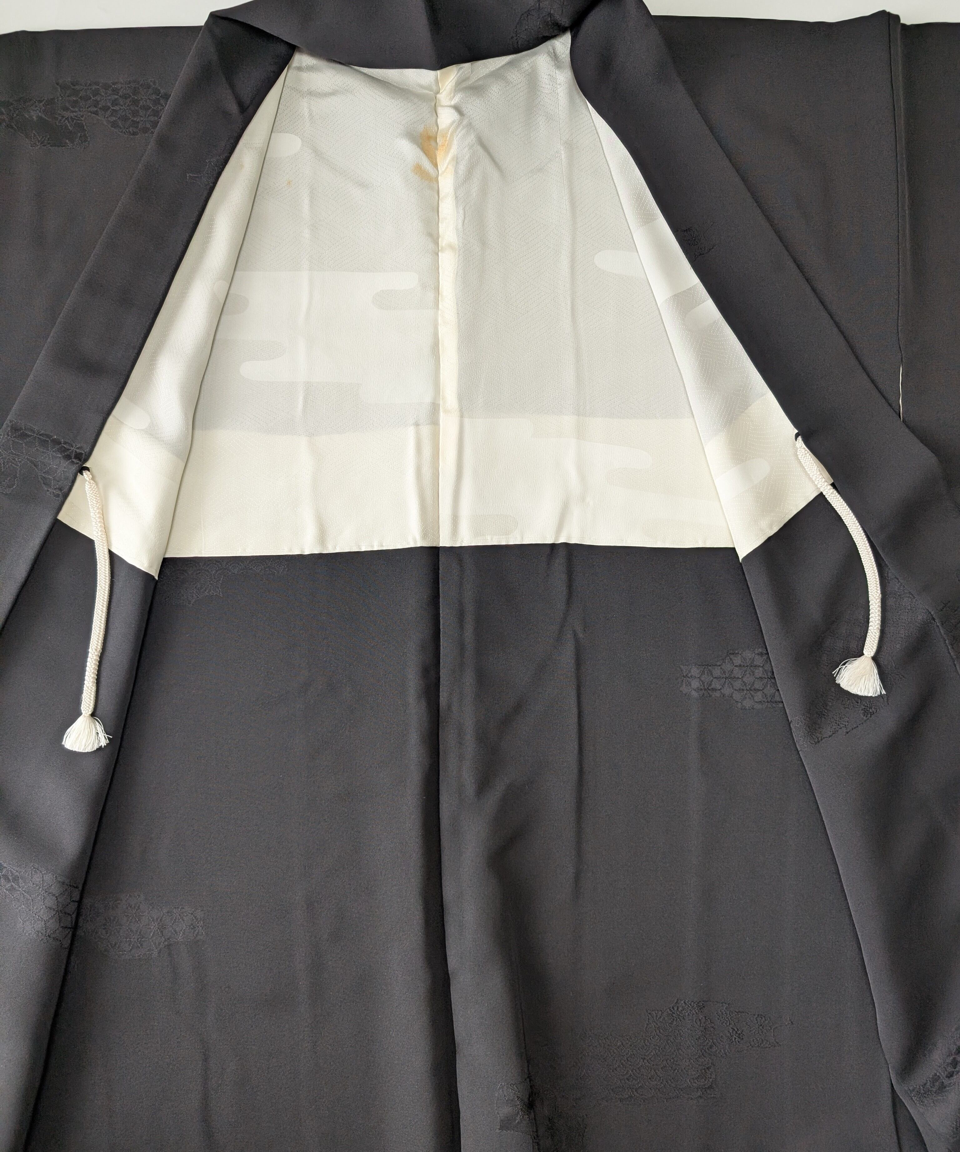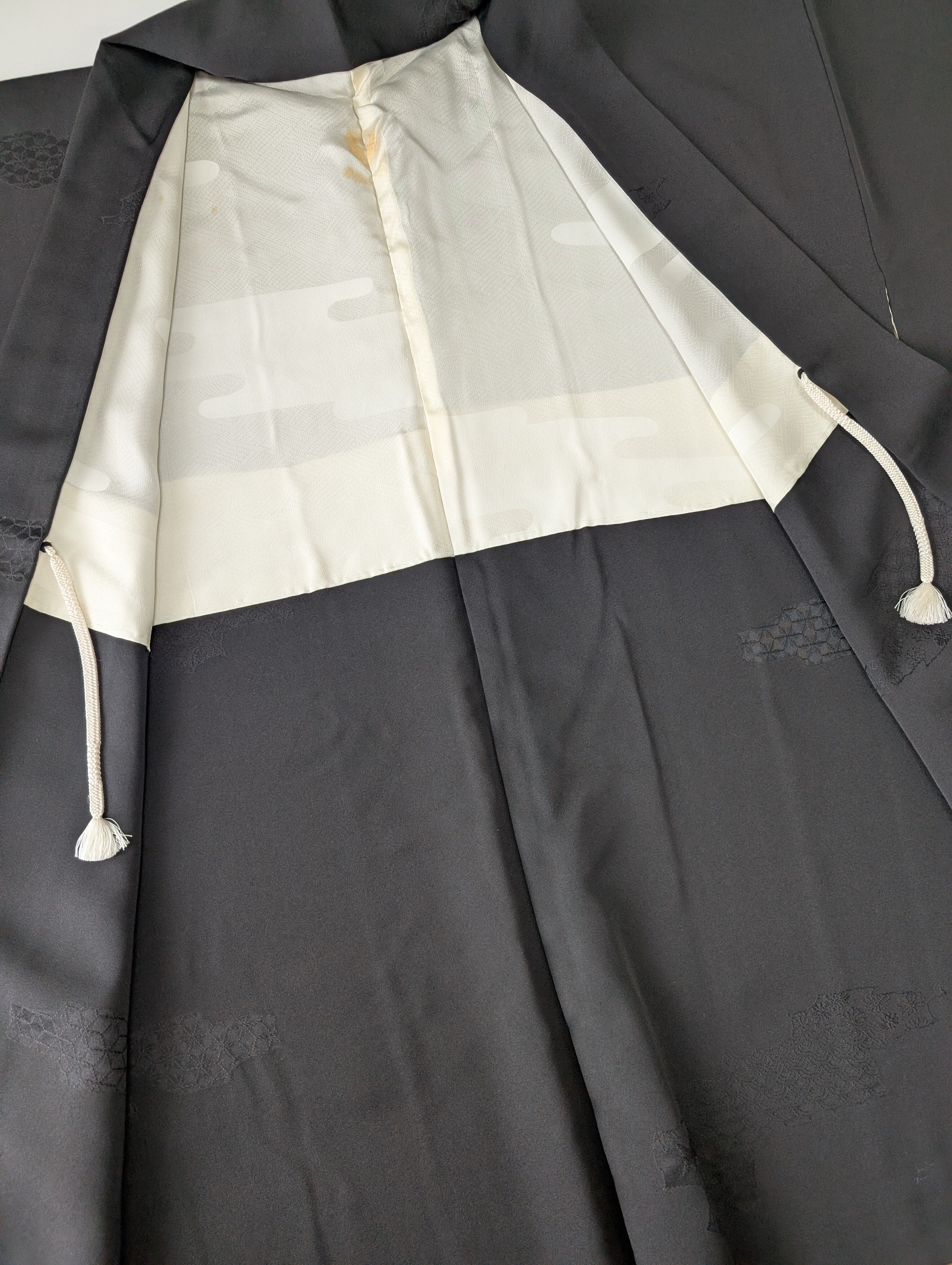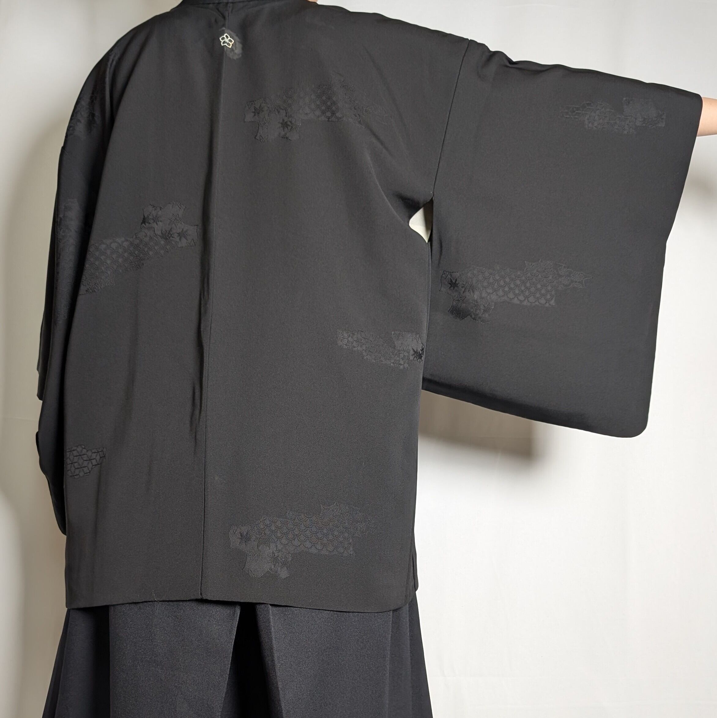 【14518】 ヴィンテージ 黒羽織 地模様 和洋折衷コーデ / Japanese vintage kimono black haori jacket