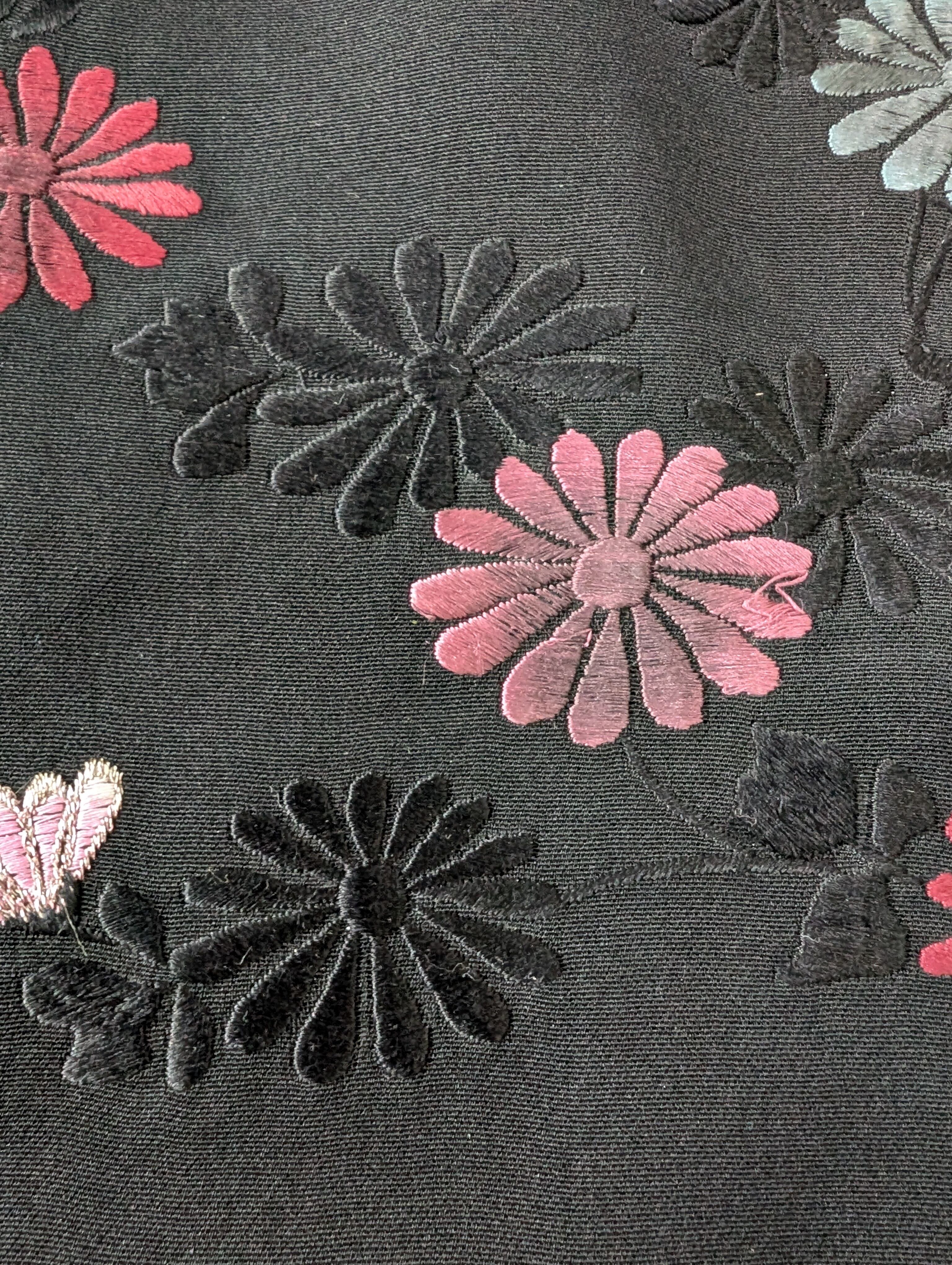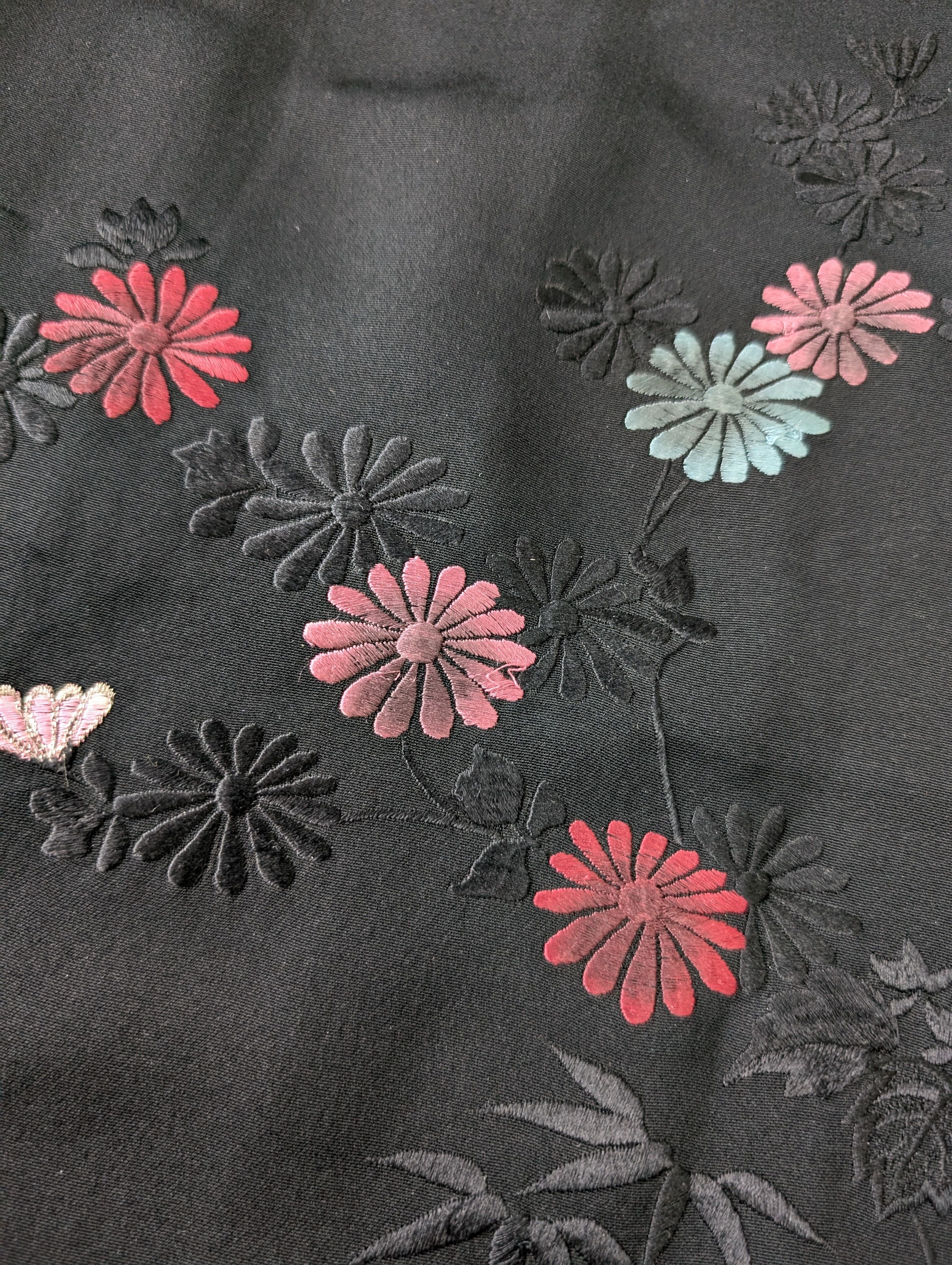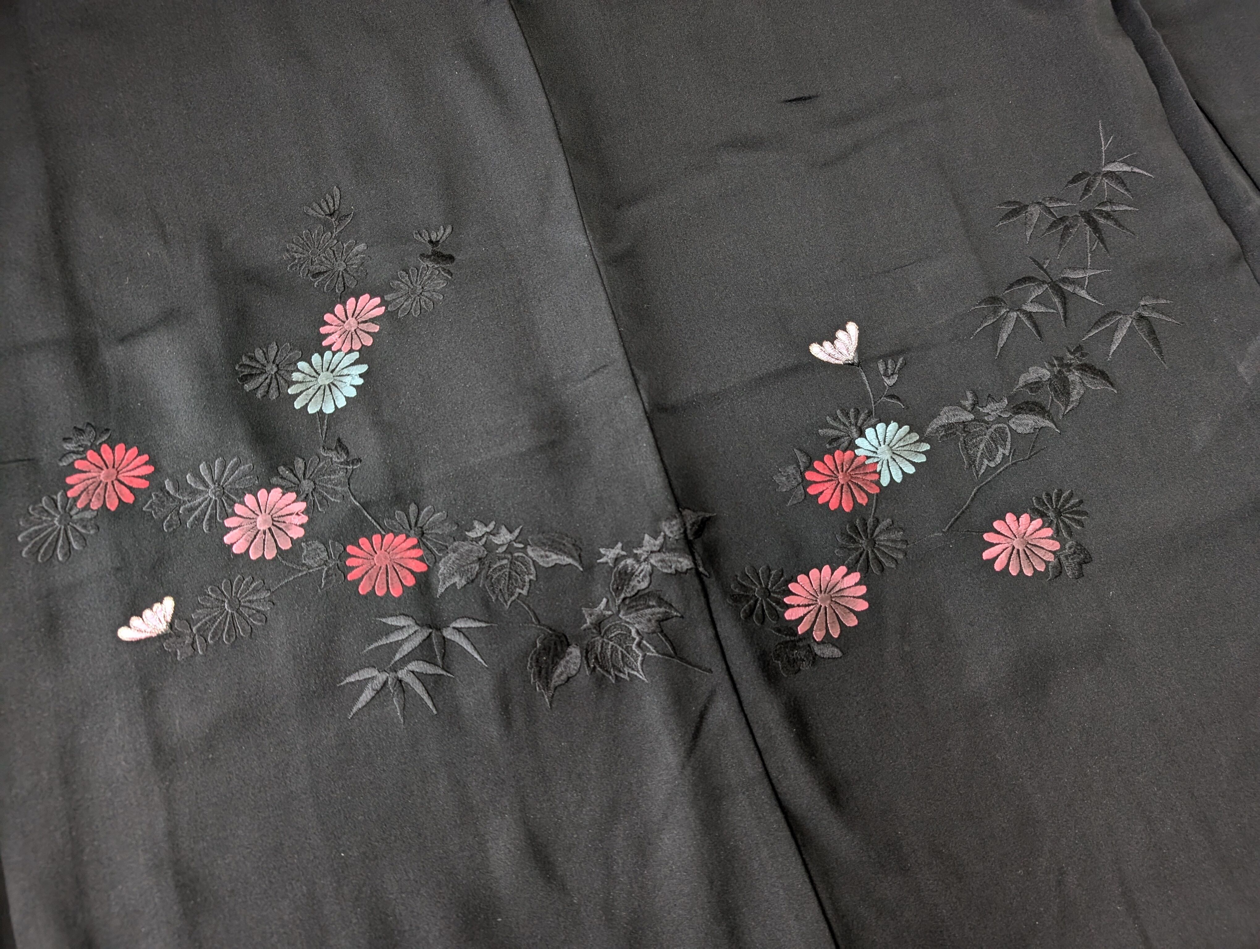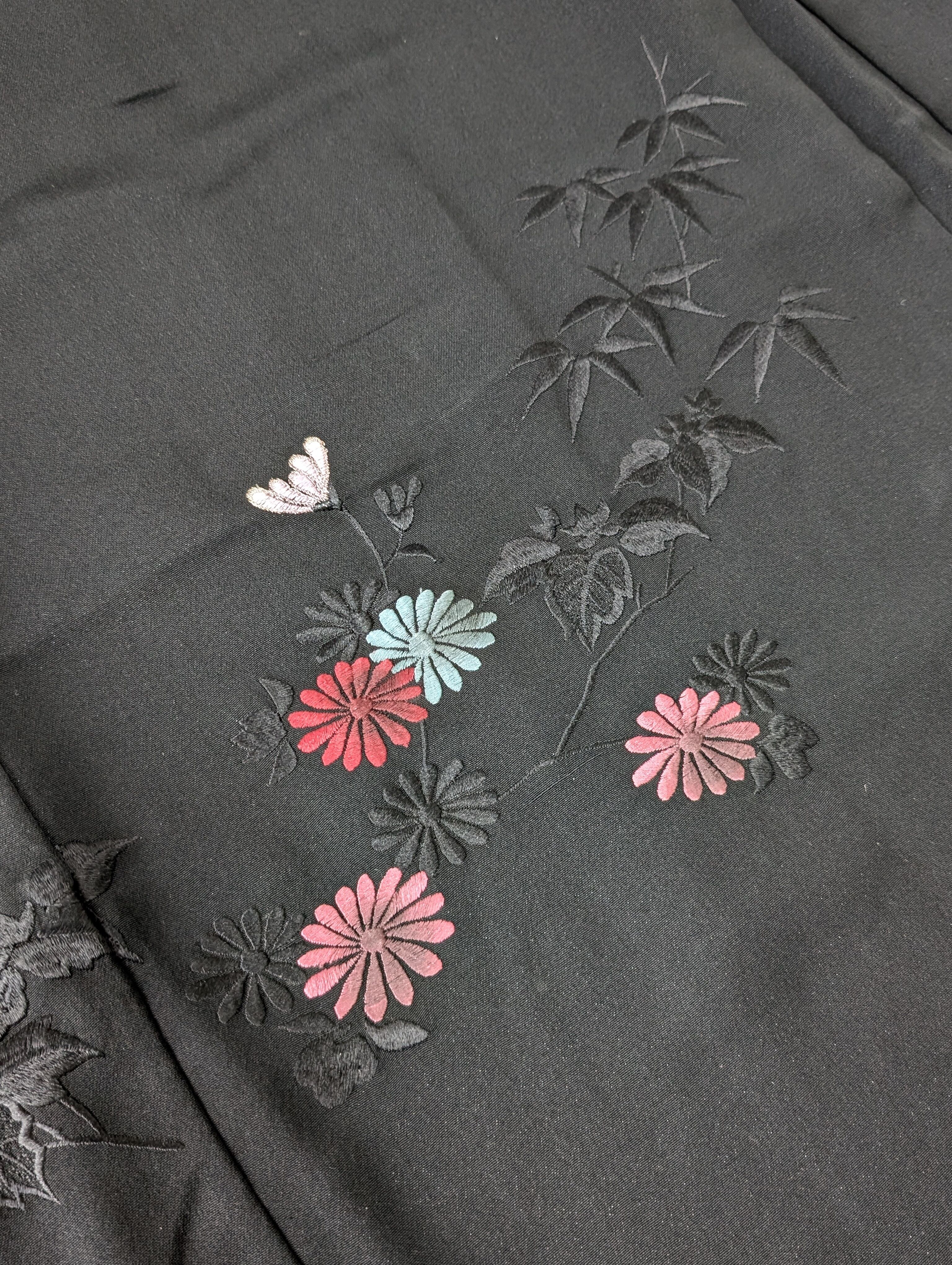 【14520】 ヴィンテージ 黒羽織 刺繍 菊 和洋折衷コーデ / Japanese vintage kimono black haori jacket