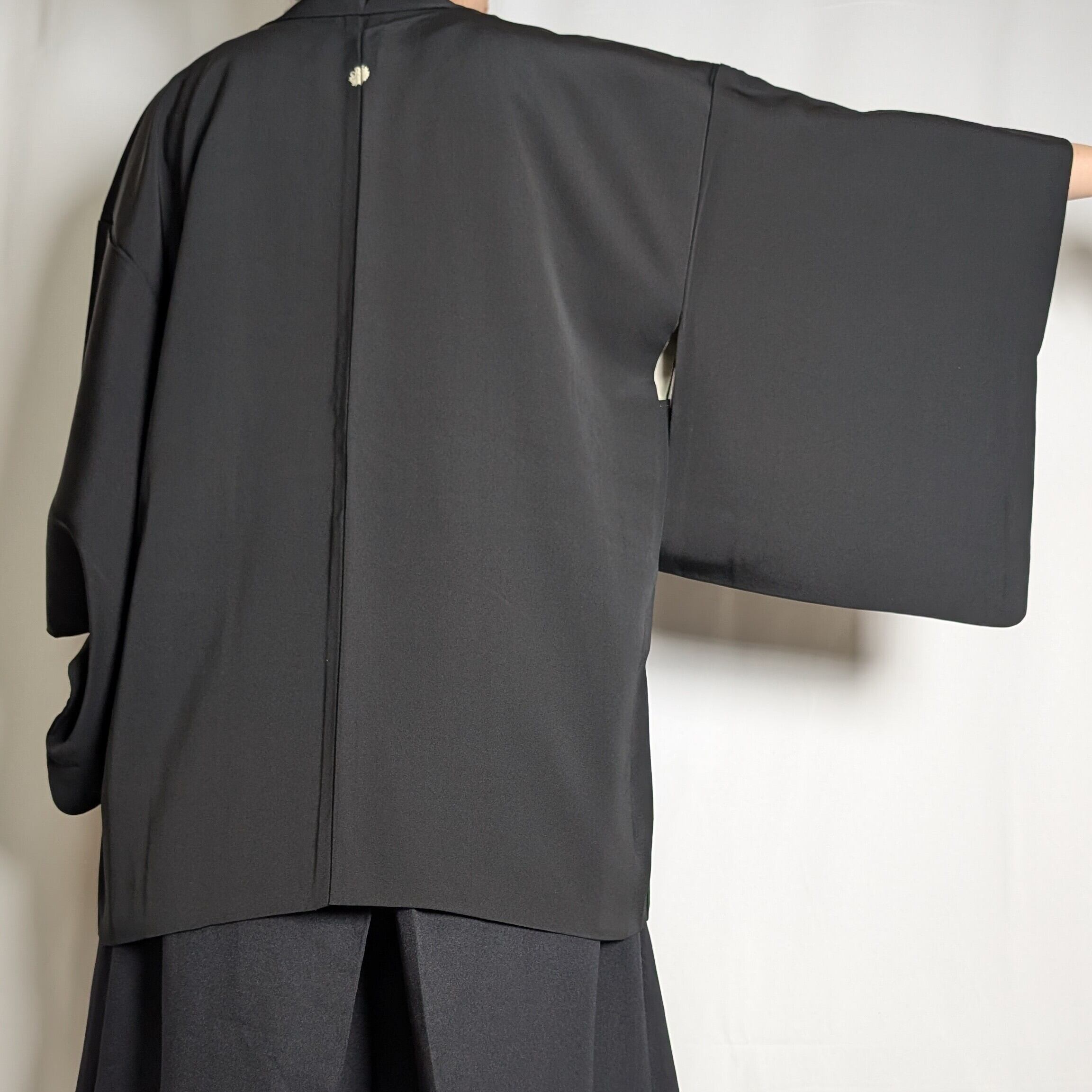 【14523】 ヴィンテージ 黒羽織 シンプル 無地 和洋折衷コーデ / Japanese vintage kimono black haori jacket