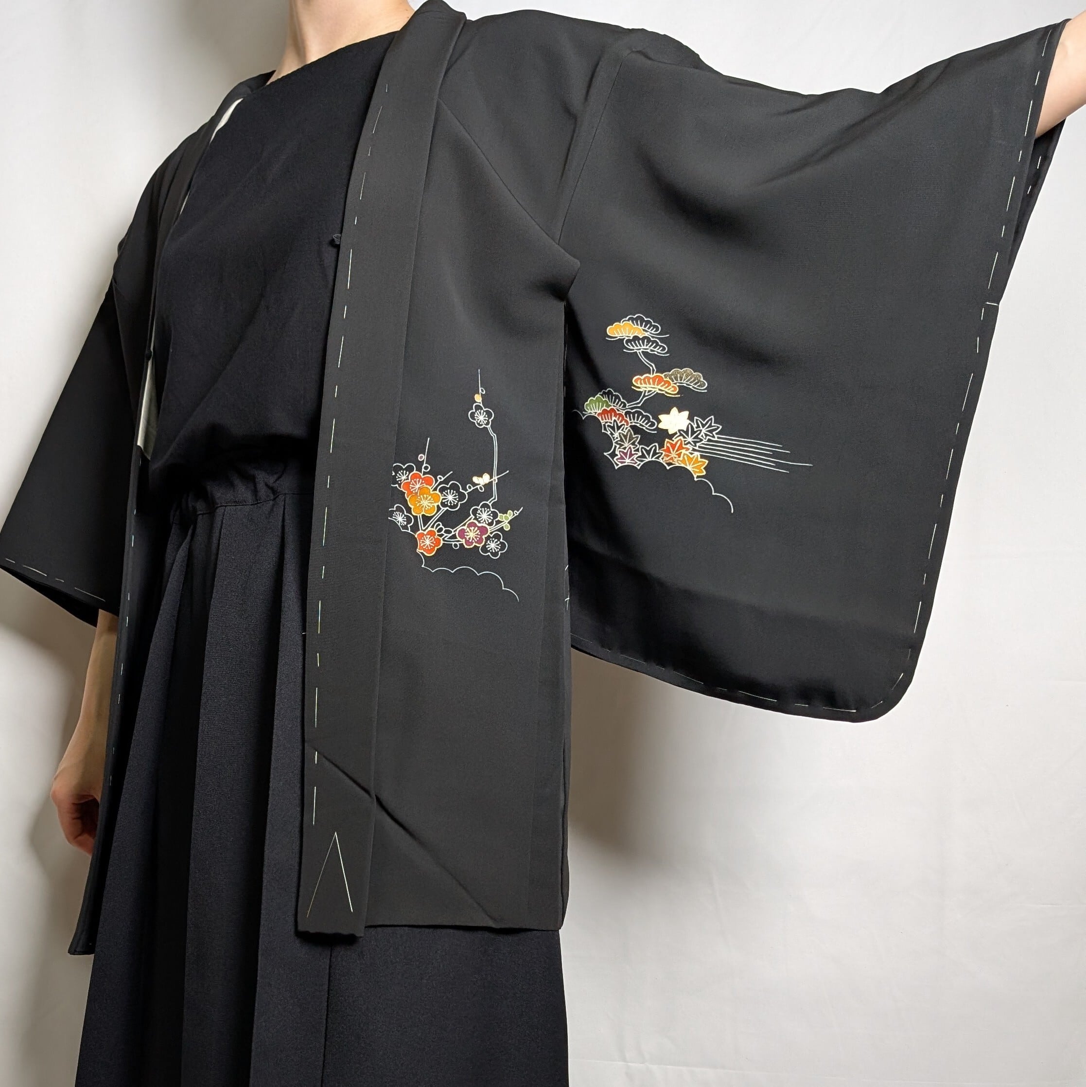 【14533】 ヴィンテージ 黒羽織 和洋折衷コーデ / Japanese vintage kimono black haori jacket