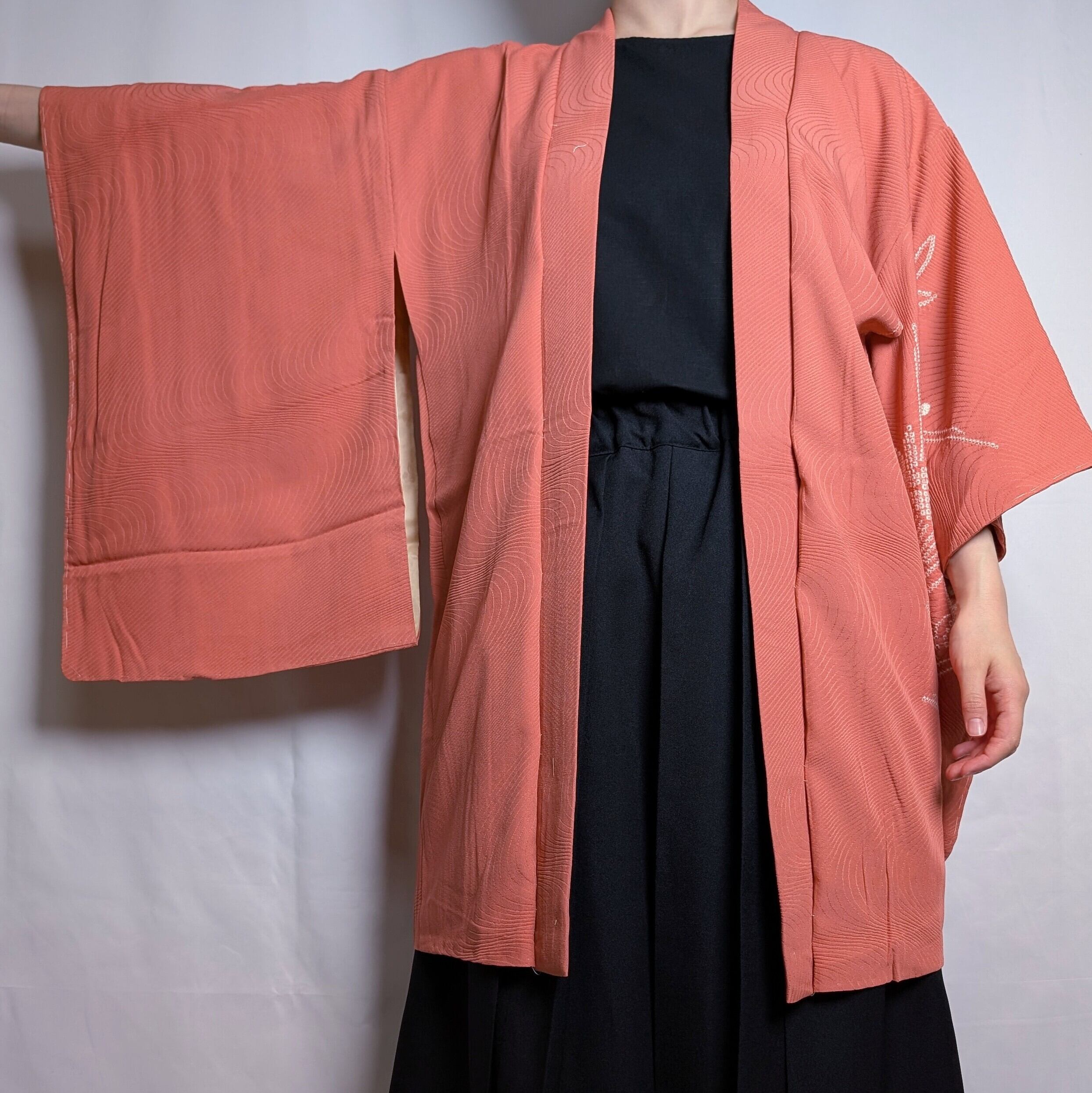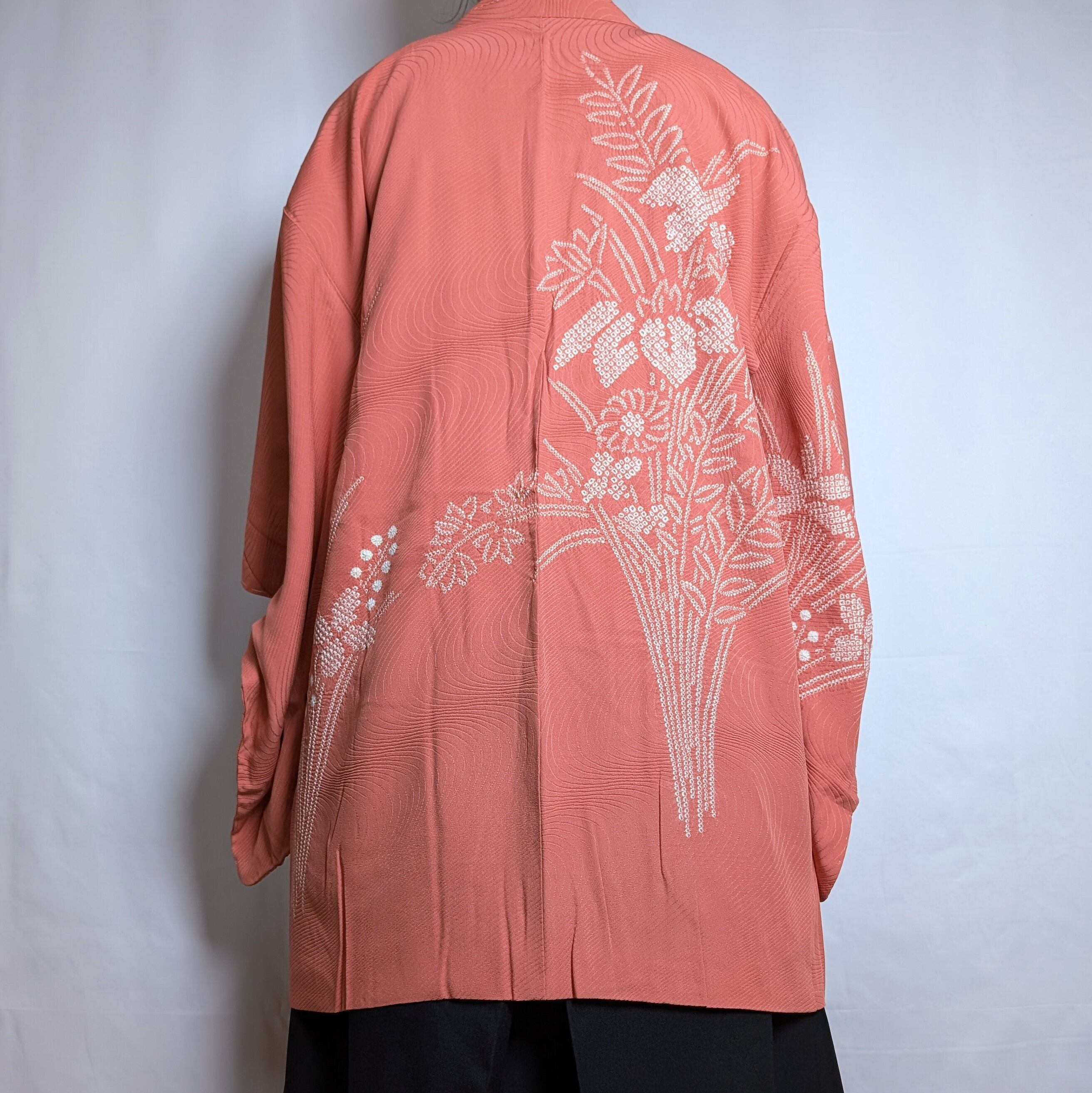 【14541】 色羽織 ピンク 絞り模様 花 ヴィンテージ 和洋折衷コーデ / Japanese vintage kimono haori jacket