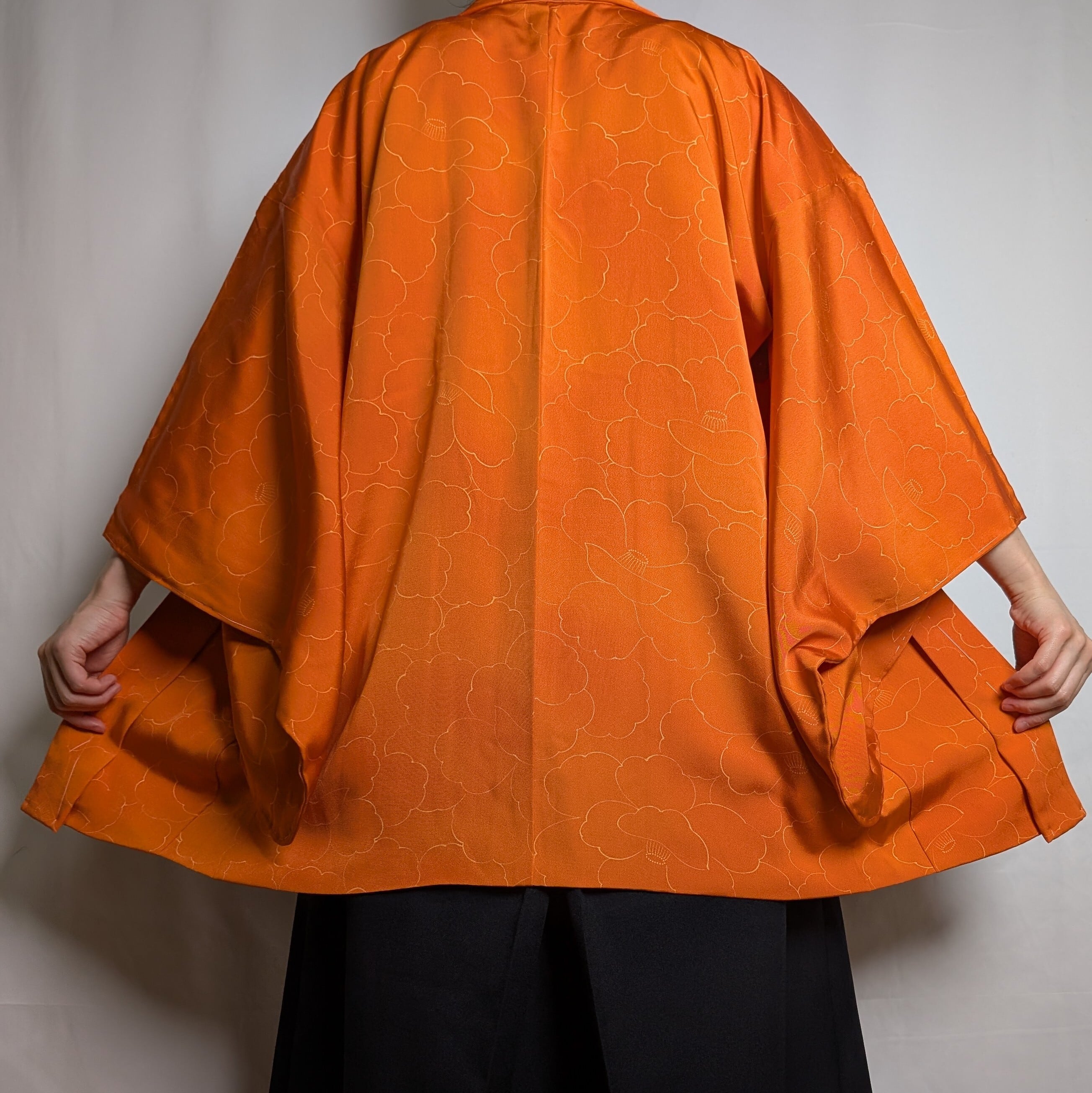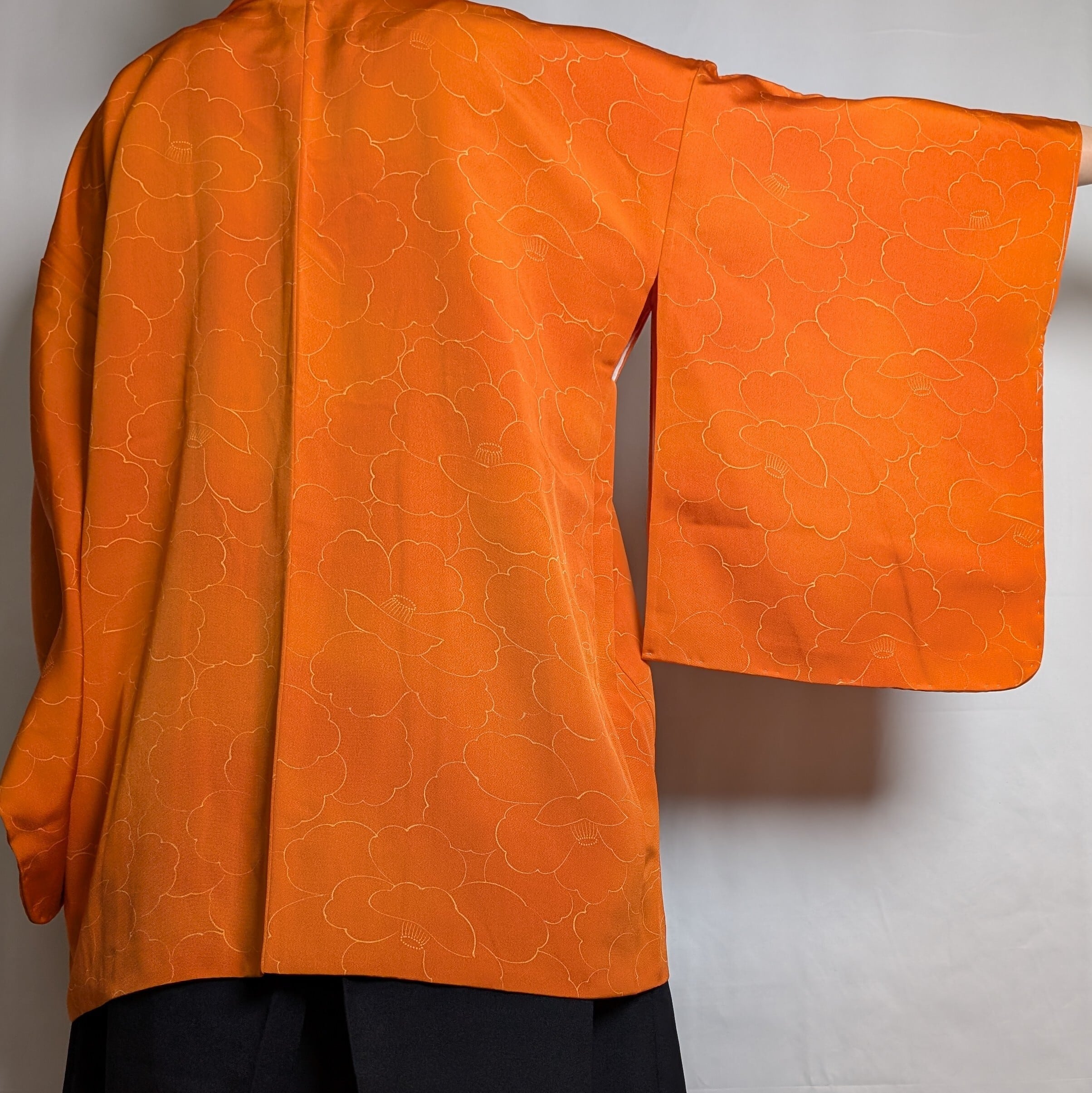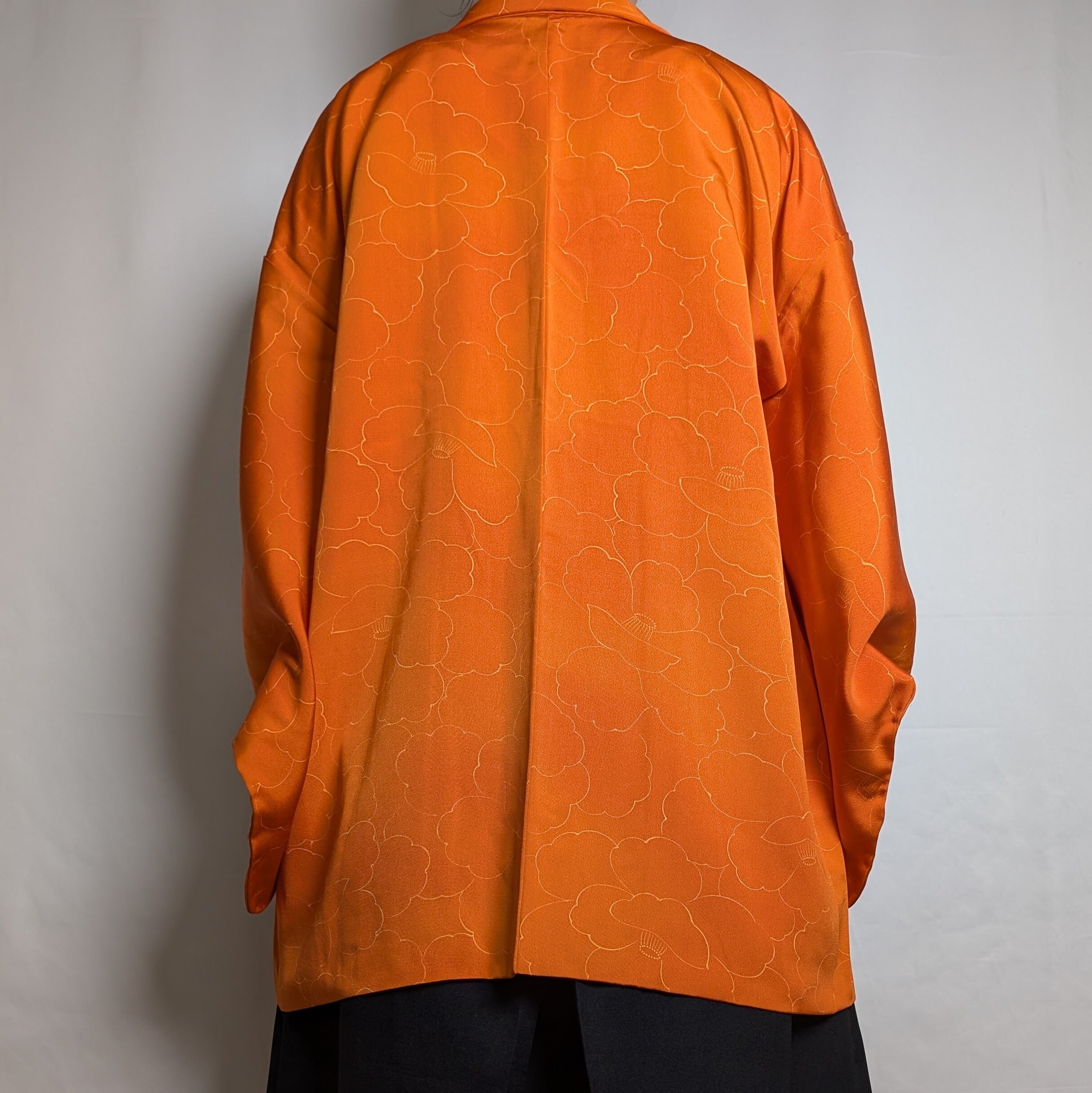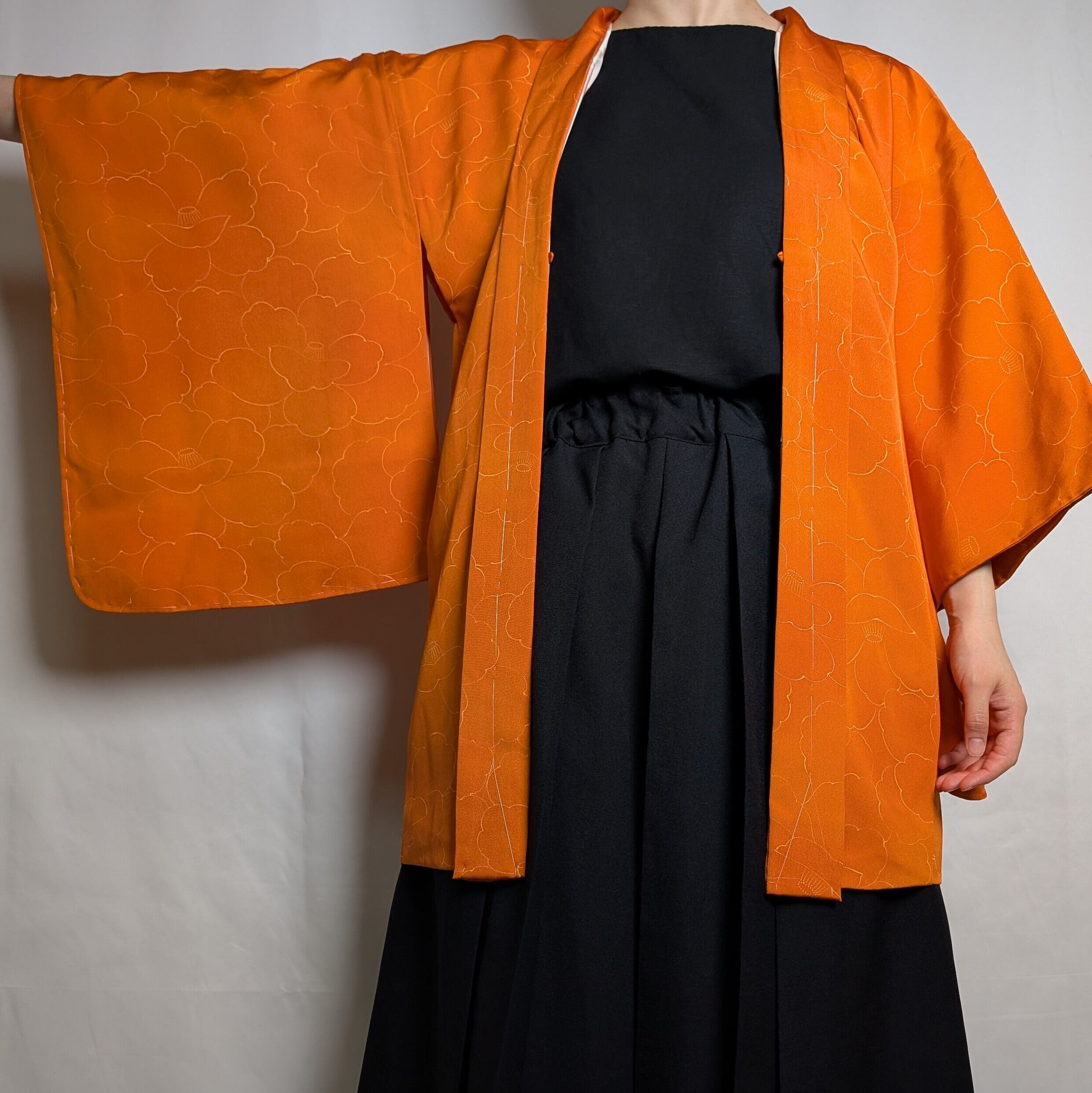 【14543】 色羽織 ヴィンテージ オレンジ 椿模様 和洋折衷コーデ / Japanese vintage kimono haori jacket