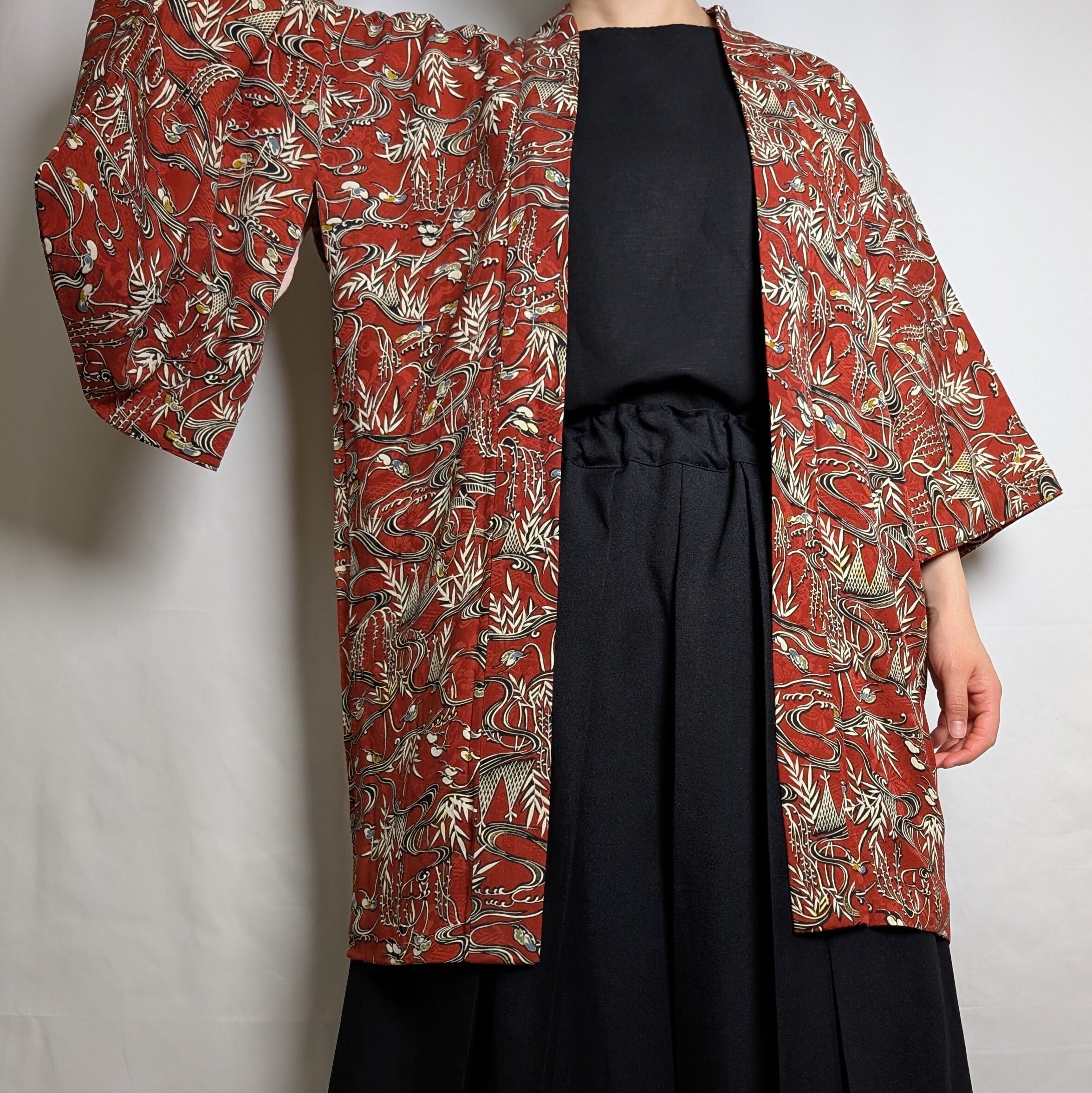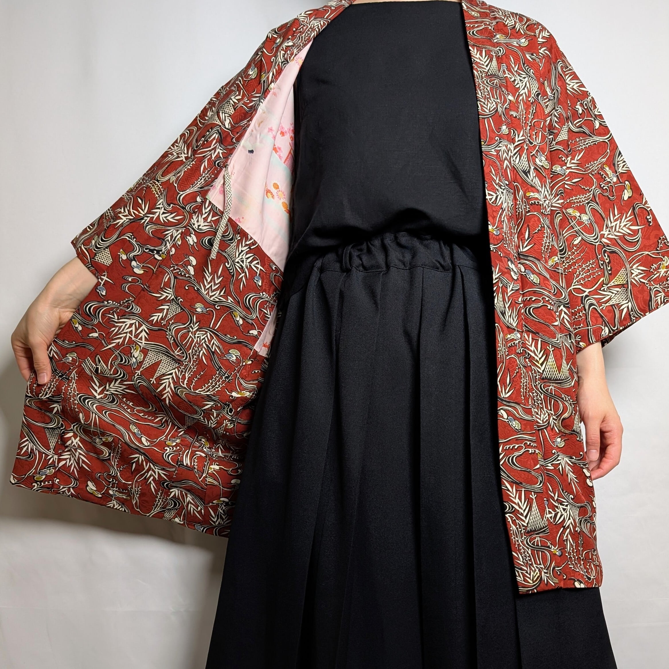 【14545】 色羽織 ヴィンテージ 赤 和洋折衷コーデ / Japanese vintage kimono haori jacket