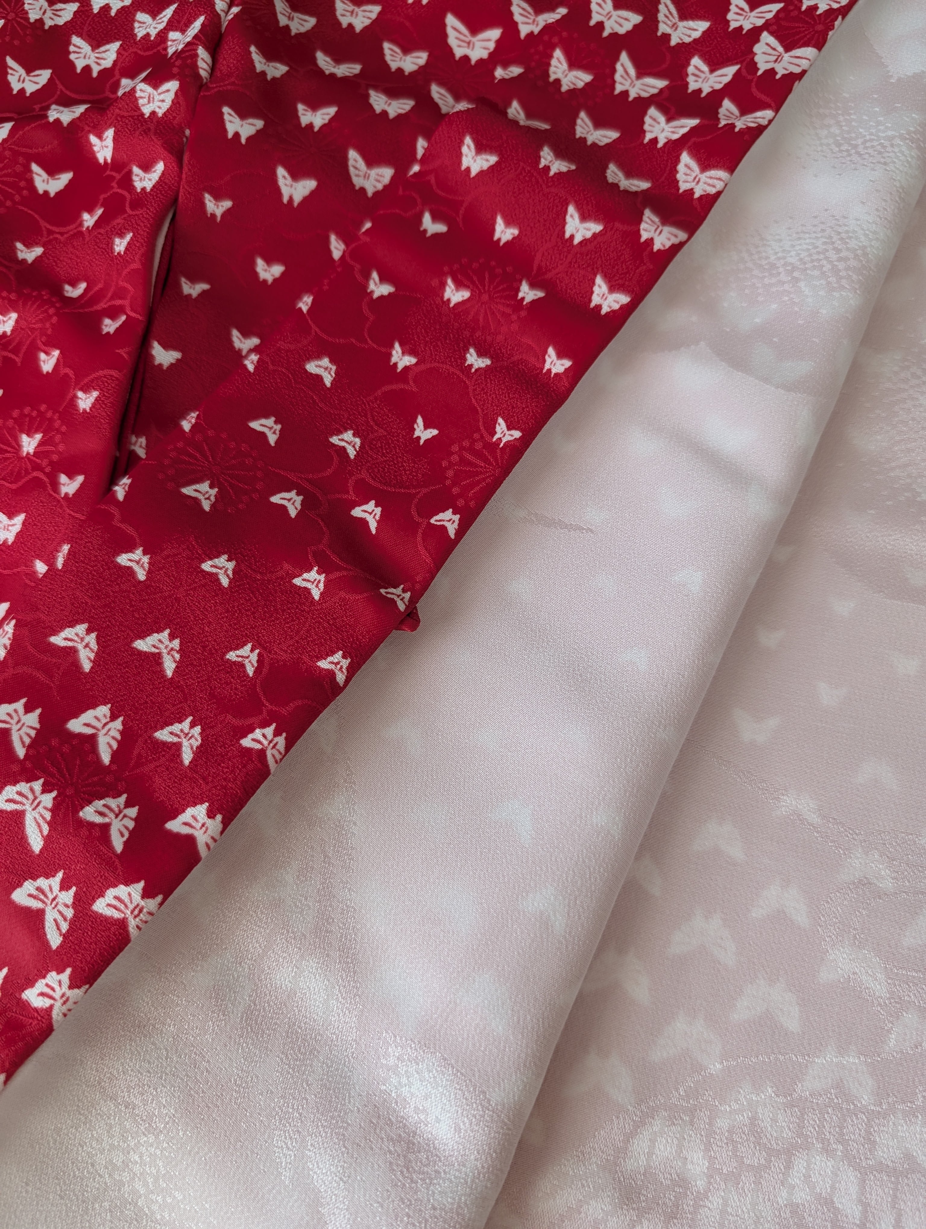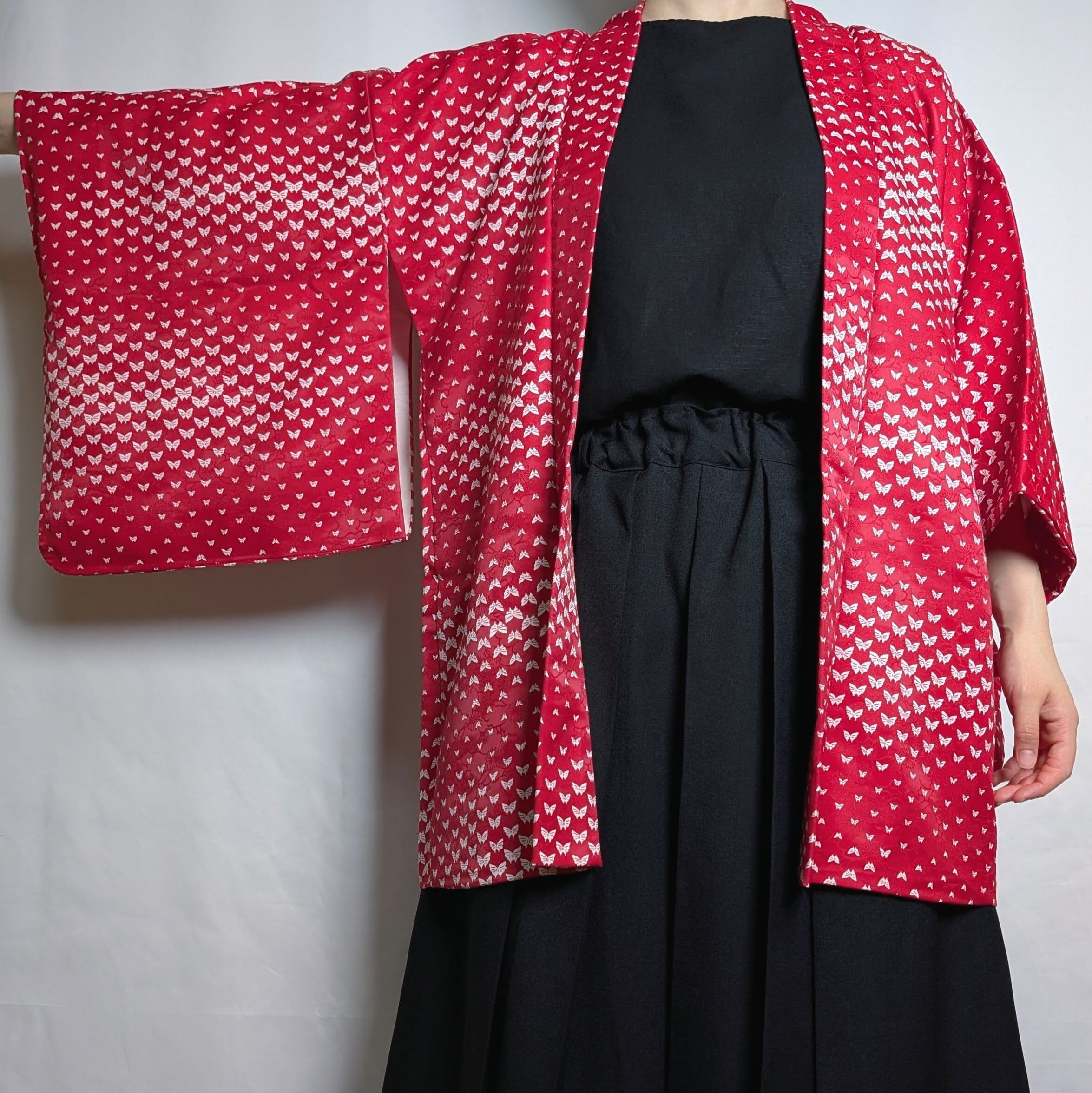 【14549】 色羽織 ヴィンテージ ピンク 蝶々 和洋折衷コーデ / Japanese vintage kimono haori jacket