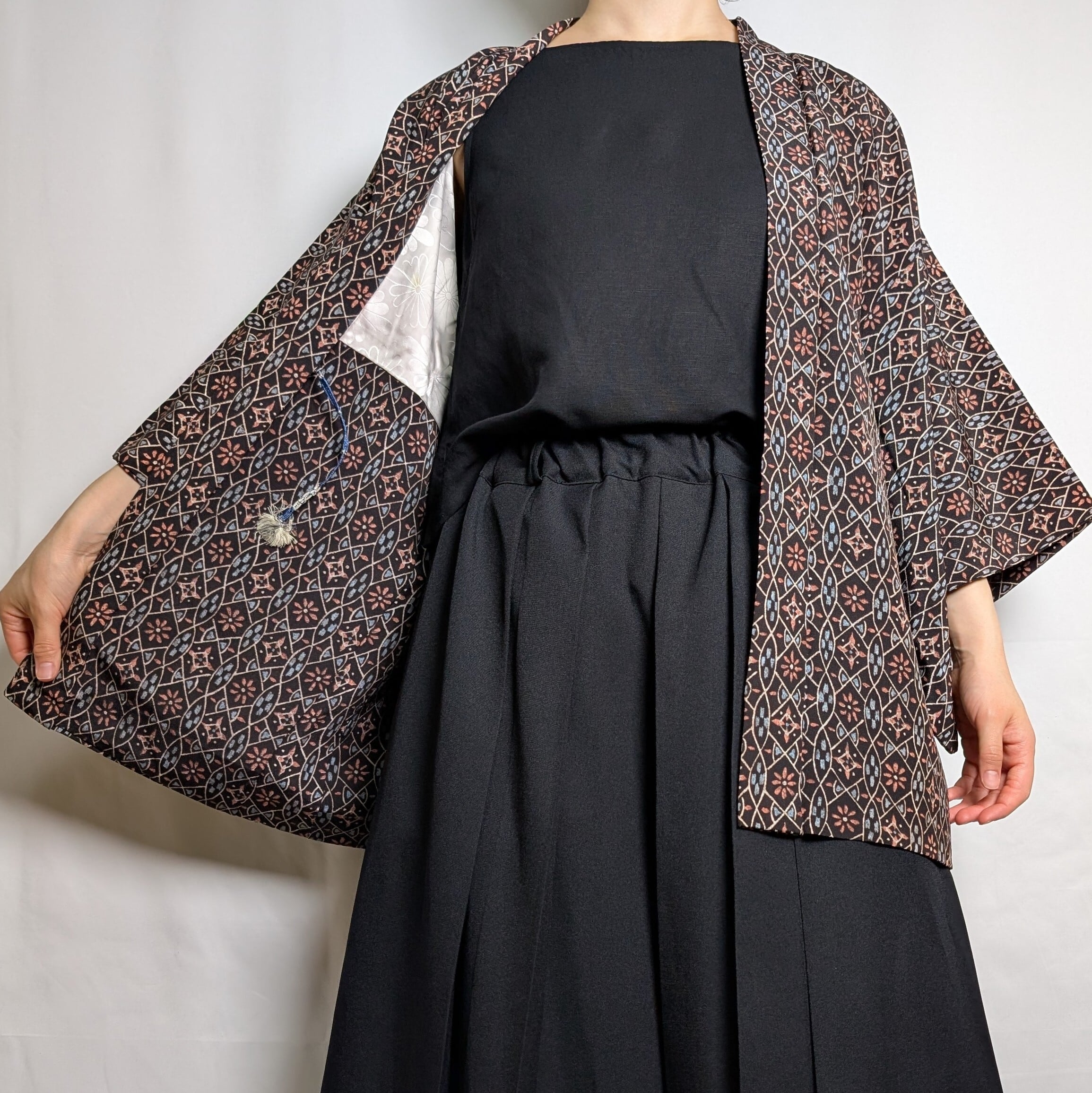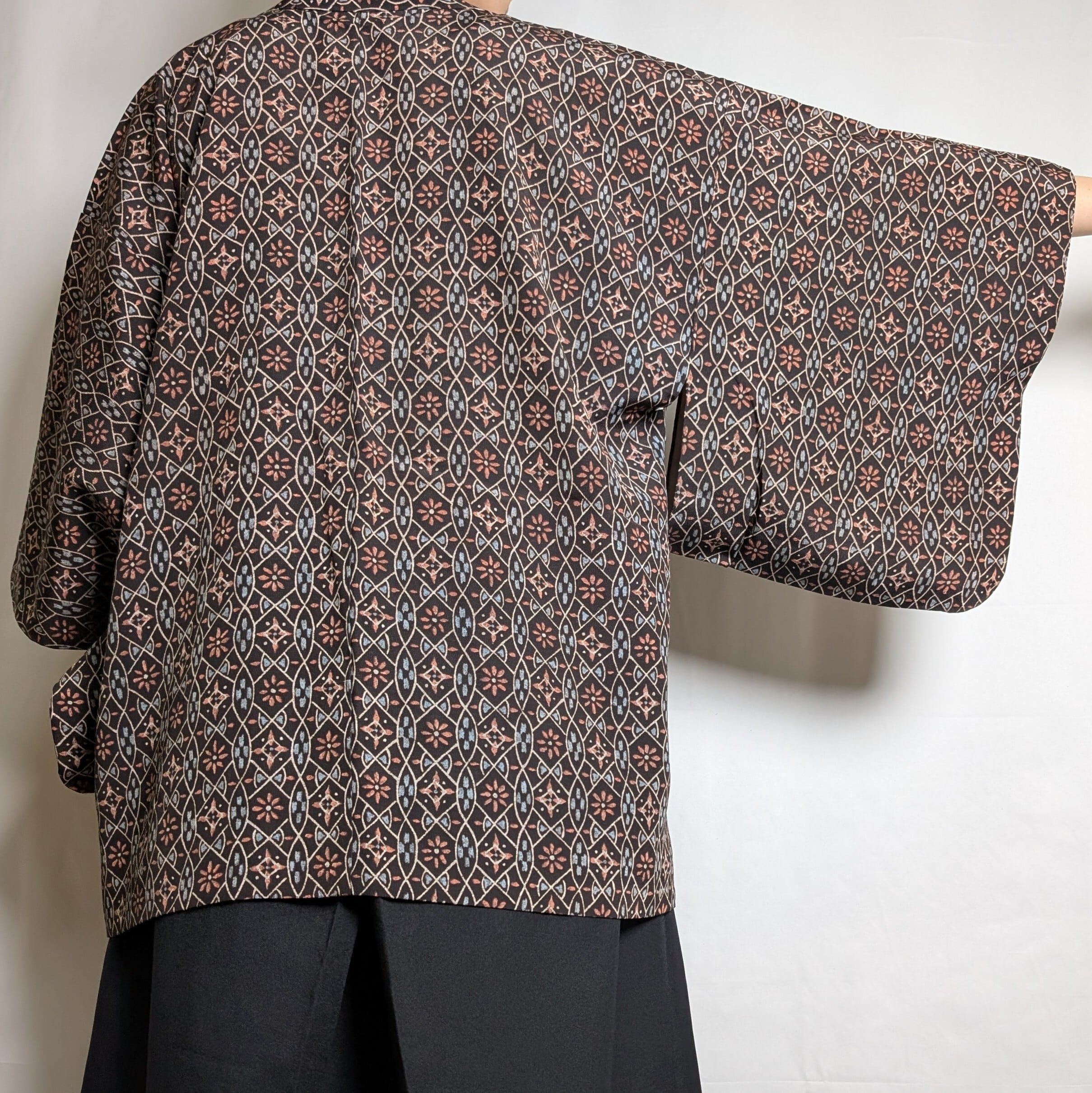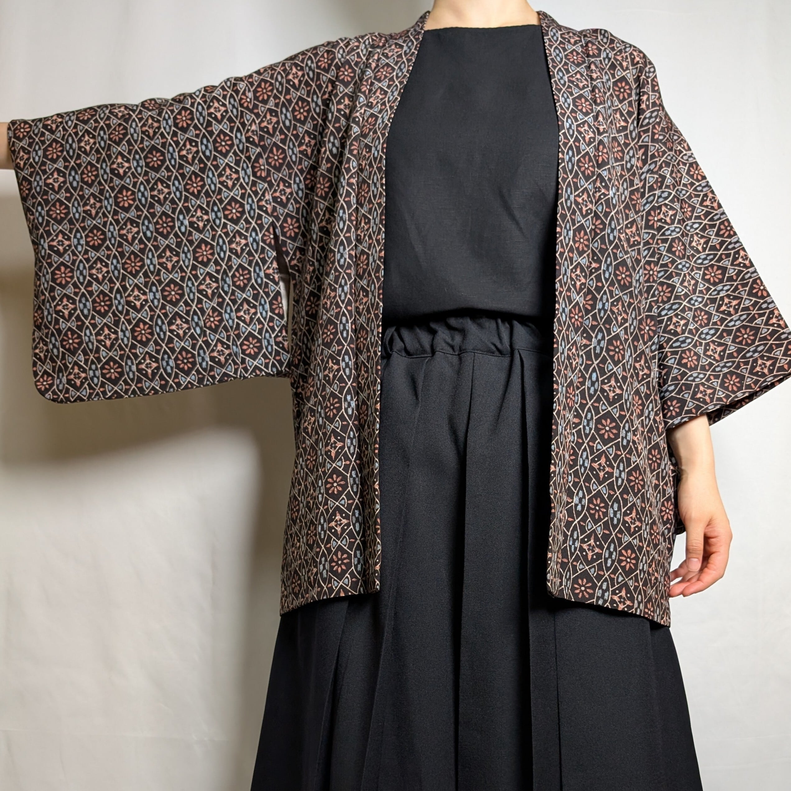 【14552】 色羽織 黒 花 総柄 ヴィンテージ 和洋折衷コーデ / Japanese vintage kimono haori jacket