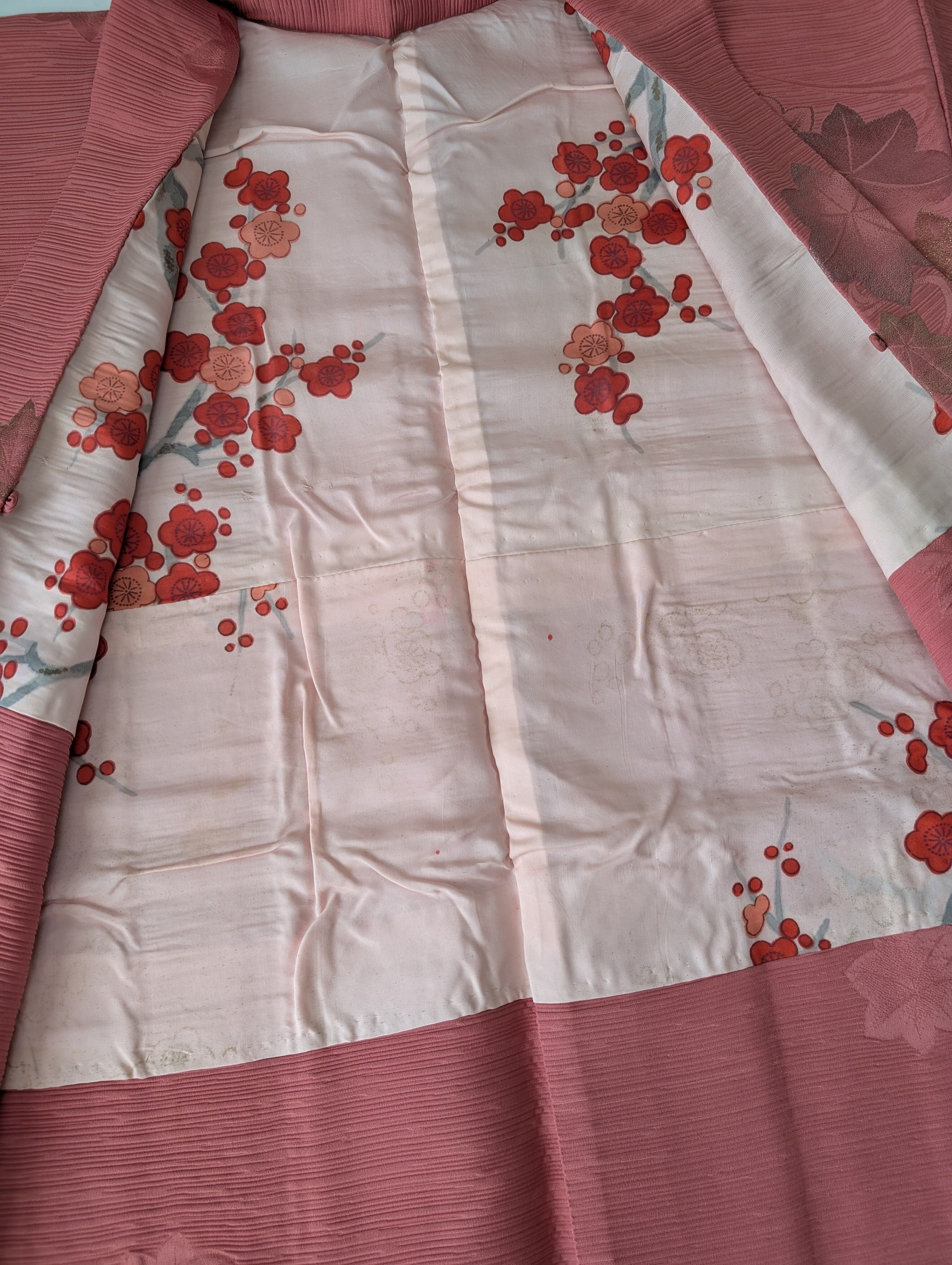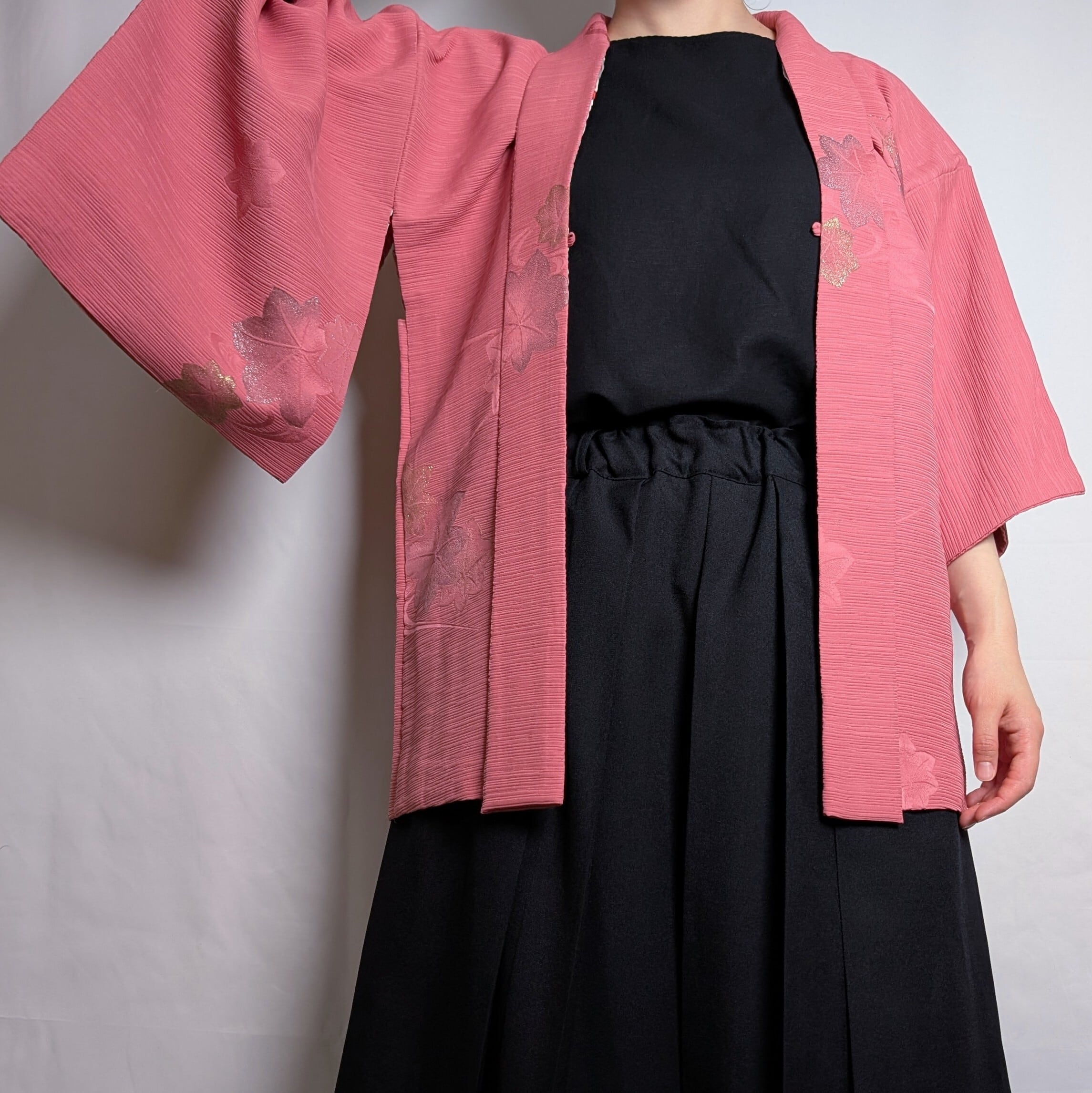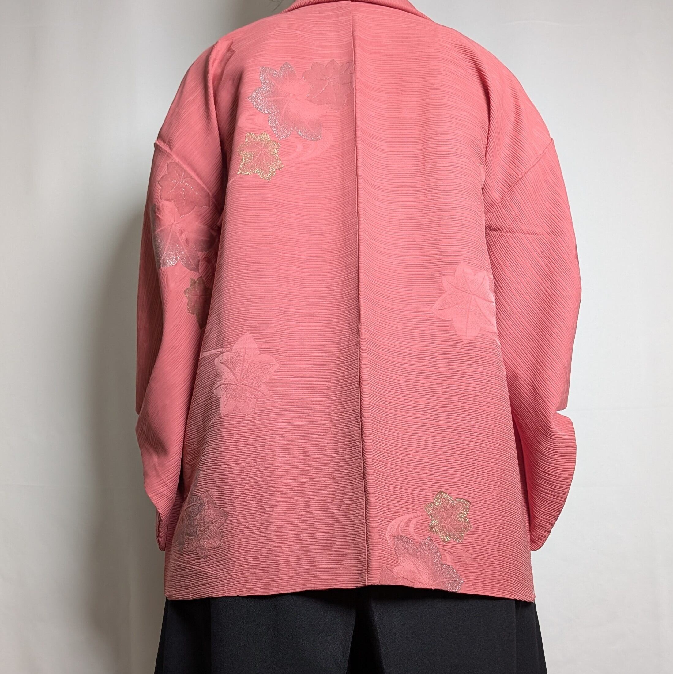 【14553】 色羽織 ピンク 織り出し模様 金 銀 ヴィンテージ 和洋折衷コーデ / Japanese vintage kimono haori jacket