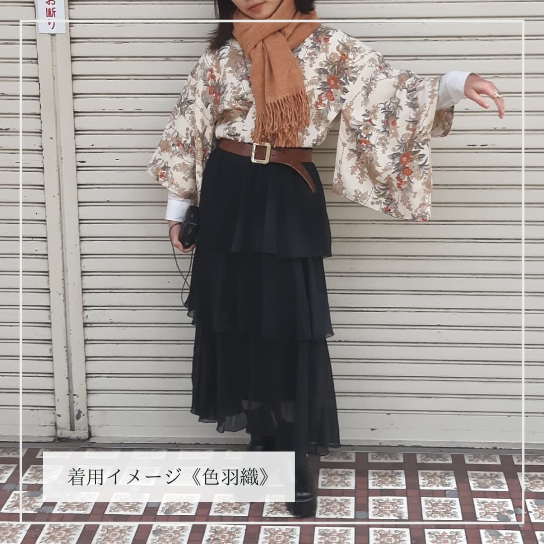 →着物の中でも気軽に普段着に取り入れやすく、一枚羽織るだけで雰囲気が出るので和洋折衷コーデがお好きな方や着物を日常に取り入れたい方に人気のアイテムです。