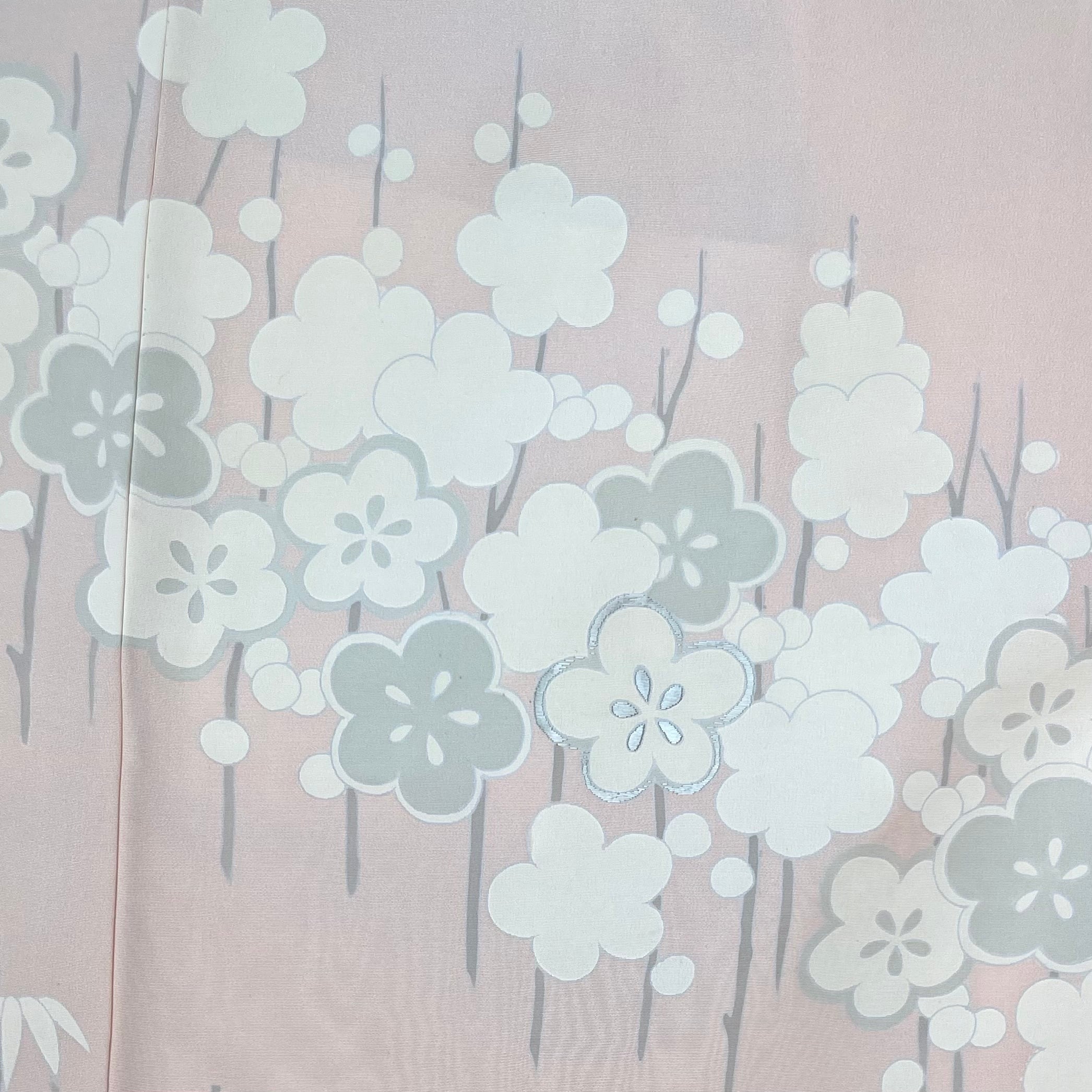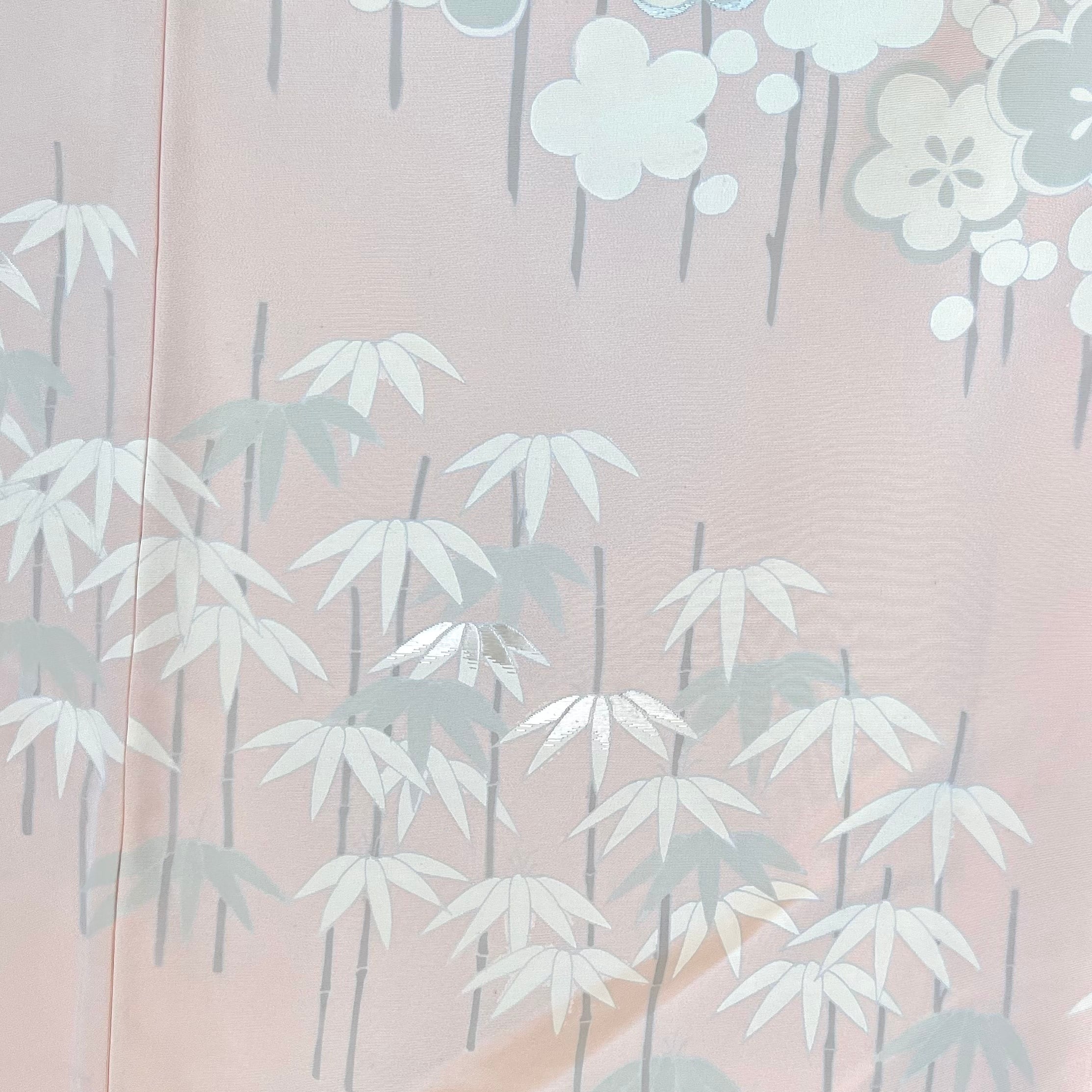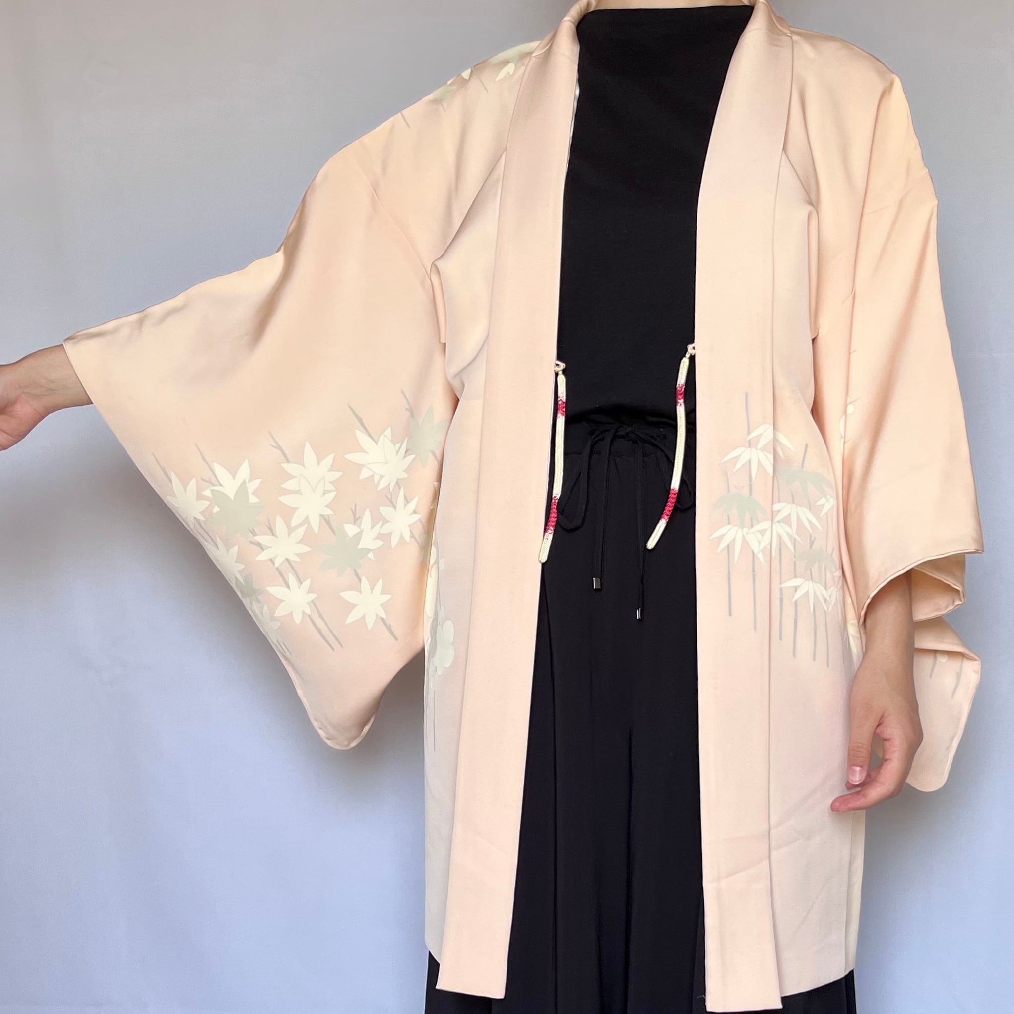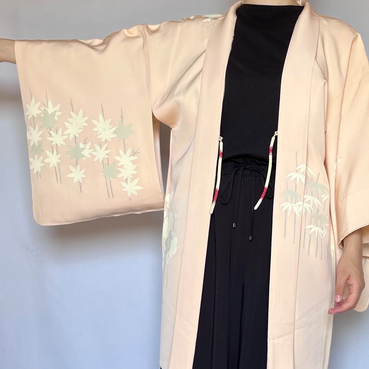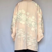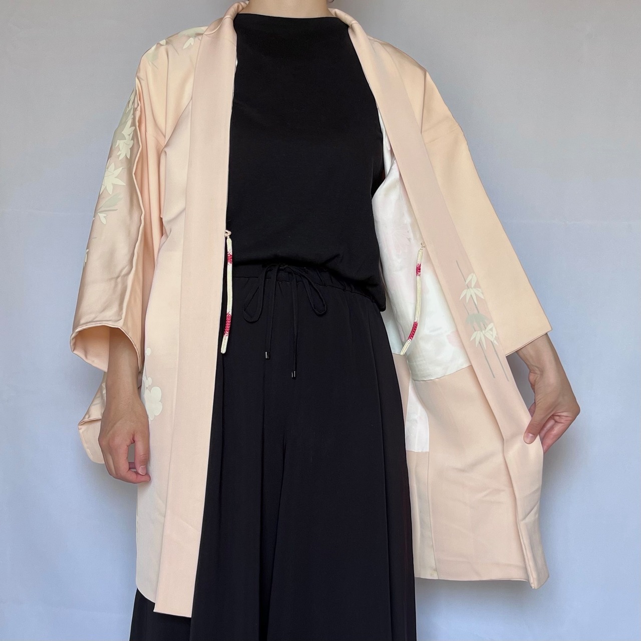 【10931】 古着 ヴィンテージ 色羽織 梅・松・紅葉模様 刺繍 パステルピンク デザイン
