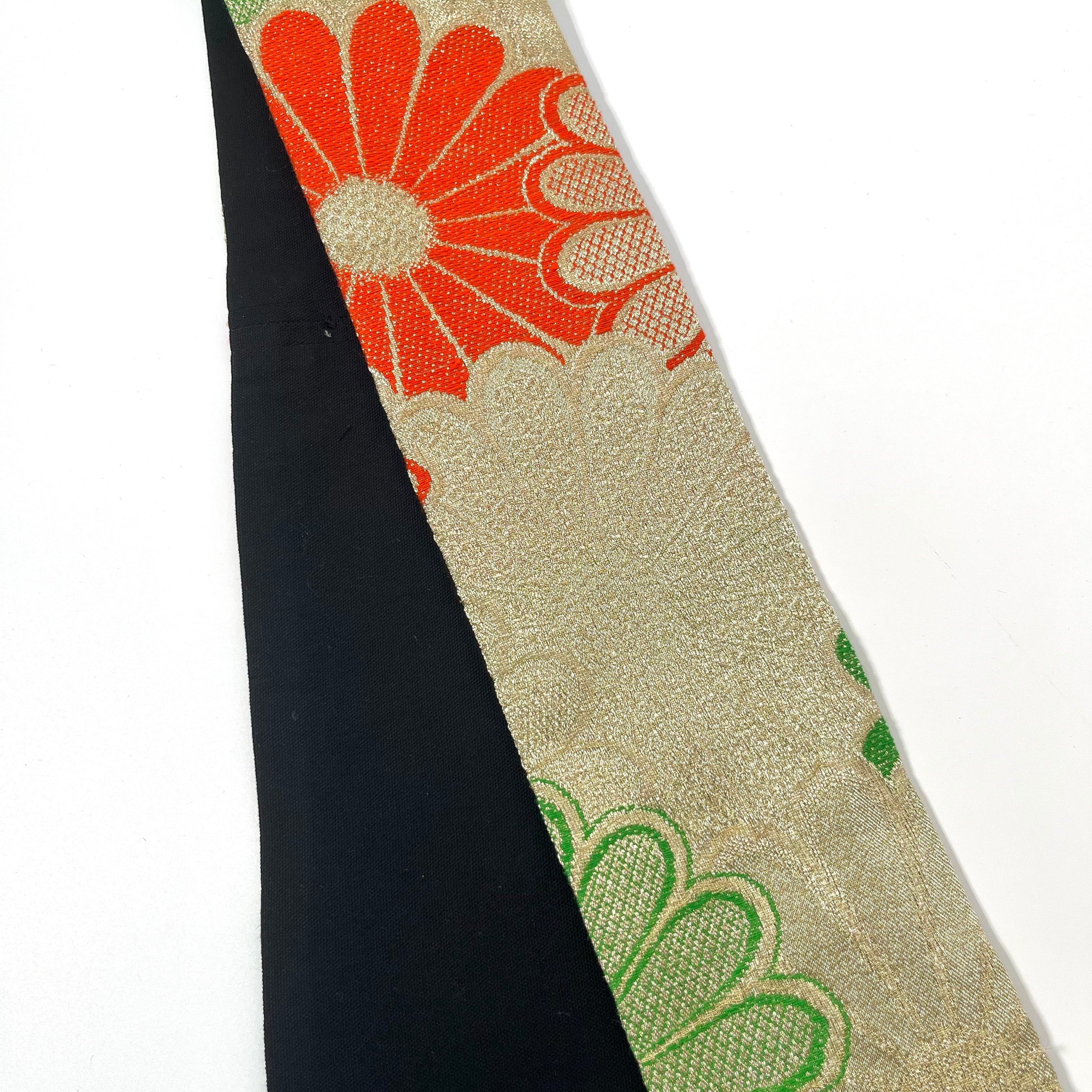 生地の裁断箇所によってパターン(柄)が異なるため、同じ帯から作成したものでも全く同じデザインは1本もなく、全て1点ものとなります。