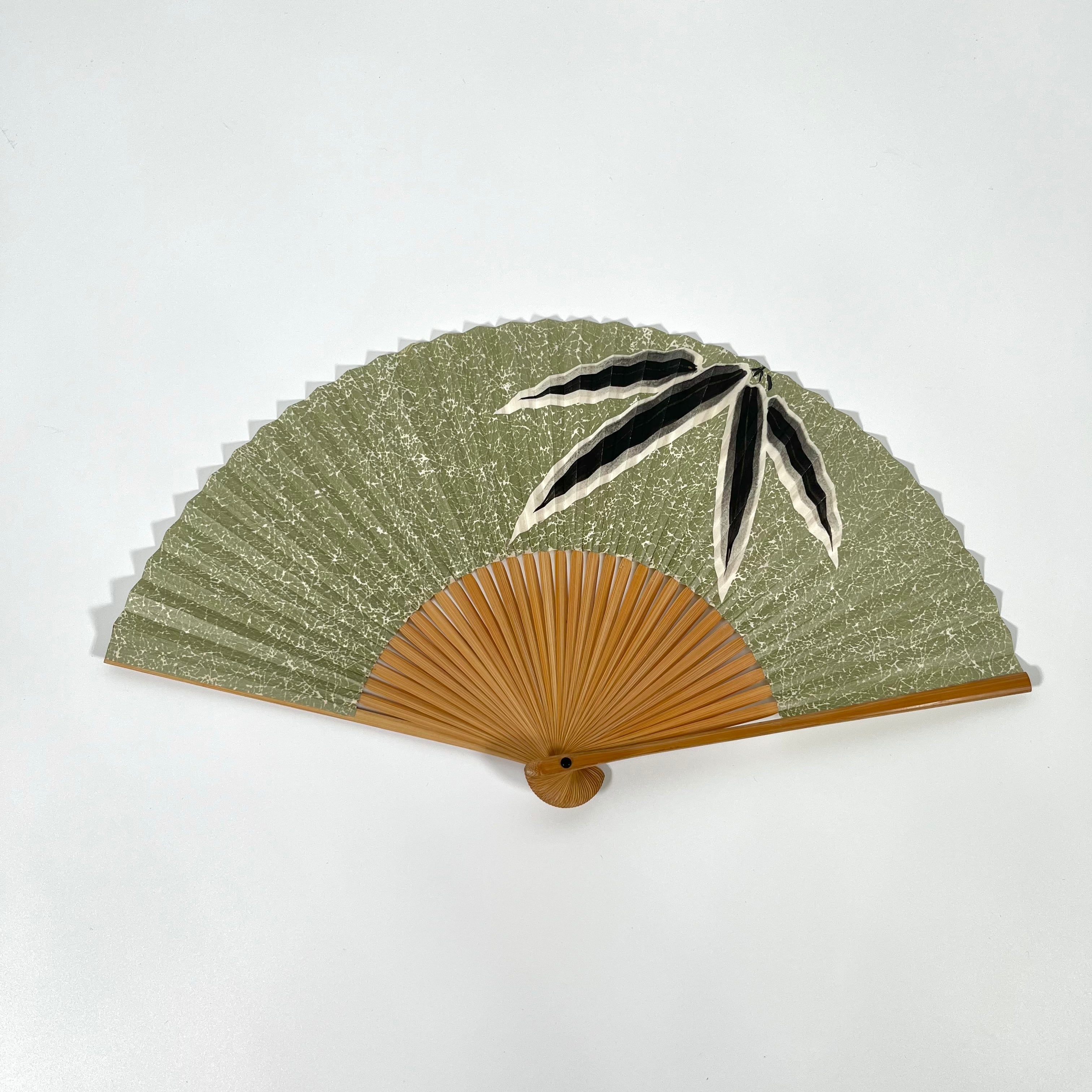 【12083】 アンティーク 扇子 緑 笹模様