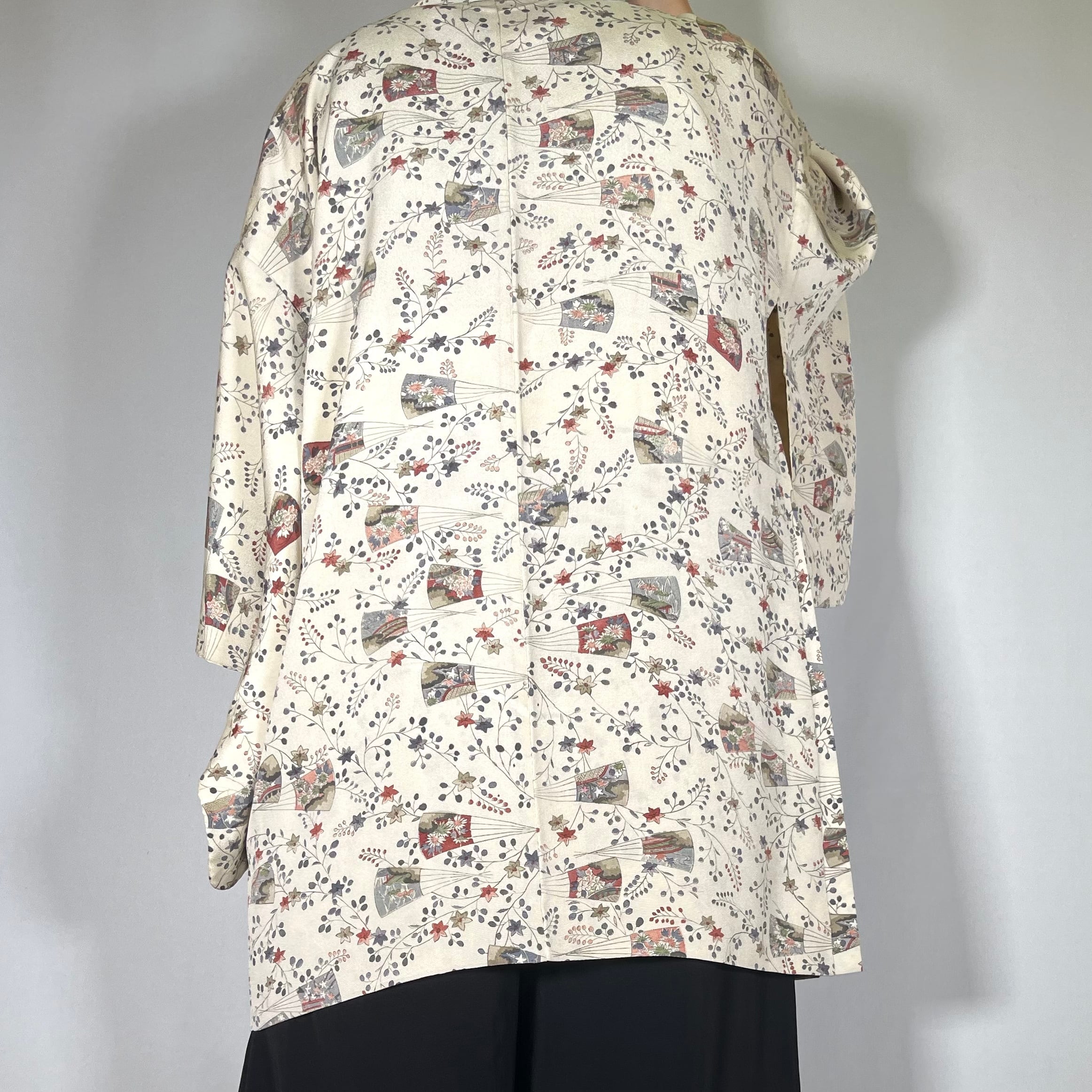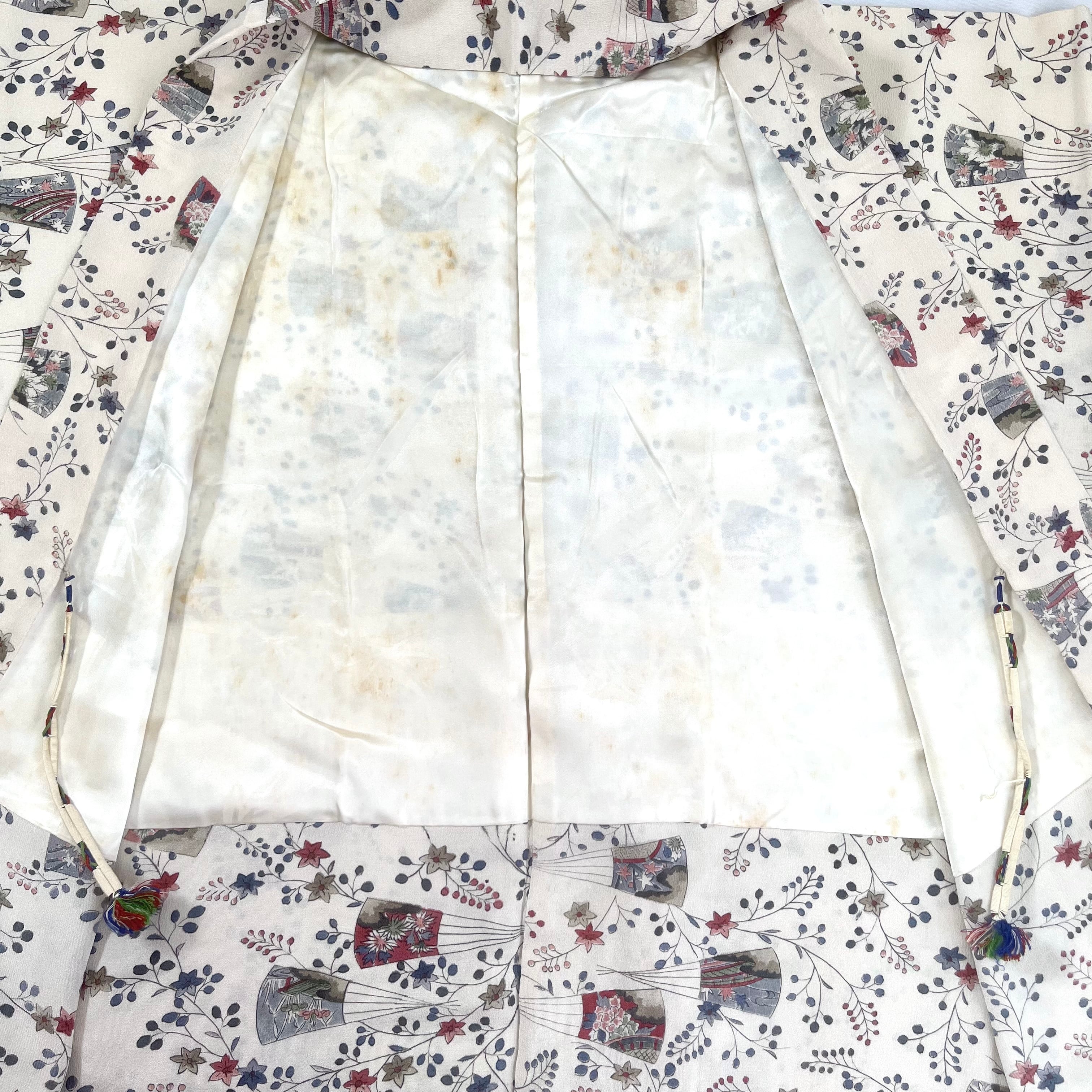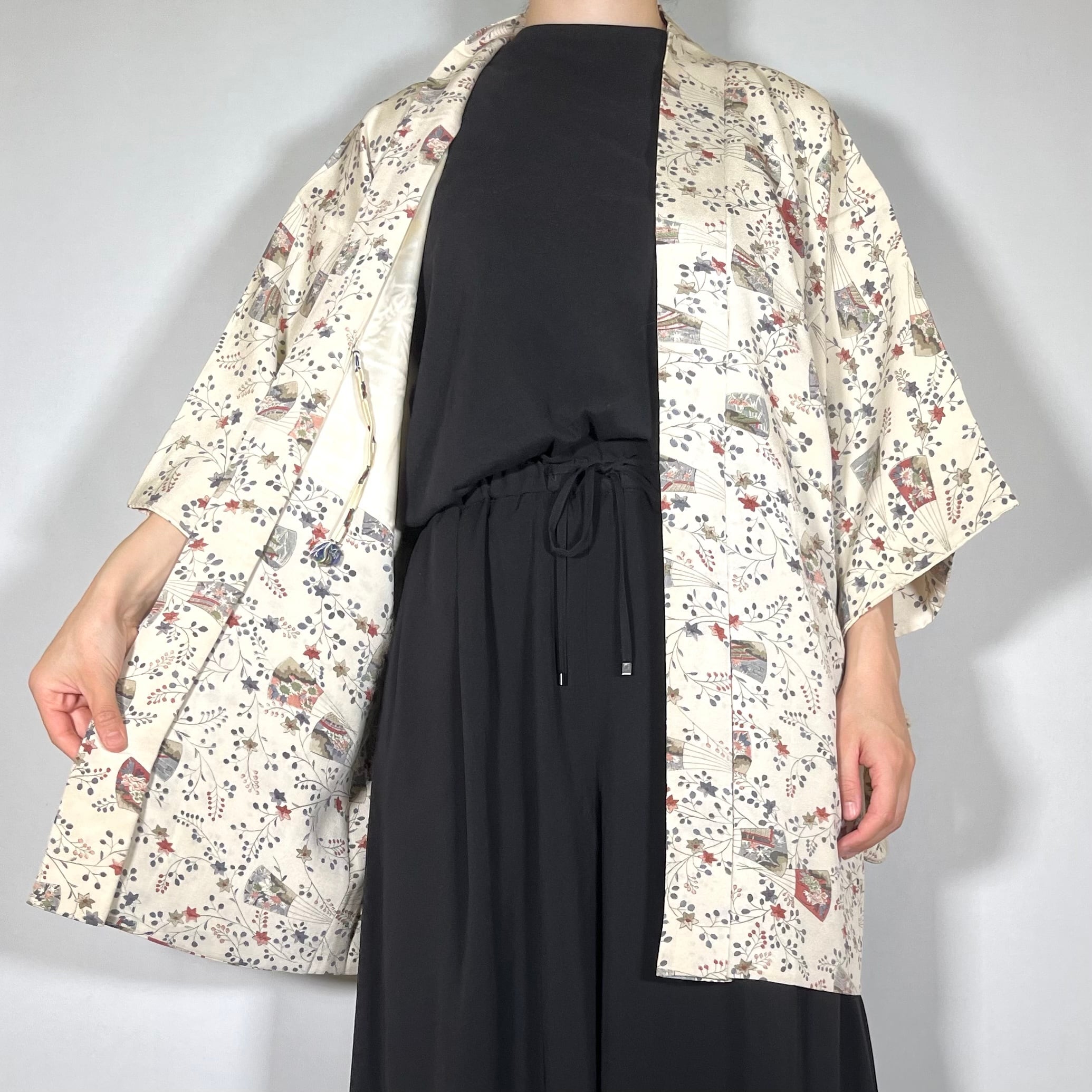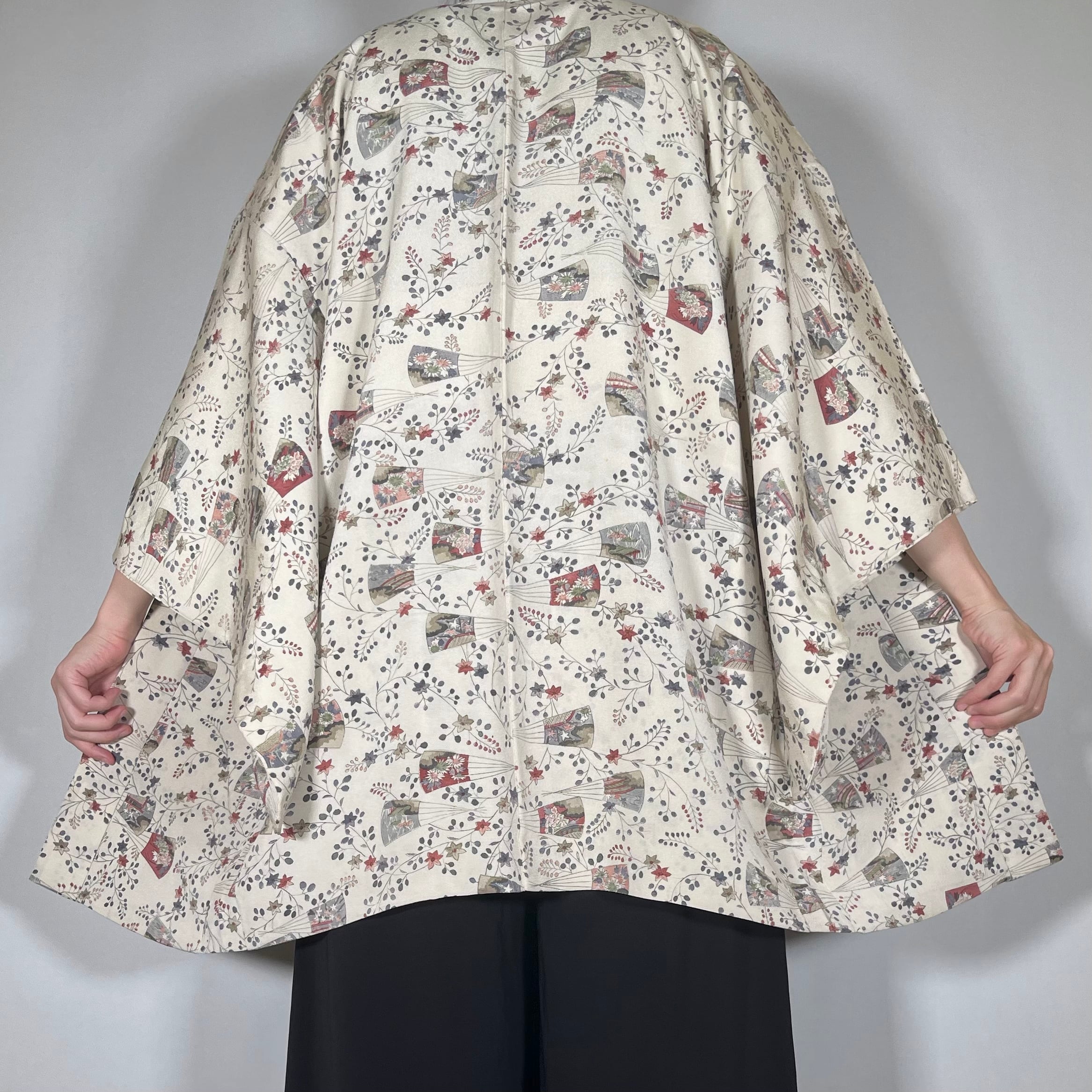 【12226】 古着 ヴィンテージ 色羽織 クリーム色 花模様 レトロ
