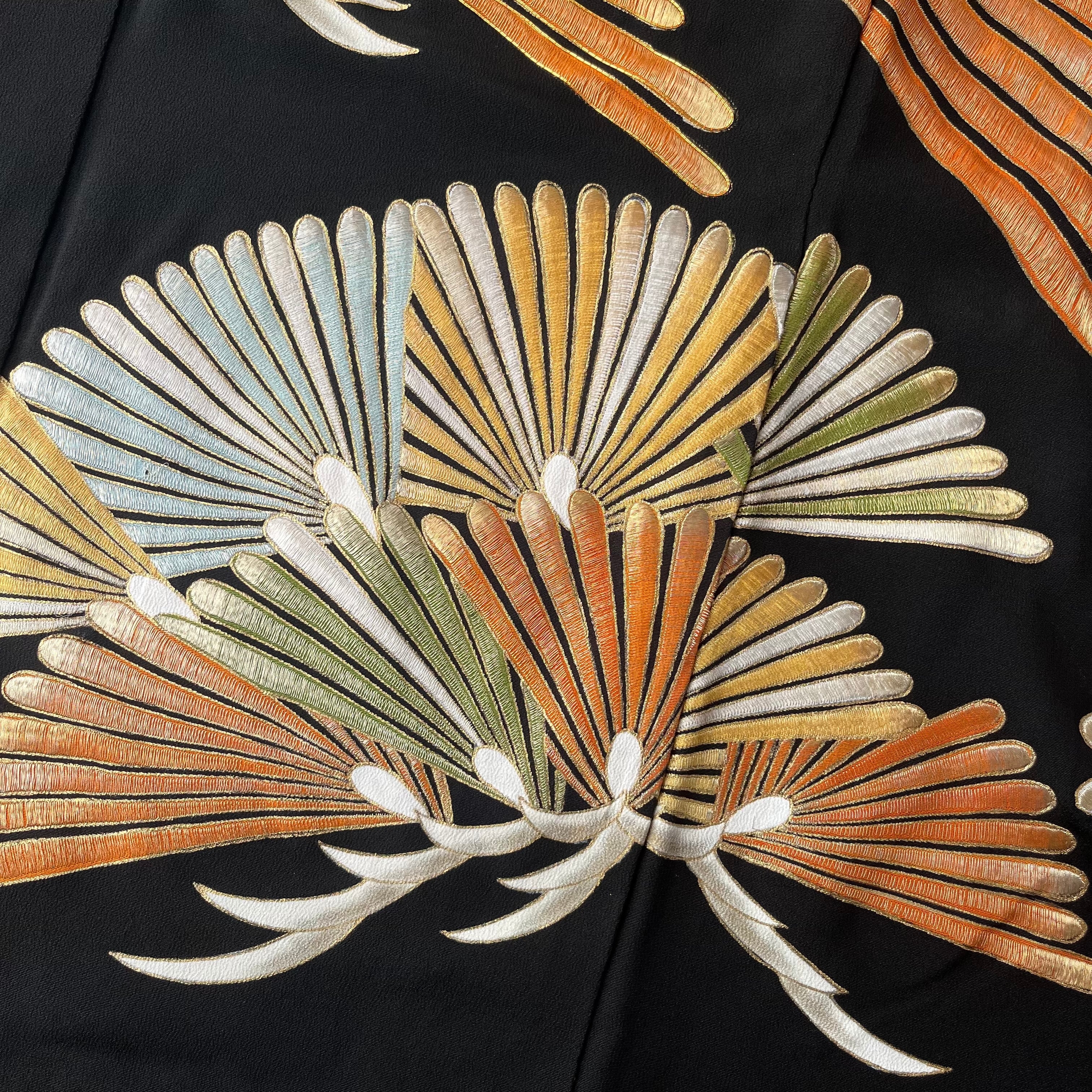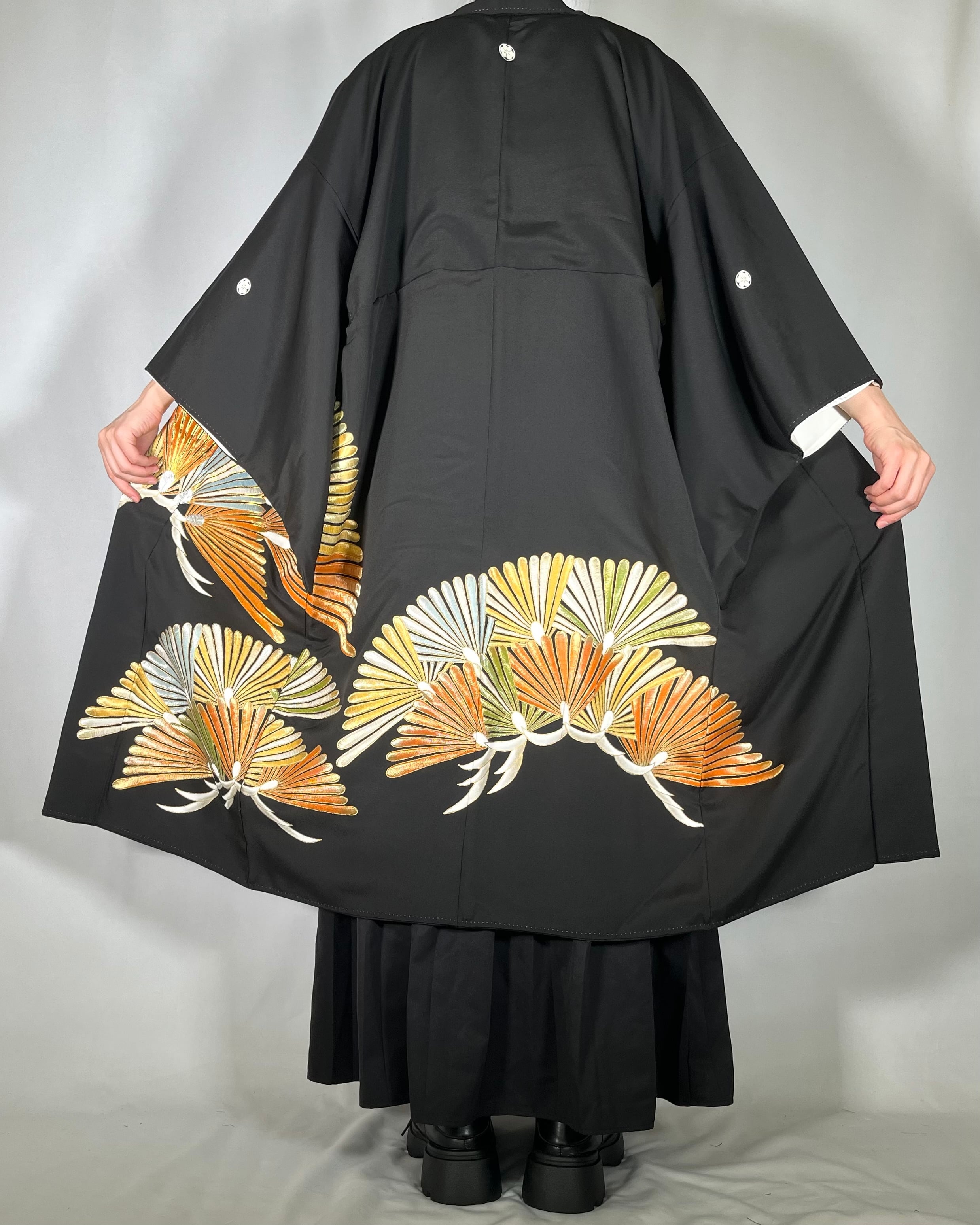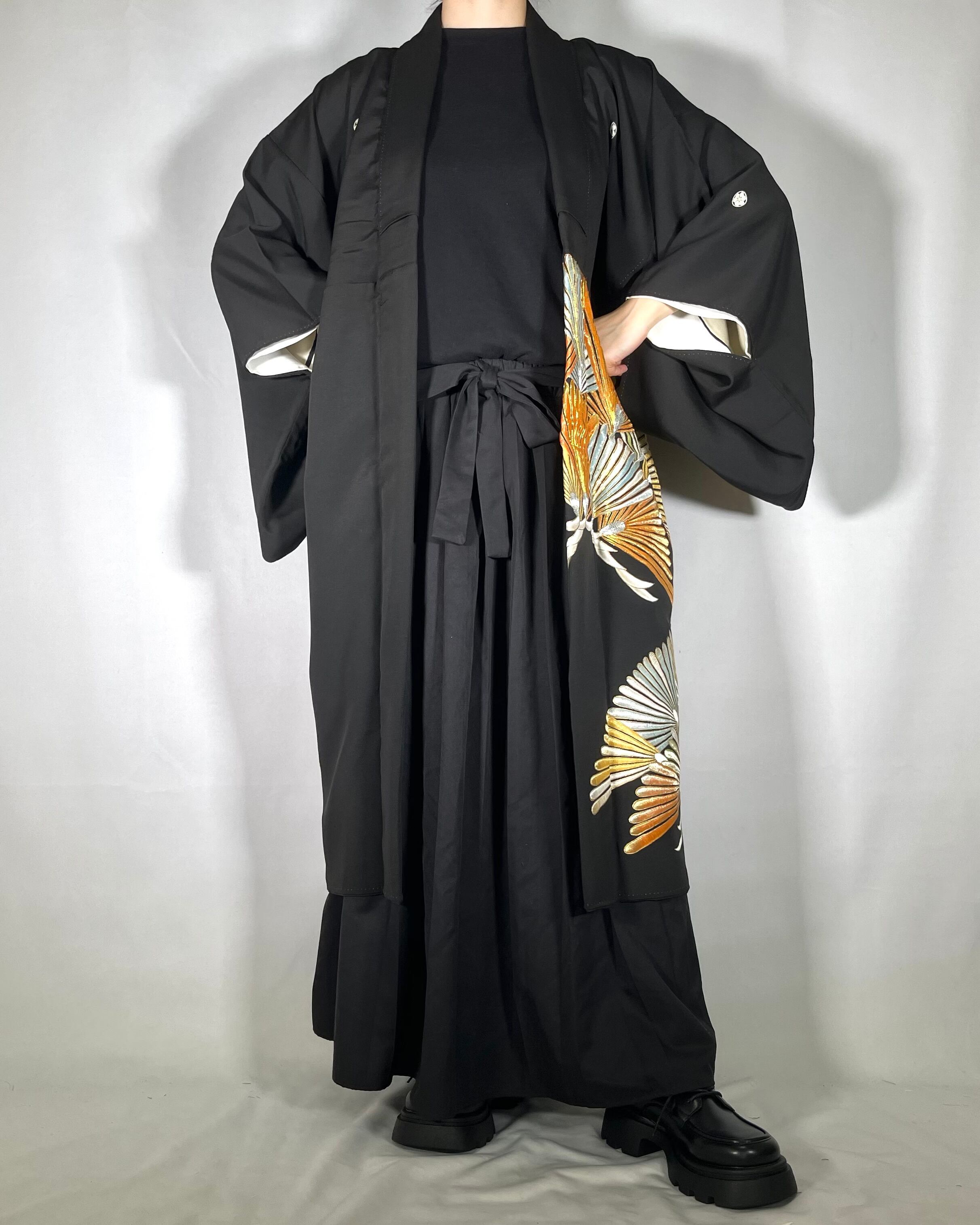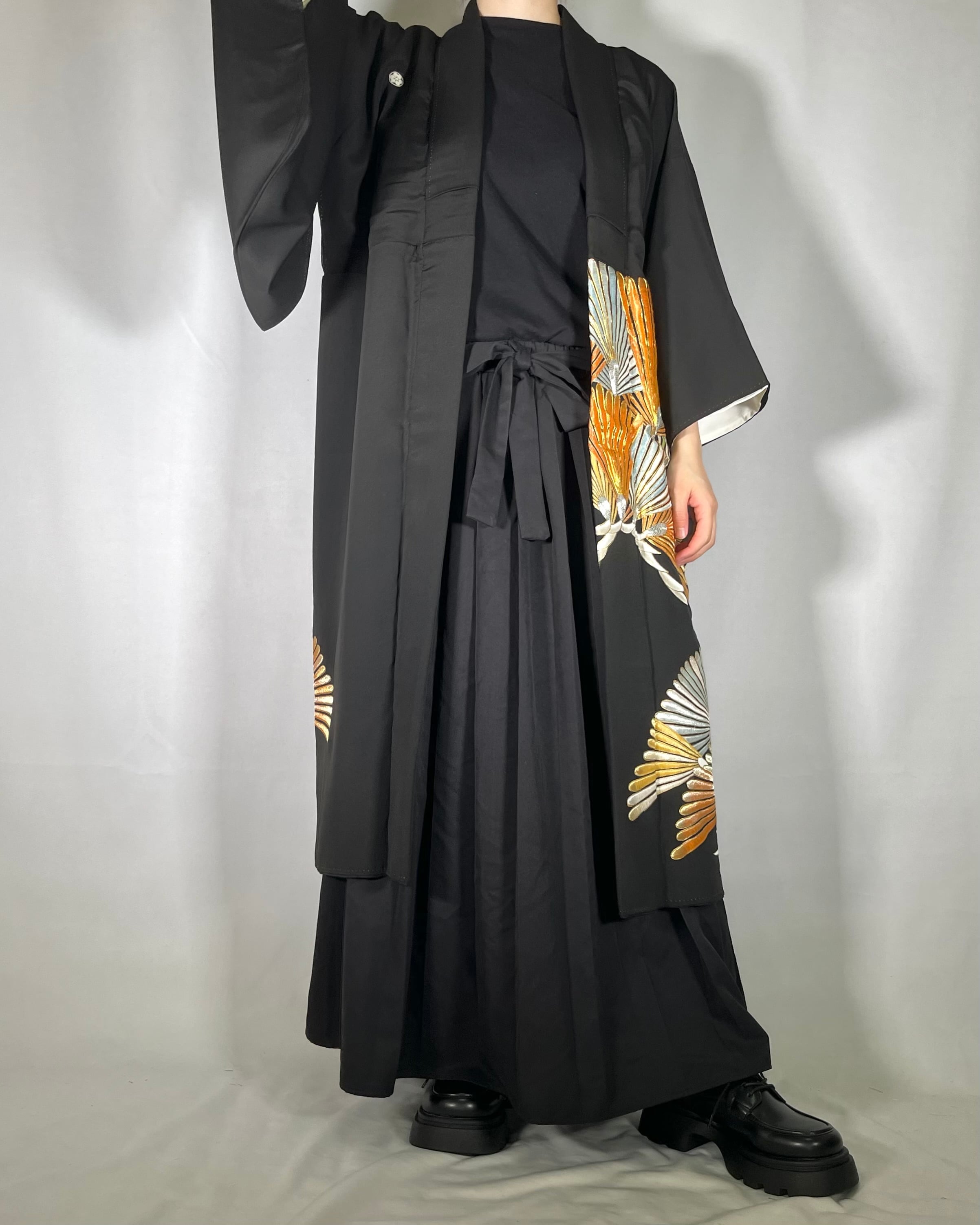 ヴィンテージの着物(黒留袖)をリメイクした世界に一点だけのロングコート。