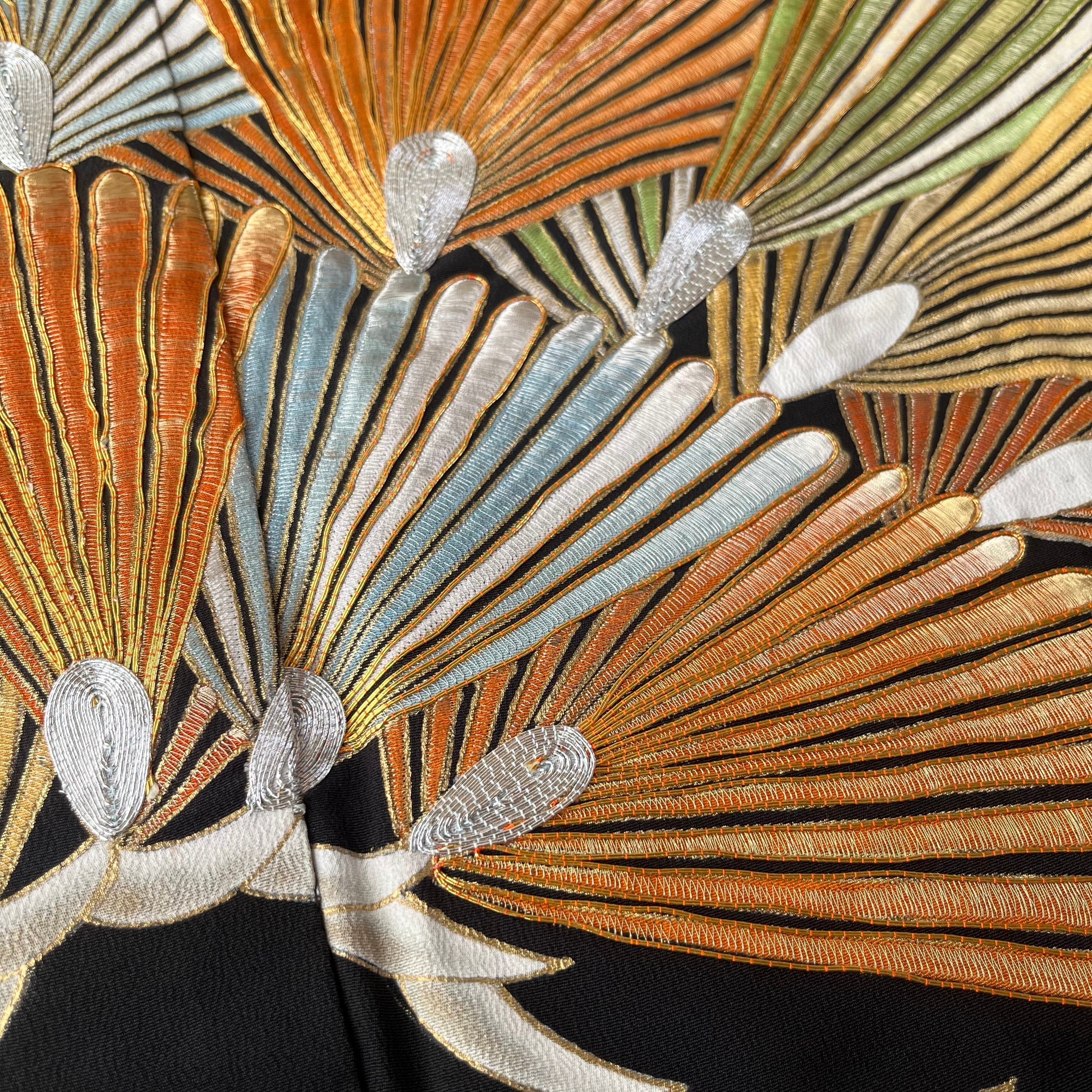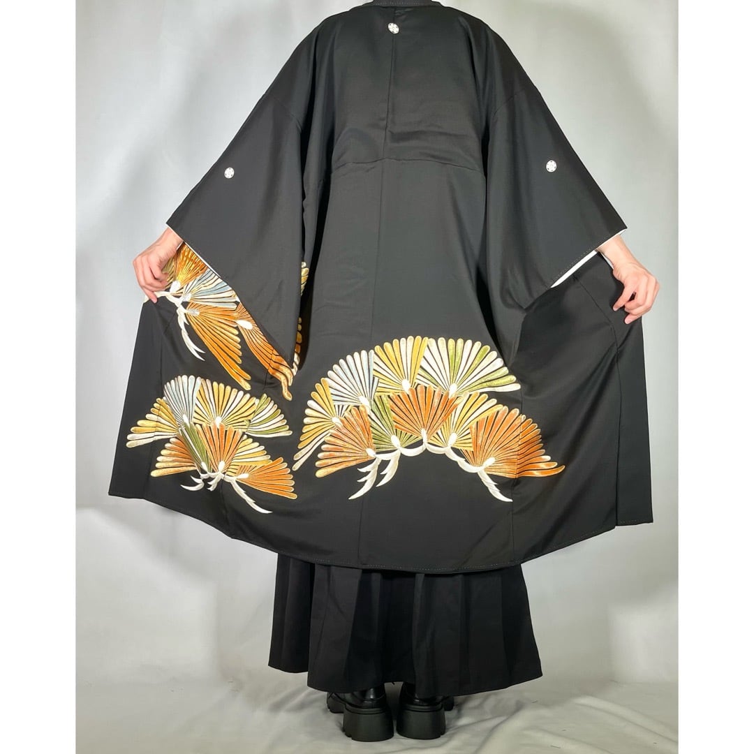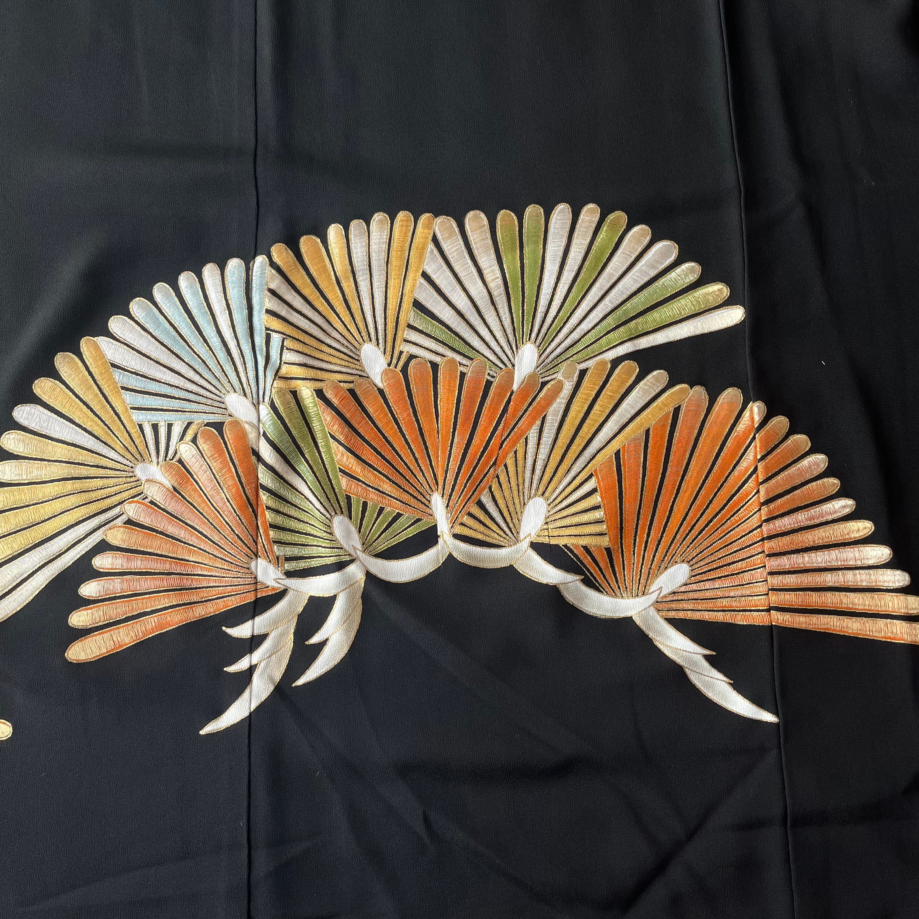 【12588】 着物リメイク 留袖 ロングコート 刺繍 松模様