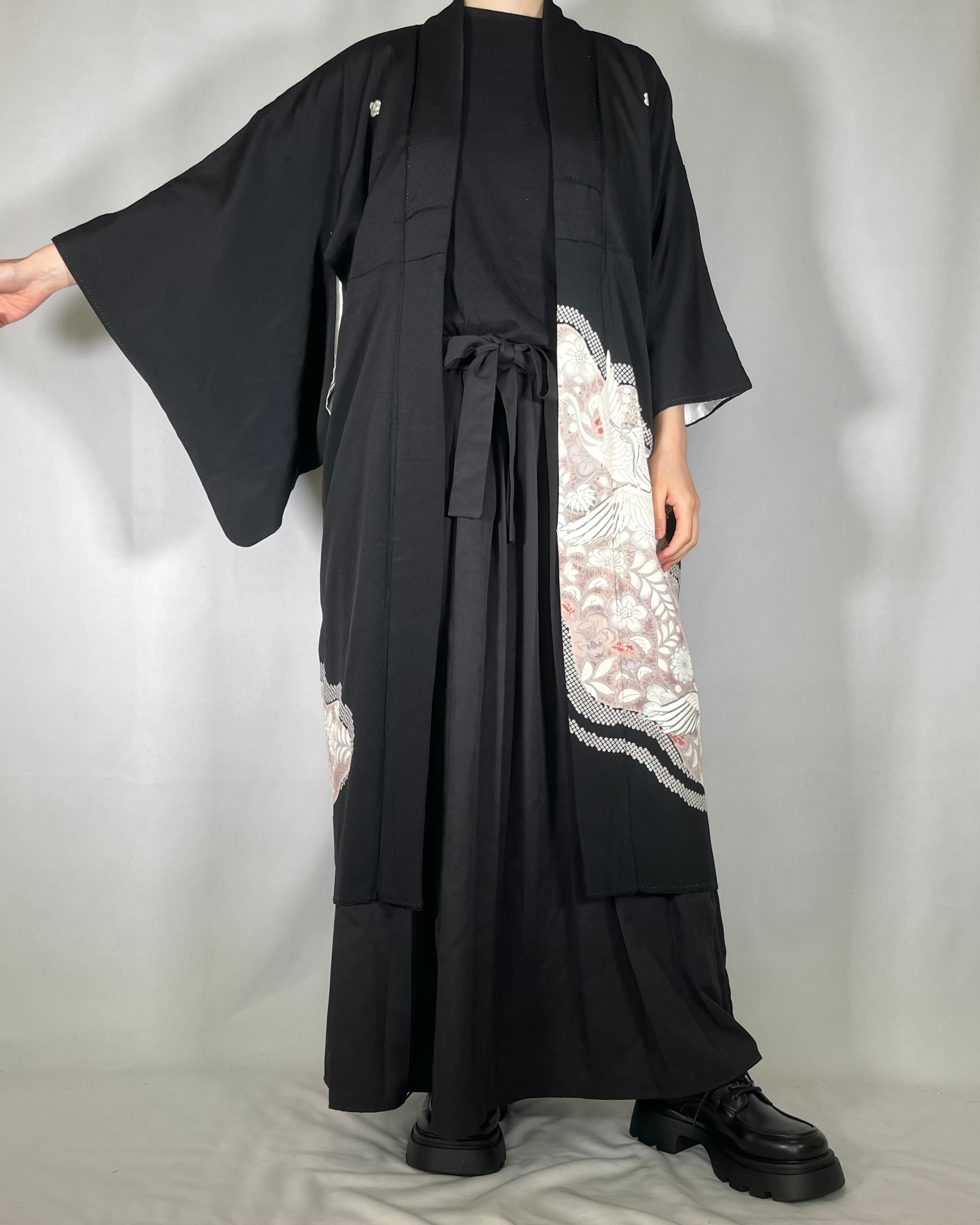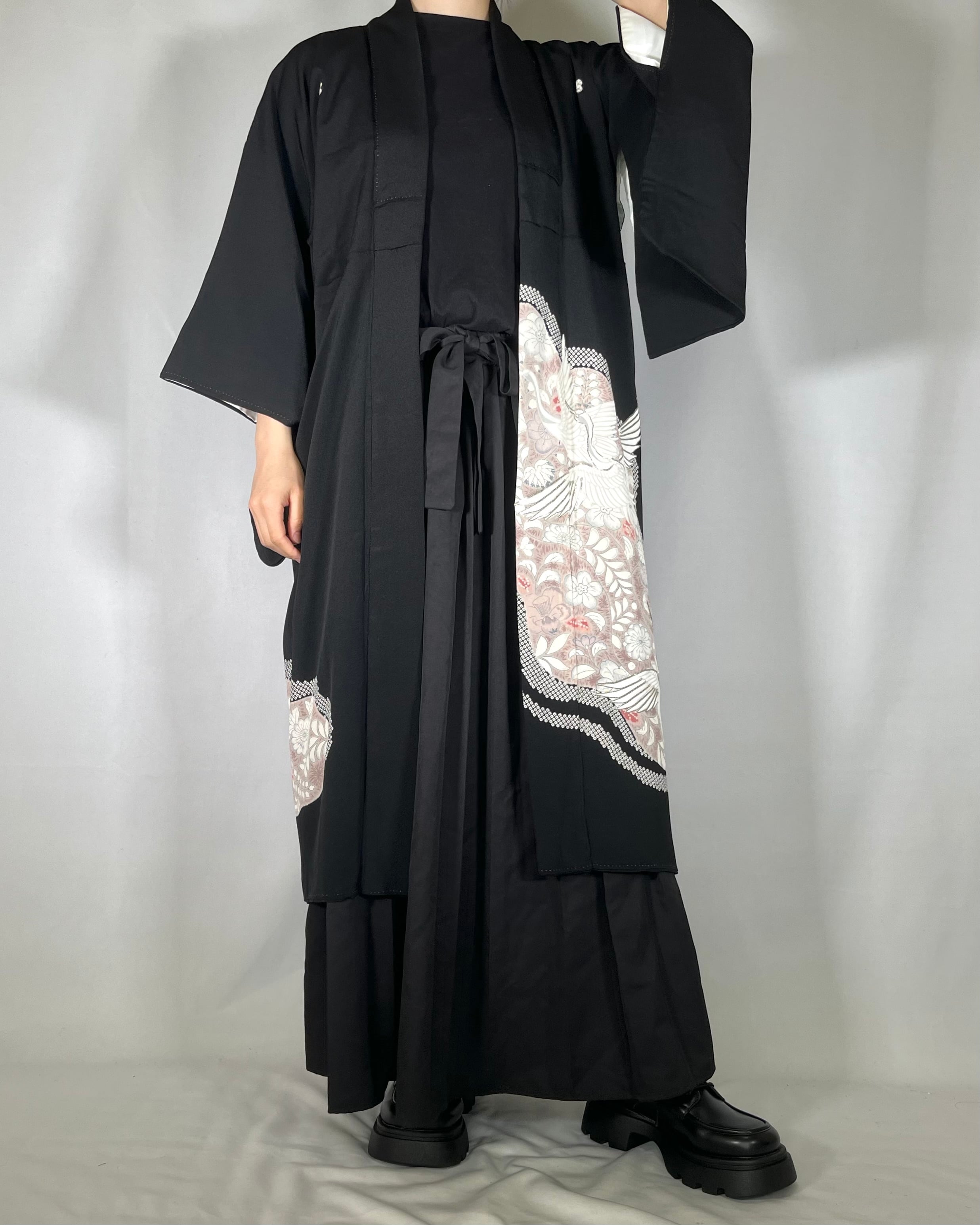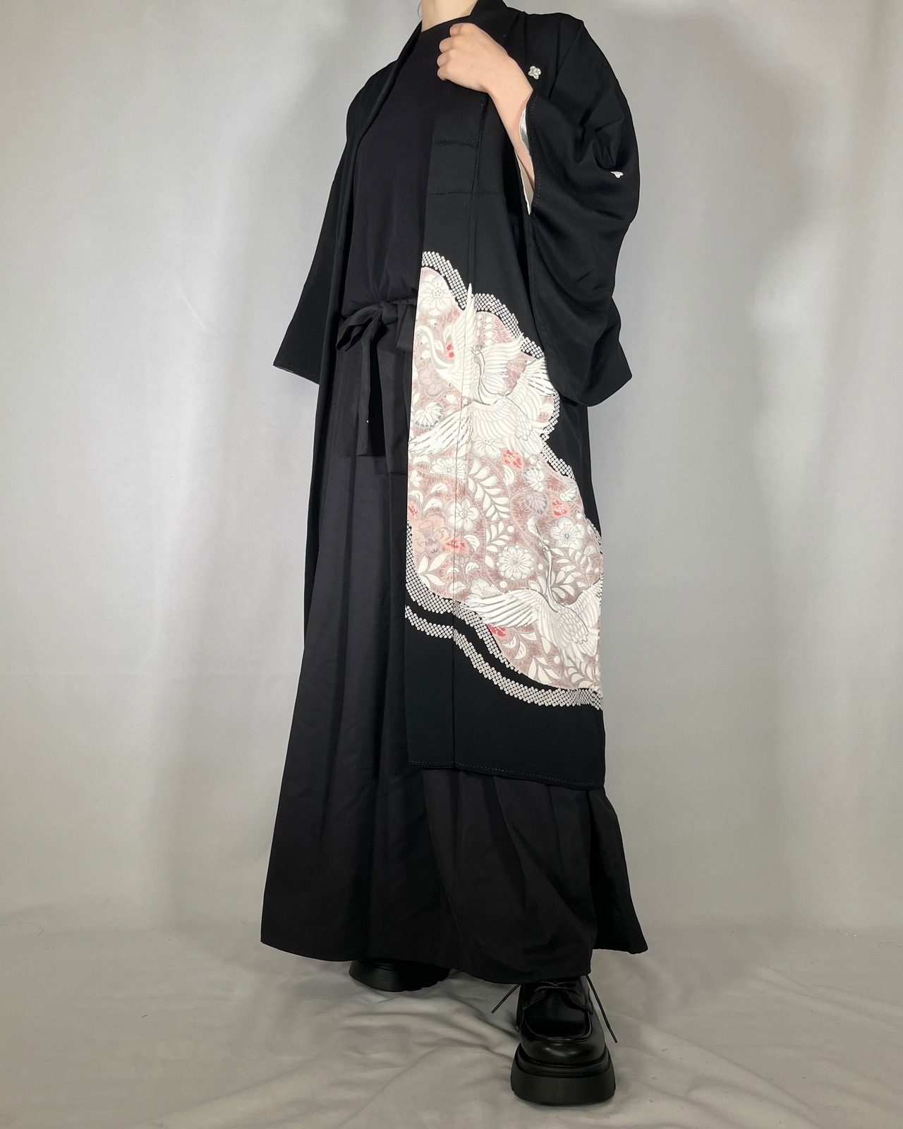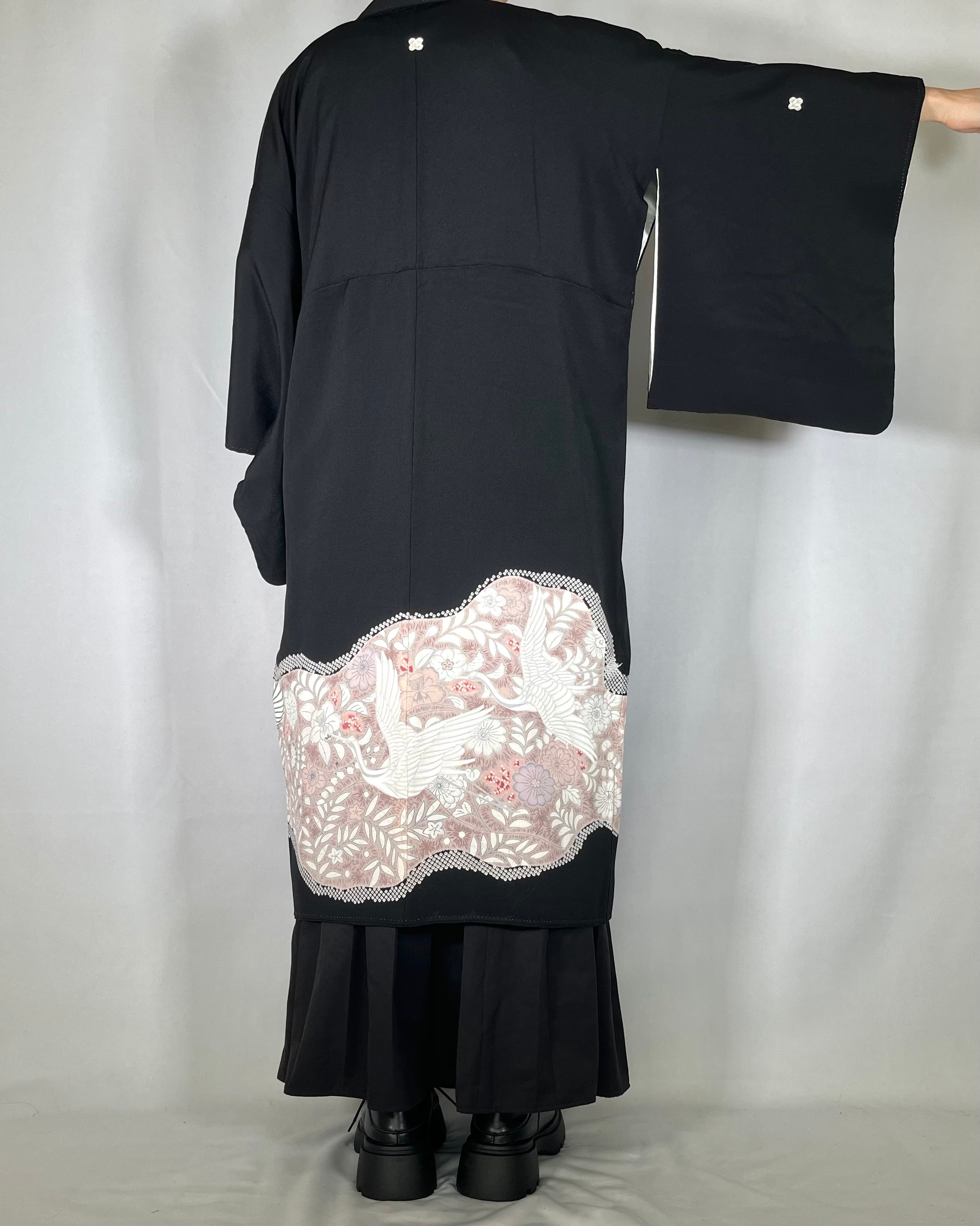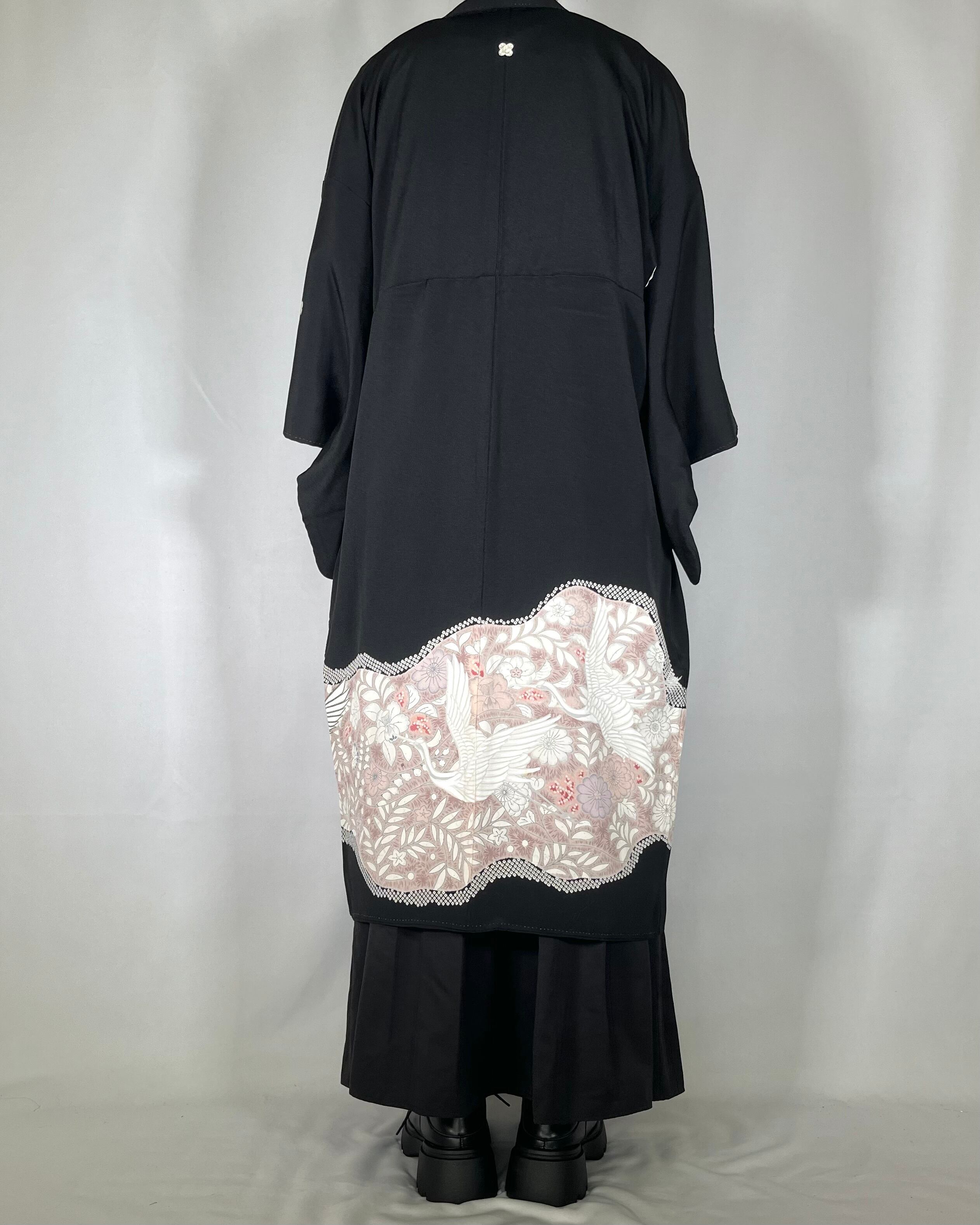ヴィンテージの着物(黒留袖)をリメイクした世界に一点だけのロングコート。