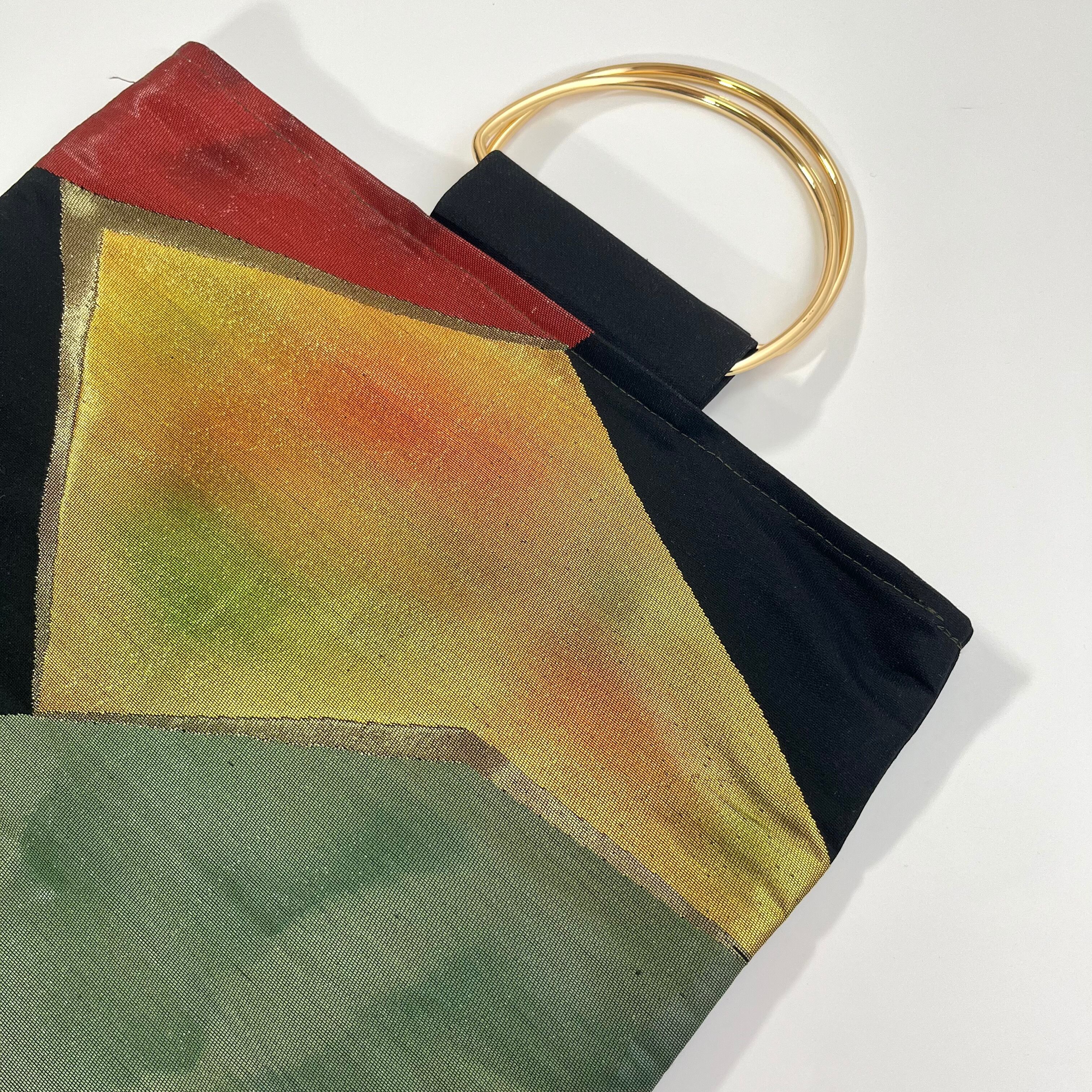 【12735】 アンティーク 帯リメイク トートバッグ メタルハンドル ゴールド