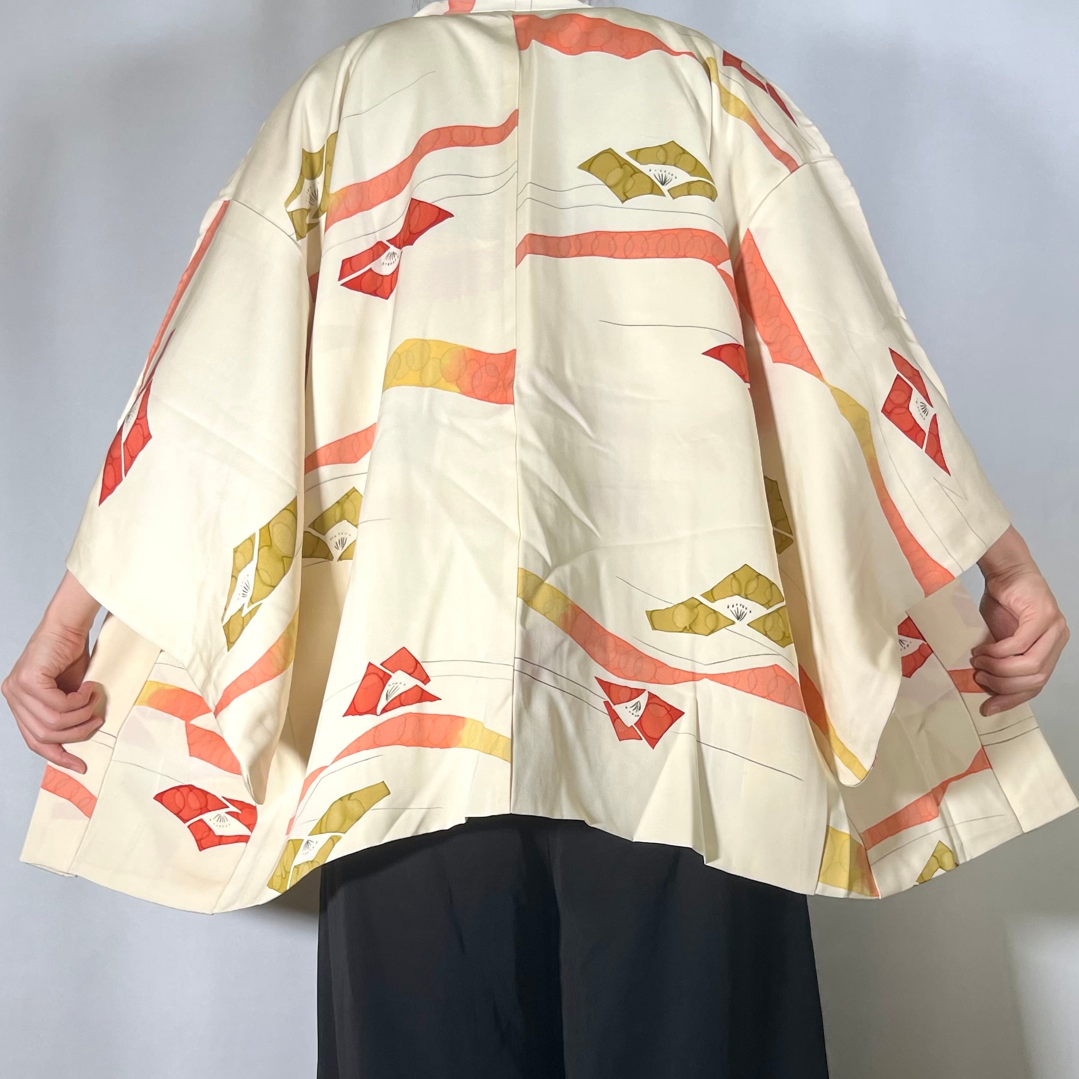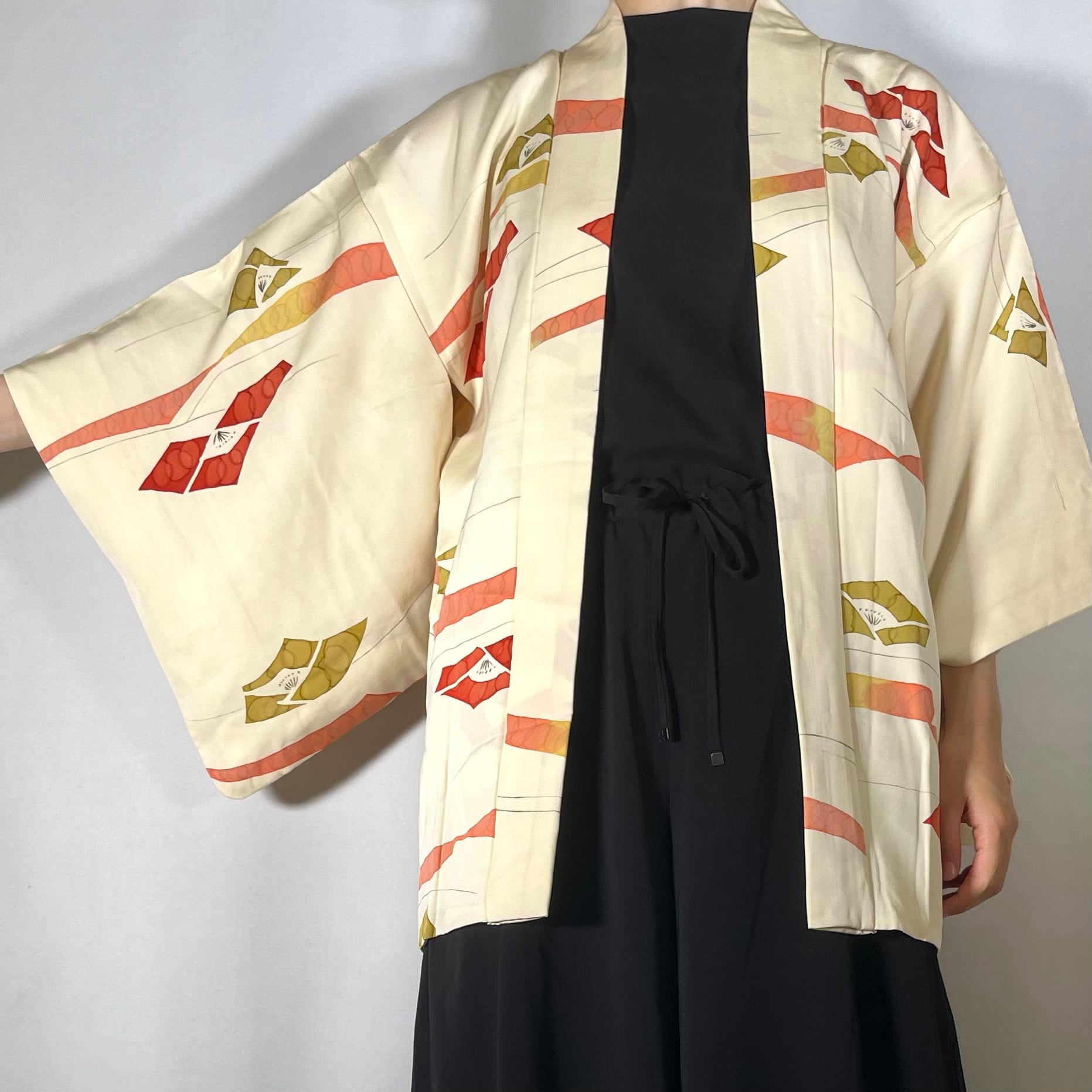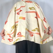 【12913】 古着 ヴィンテージ 色羽織 クリーム色 抽象模様 レトロ