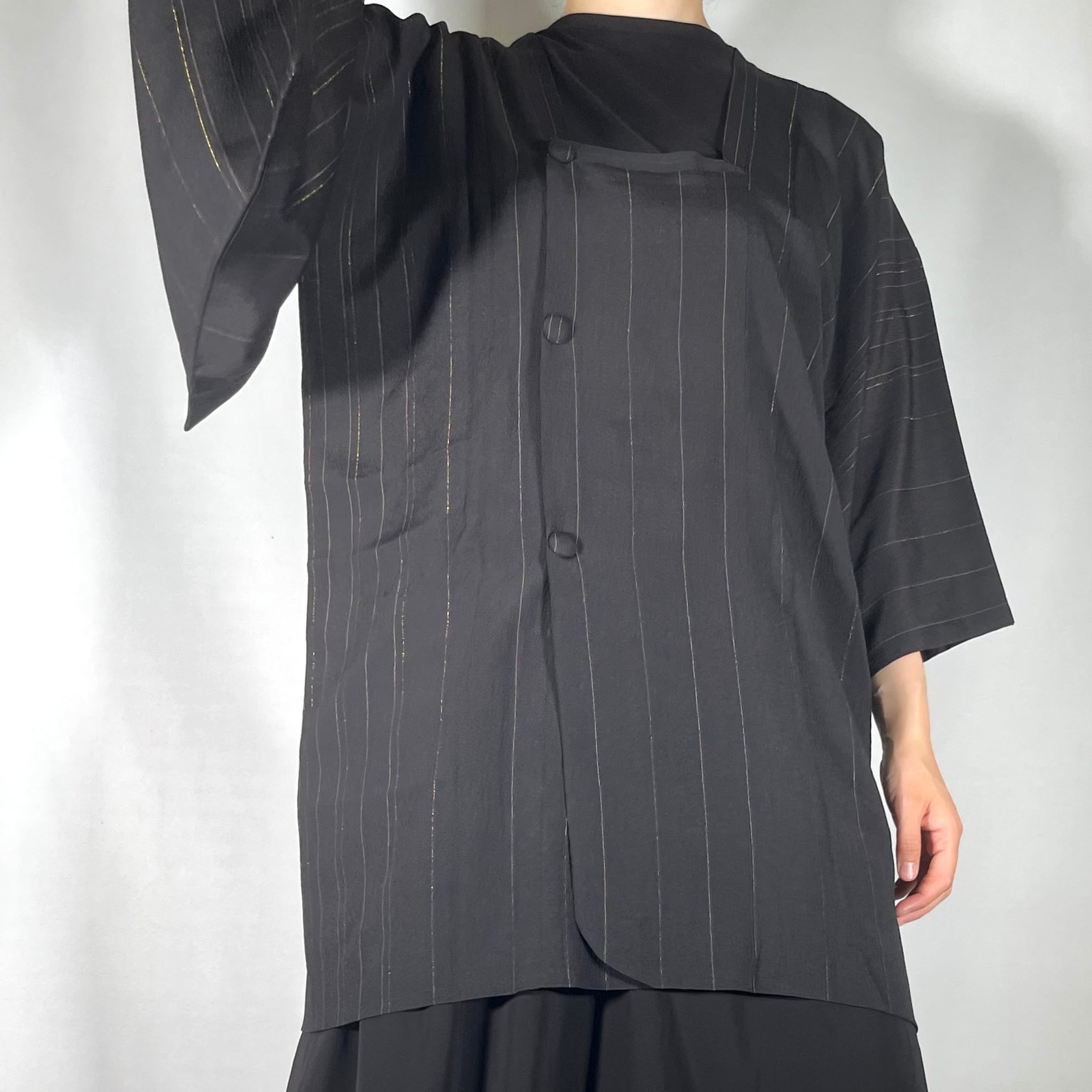 【13022】 古着 ヴィンテージ 着物羽織 道行 黒 レトロ