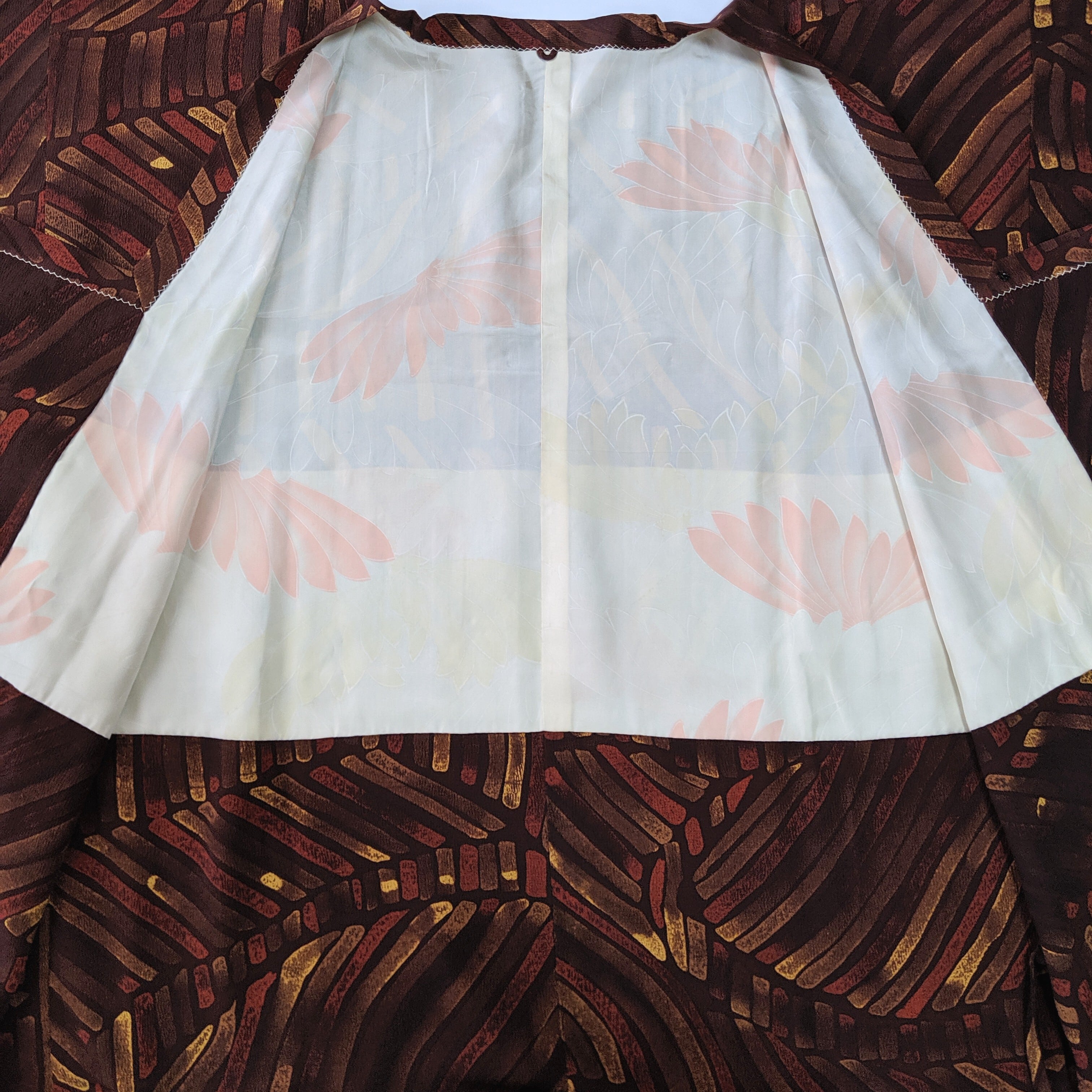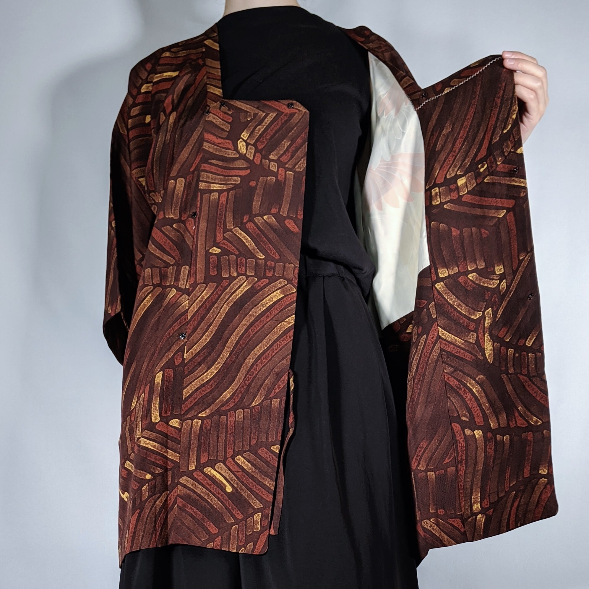 【13235】 古着 ヴィンテージ 道行 茶色 抽象模様 レトロ