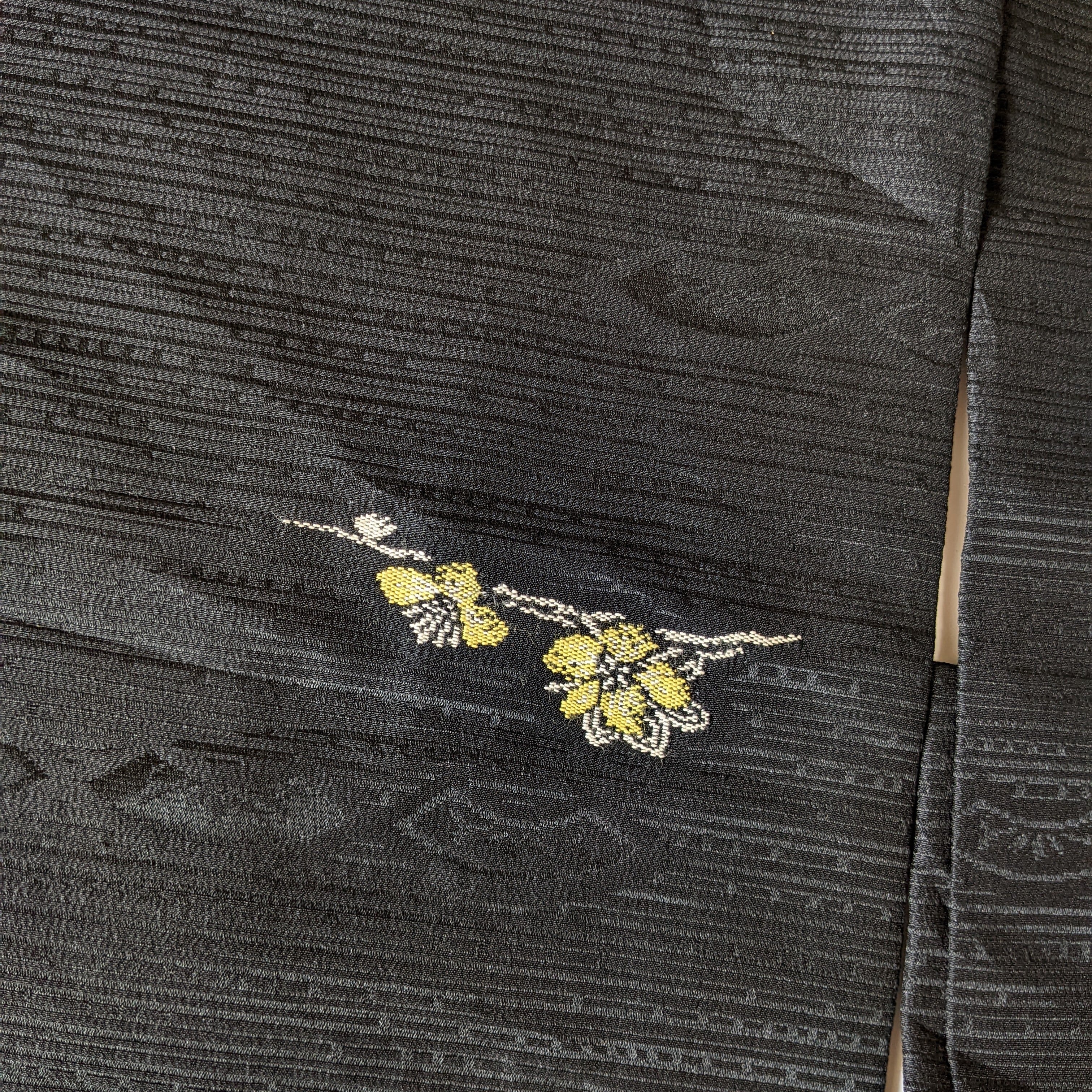 【13328】 古着 ヴィンテージ 着物羽織 黒羽織 花模様 ピンク 黄色 レトロ
