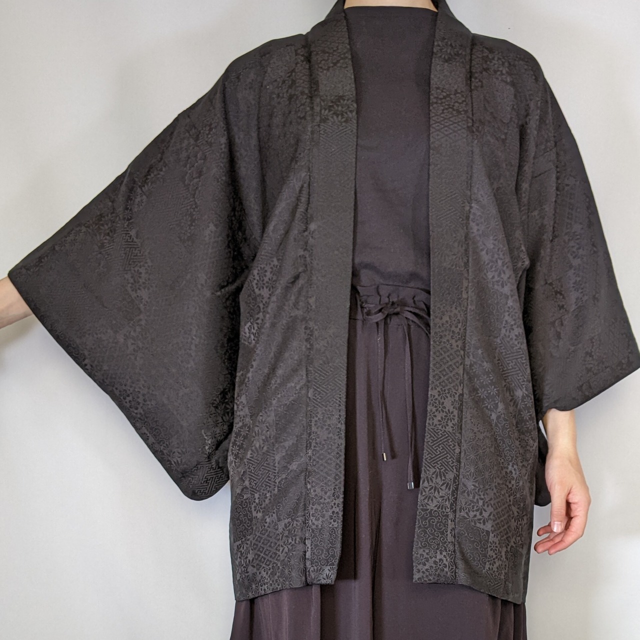If you are a Kimono beginner, wearing a kimono may be a little difficult. You can start kimono style, however, by just putting Haori on your everyday clothes right now! Haori looks great on almost any outfit. Bring Haori into your life and enjoy Japanese kimono style!