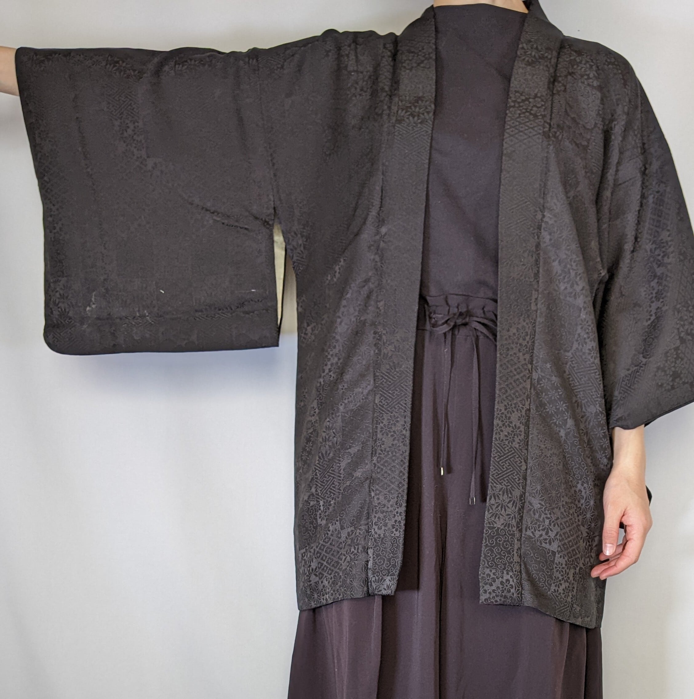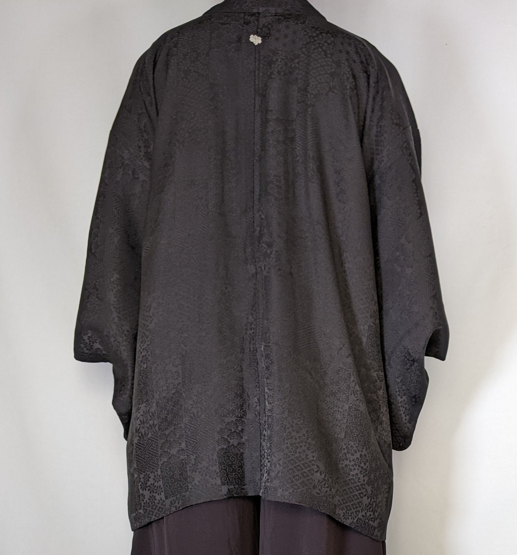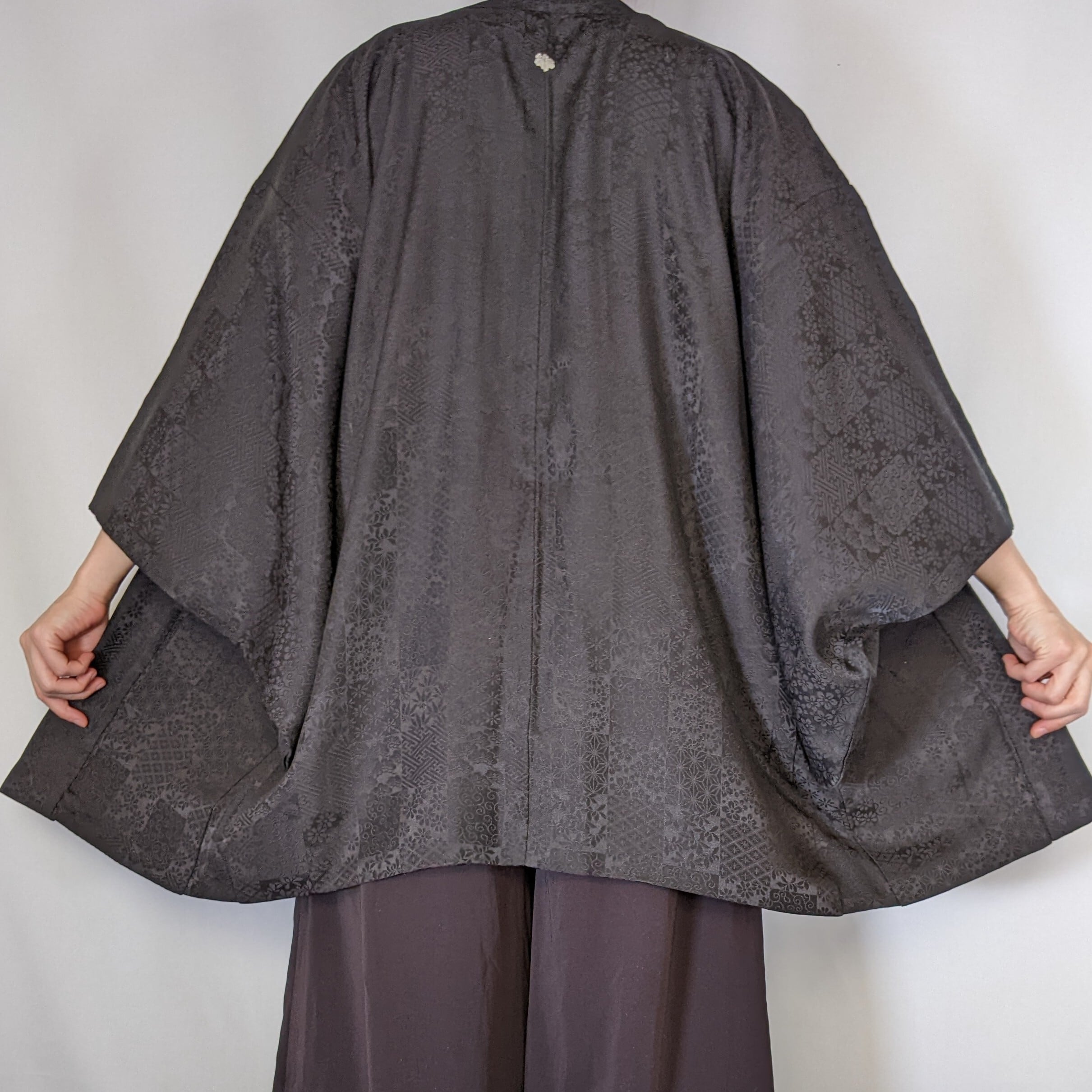 【13590】 古着 ヴィンテージ 着物羽織 黒羽織 地模様 レトロ